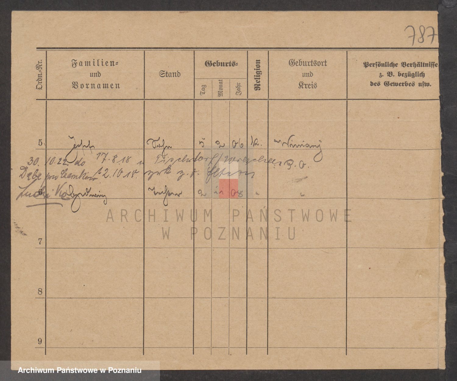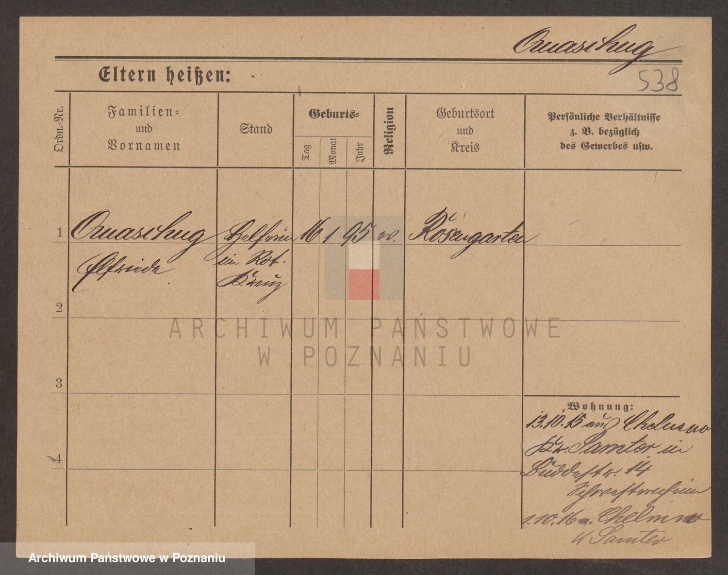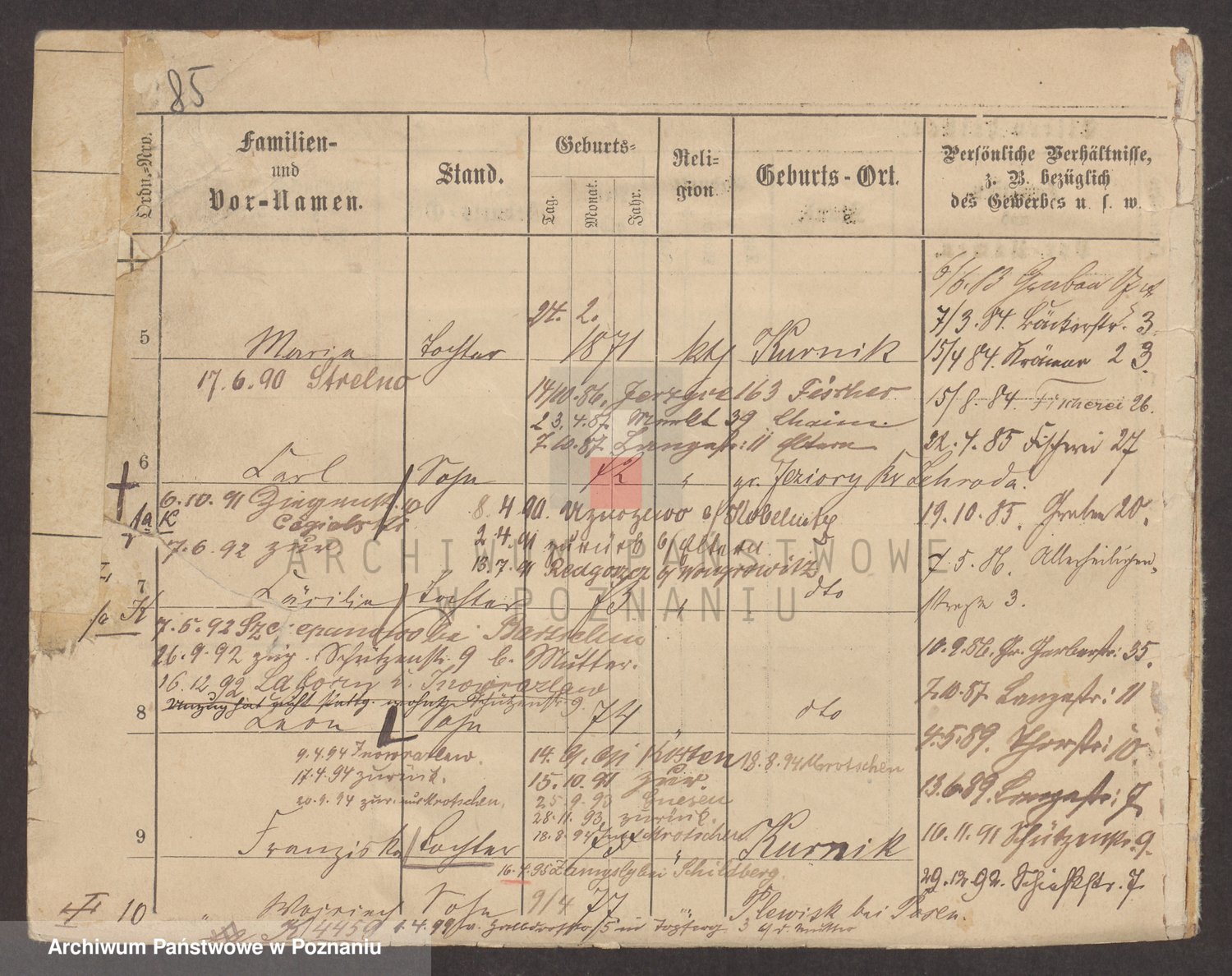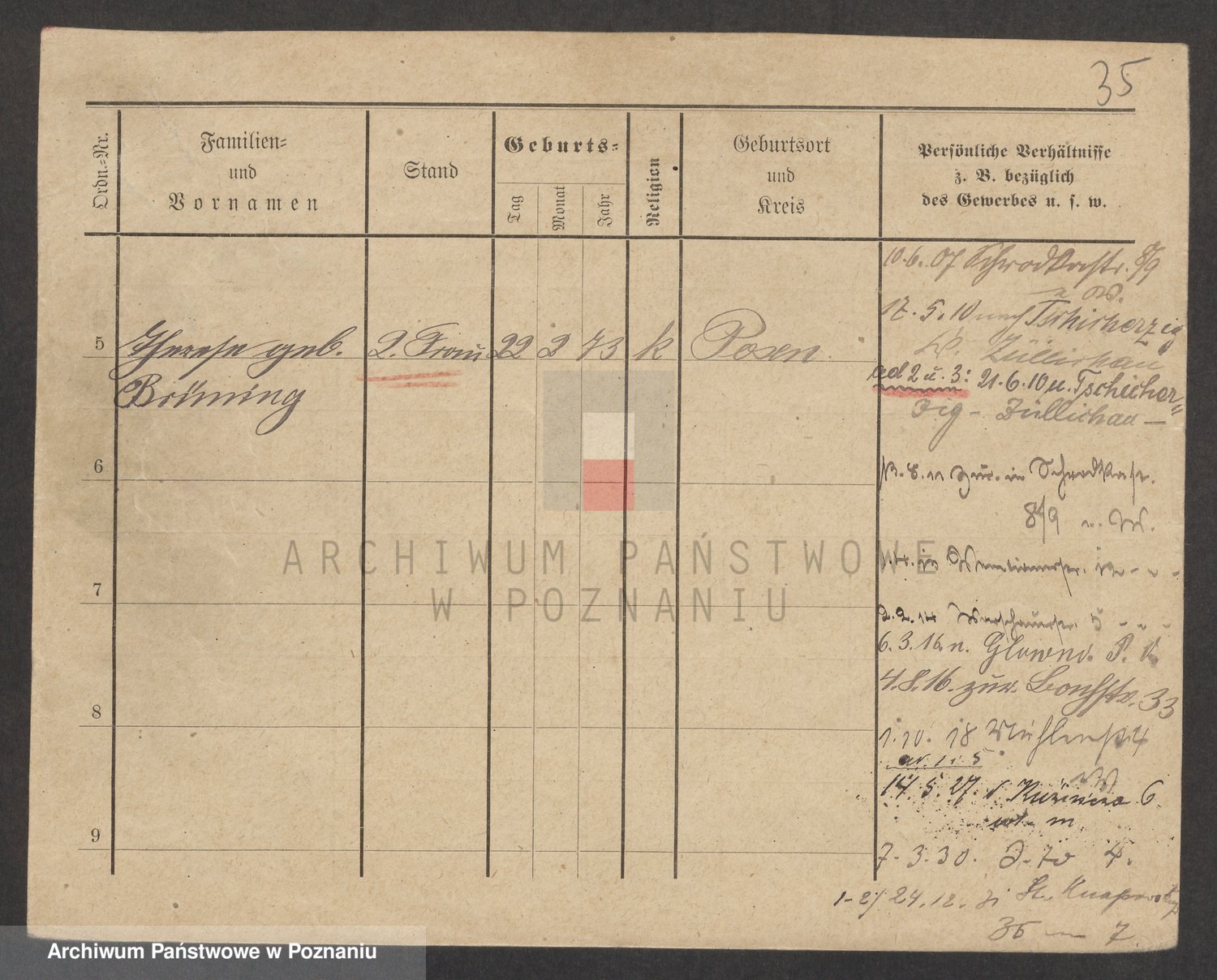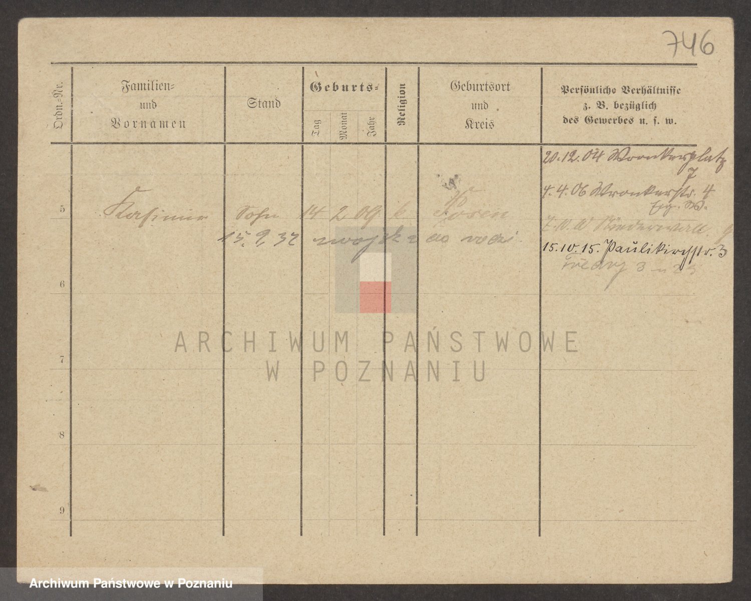 Podgląd karty osobowej dostępny jest po kliknięciu na nazwisko lub ikonkę karty. Można dokonywać powiększenia (ikony na górze) lub przechodzić między kolejnymi skanami (strzałki po bokach).