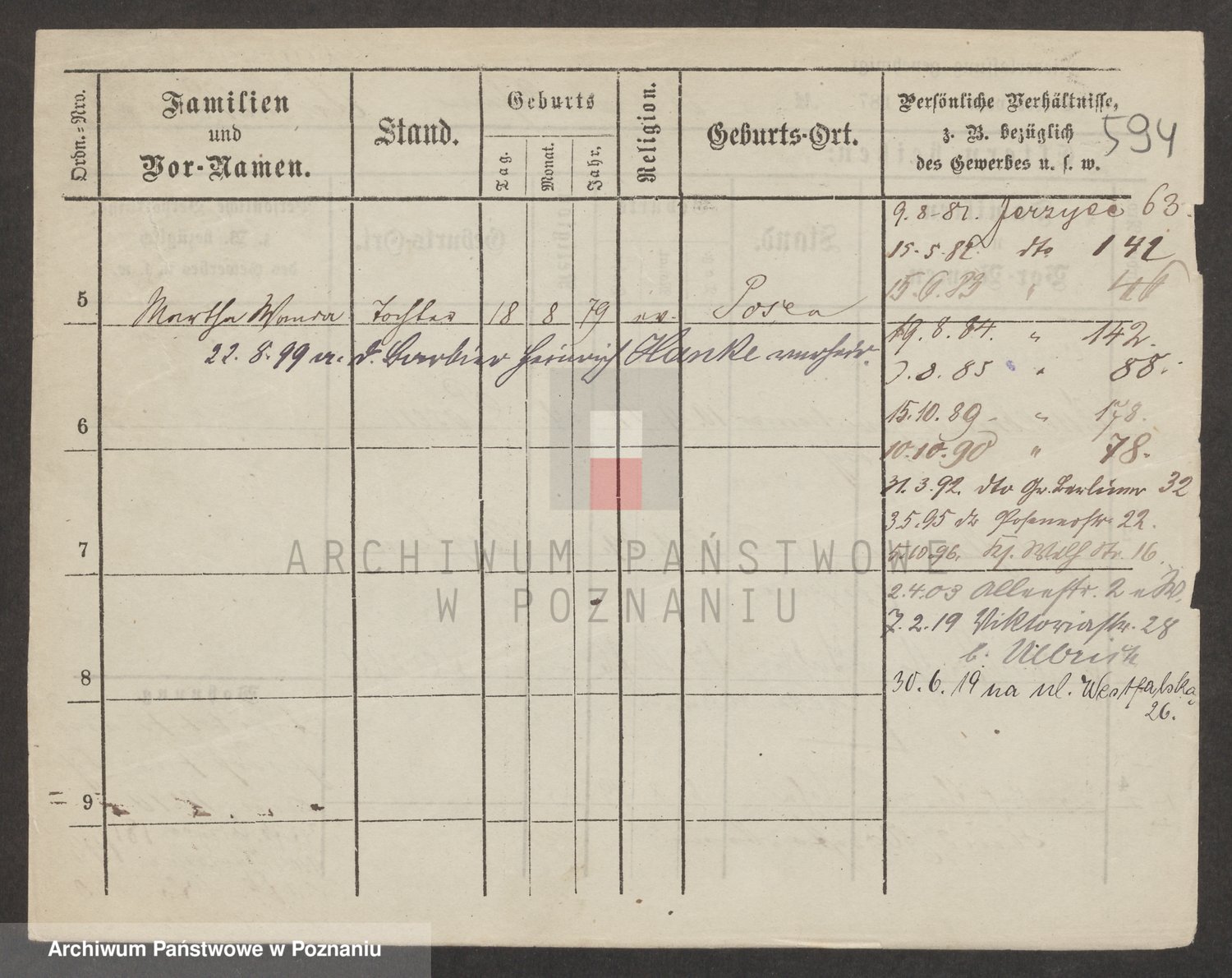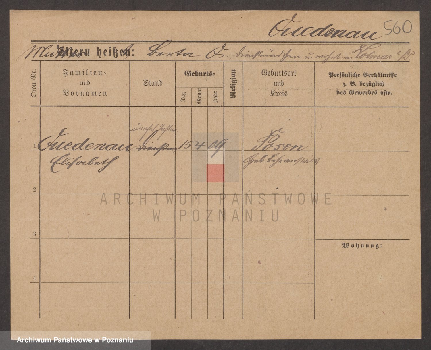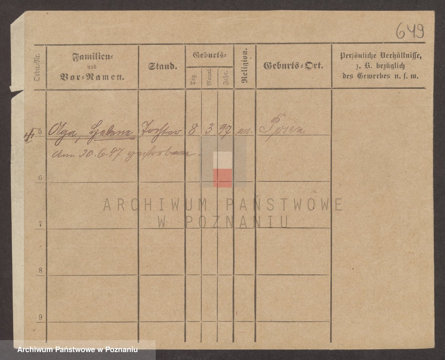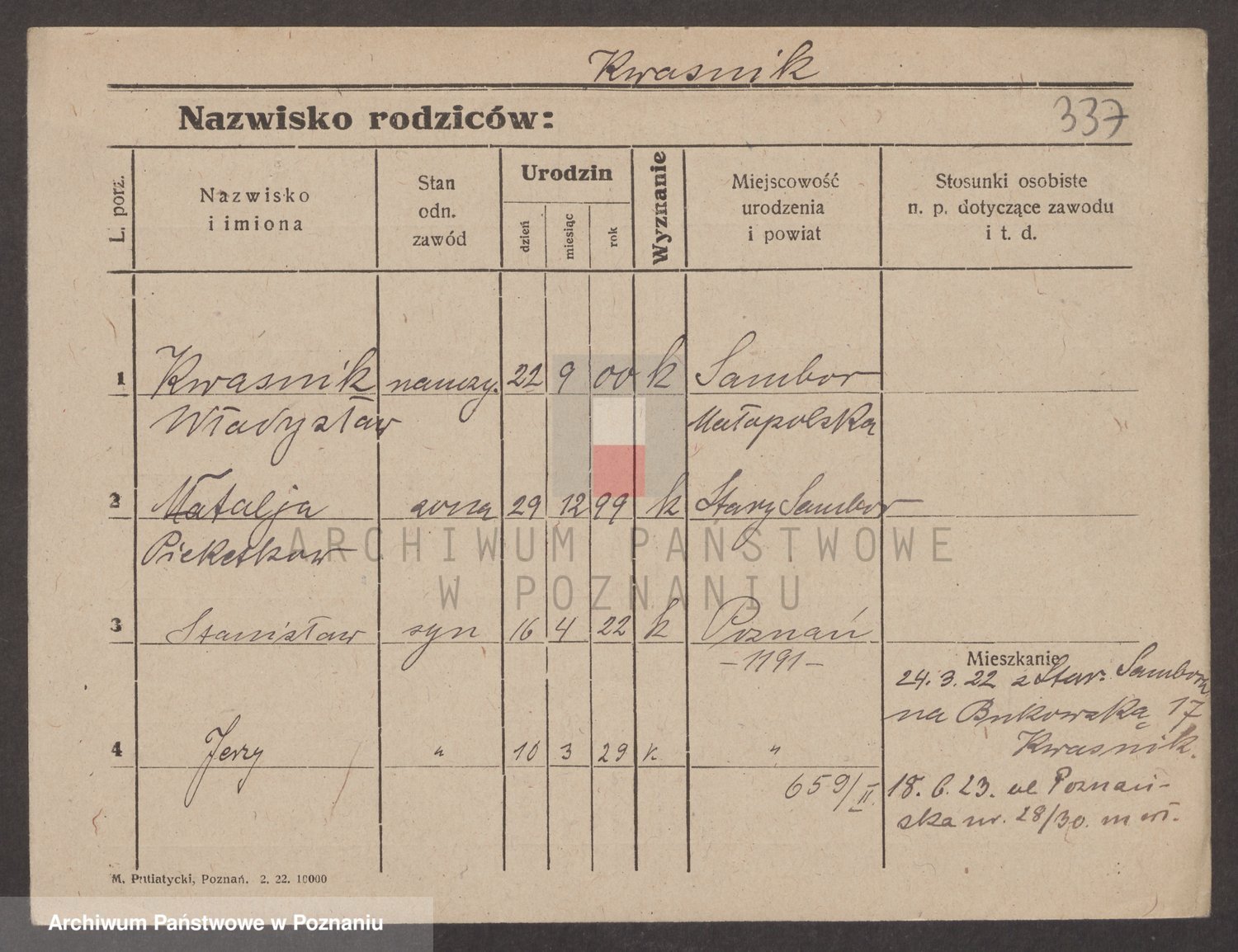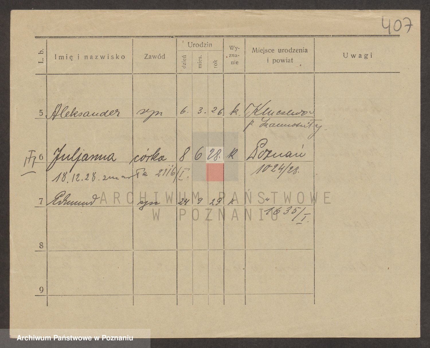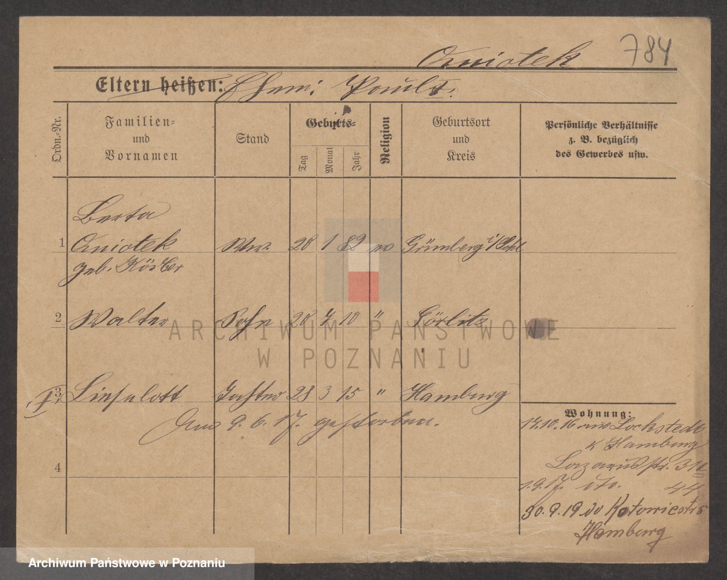 Podgląd karty osobowej dostępny jest po kliknięciu na nazwisko lub ikonkę karty. Można dokonywać powiększenia (ikony na górze) lub przechodzić między kolejnymi skanami (strzałki po bokach).