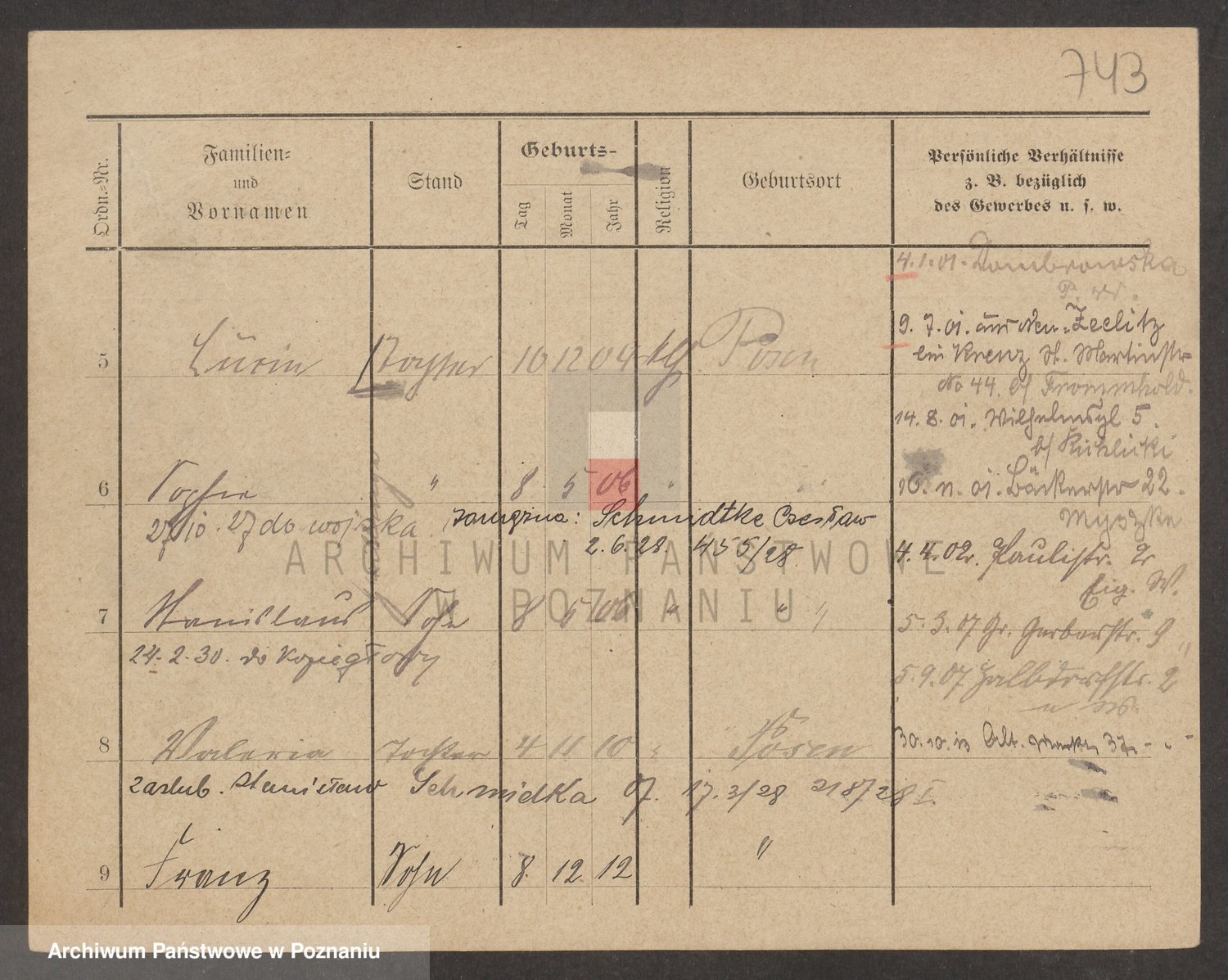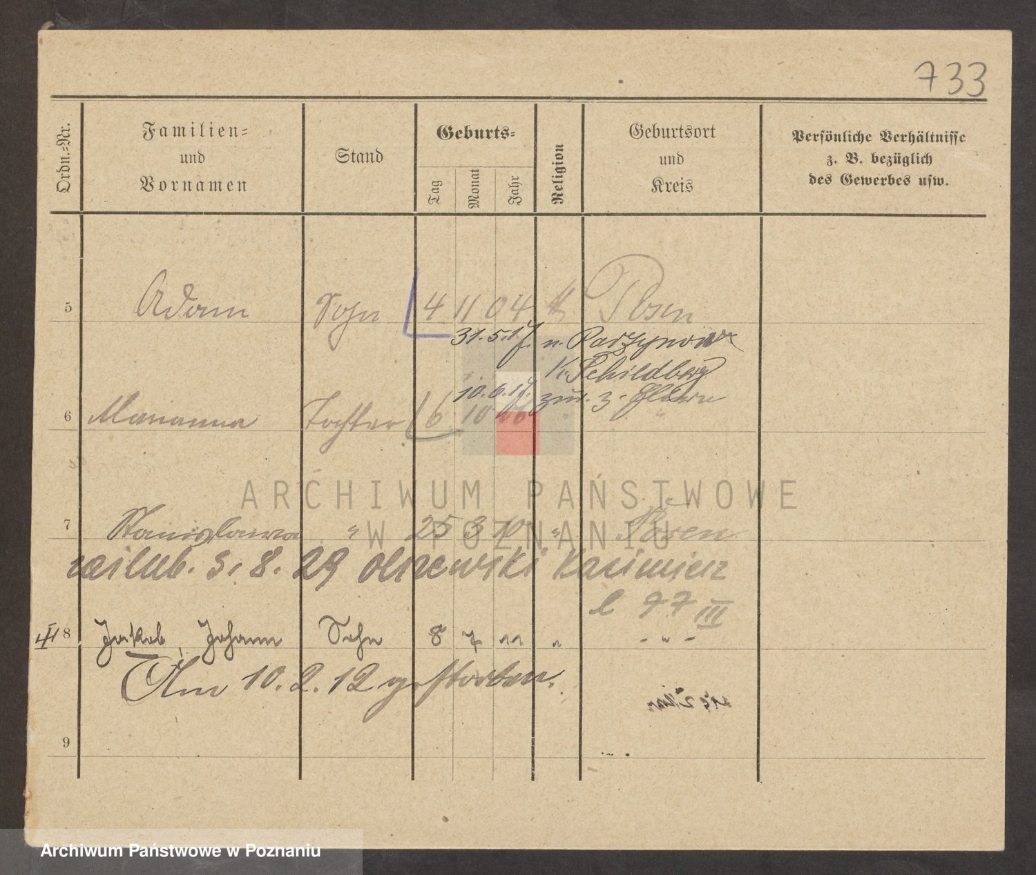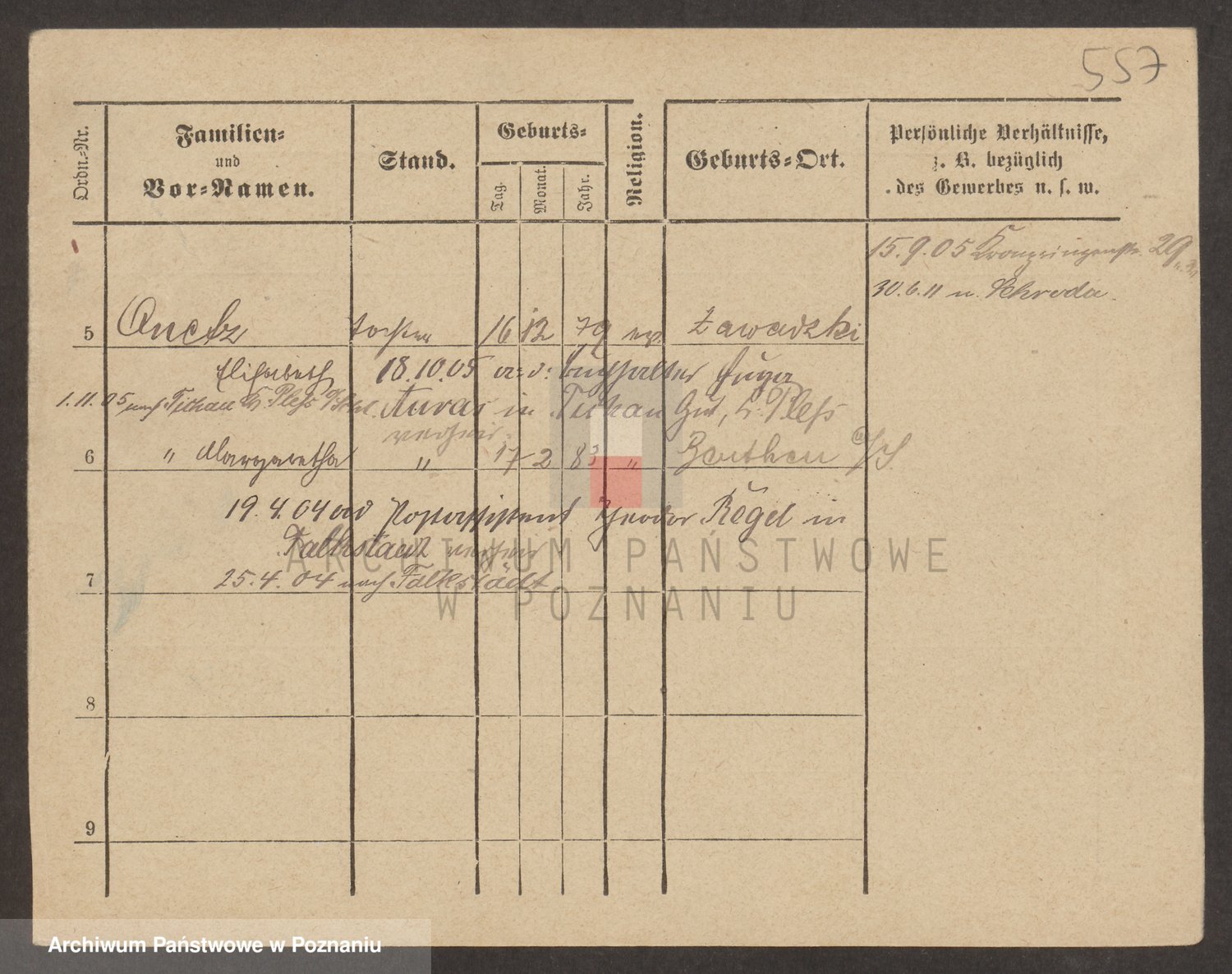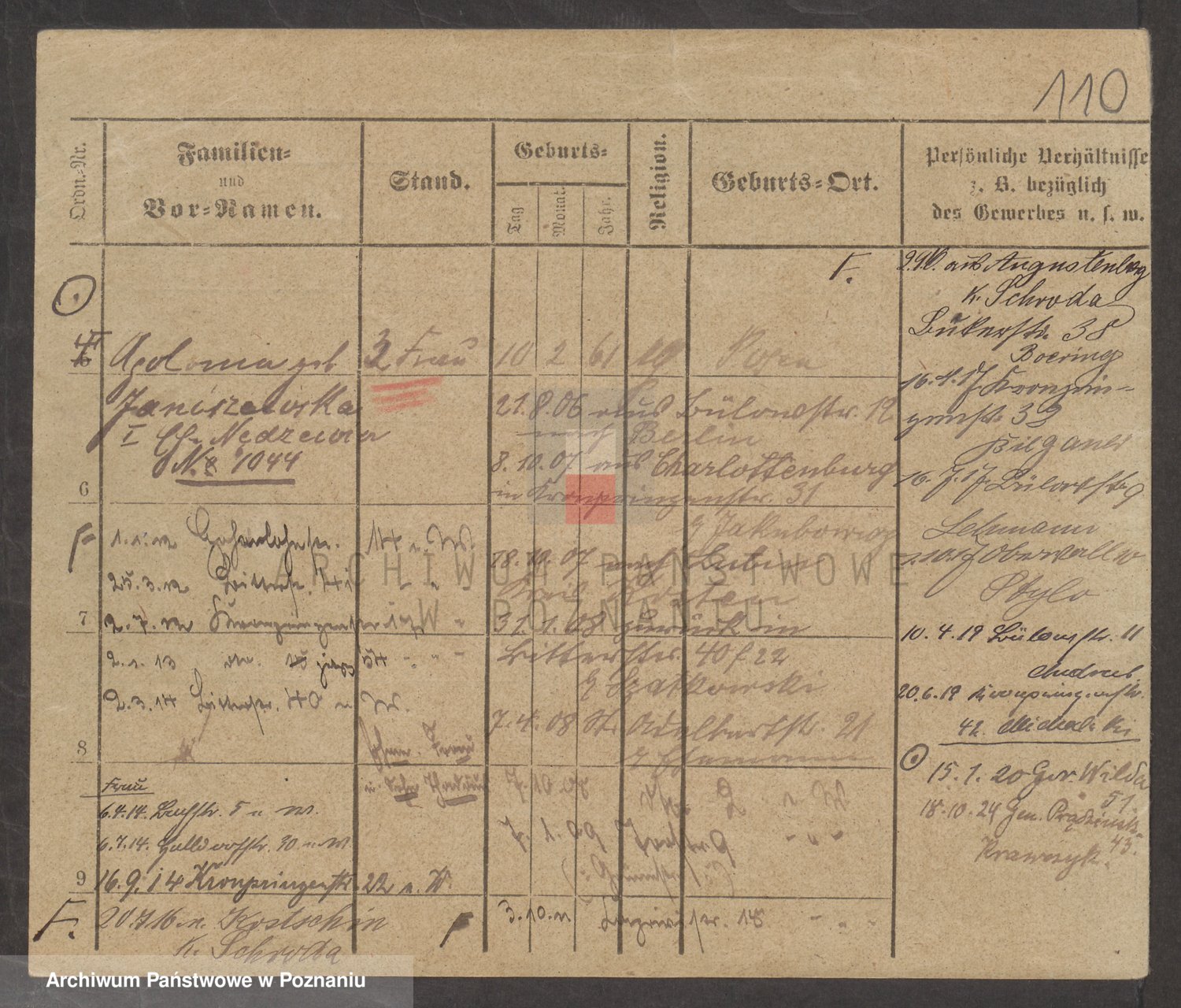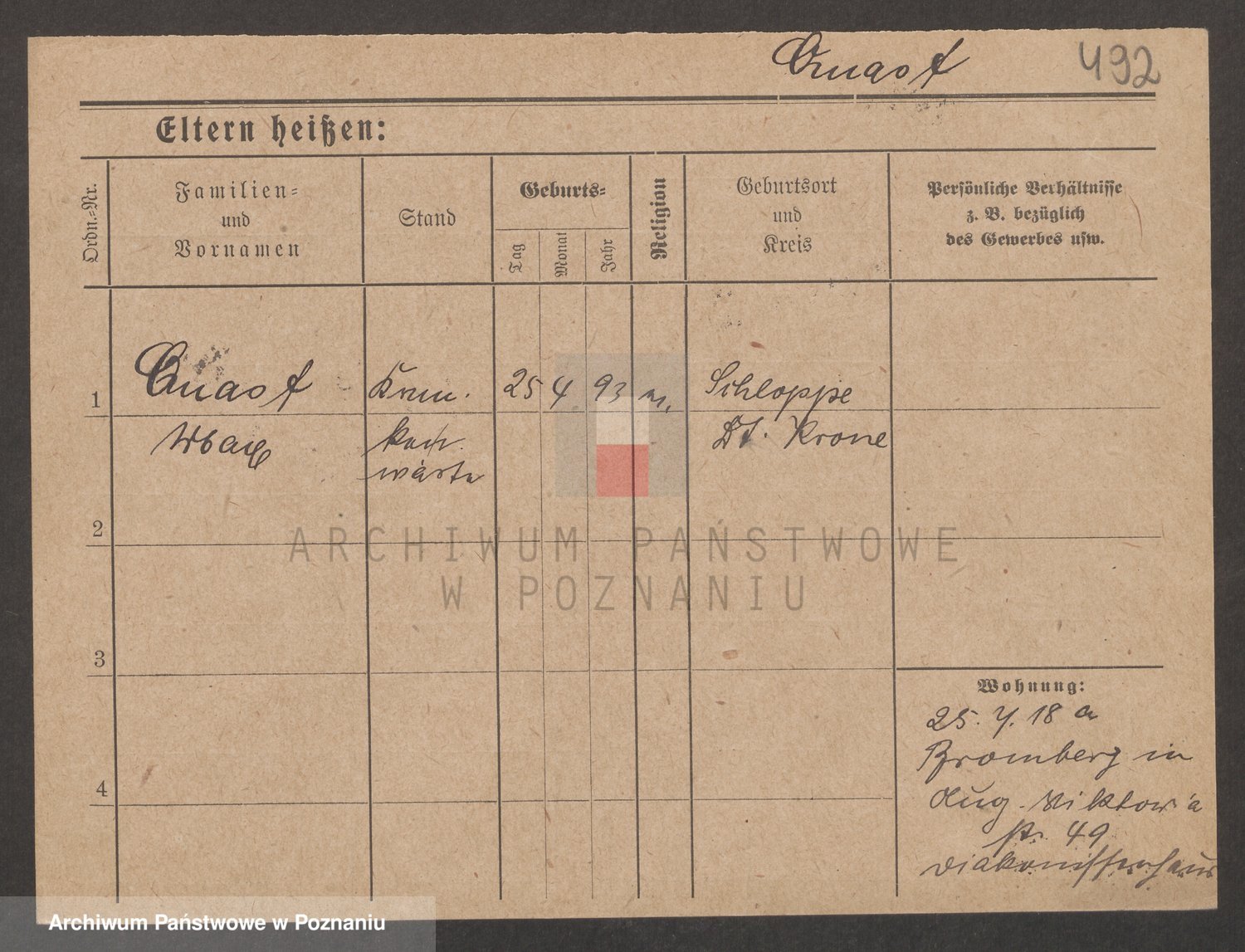 Podgląd karty osobowej dostępny jest po kliknięciu na nazwisko lub ikonkę karty. Można dokonywać powiększenia (ikony na górze) lub przechodzić między kolejnymi skanami (strzałki po bokach).