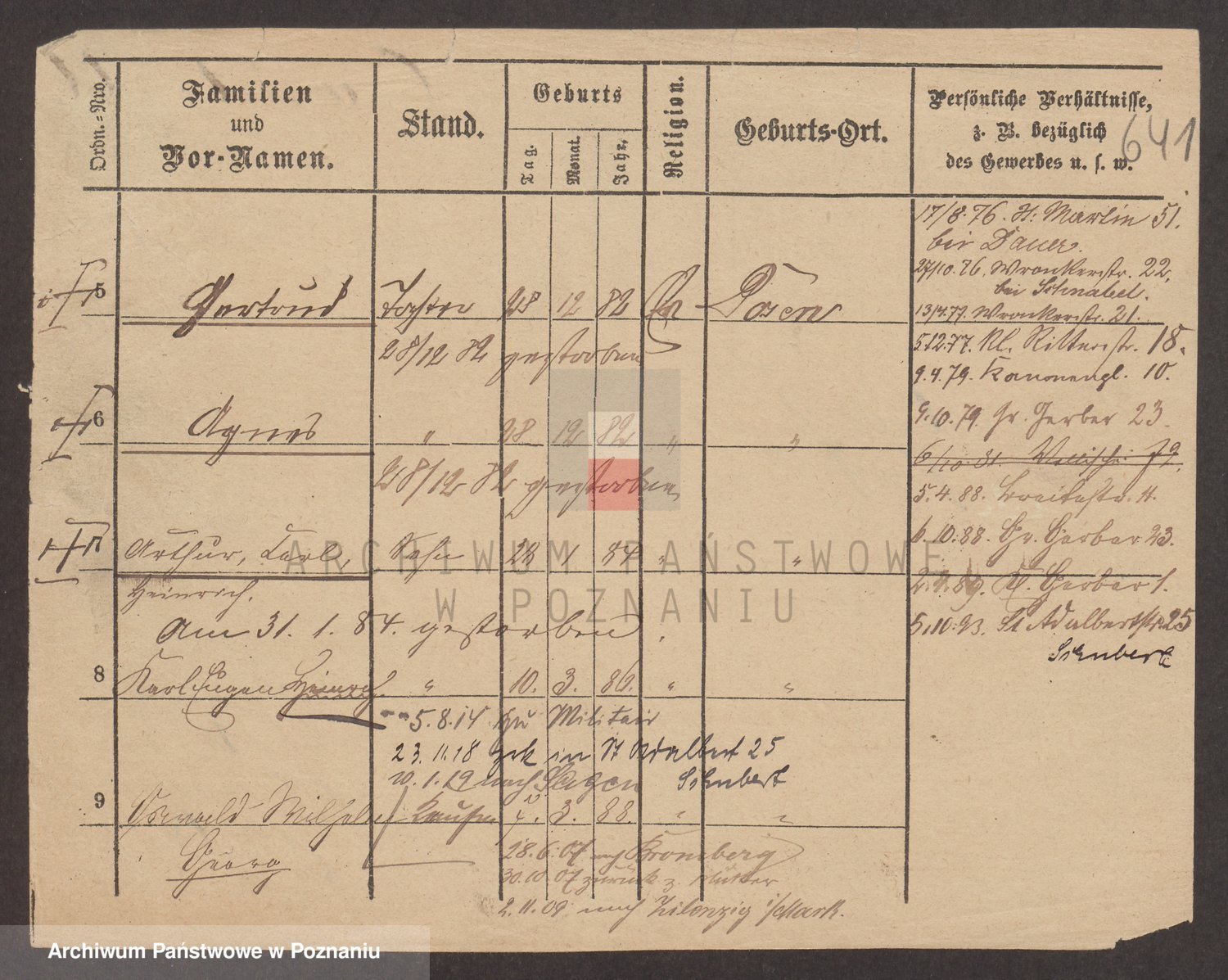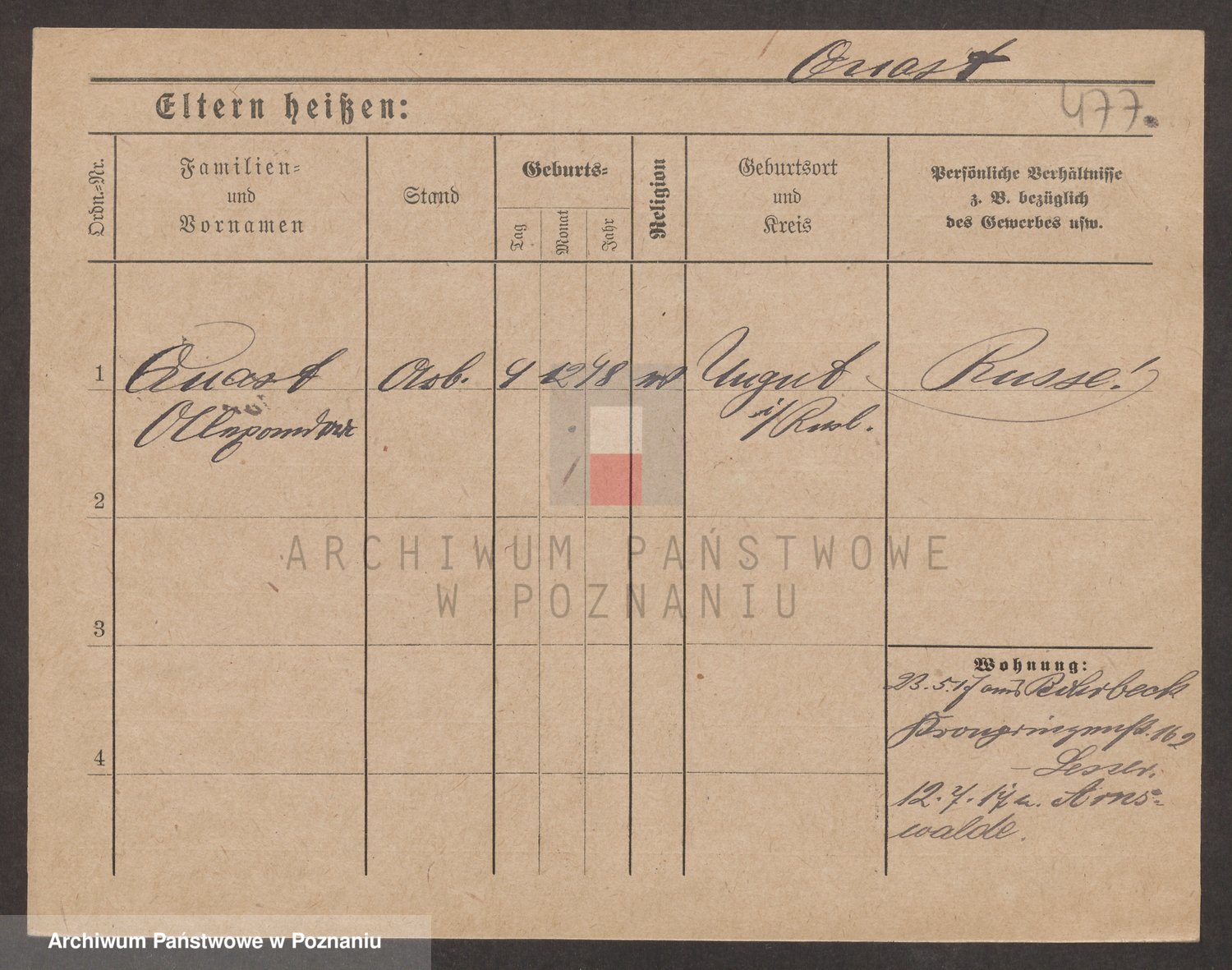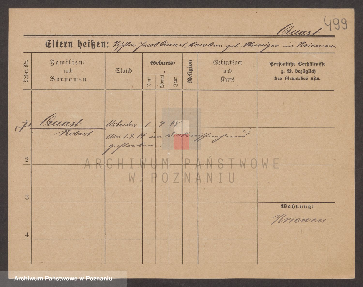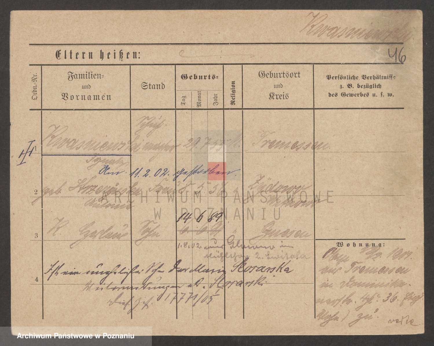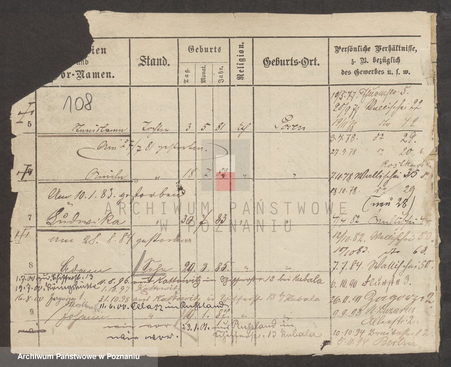 Podgląd karty osobowej dostępny jest po kliknięciu na nazwisko lub ikonkę karty. Można dokonywać powiększenia (ikony na górze) lub przechodzić między kolejnymi skanami (strzałki po bokach).