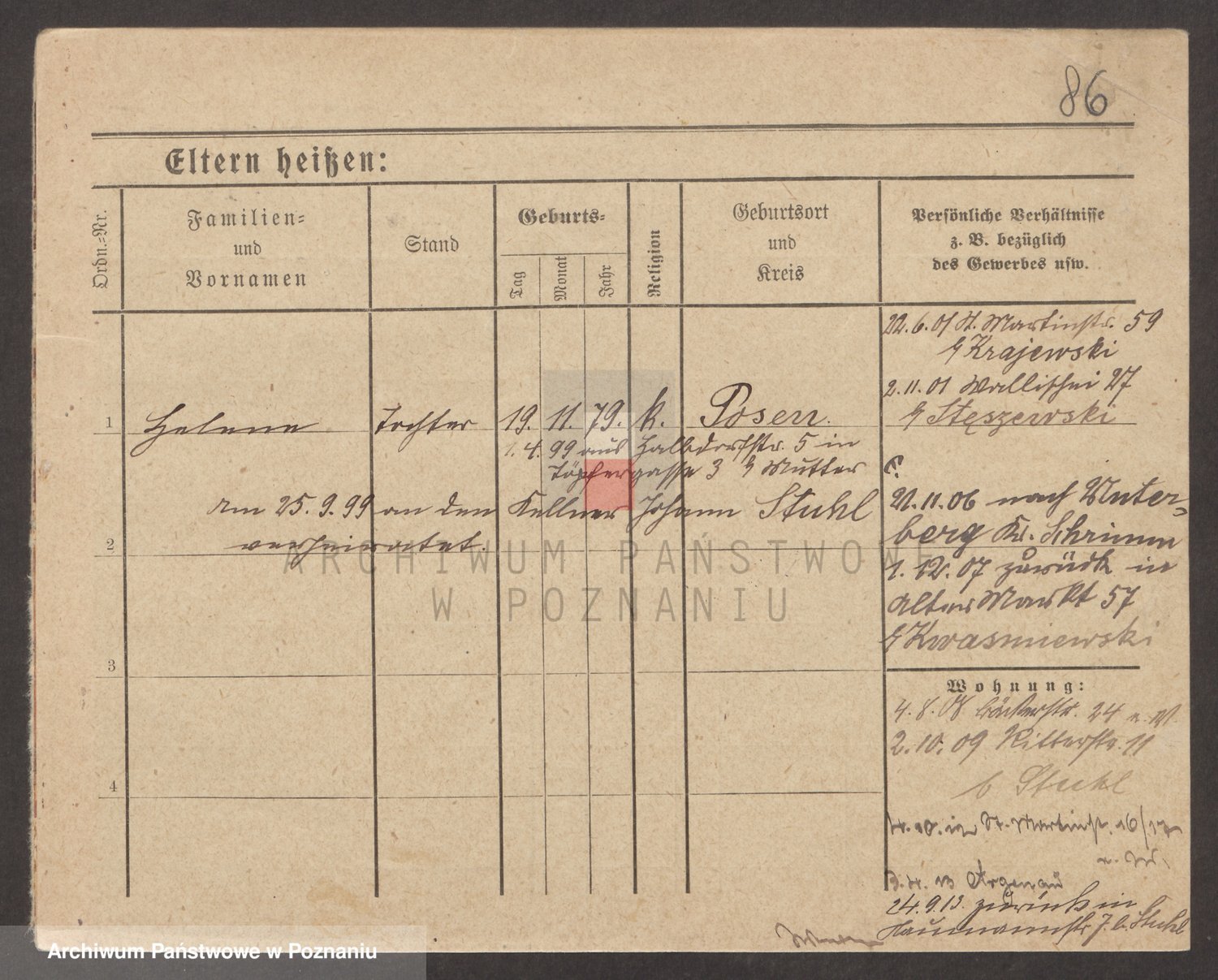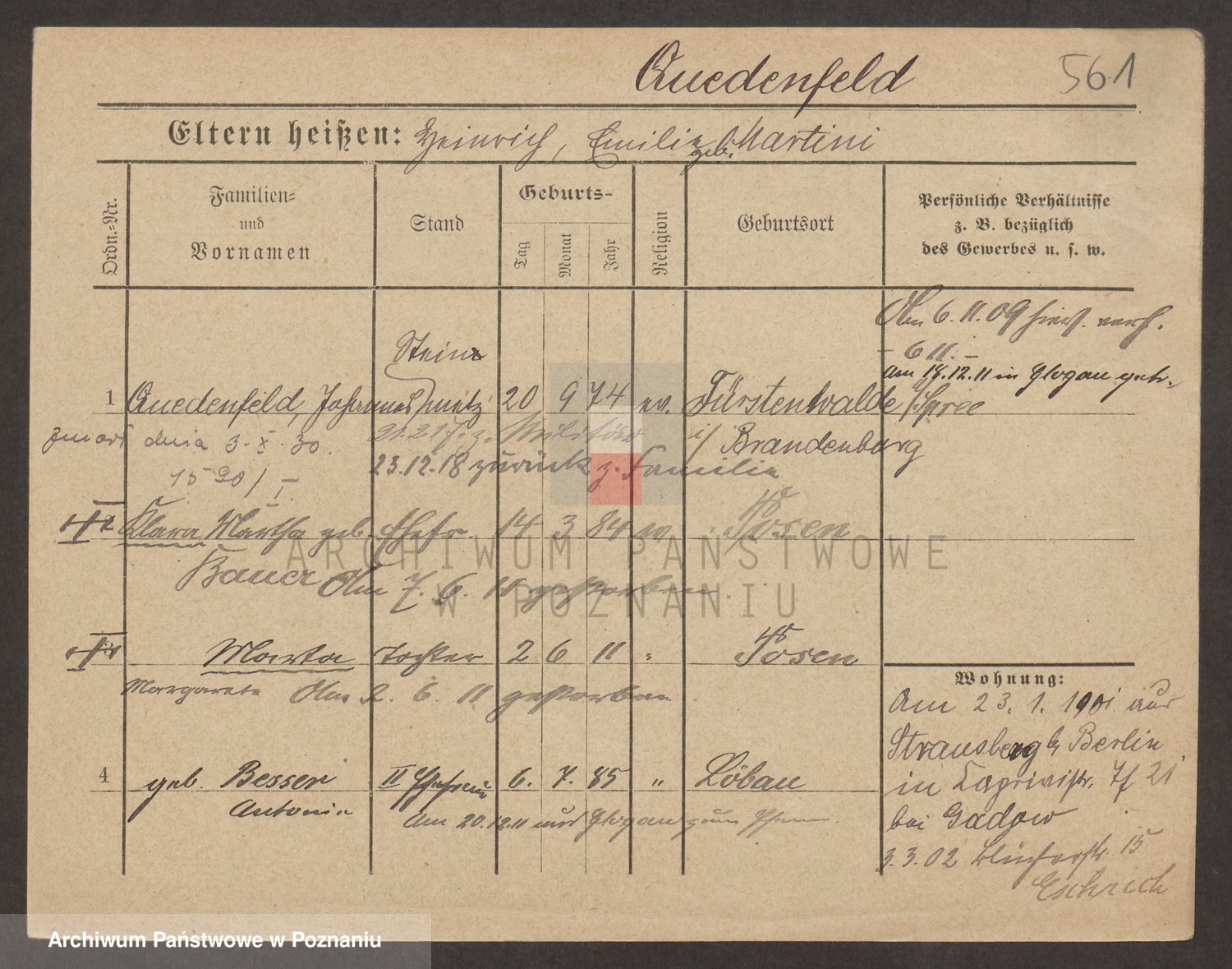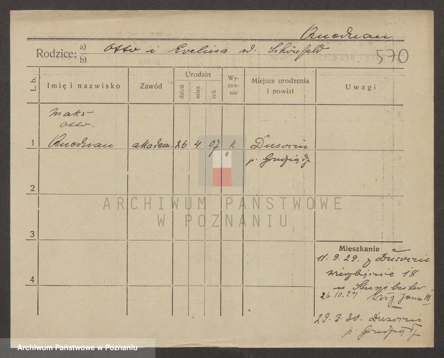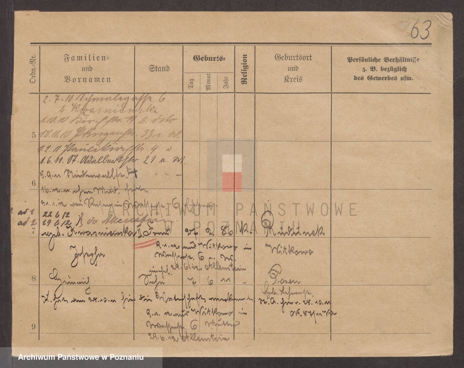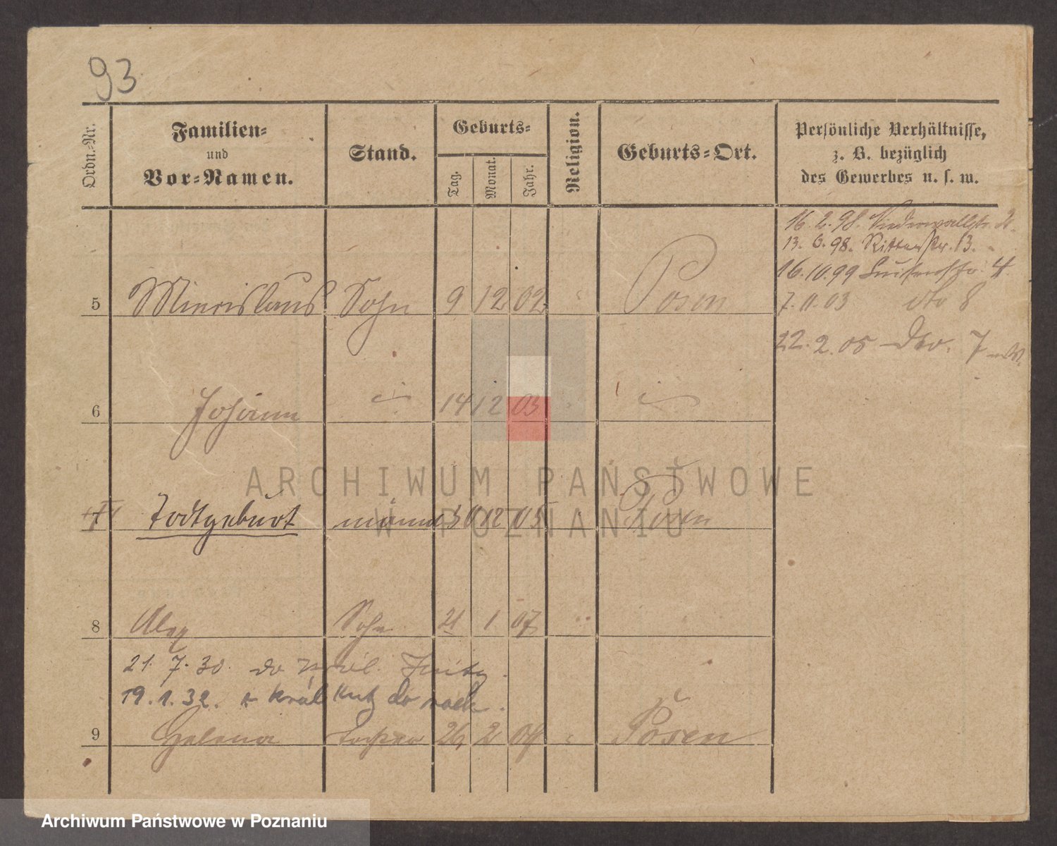 Podgląd karty osobowej dostępny jest po kliknięciu na nazwisko lub ikonkę karty. Można dokonywać powiększenia (ikony na górze) lub przechodzić między kolejnymi skanami (strzałki po bokach).