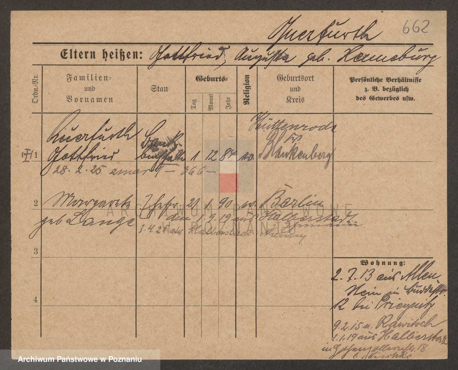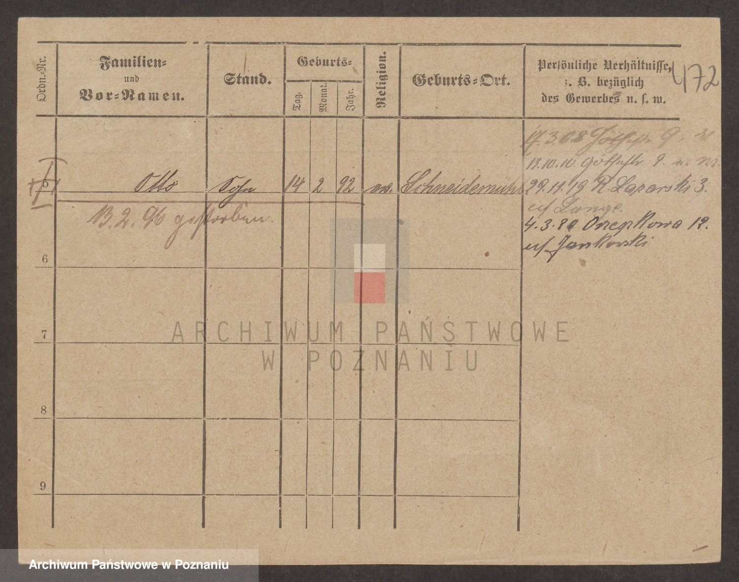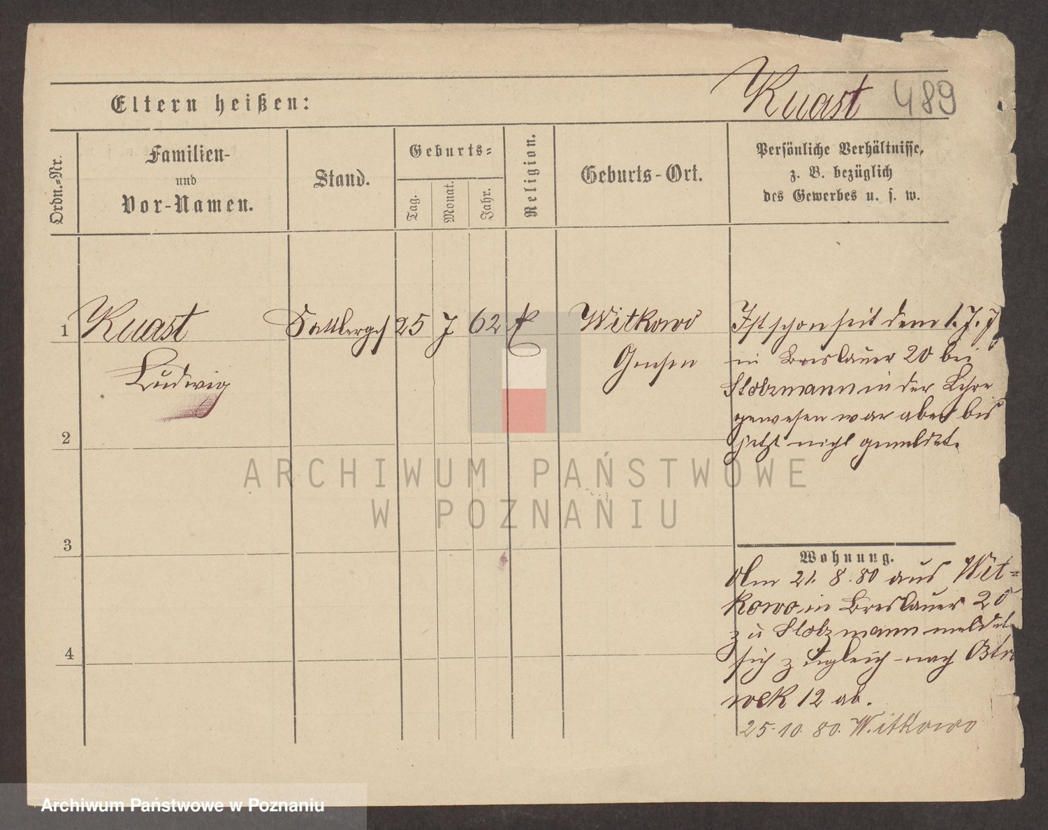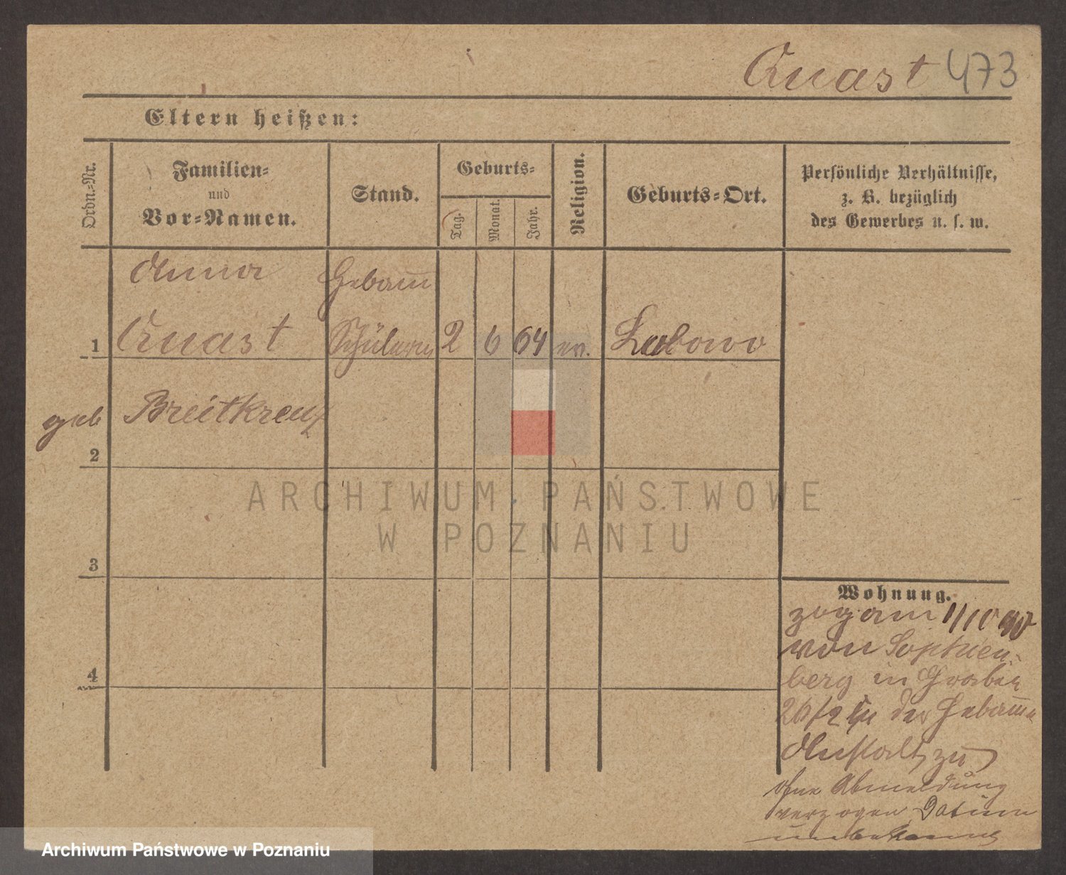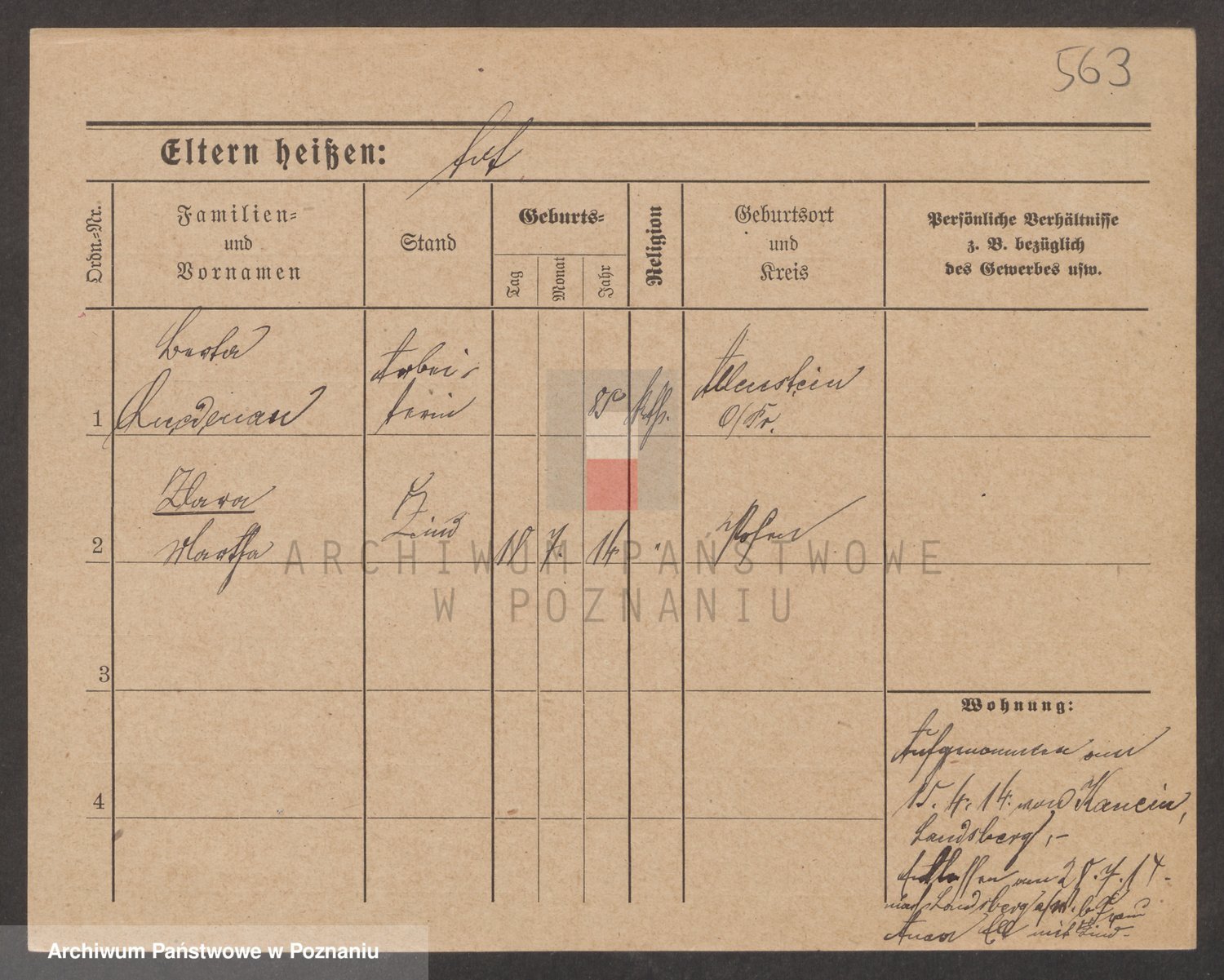 Podgląd karty osobowej dostępny jest po kliknięciu na nazwisko lub ikonkę karty. Można dokonywać powiększenia (ikony na górze) lub przechodzić między kolejnymi skanami (strzałki po bokach).