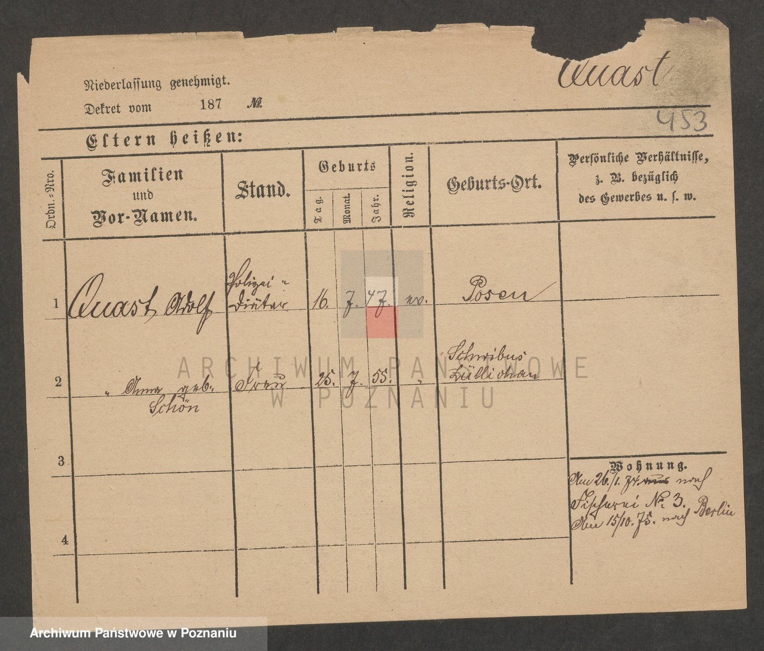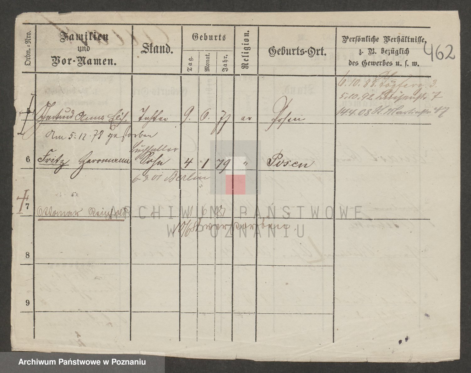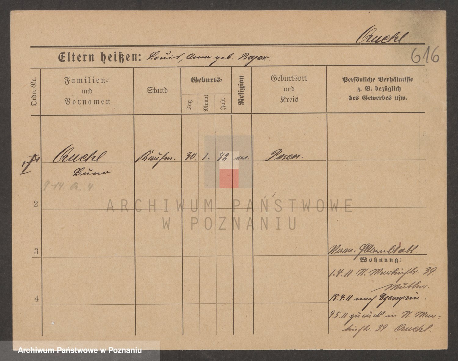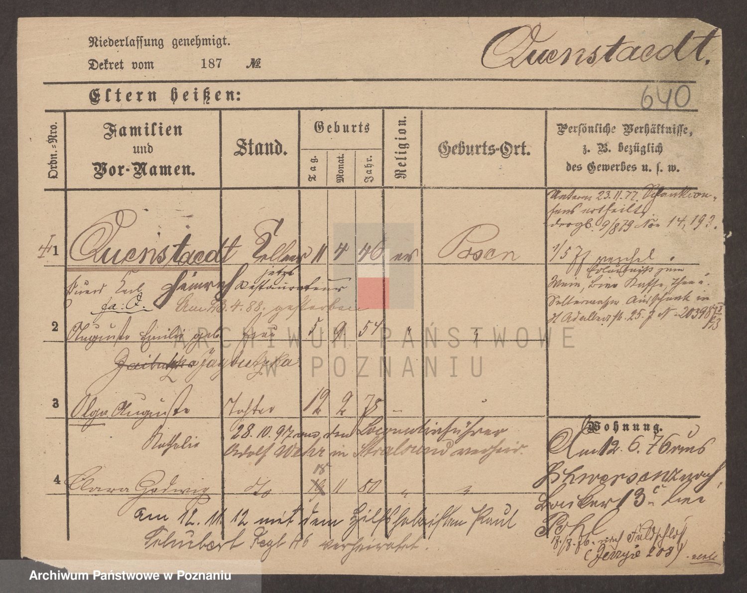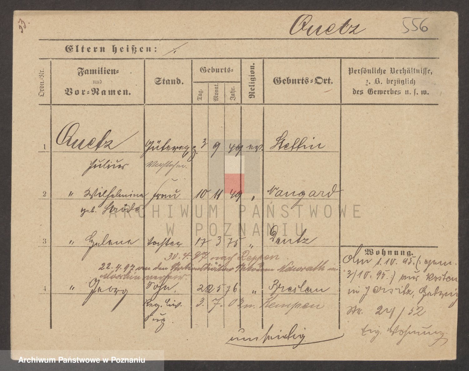 Podgląd karty osobowej dostępny jest po kliknięciu na nazwisko lub ikonkę karty. Można dokonywać powiększenia (ikony na górze) lub przechodzić między kolejnymi skanami (strzałki po bokach).