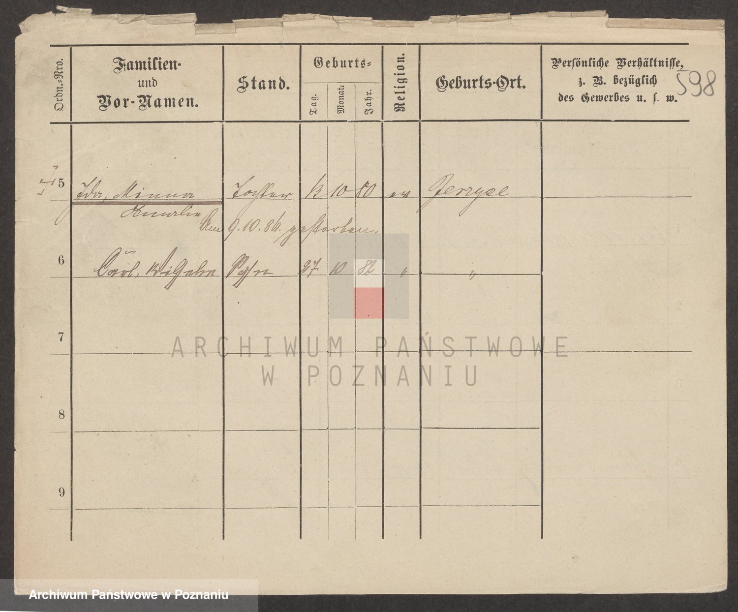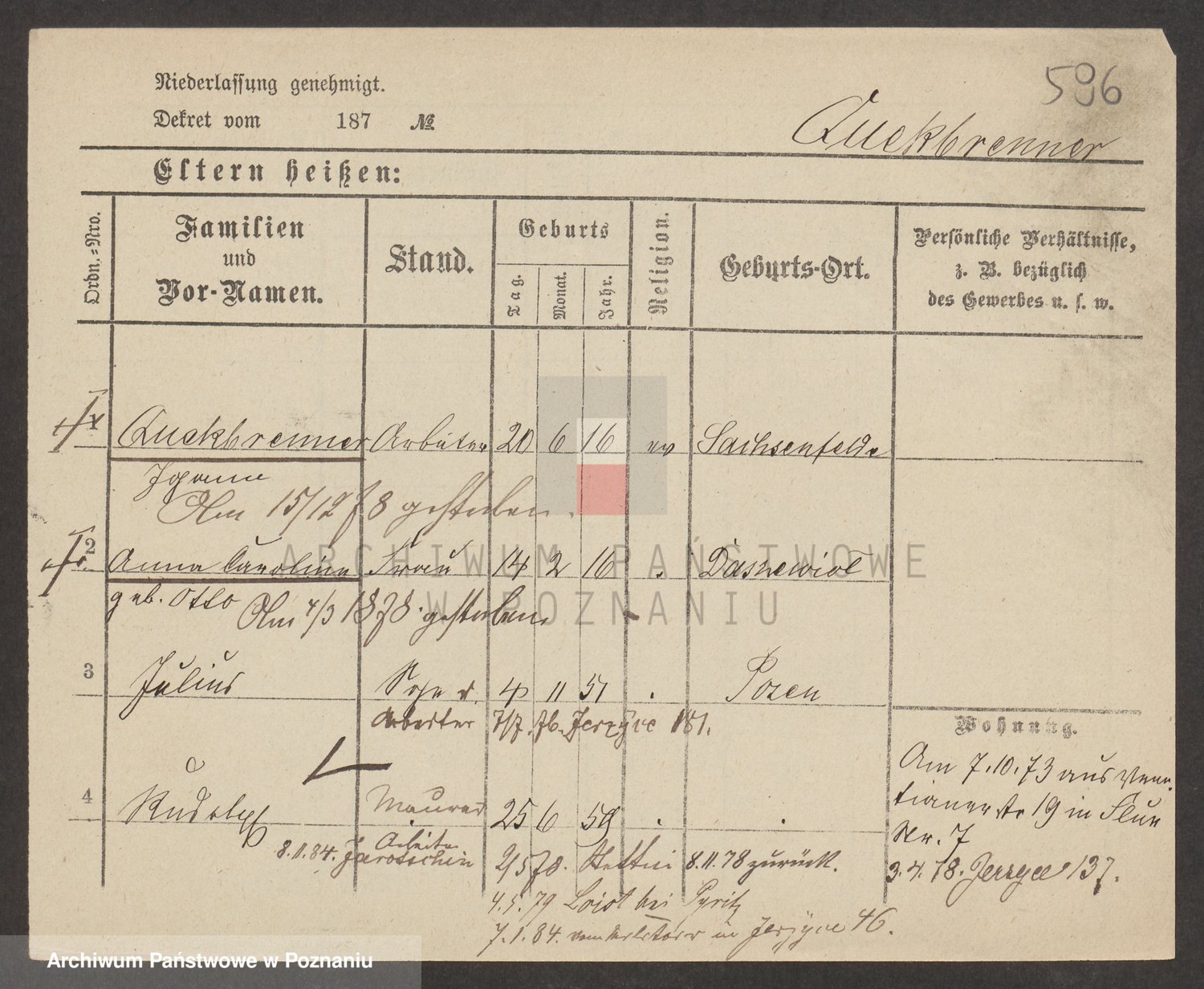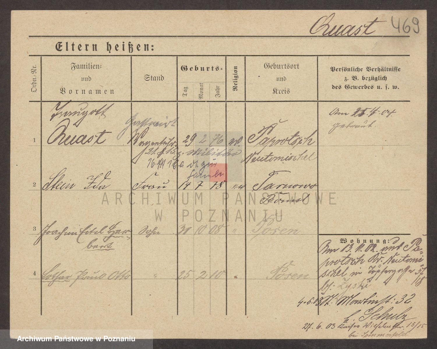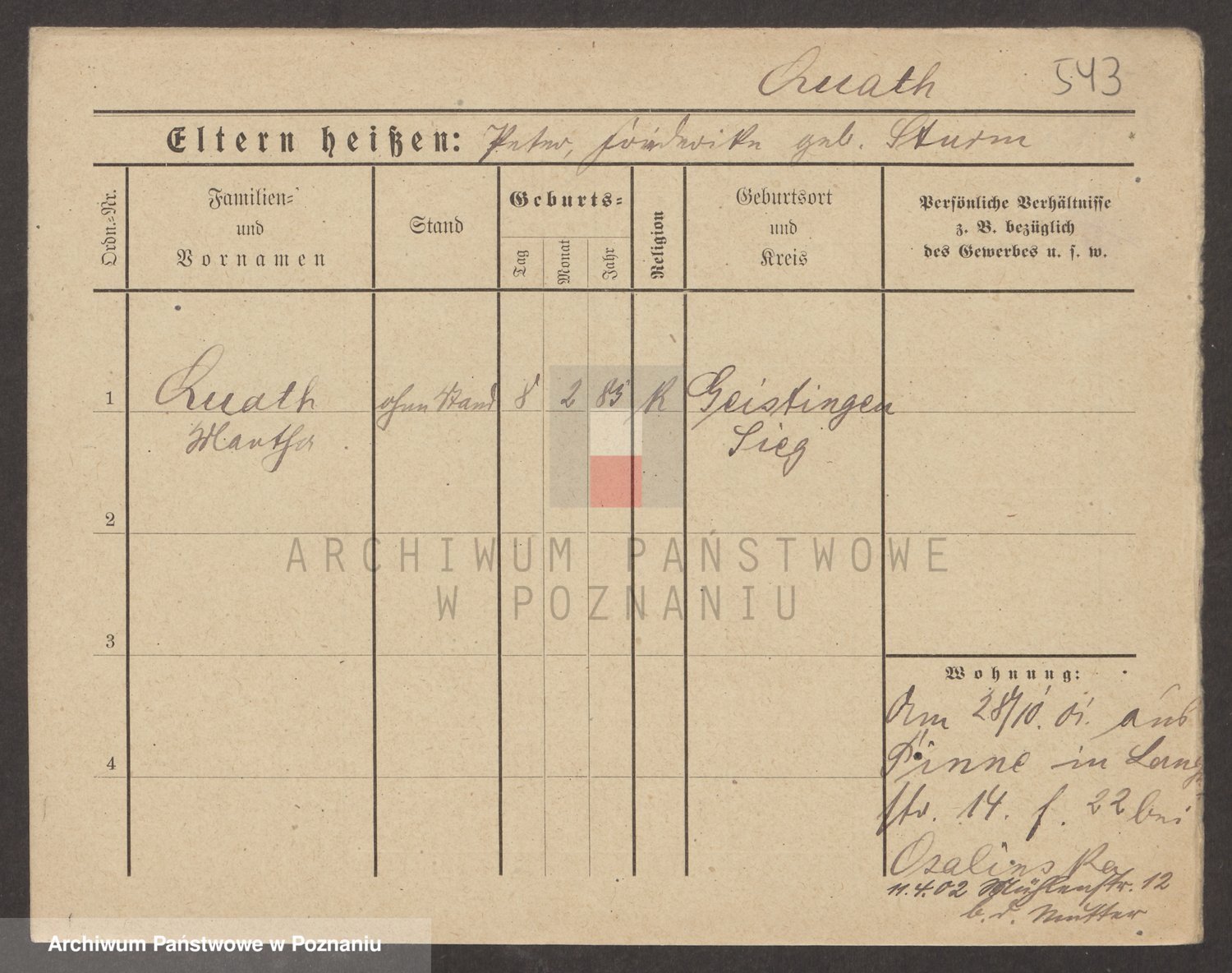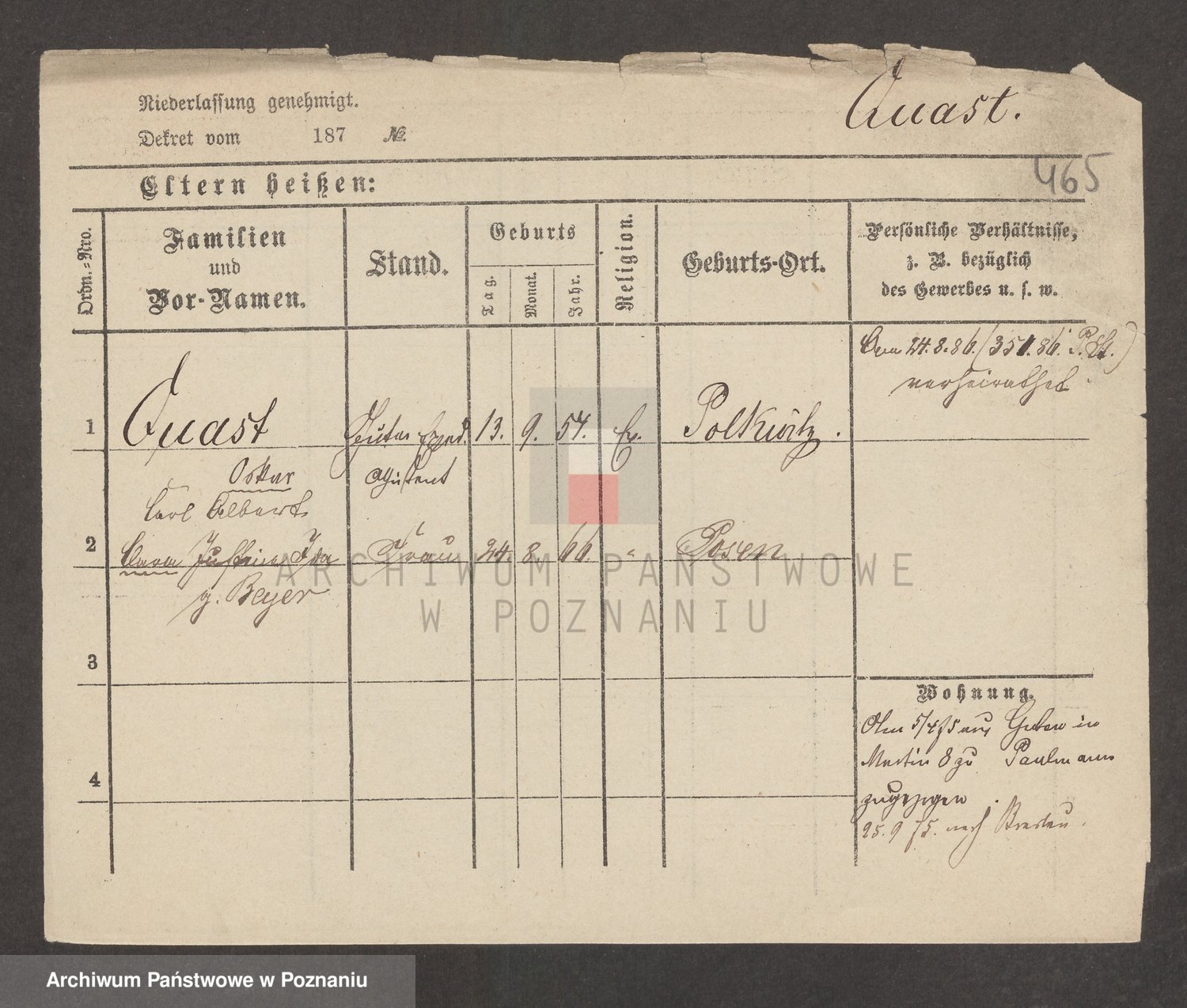 Podgląd karty osobowej dostępny jest po kliknięciu na nazwisko lub ikonkę karty. Można dokonywać powiększenia (ikony na górze) lub przechodzić między kolejnymi skanami (strzałki po bokach).