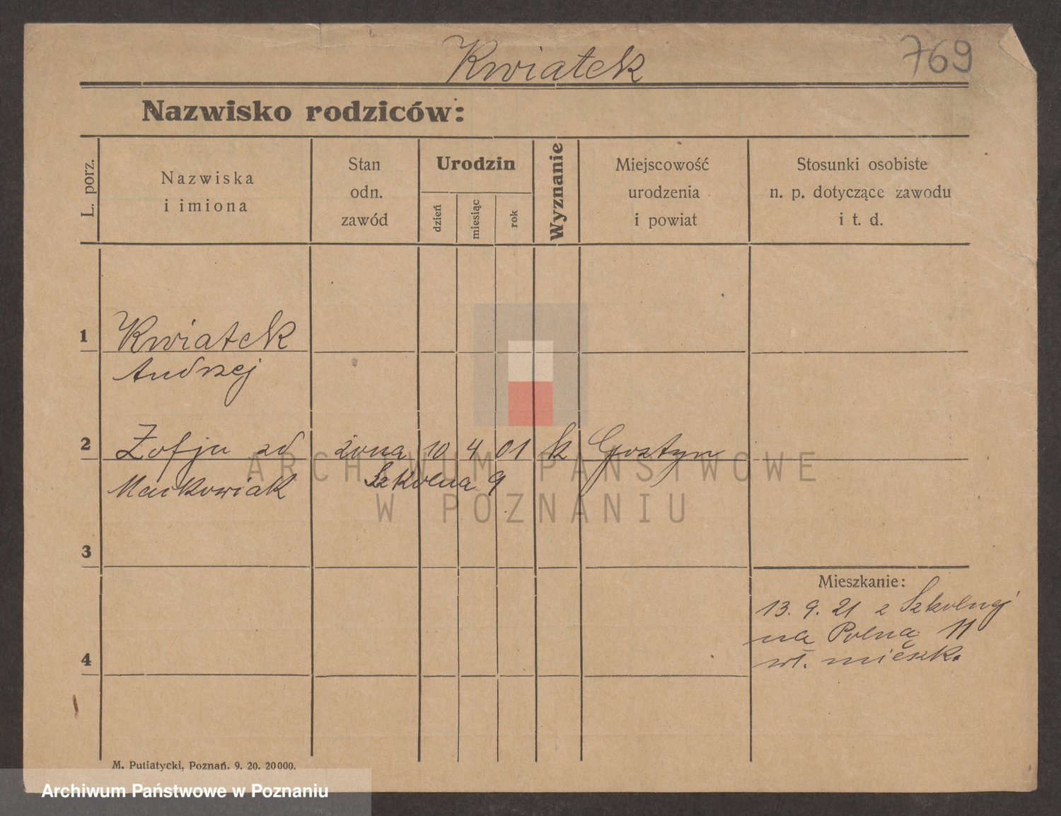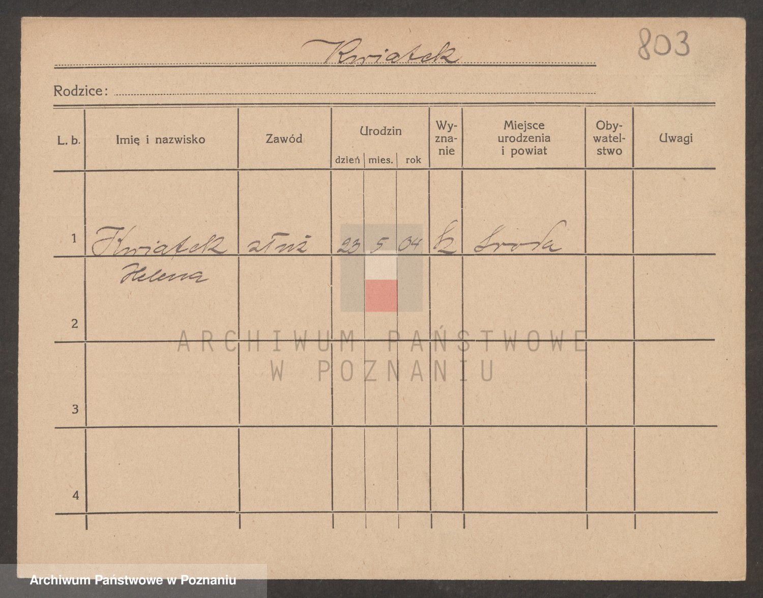 Kwiatek, Zofja Helena