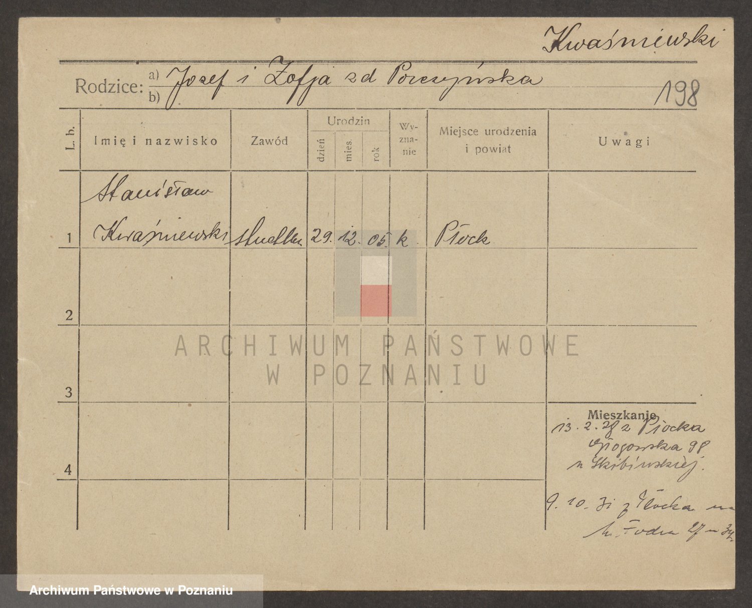 Kwasniewski, Zdzislaus Stanislaus