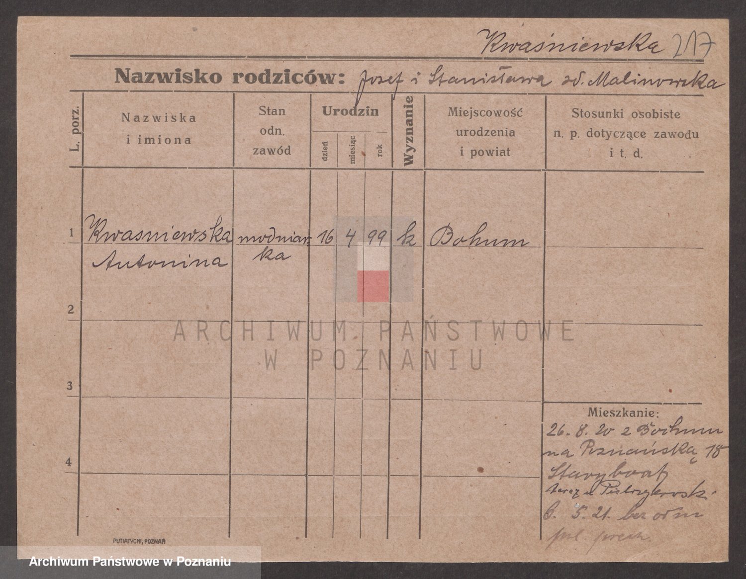 Kwasniewski z d. Olszewska, Antonie