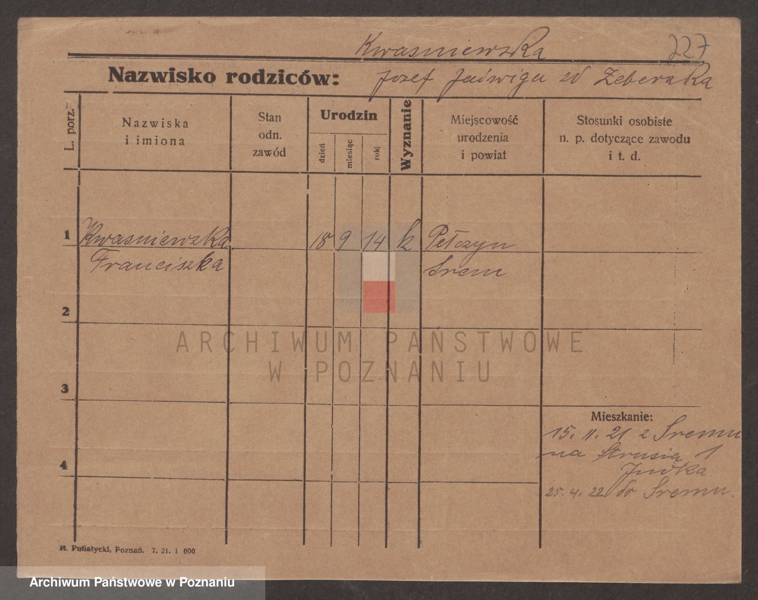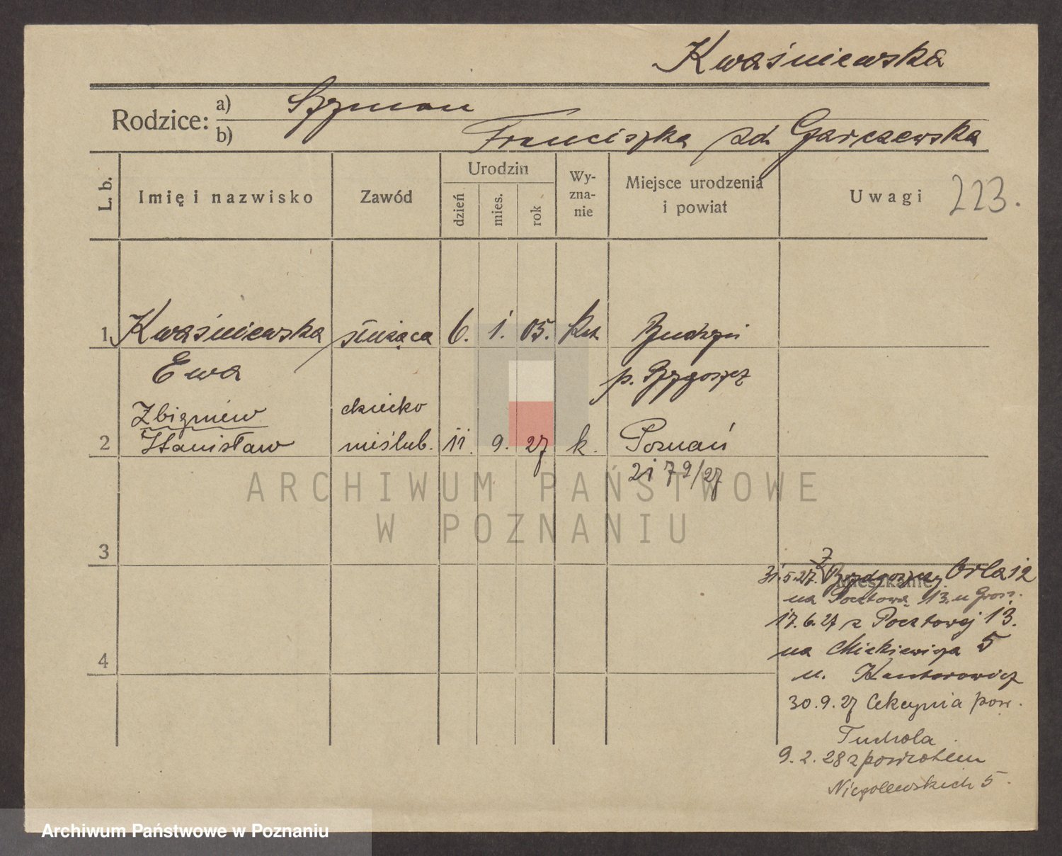 Kwasniak z d. Zakrzewska, Franciszka