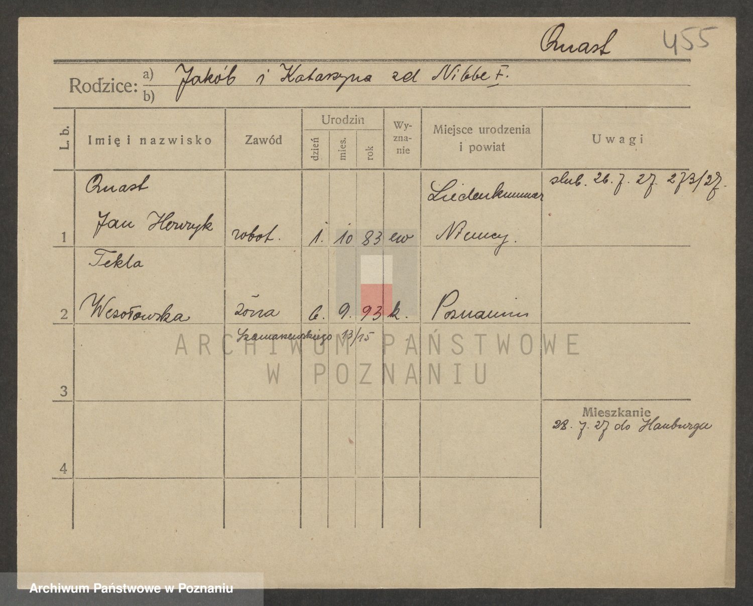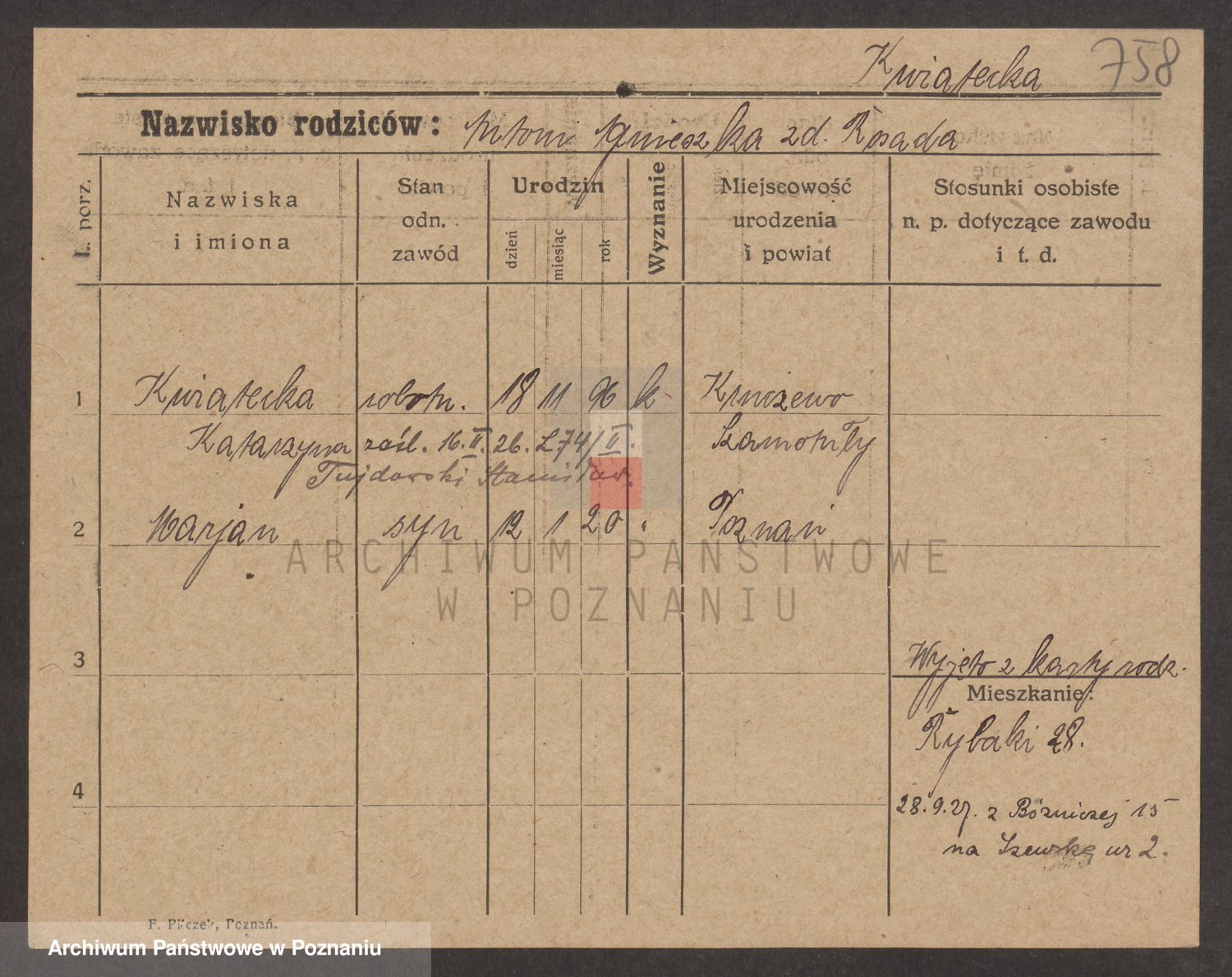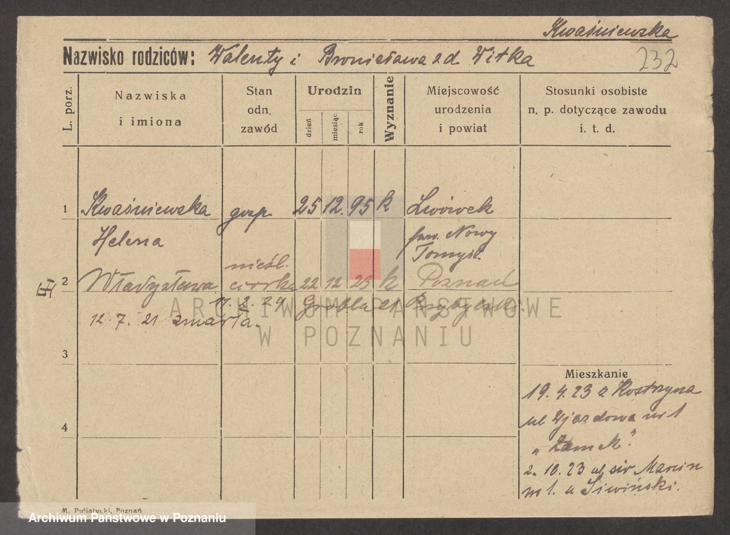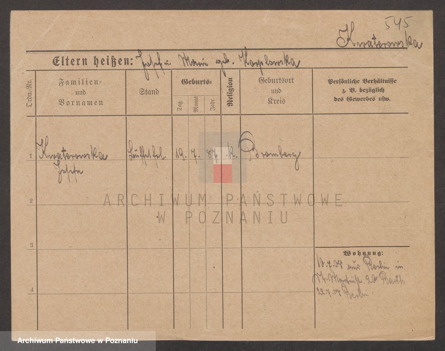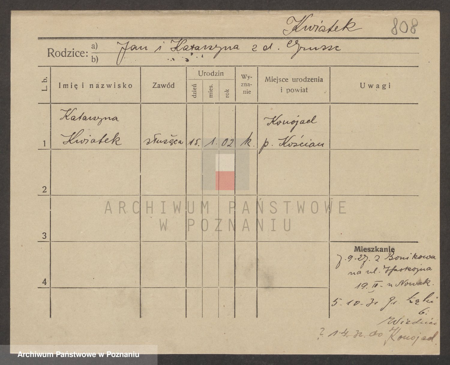 Kwaśniewski z d. Błażejewska, Catharina