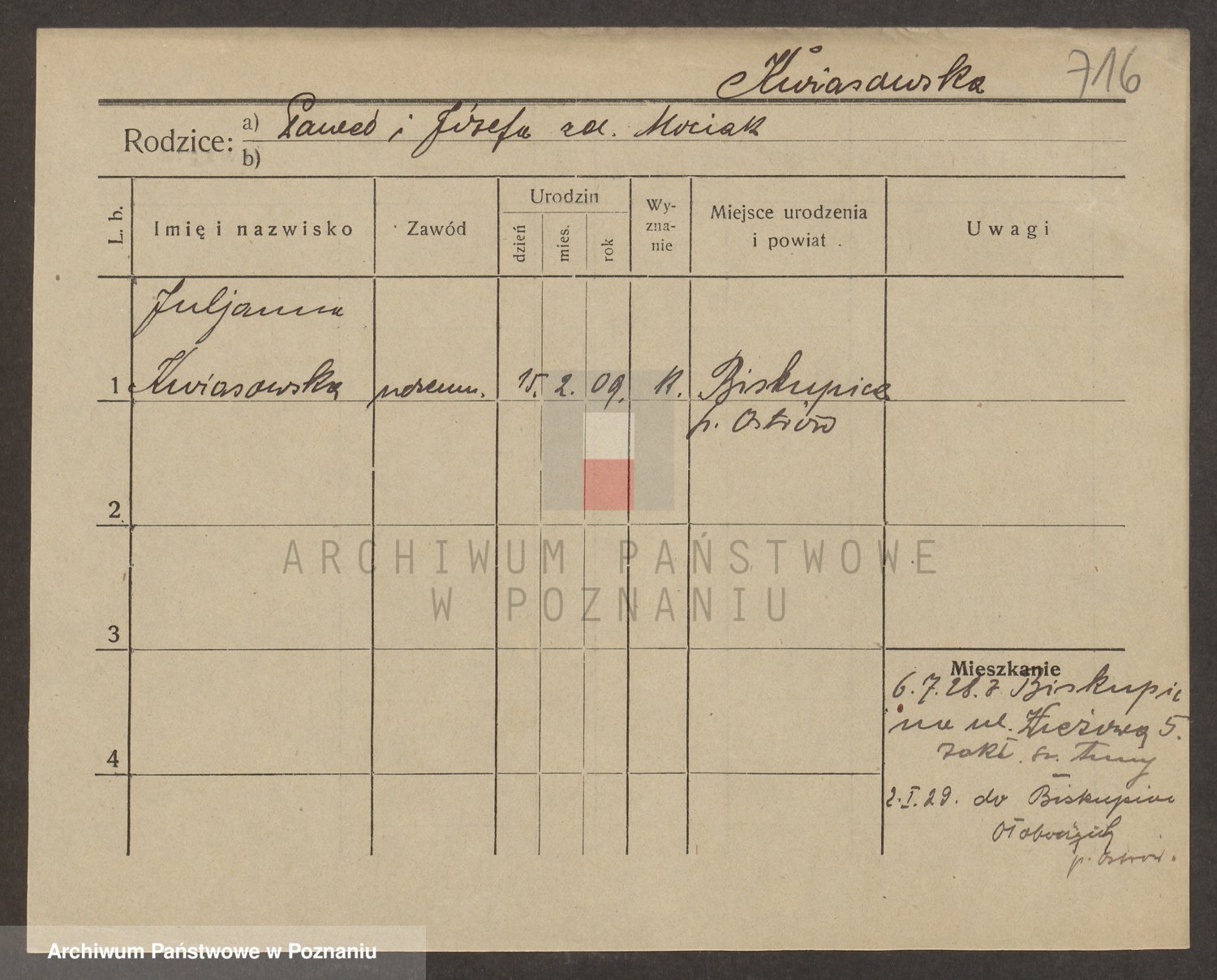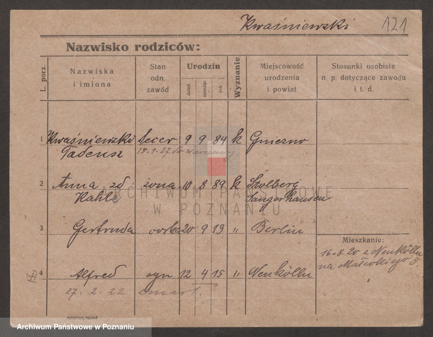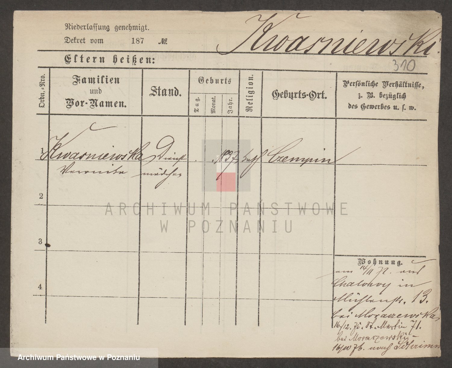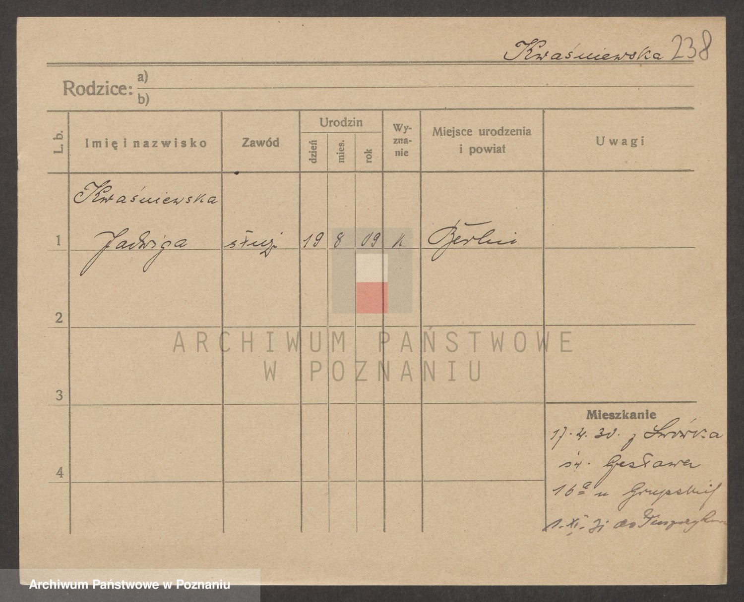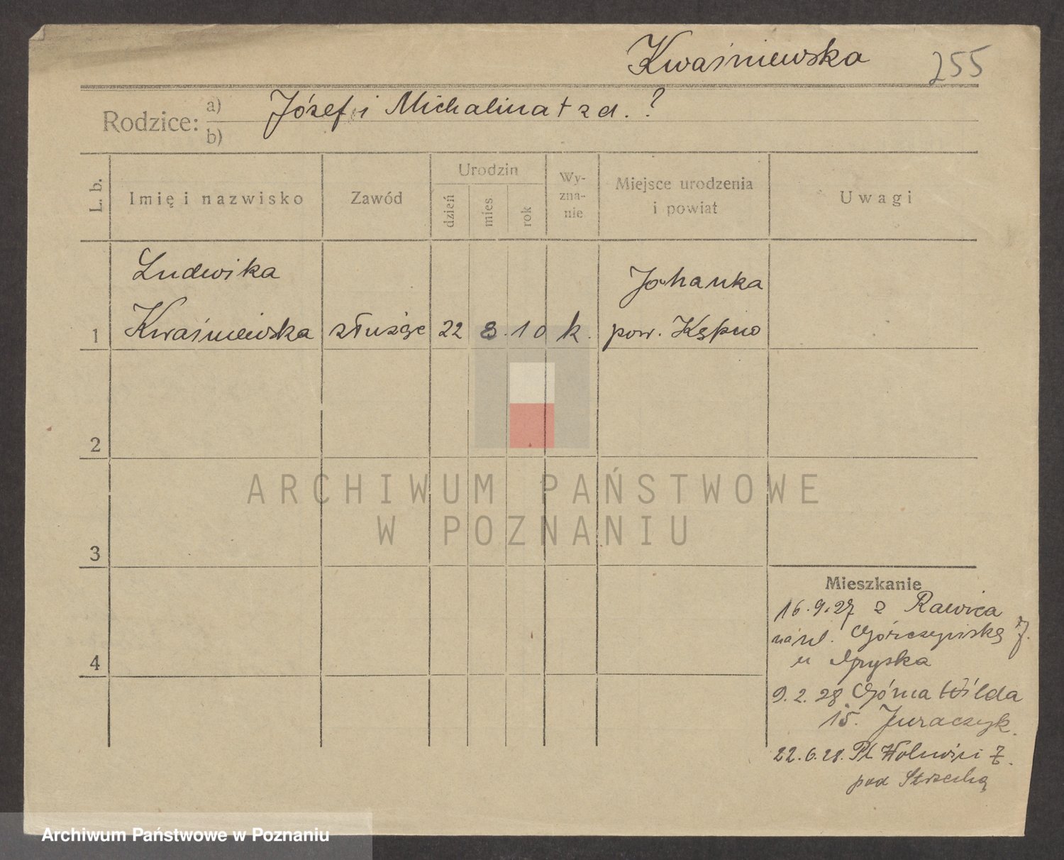 Kwasniewski z d. Jurdzinska, Franziska