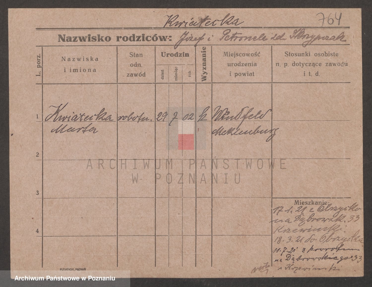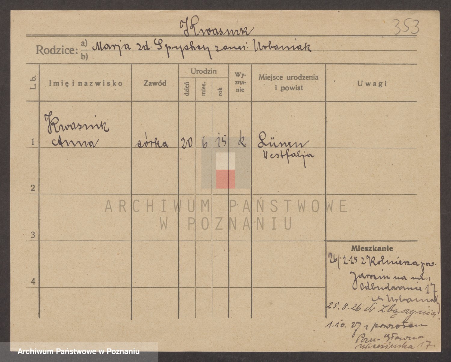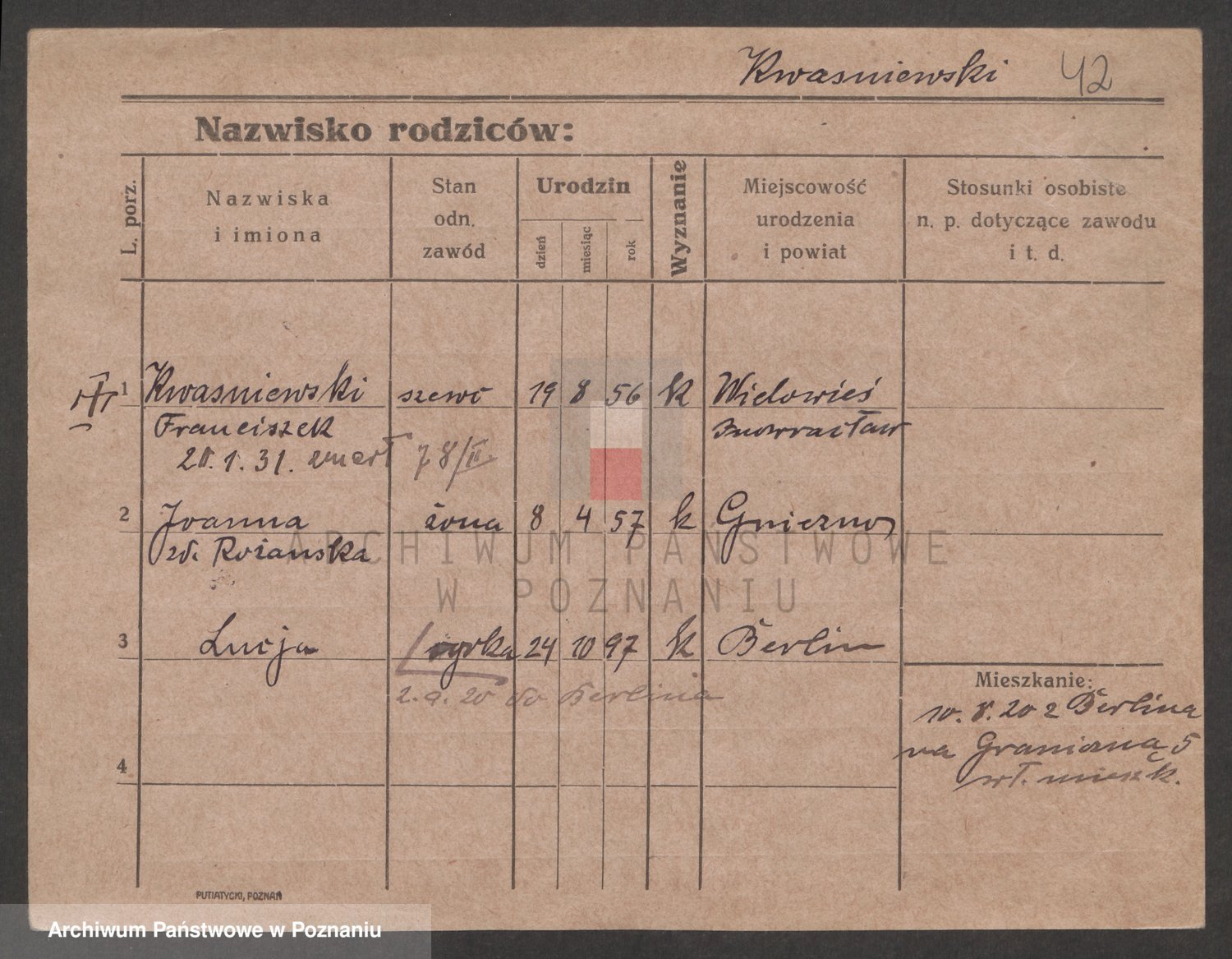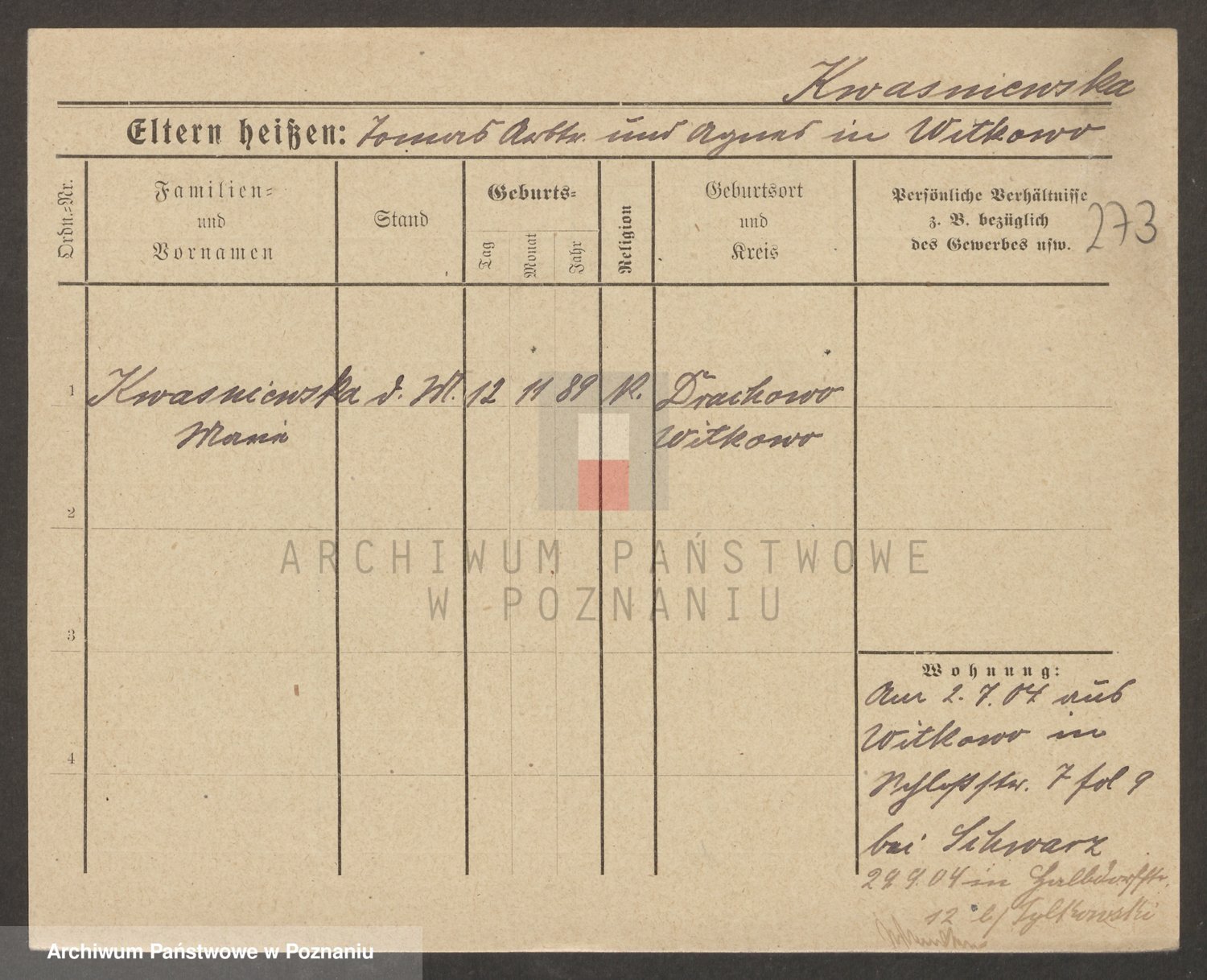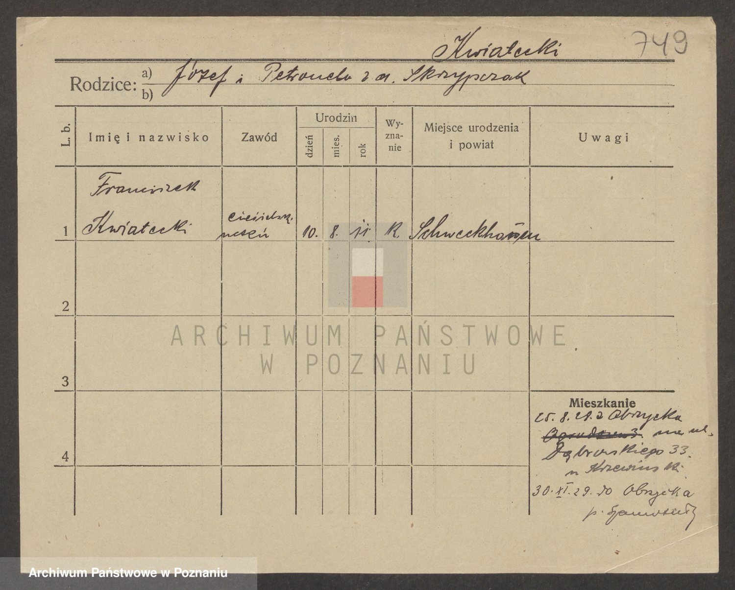 Kwasniewski z d. Jurdzinska, Franziska