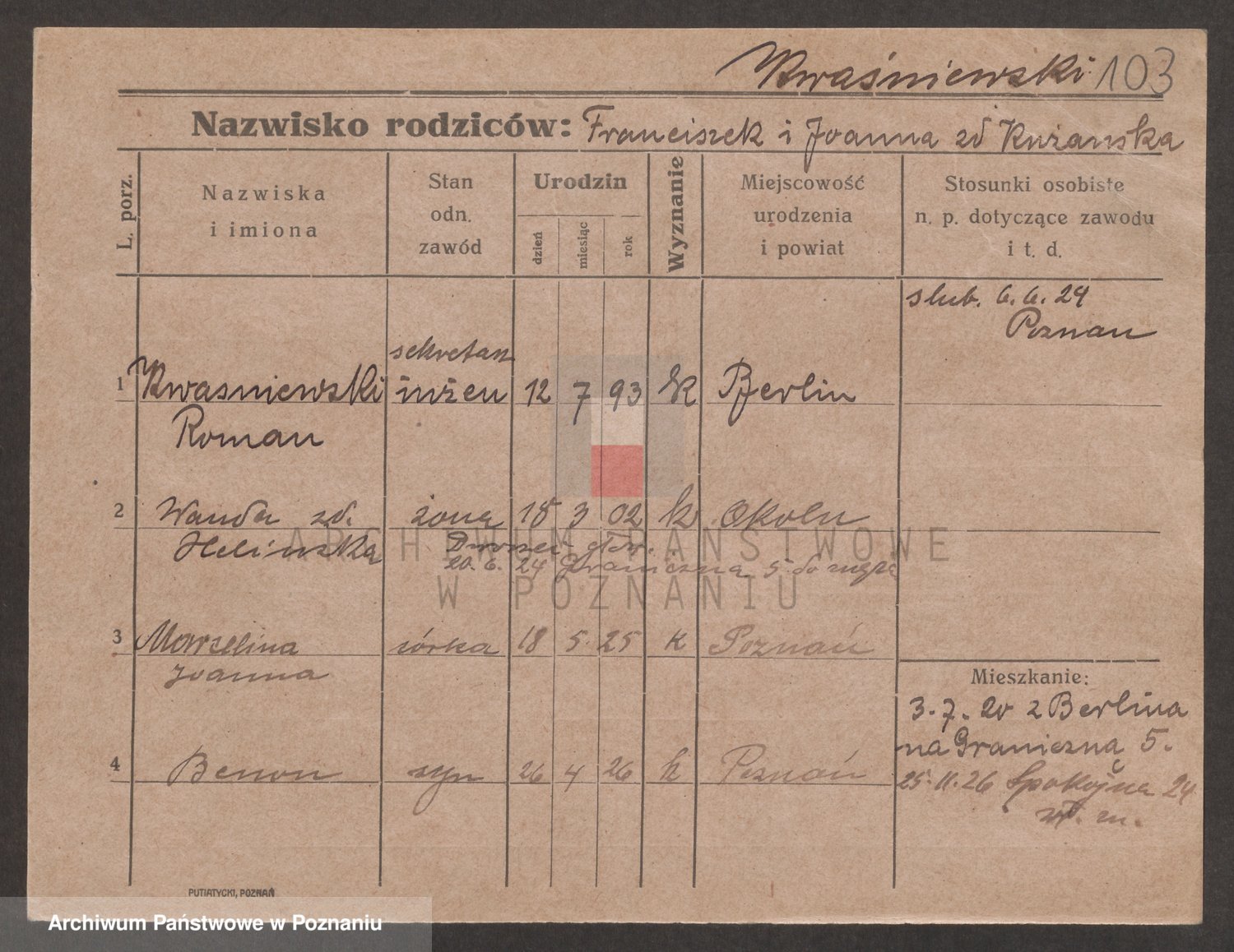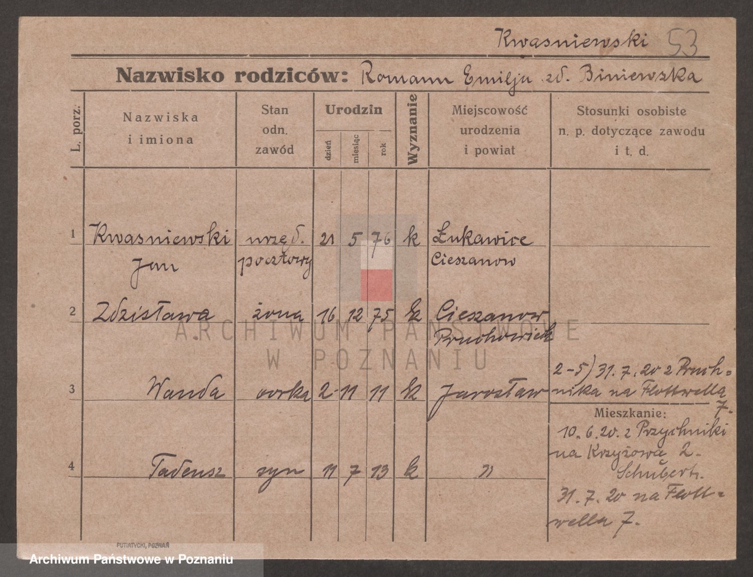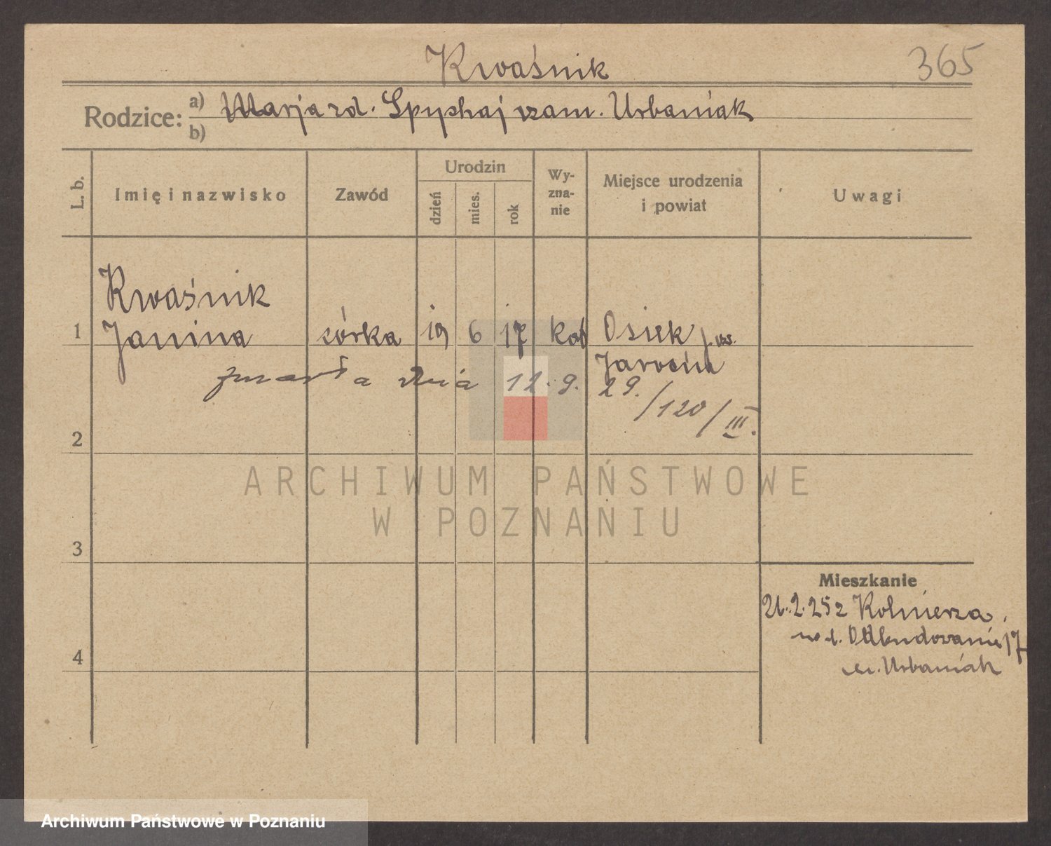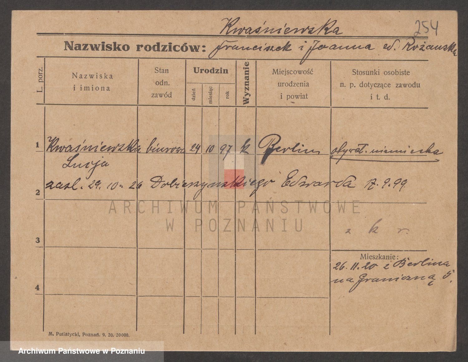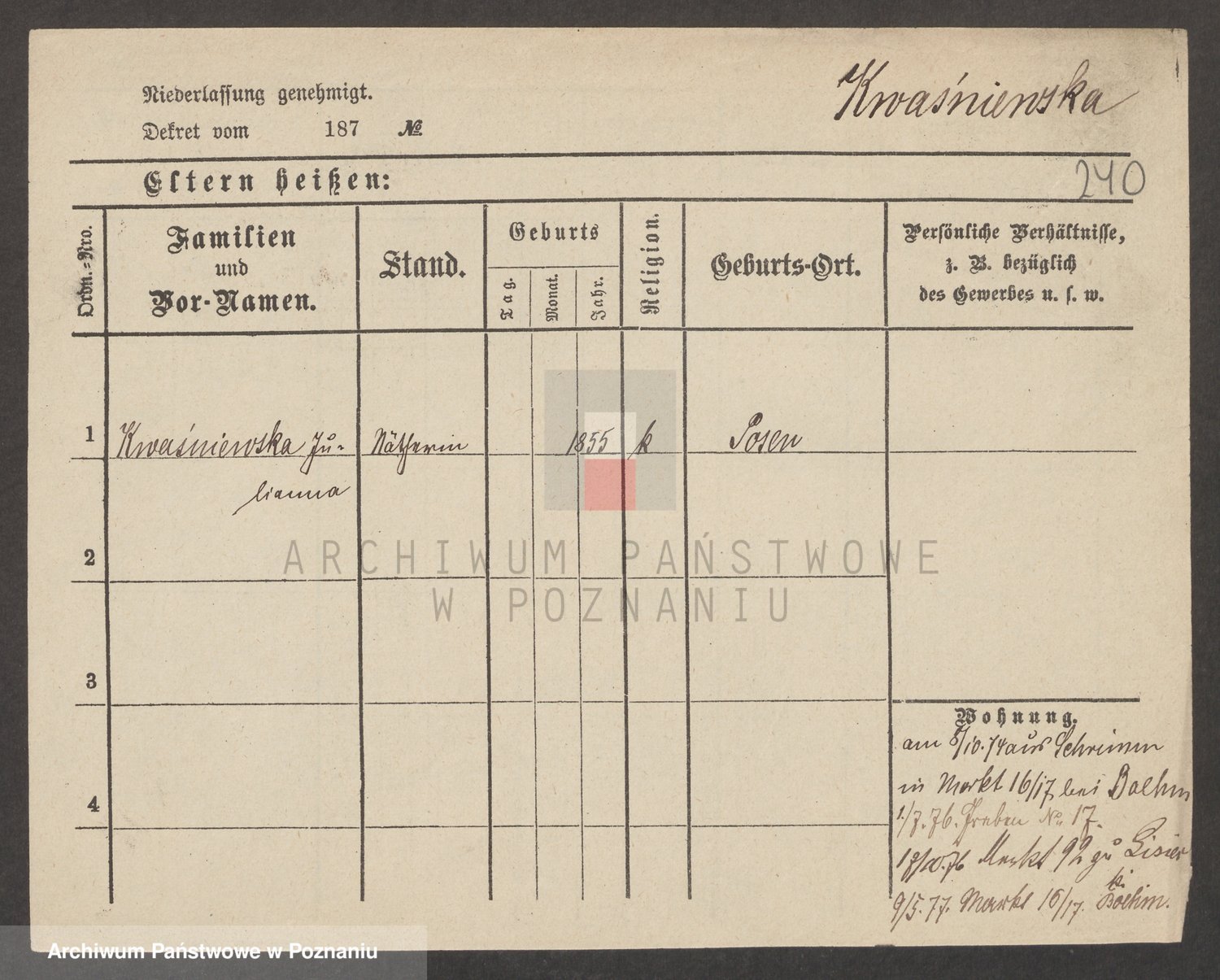Kwasniewski z d. Jurdzinska, Franziska