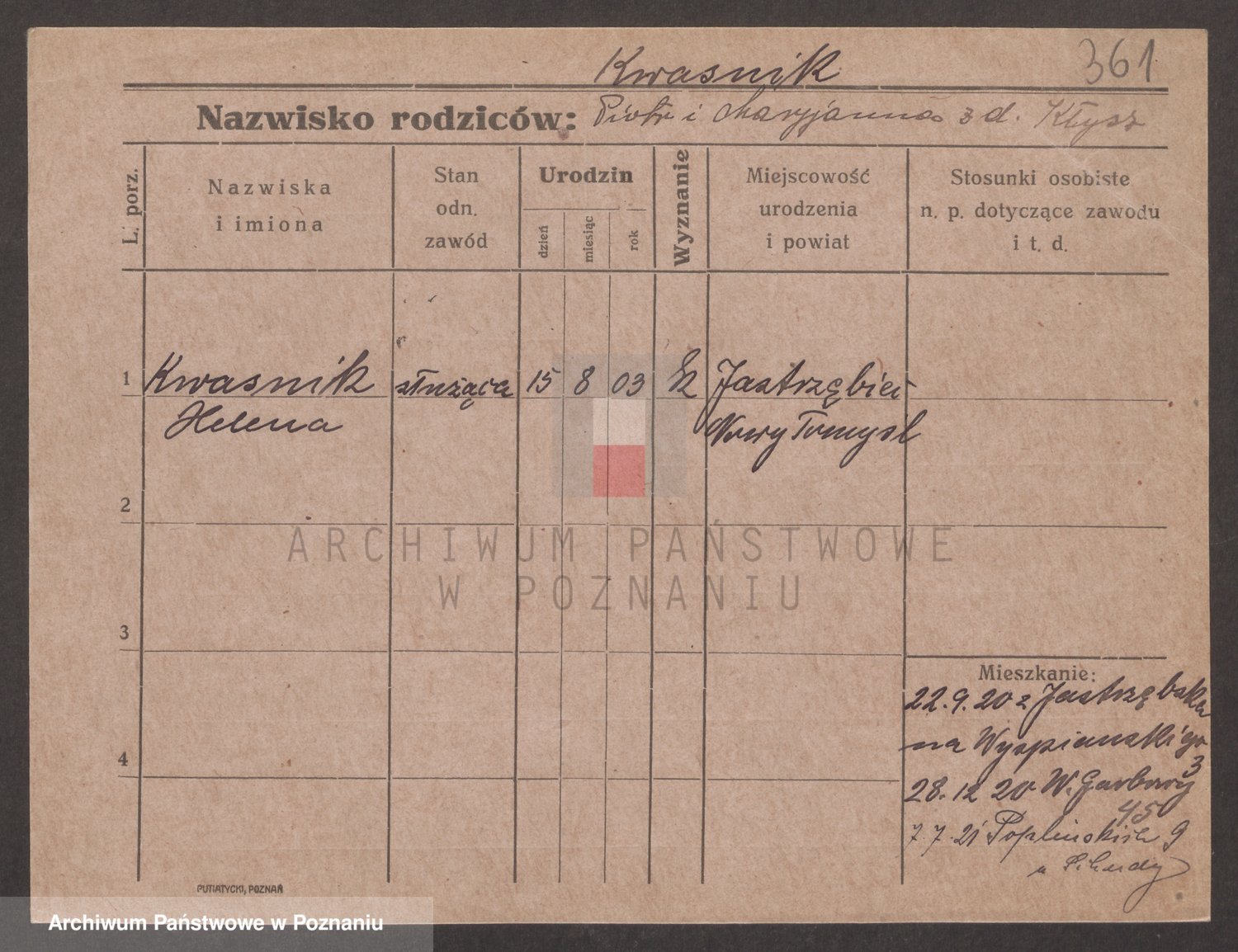 Kwasnicka z d. Jozwiak, Marie