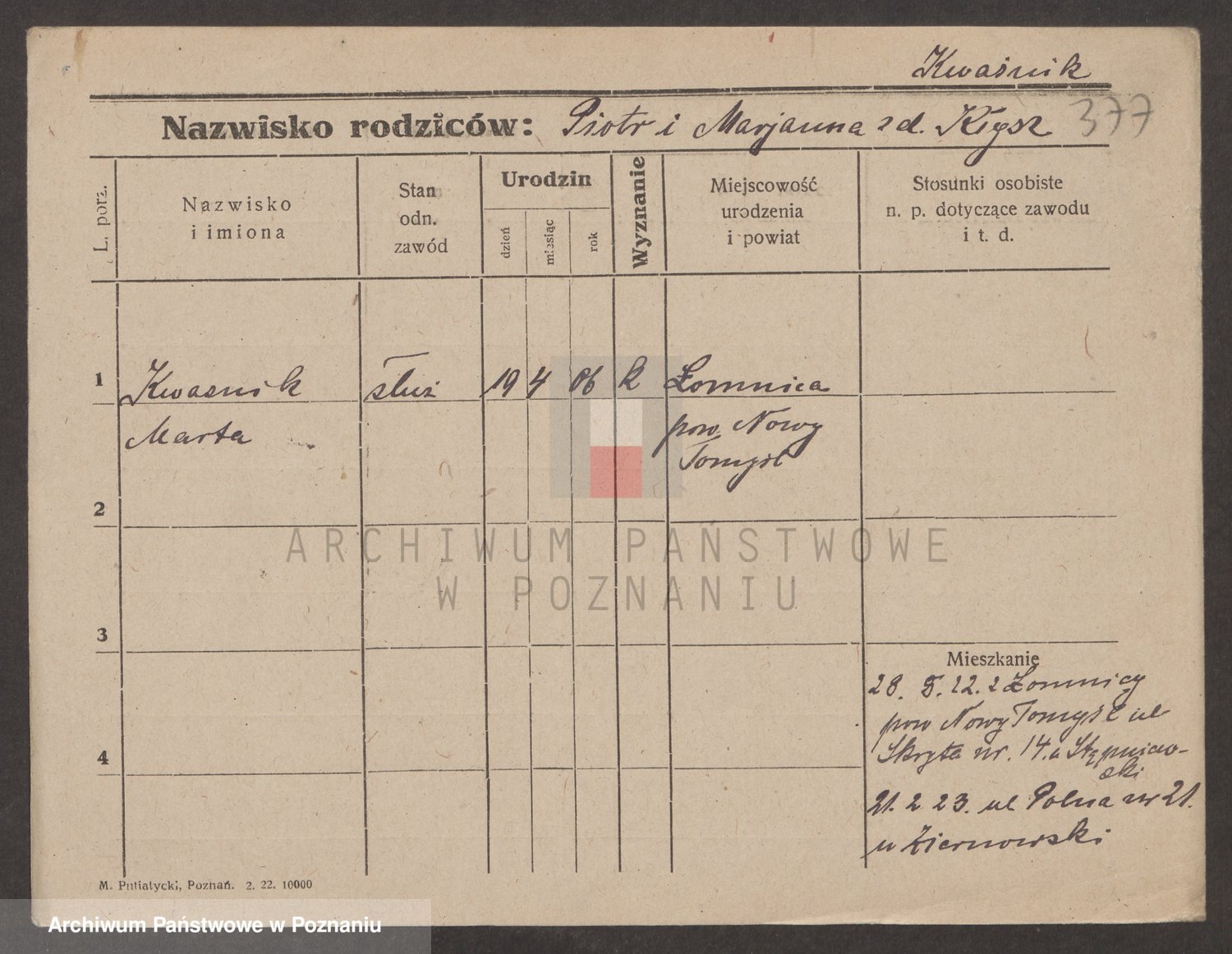 Kwaśniewski z d. Wróblewska, Marja