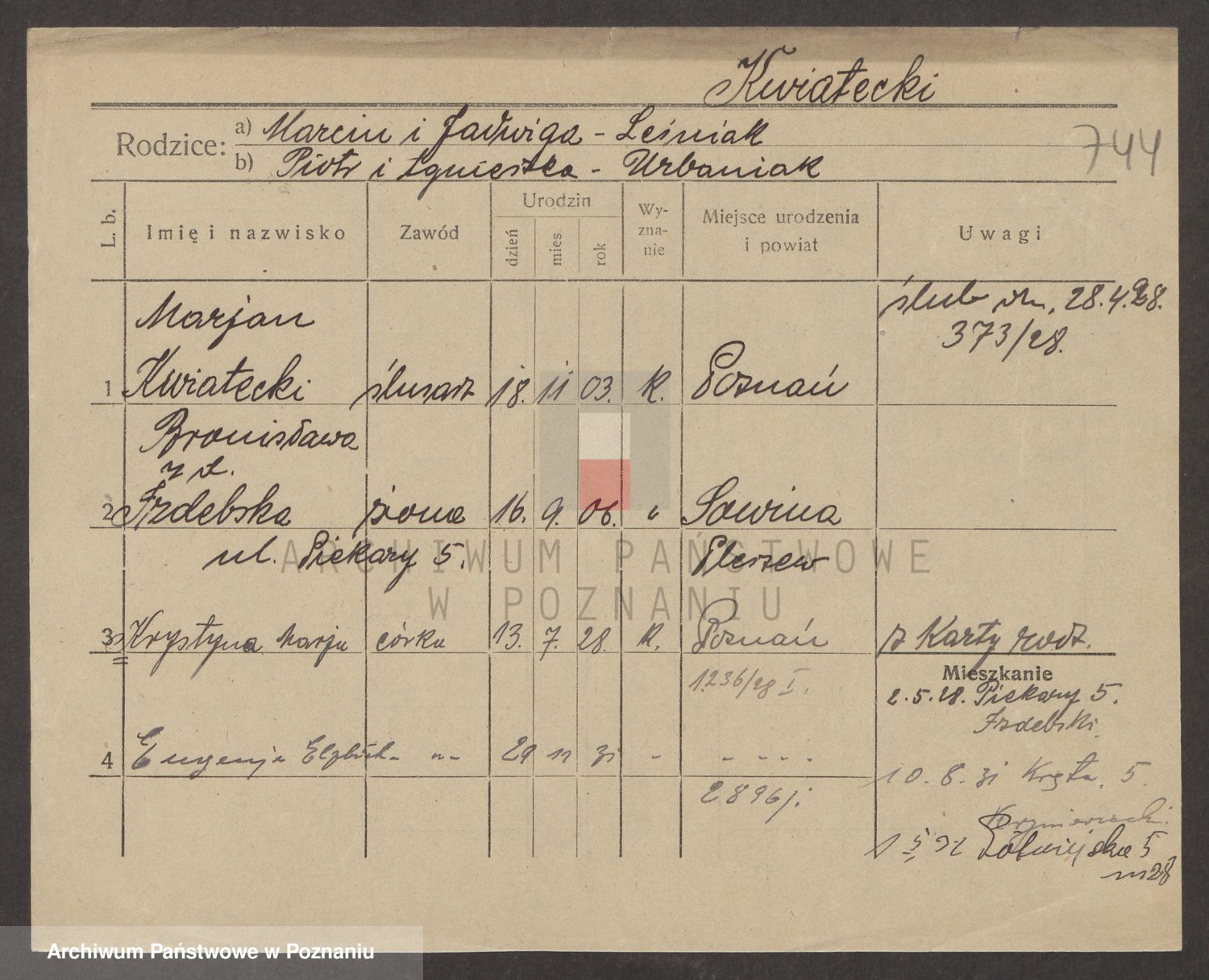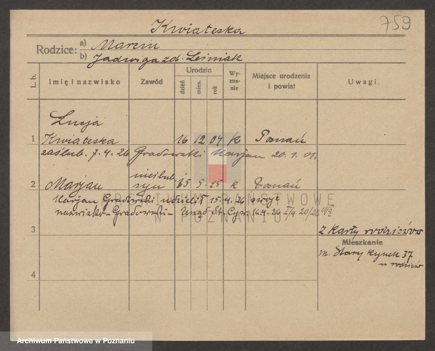 Kwiatek z d. Parobkiewicz, Marie