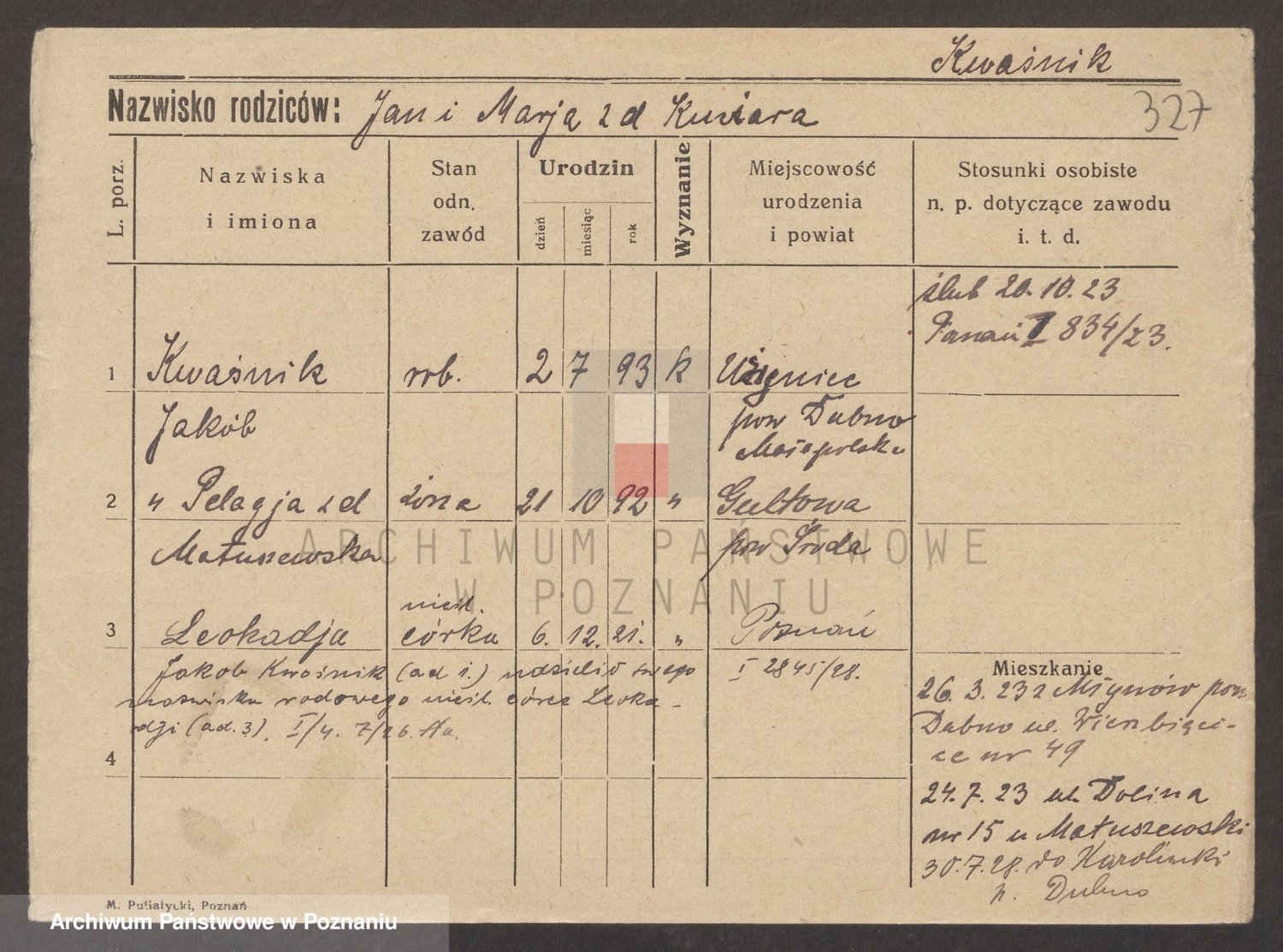 Kwaśniak, Leokadja Marja