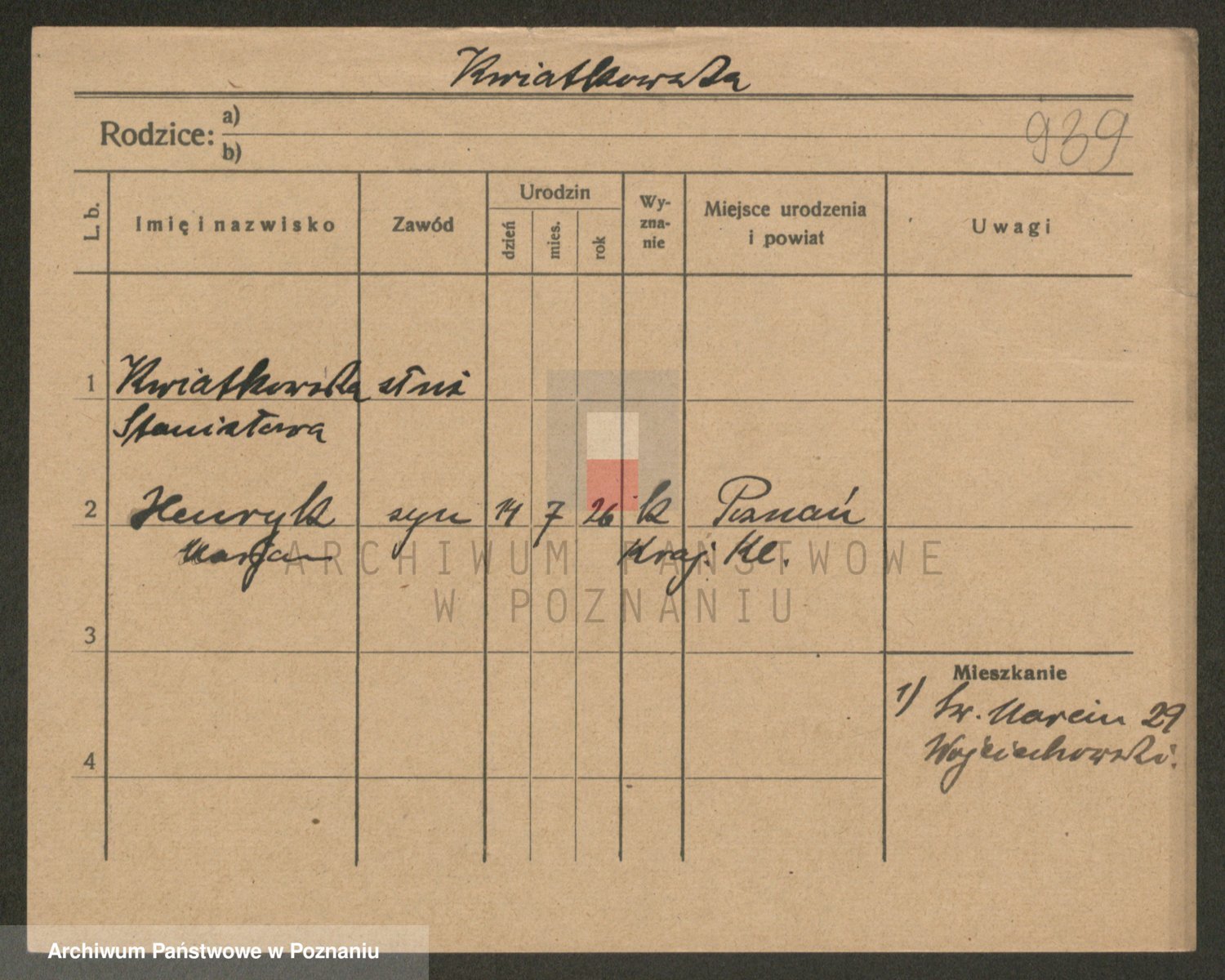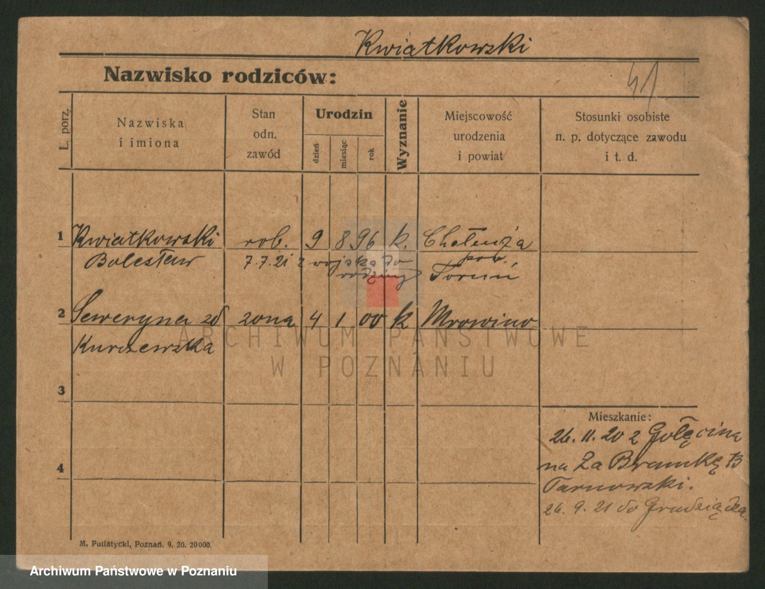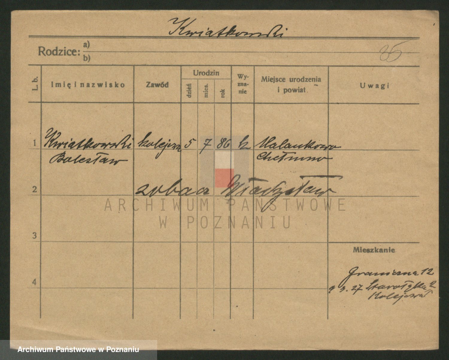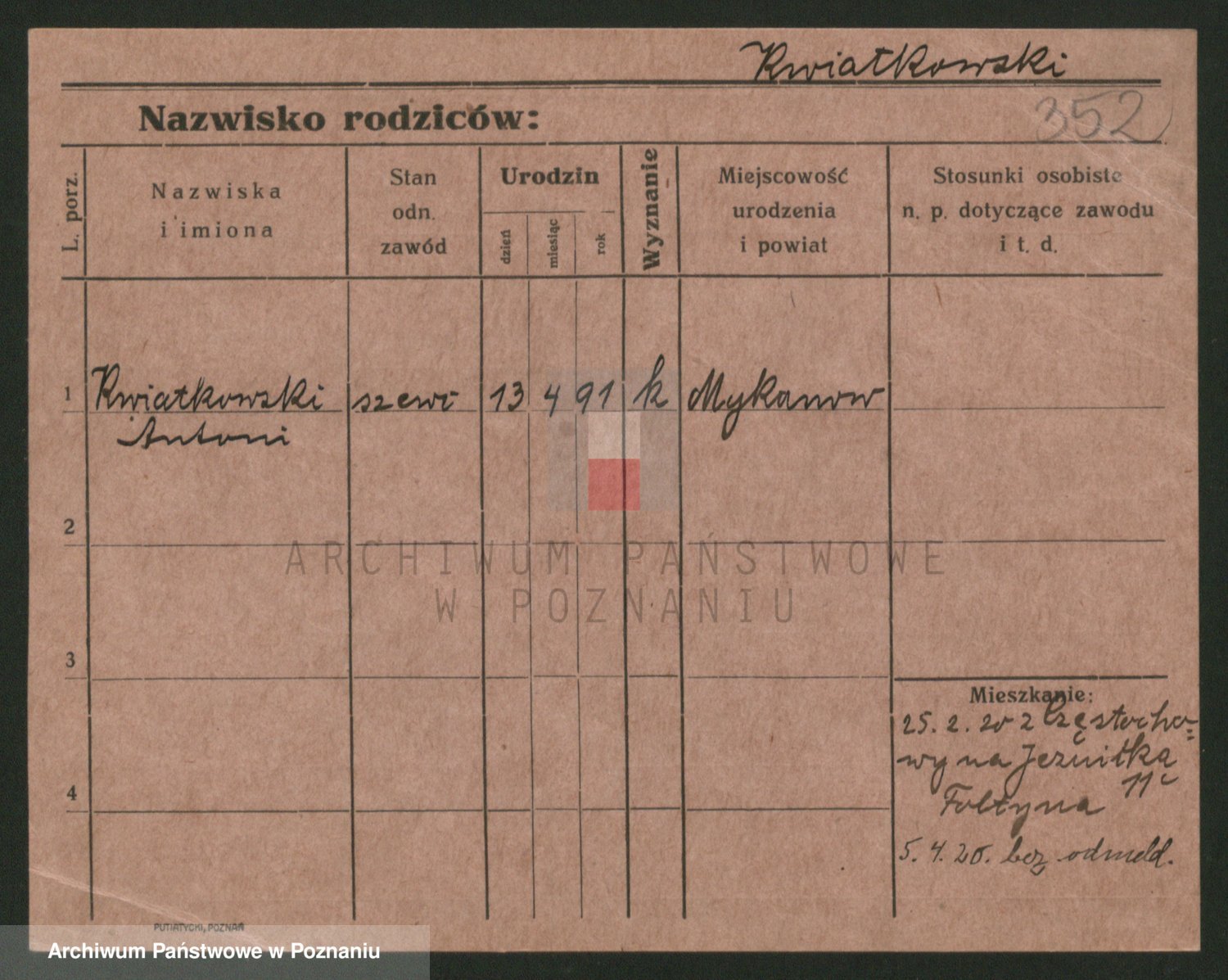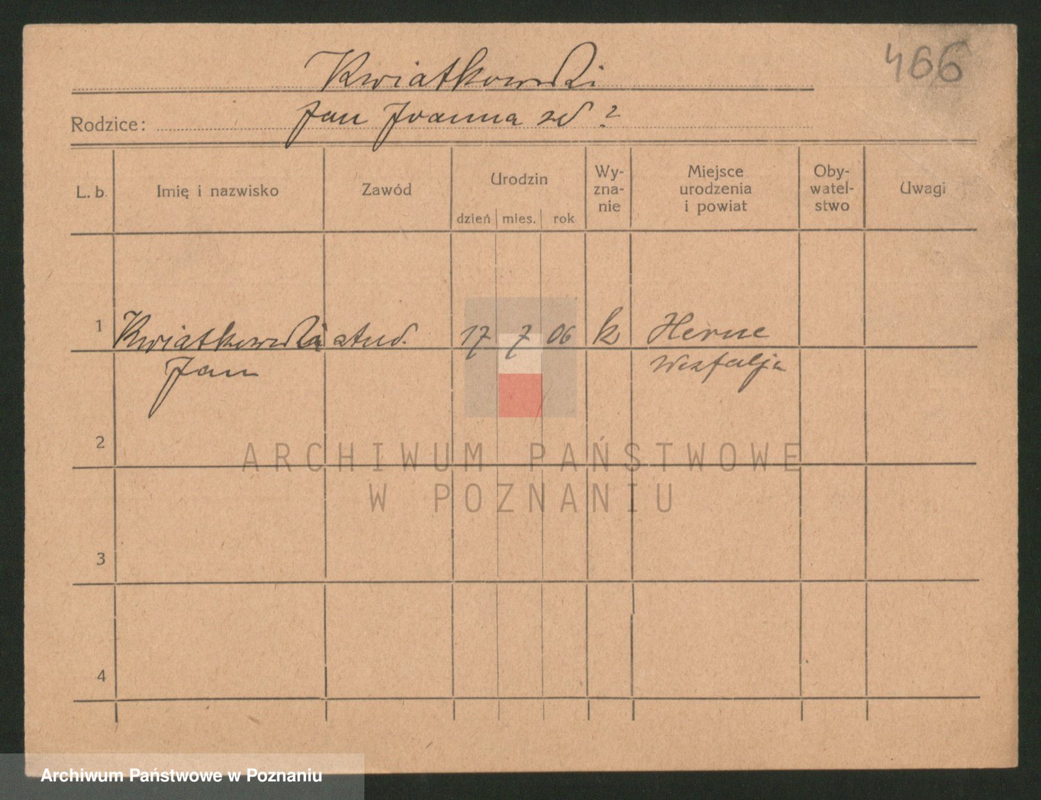 Podgląd karty osobowej dostępny jest po kliknięciu na nazwisko lub ikonkę karty. Można dokonywać powiększenia (ikony na górze) lub przechodzić między kolejnymi skanami (strzałki po bokach).