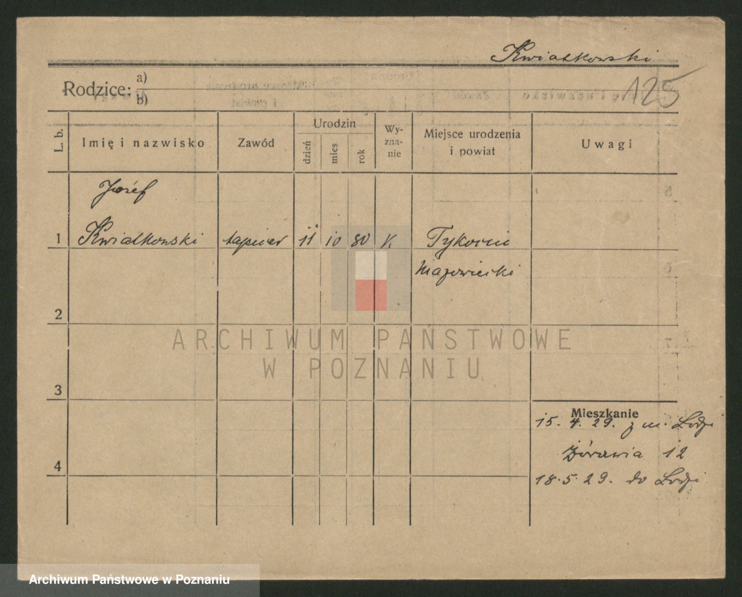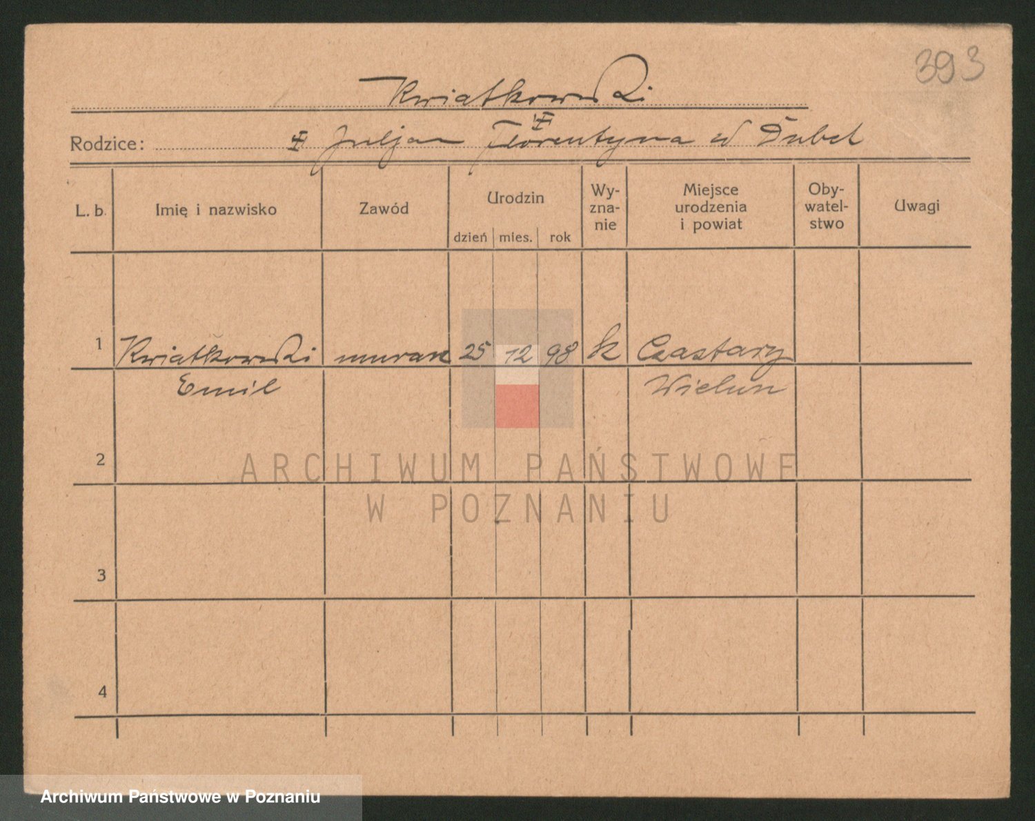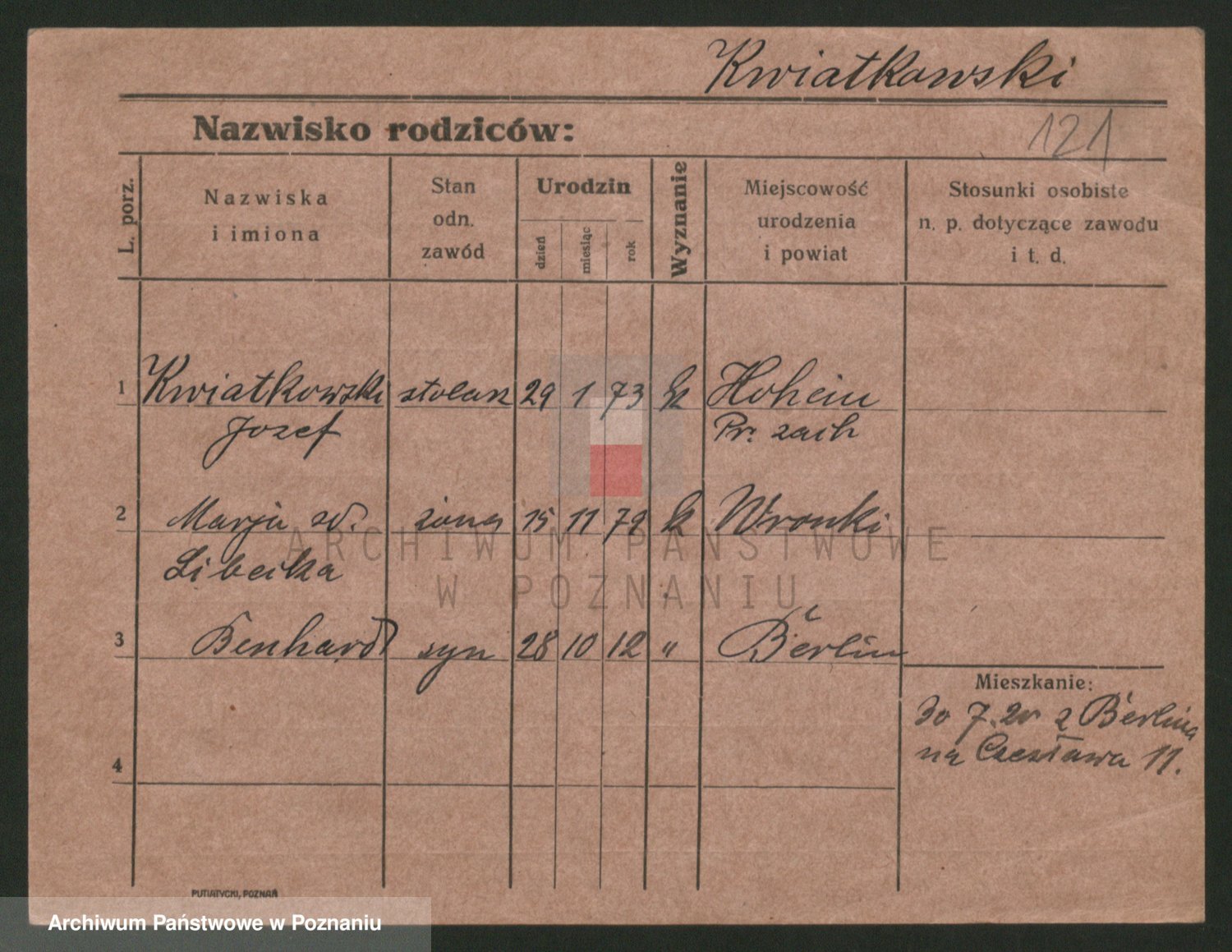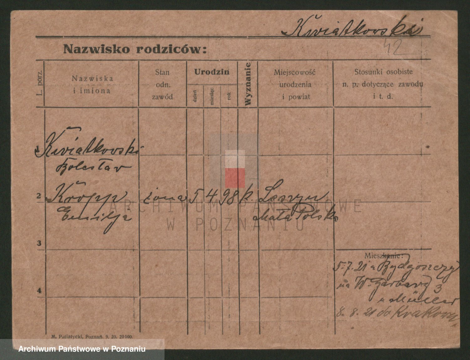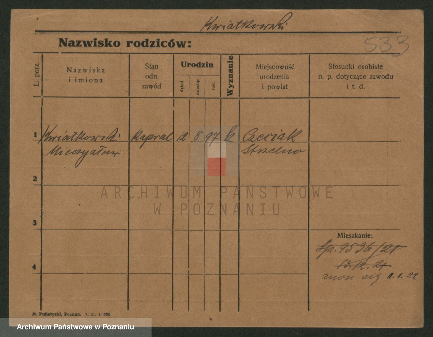 Podgląd karty osobowej dostępny jest po kliknięciu na nazwisko lub ikonkę karty. Można dokonywać powiększenia (ikony na górze) lub przechodzić między kolejnymi skanami (strzałki po bokach).