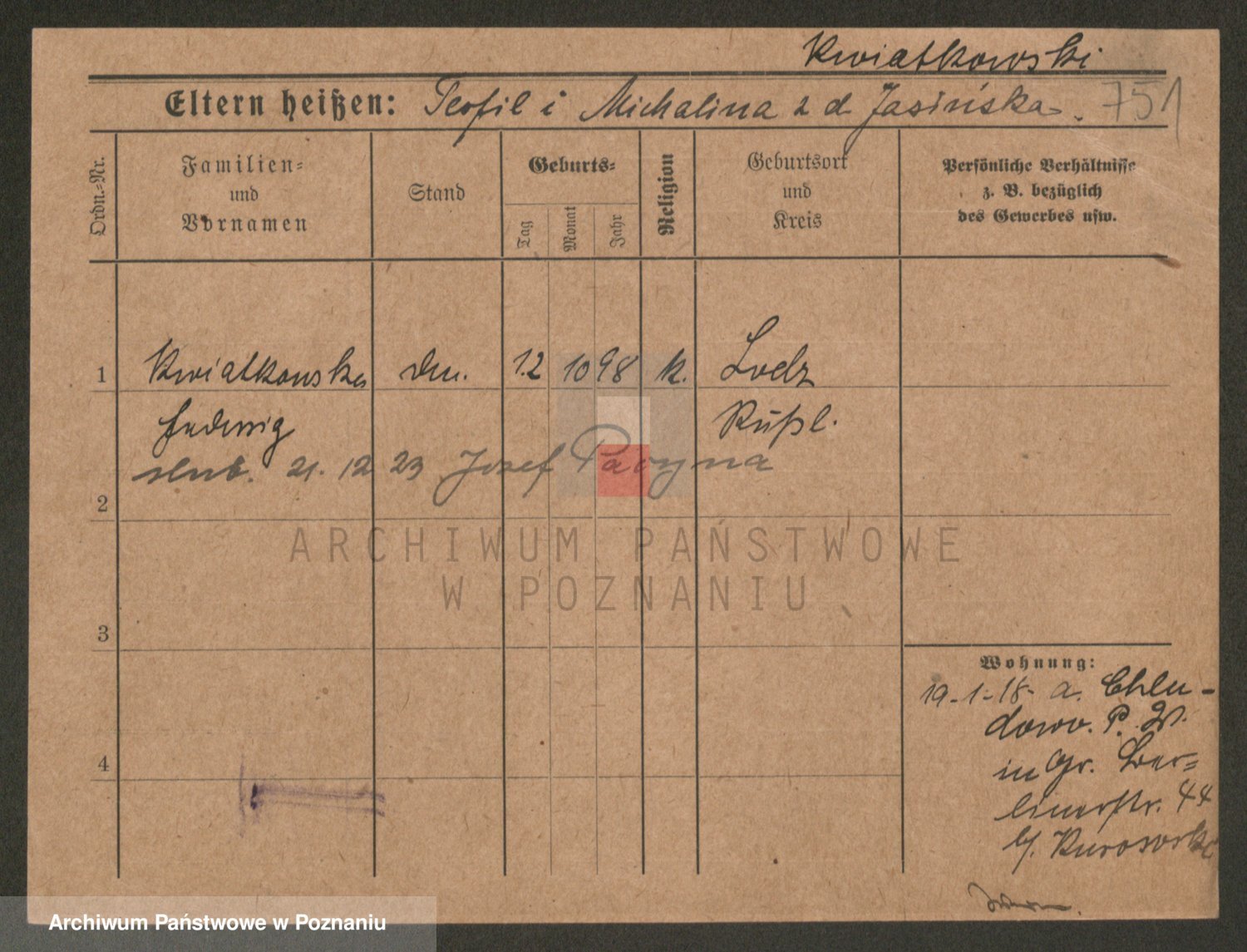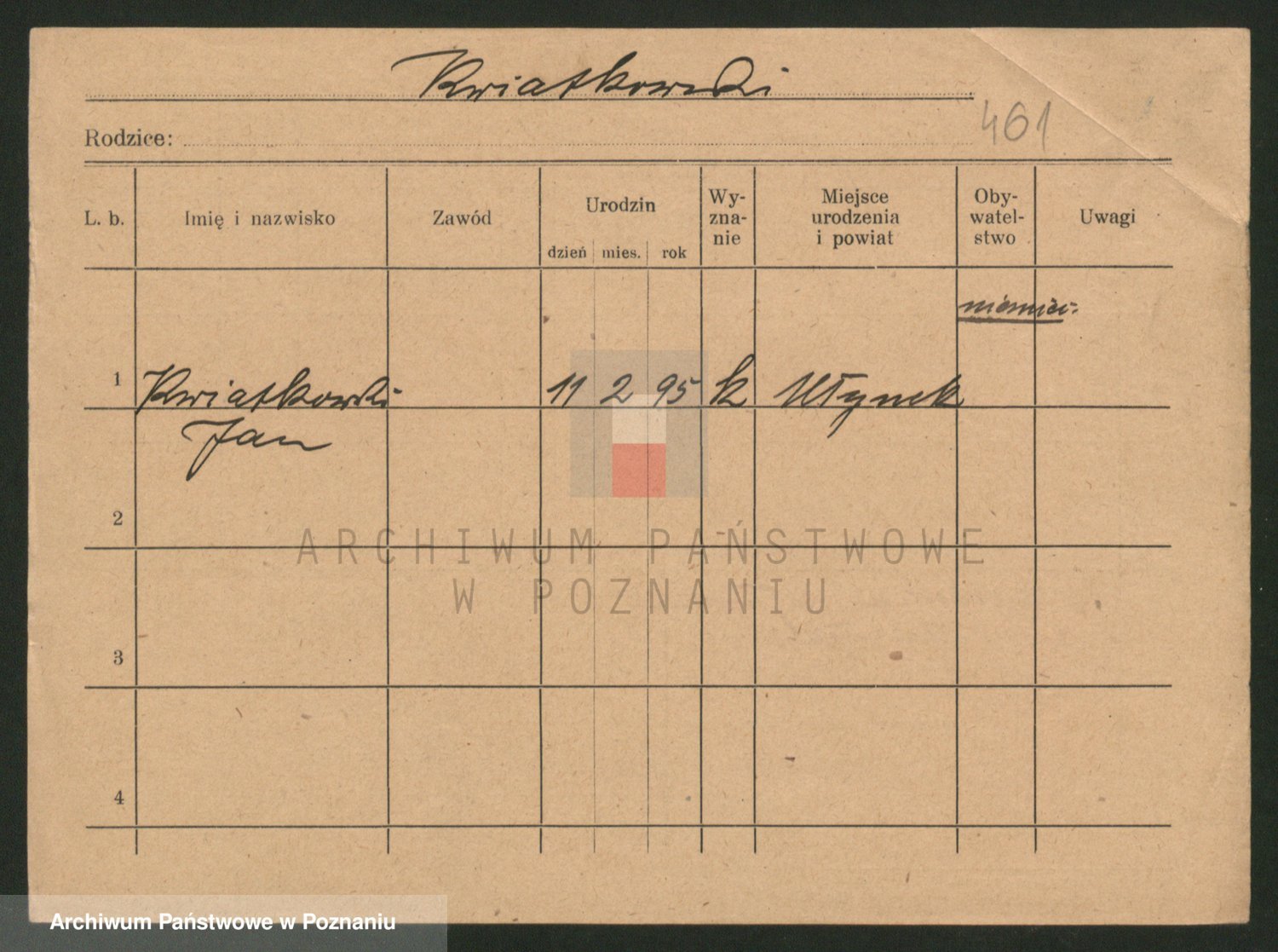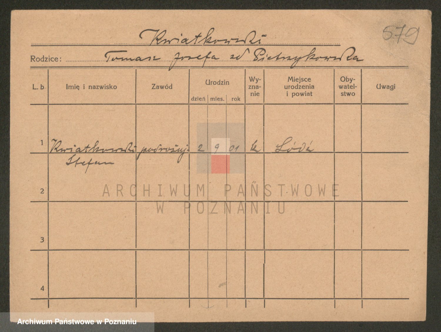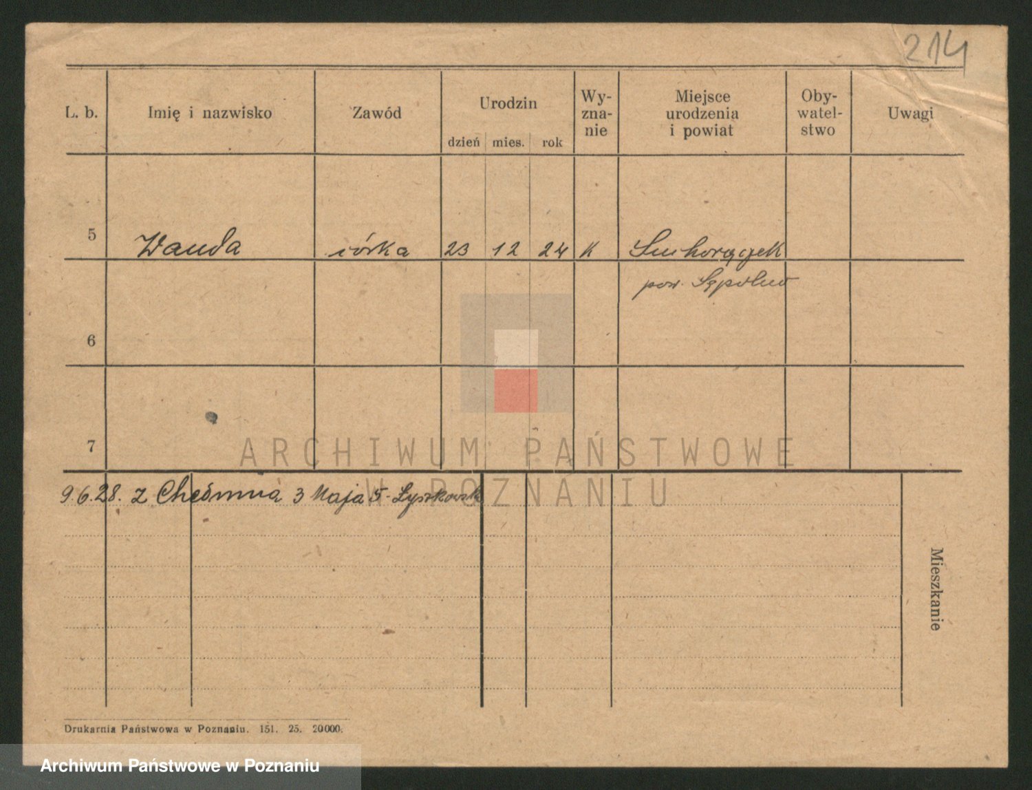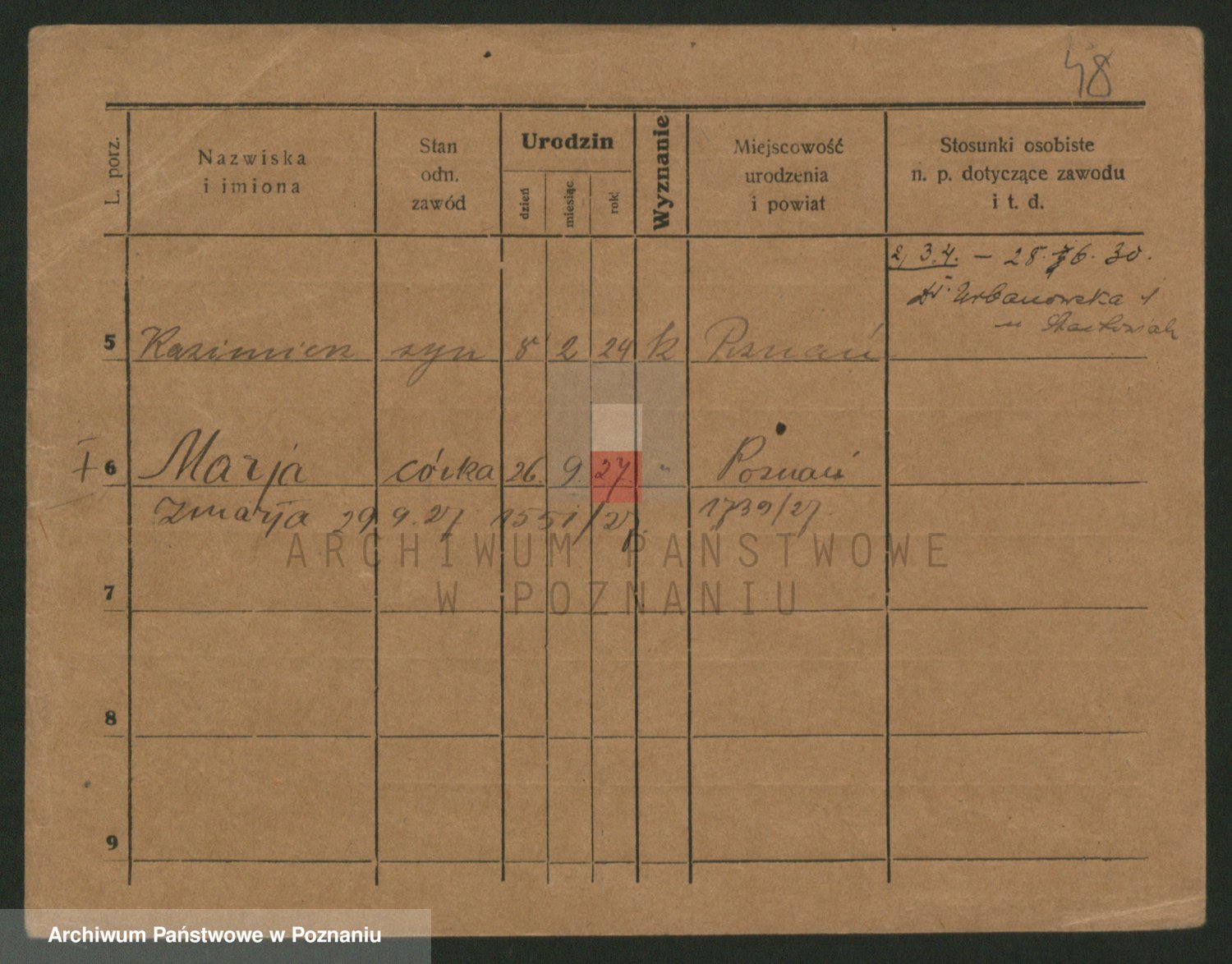 Podgląd karty osobowej dostępny jest po kliknięciu na nazwisko lub ikonkę karty. Można dokonywać powiększenia (ikony na górze) lub przechodzić między kolejnymi skanami (strzałki po bokach).