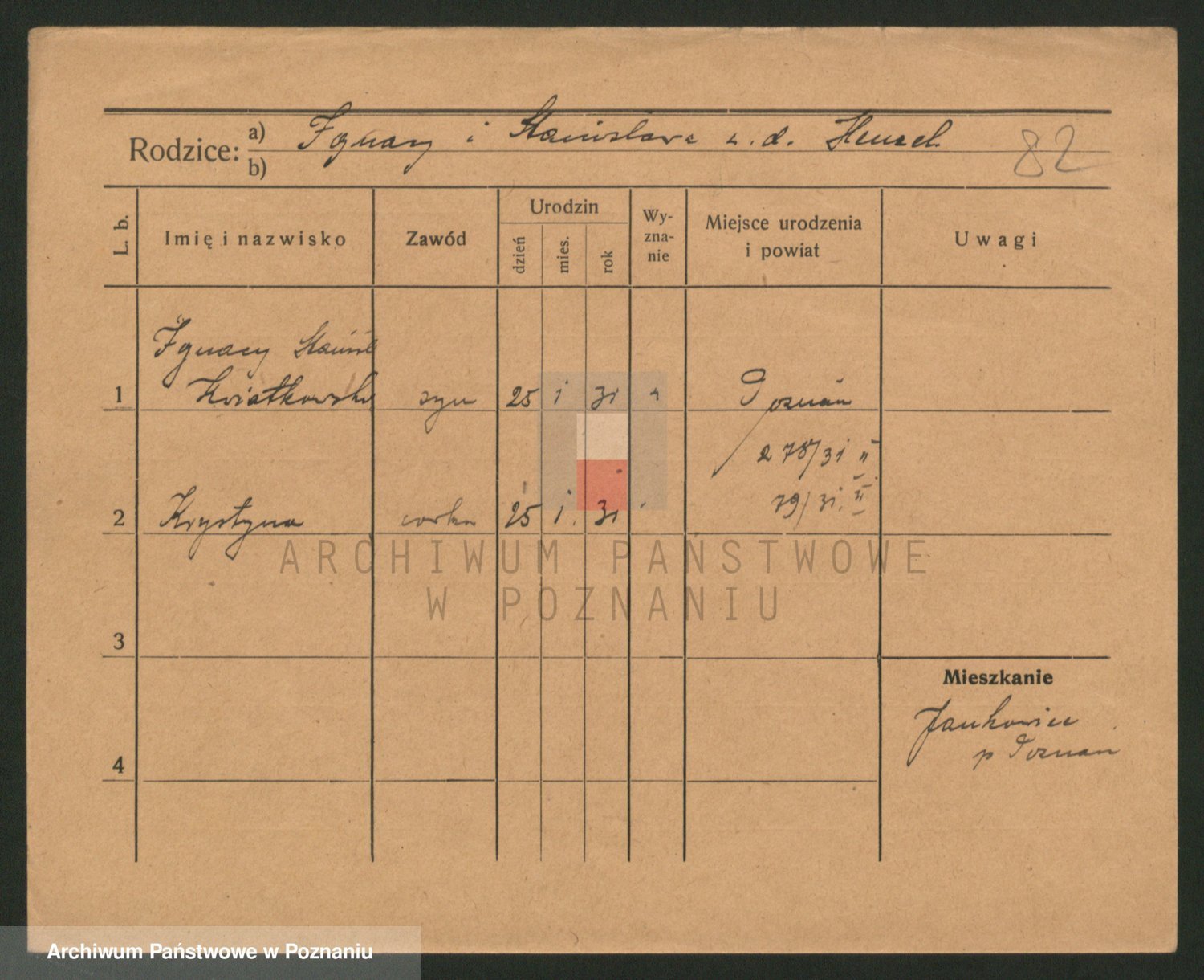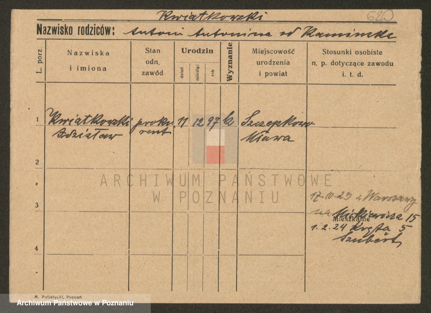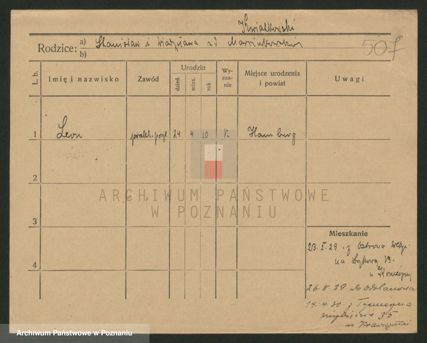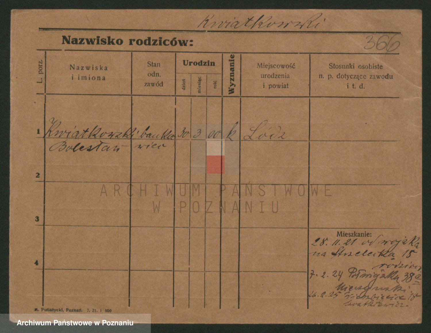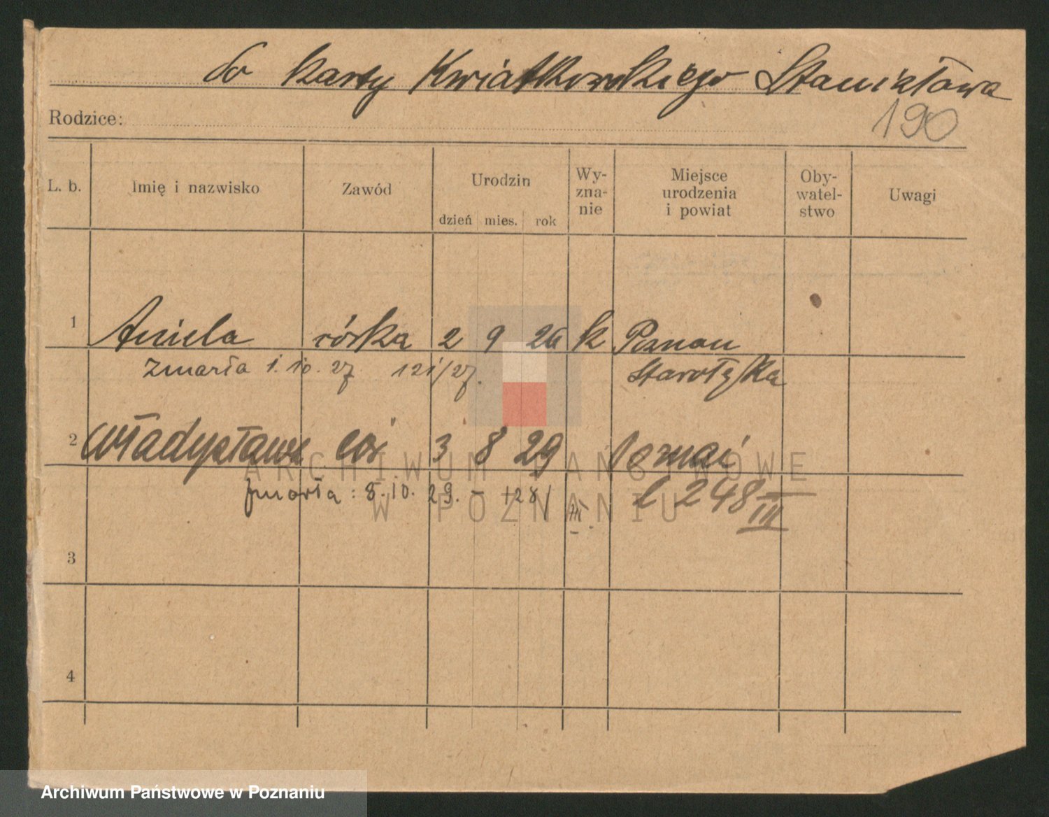 Podgląd karty osobowej dostępny jest po kliknięciu na nazwisko lub ikonkę karty. Można dokonywać powiększenia (ikony na górze) lub przechodzić między kolejnymi skanami (strzałki po bokach).