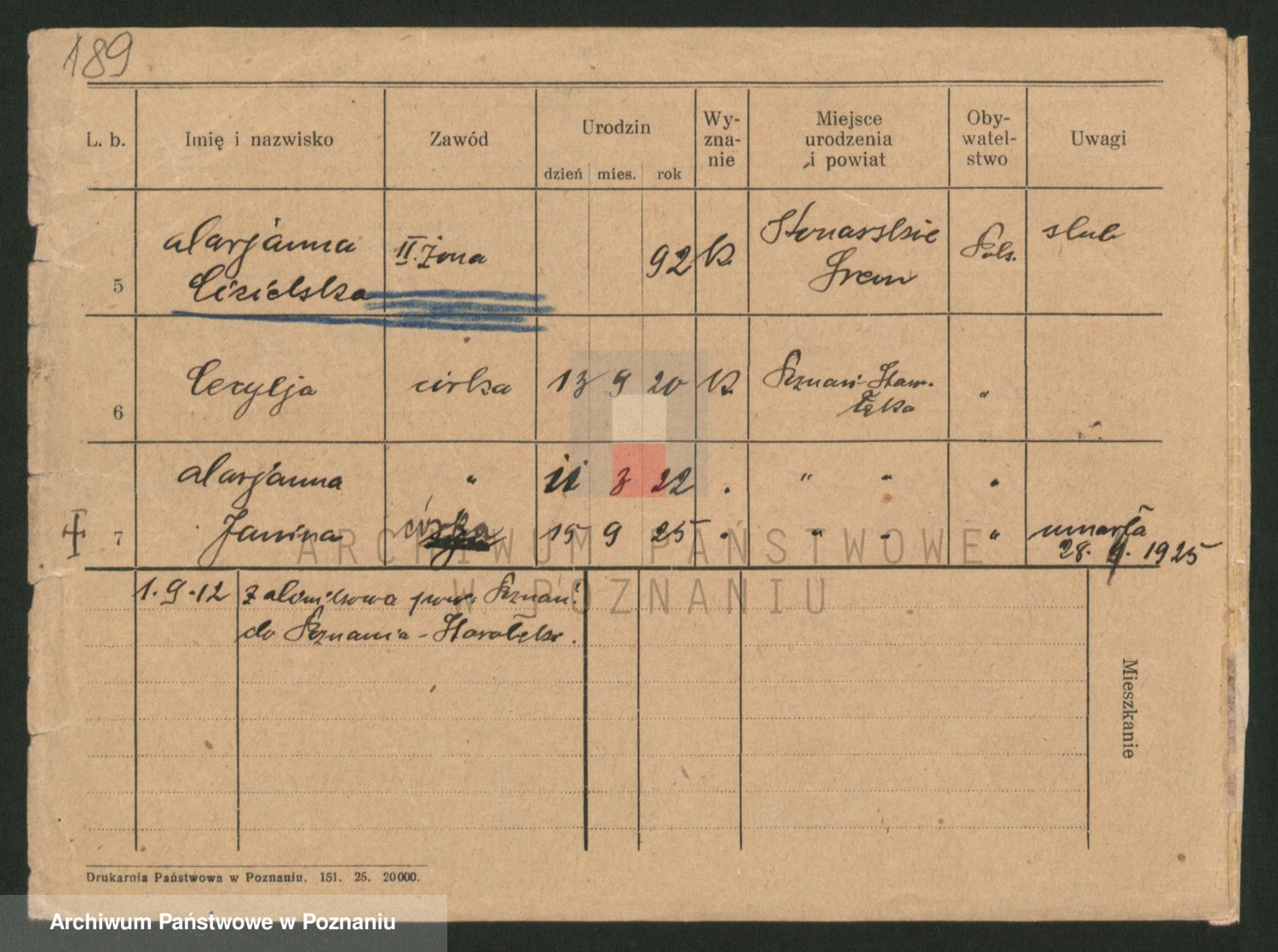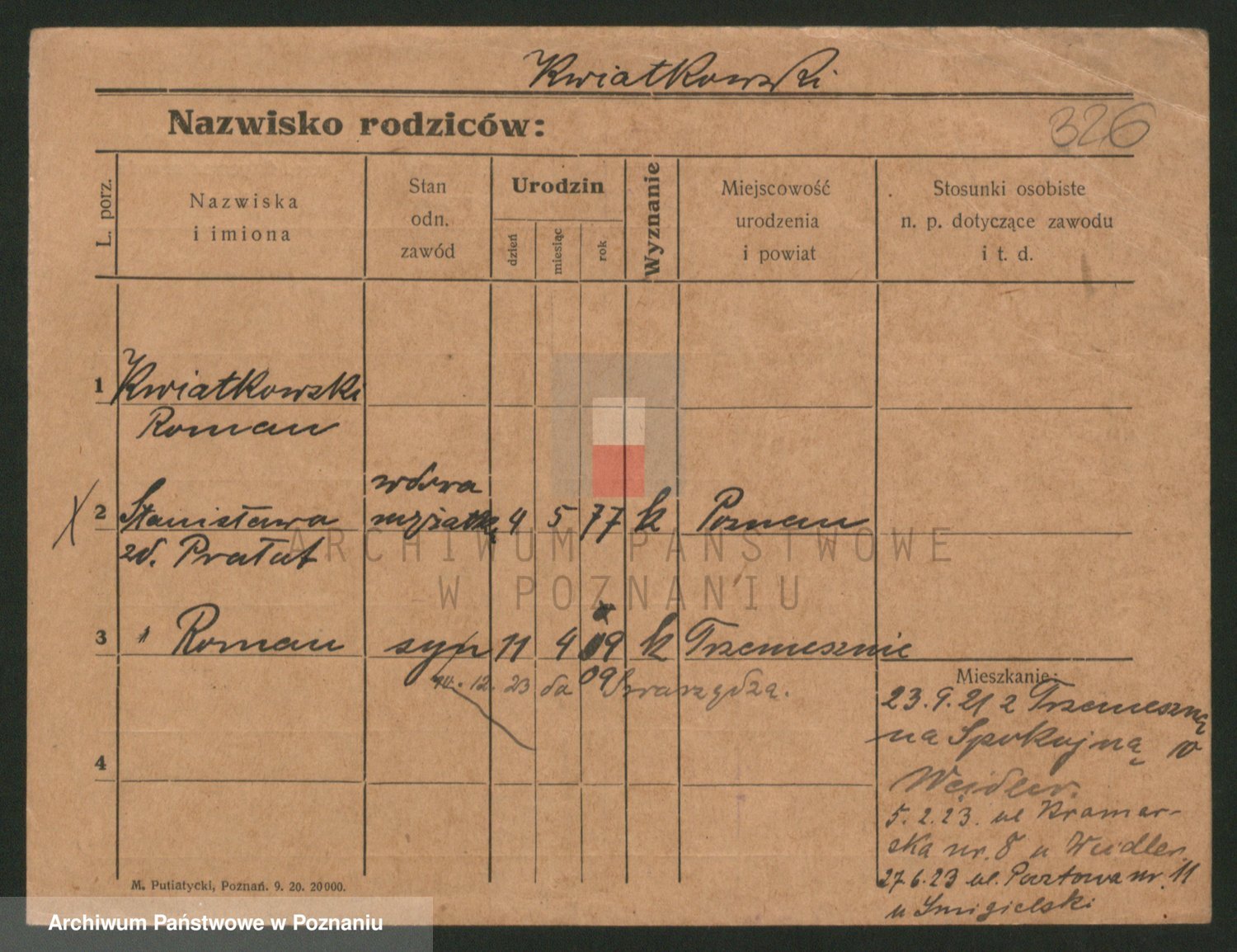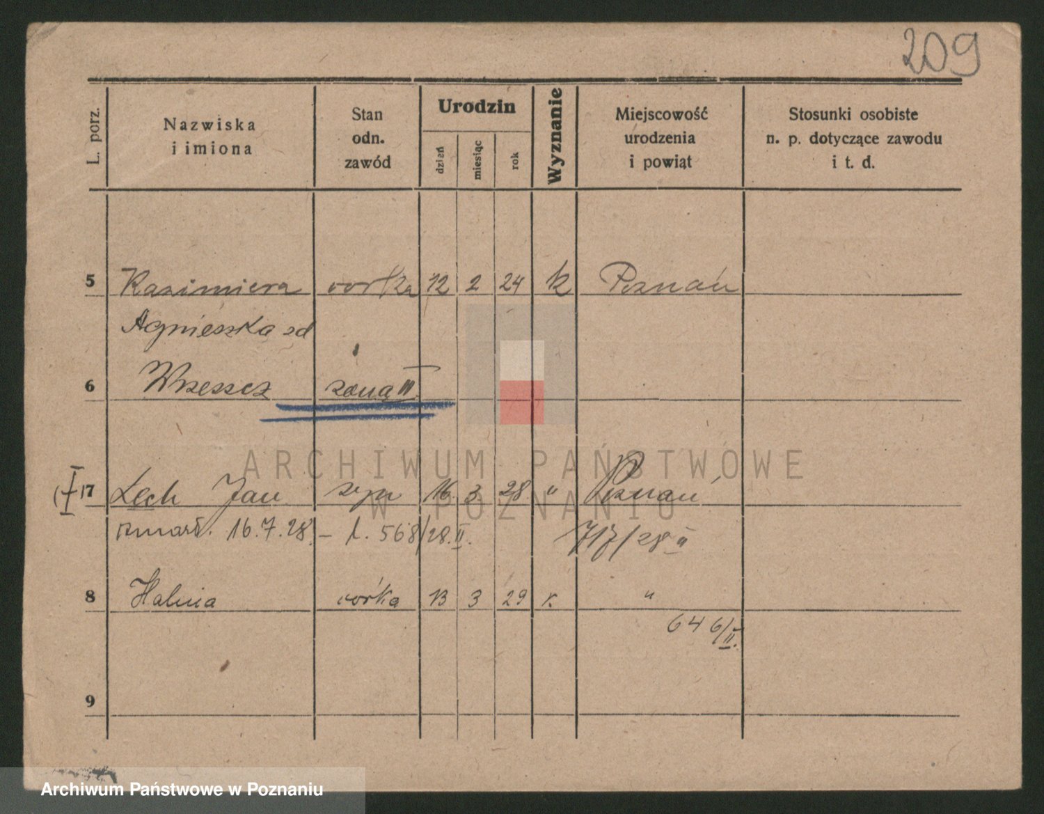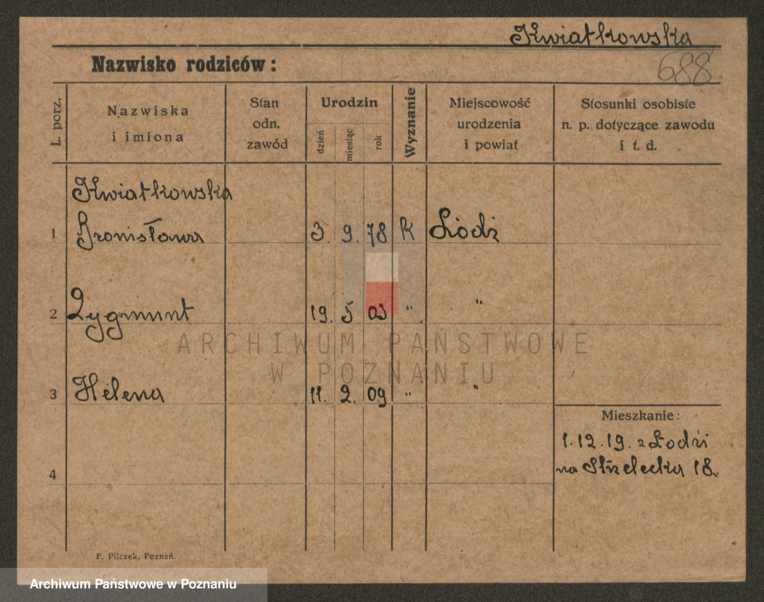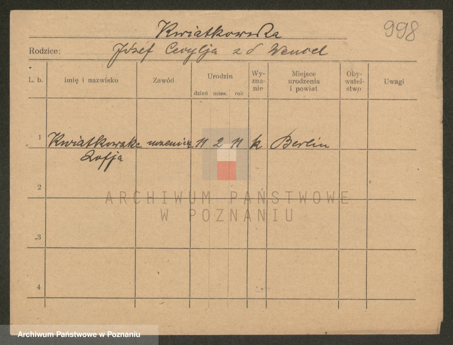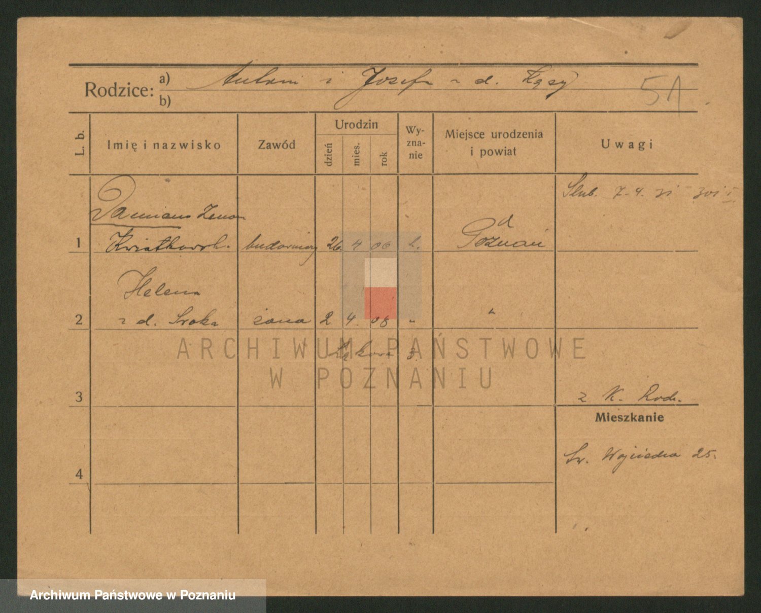 Podgląd karty osobowej dostępny jest po kliknięciu na nazwisko lub ikonkę karty. Można dokonywać powiększenia (ikony na górze) lub przechodzić między kolejnymi skanami (strzałki po bokach).