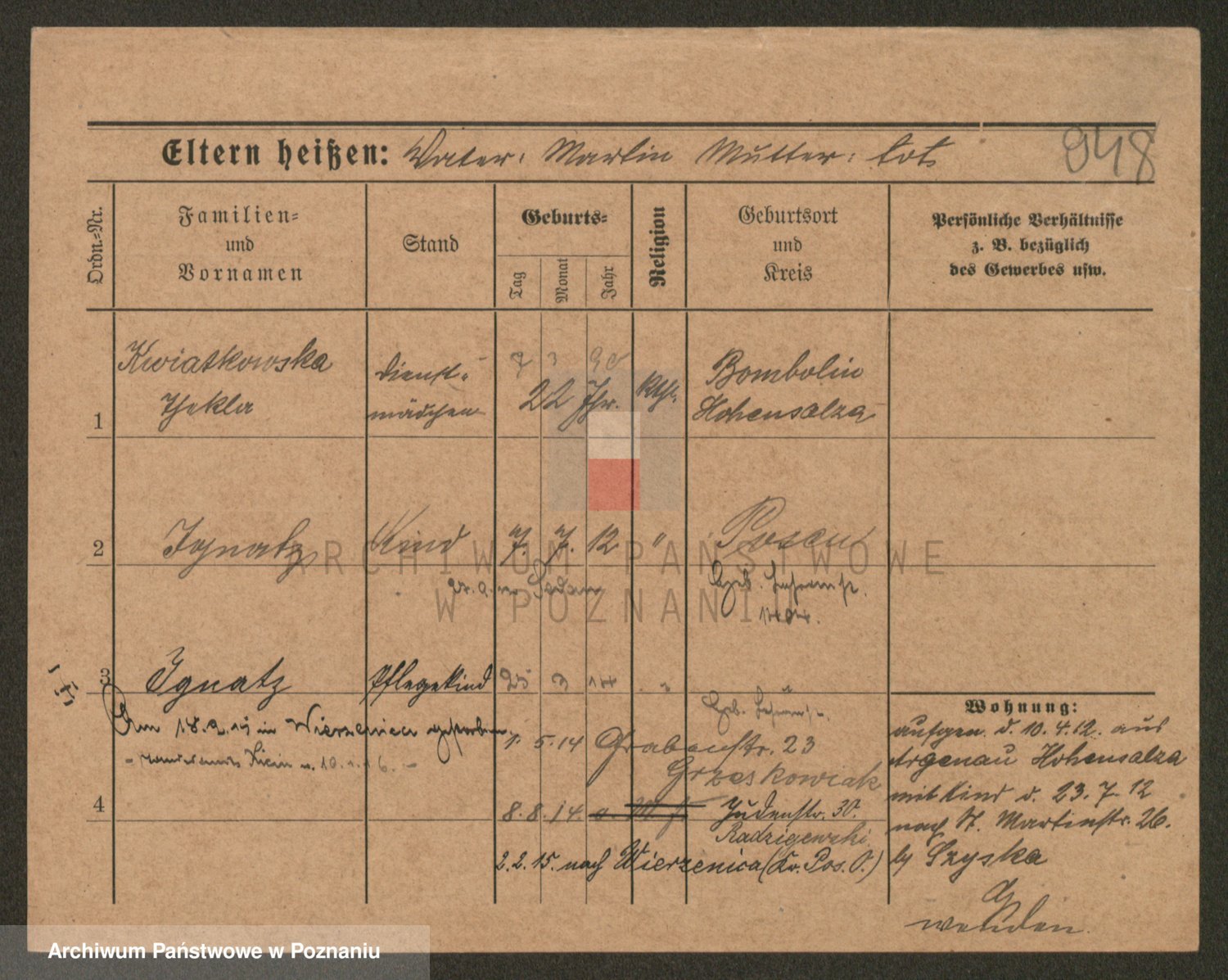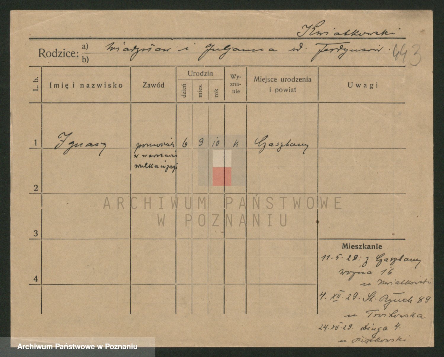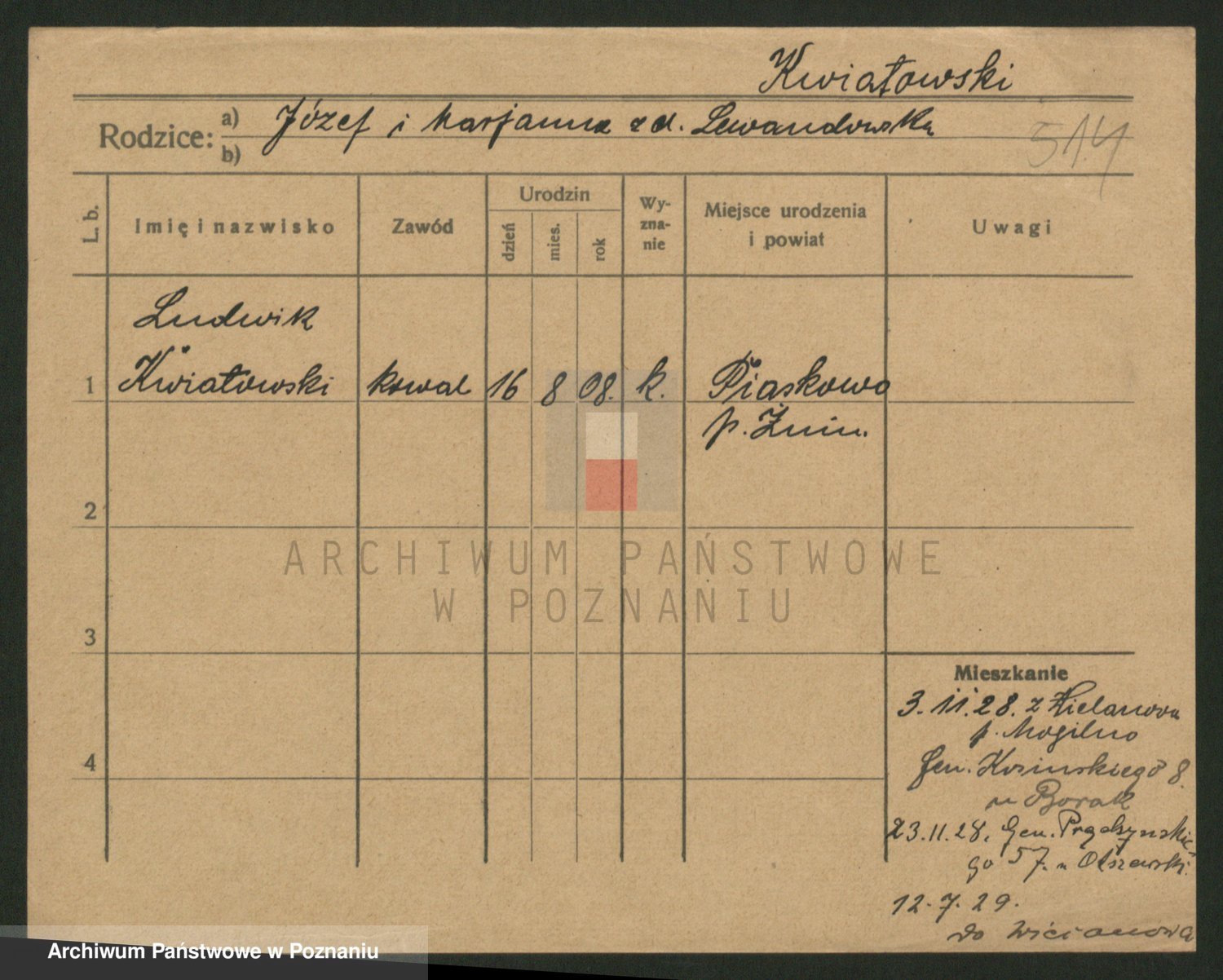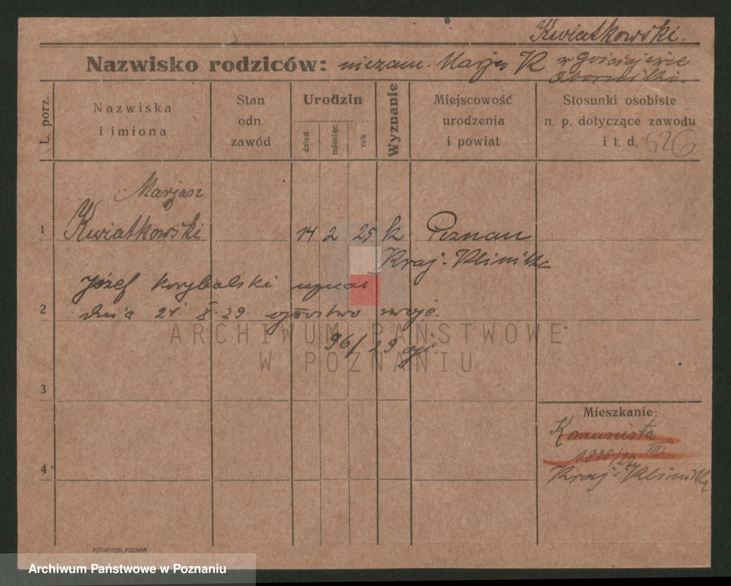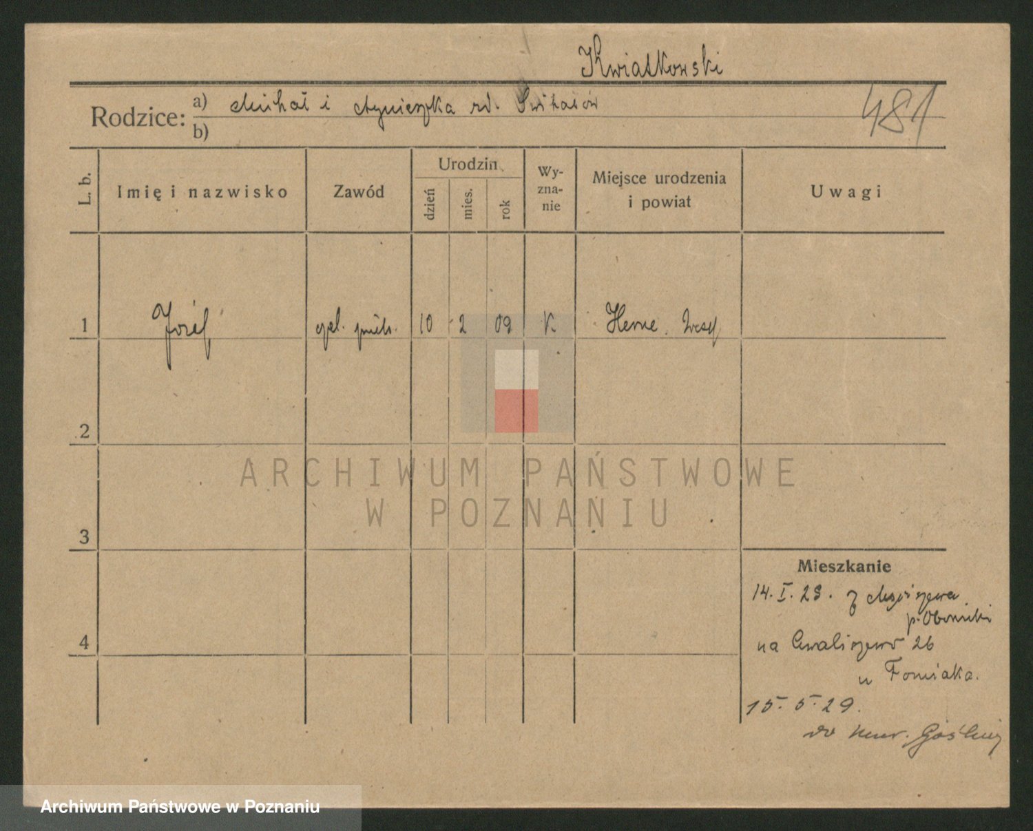 Podgląd karty osobowej dostępny jest po kliknięciu na nazwisko lub ikonkę karty. Można dokonywać powiększenia (ikony na górze) lub przechodzić między kolejnymi skanami (strzałki po bokach).
