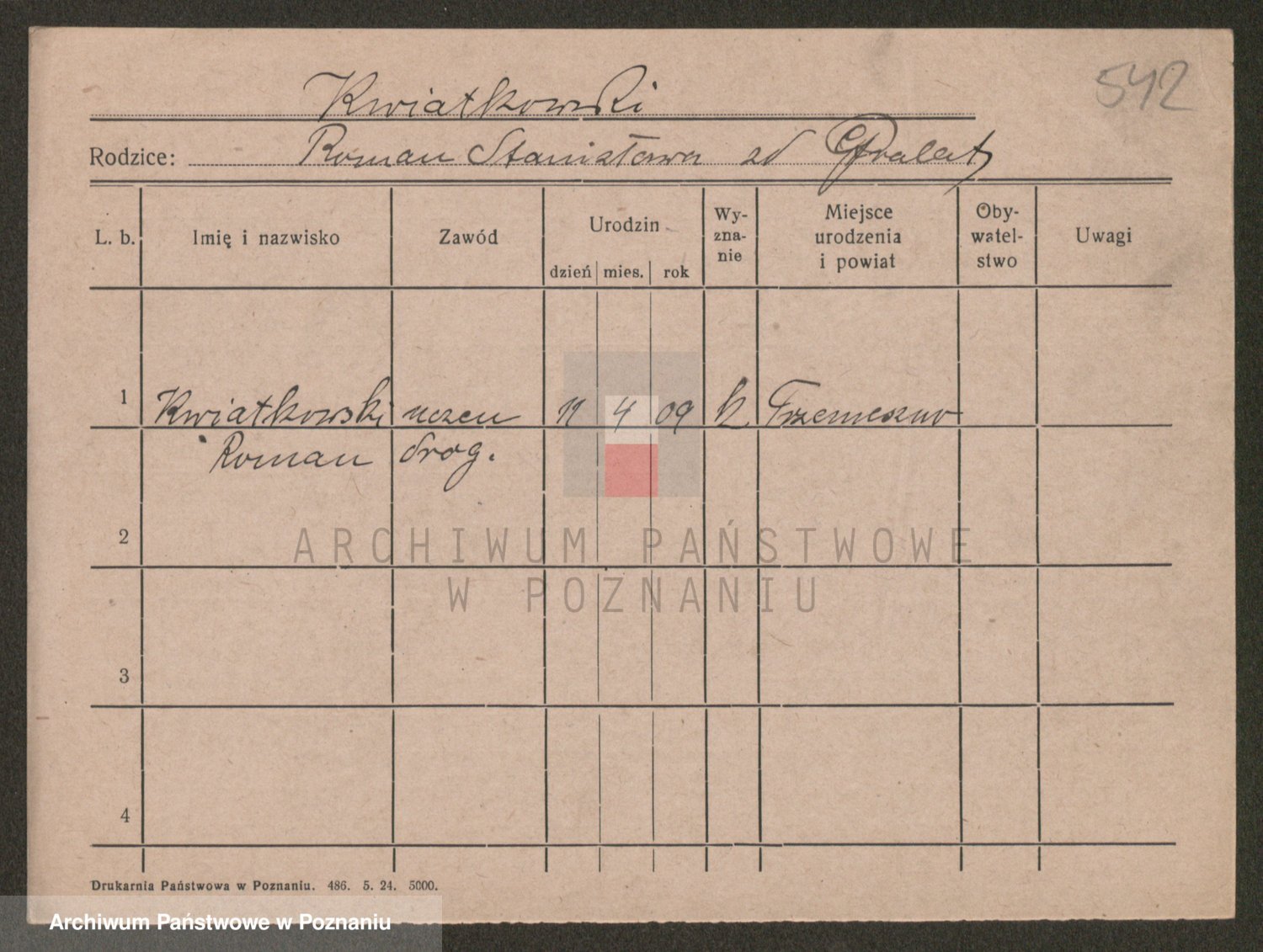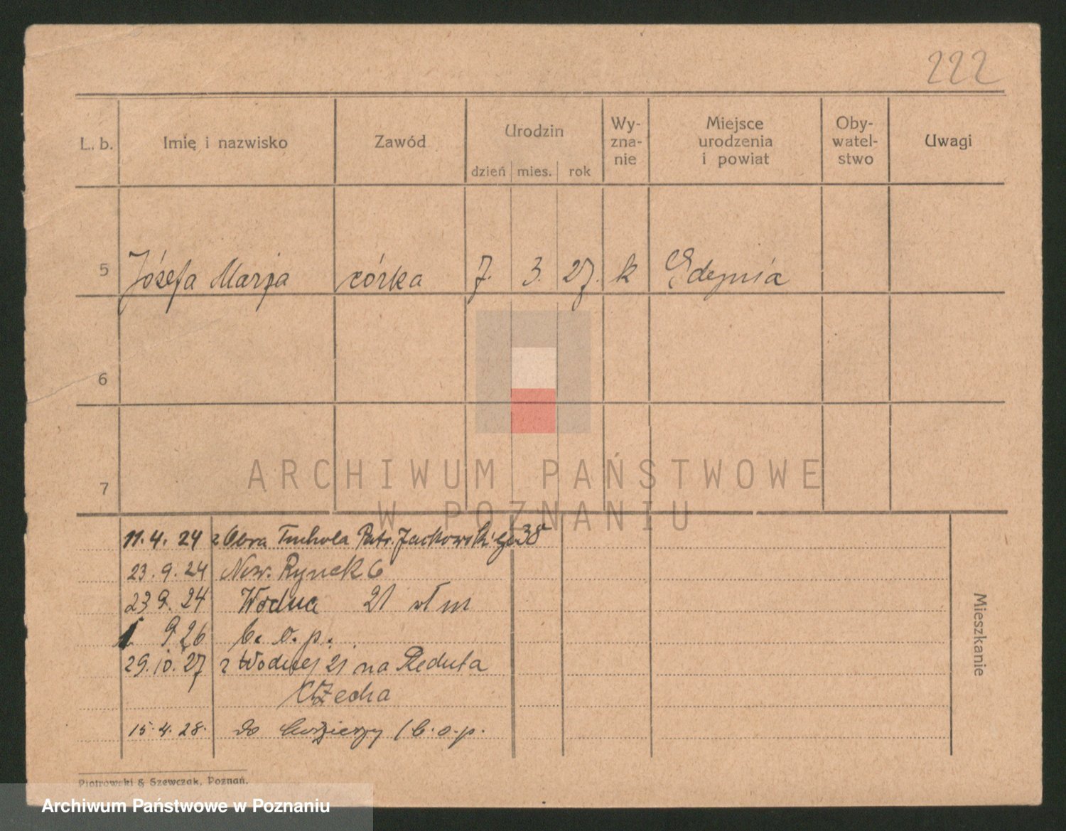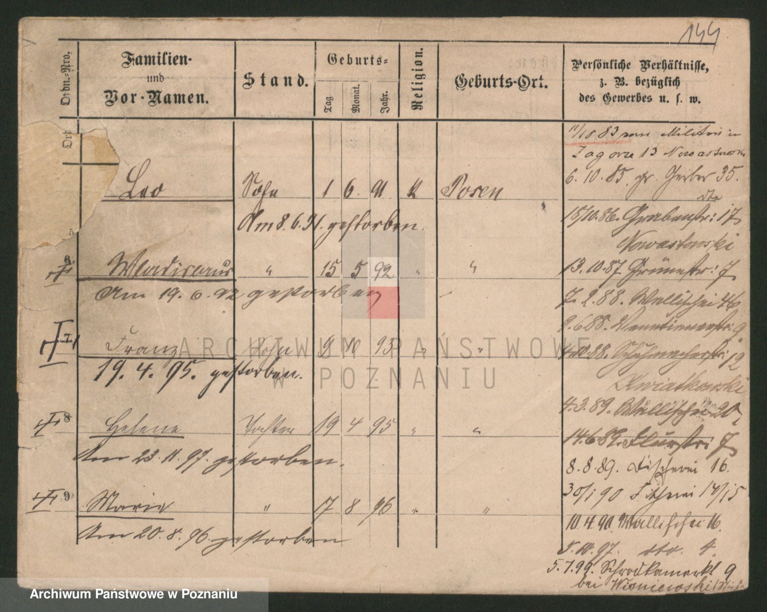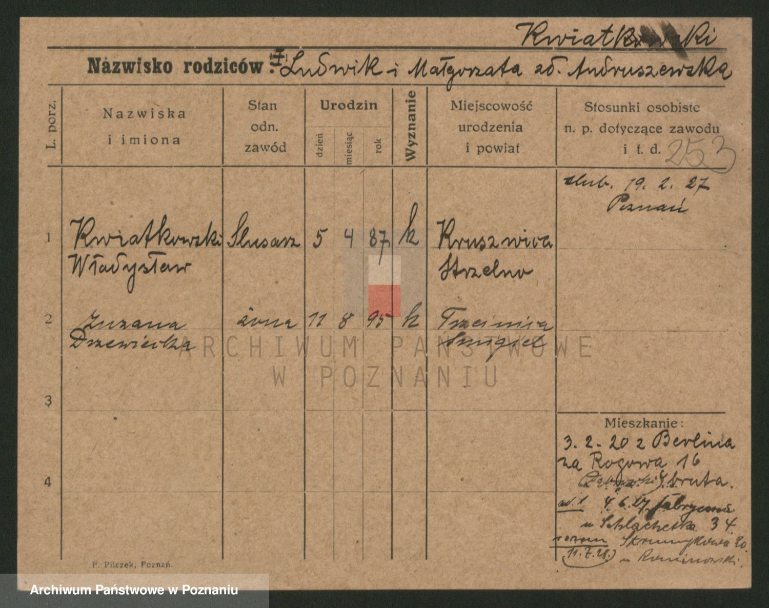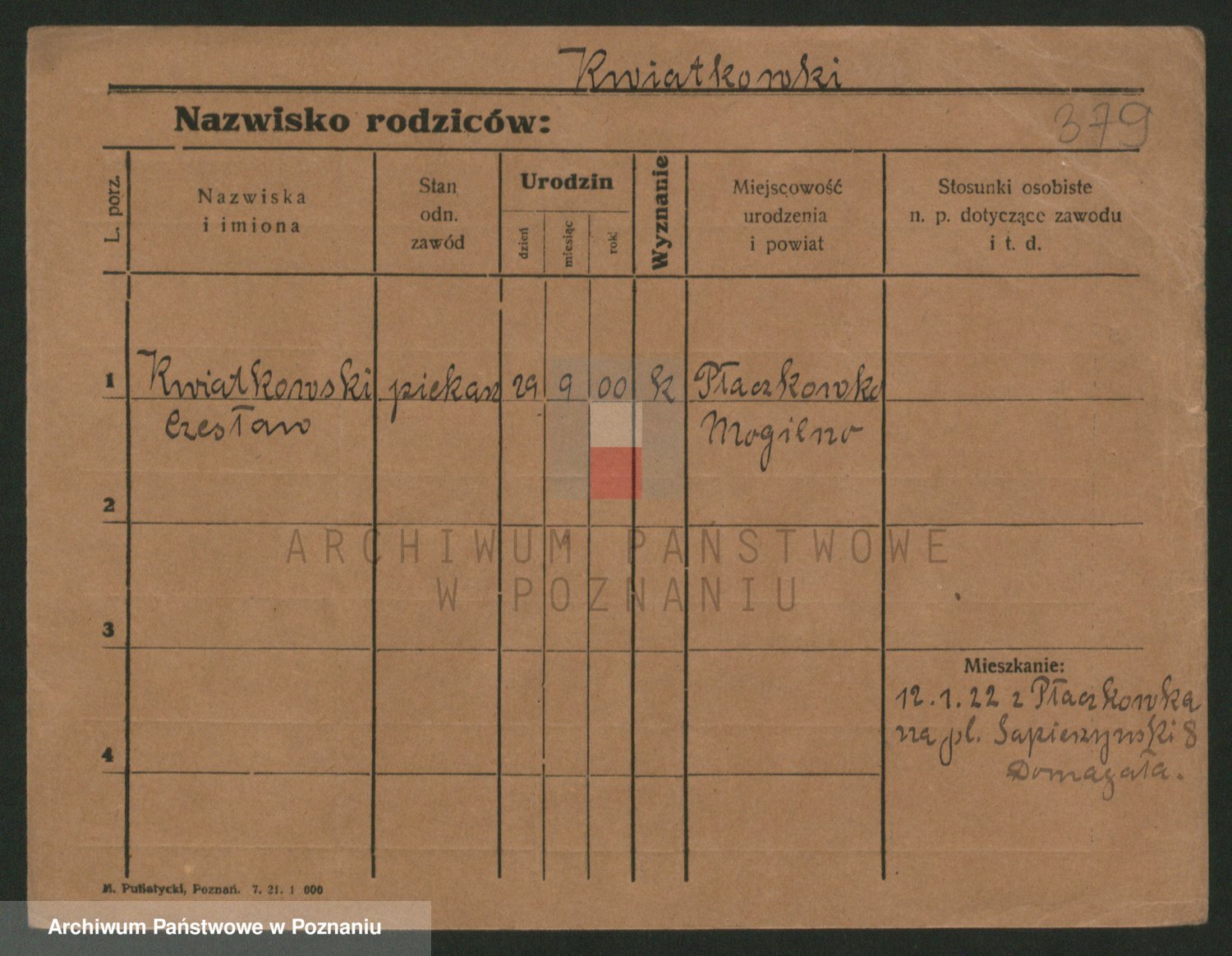 Podgląd karty osobowej dostępny jest po kliknięciu na nazwisko lub ikonkę karty. Można dokonywać powiększenia (ikony na górze) lub przechodzić między kolejnymi skanami (strzałki po bokach).