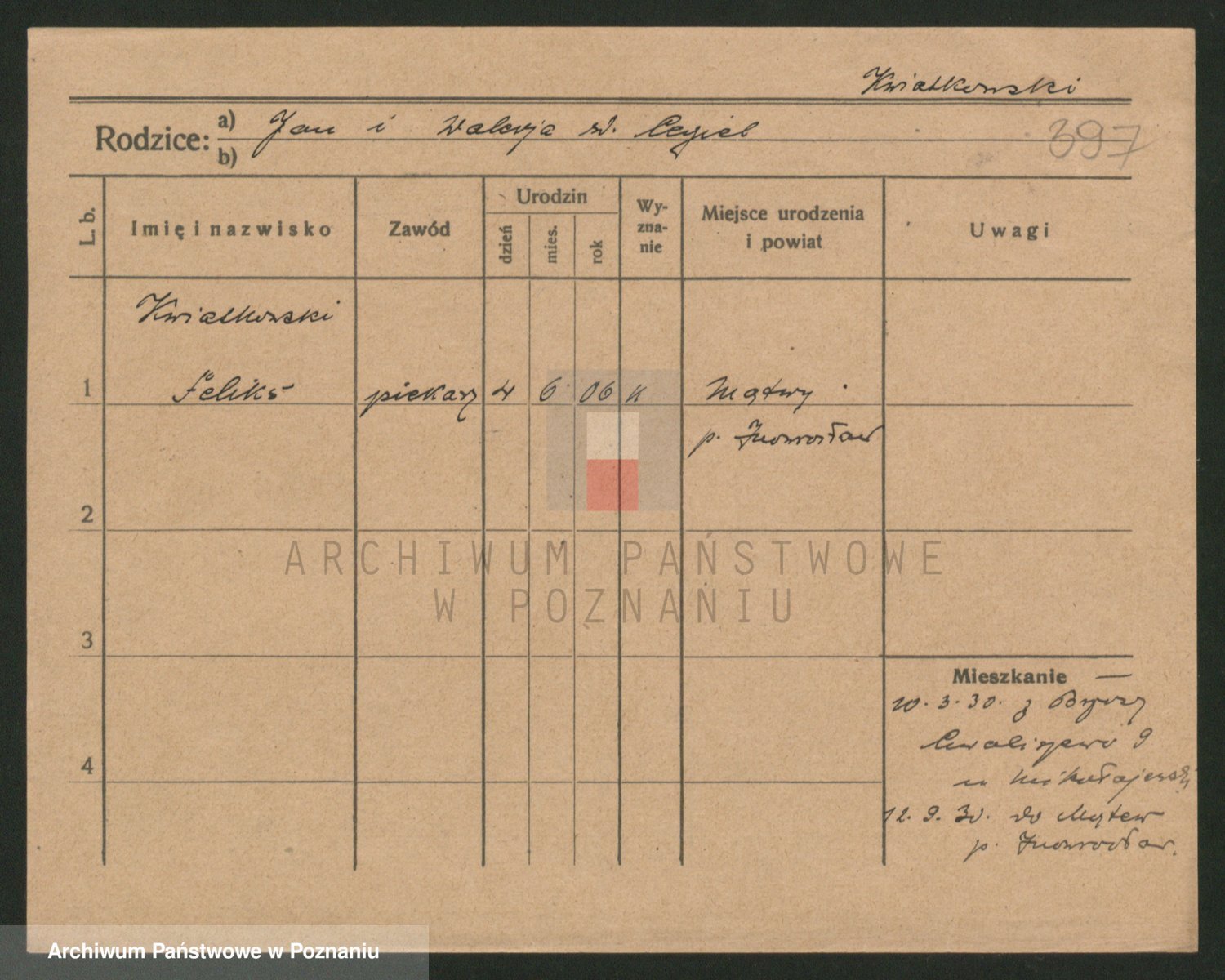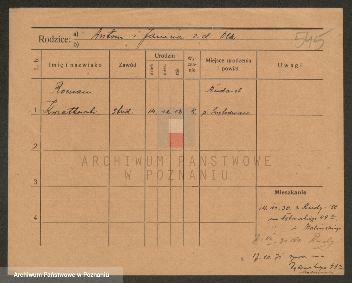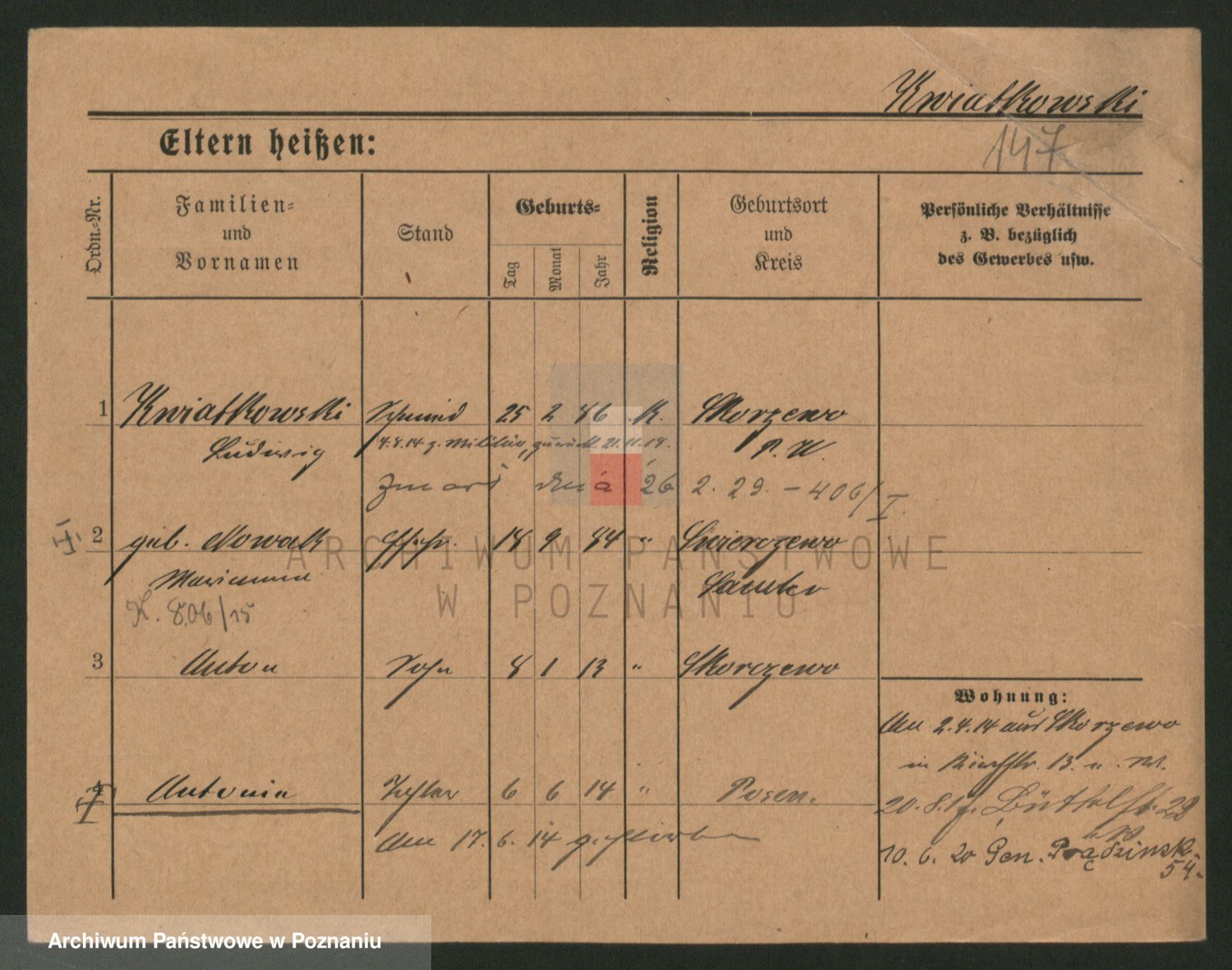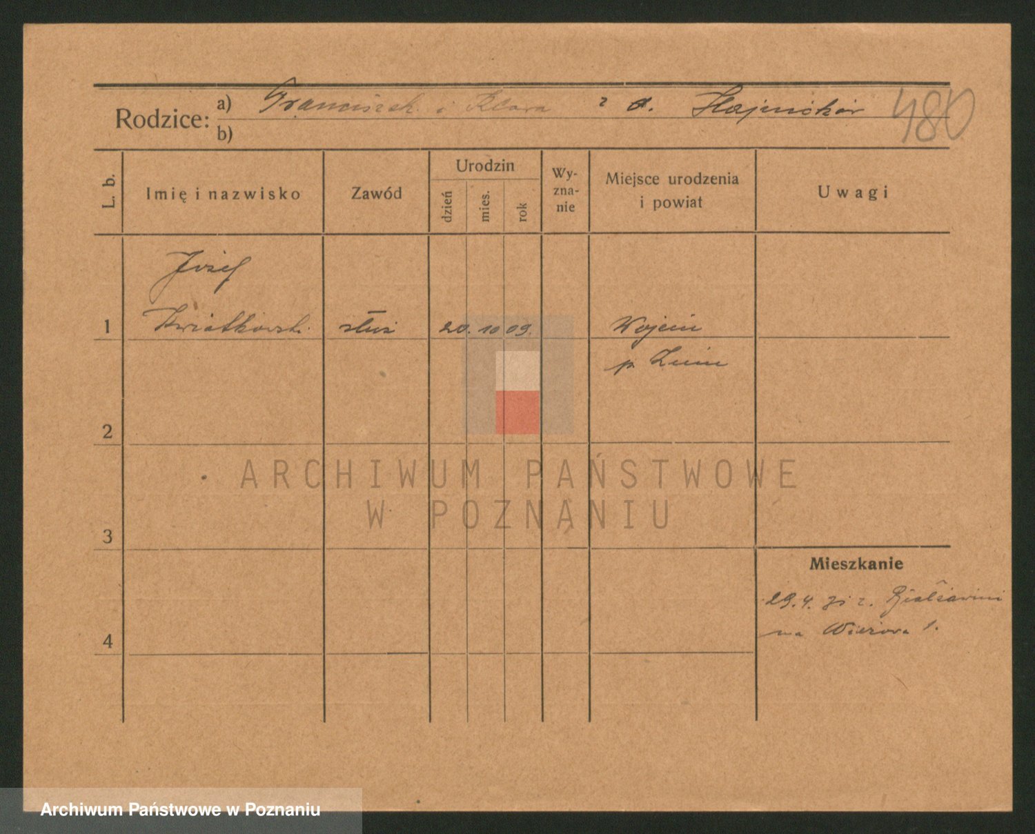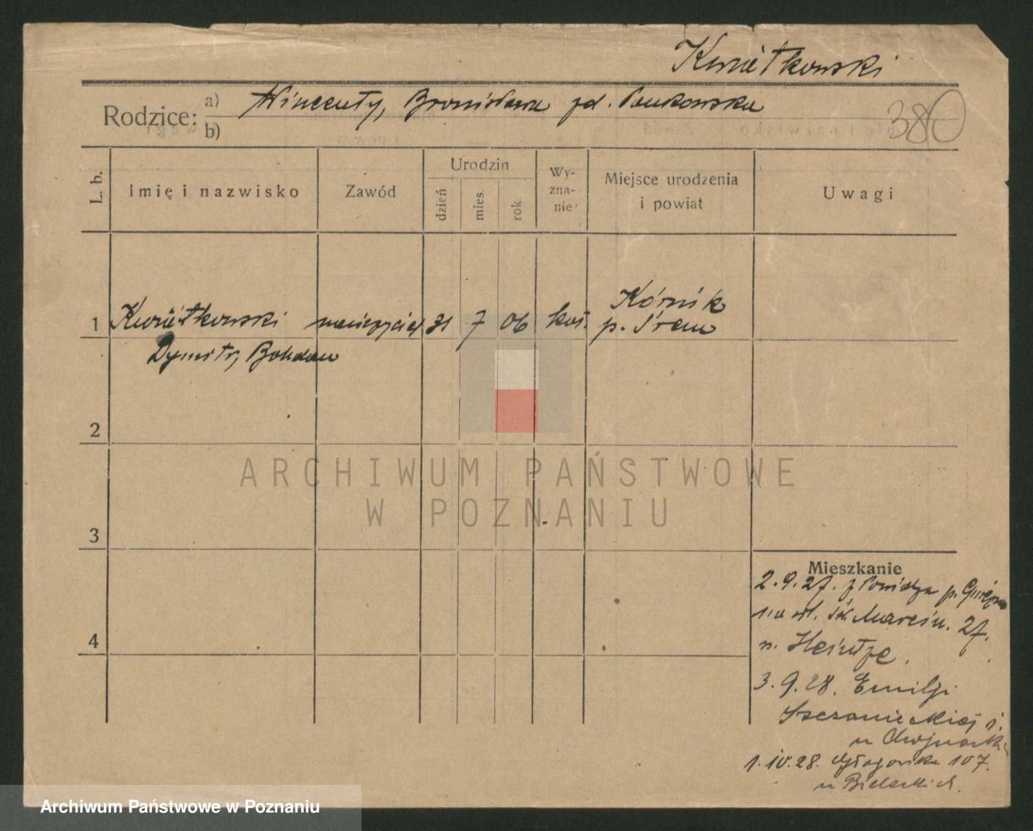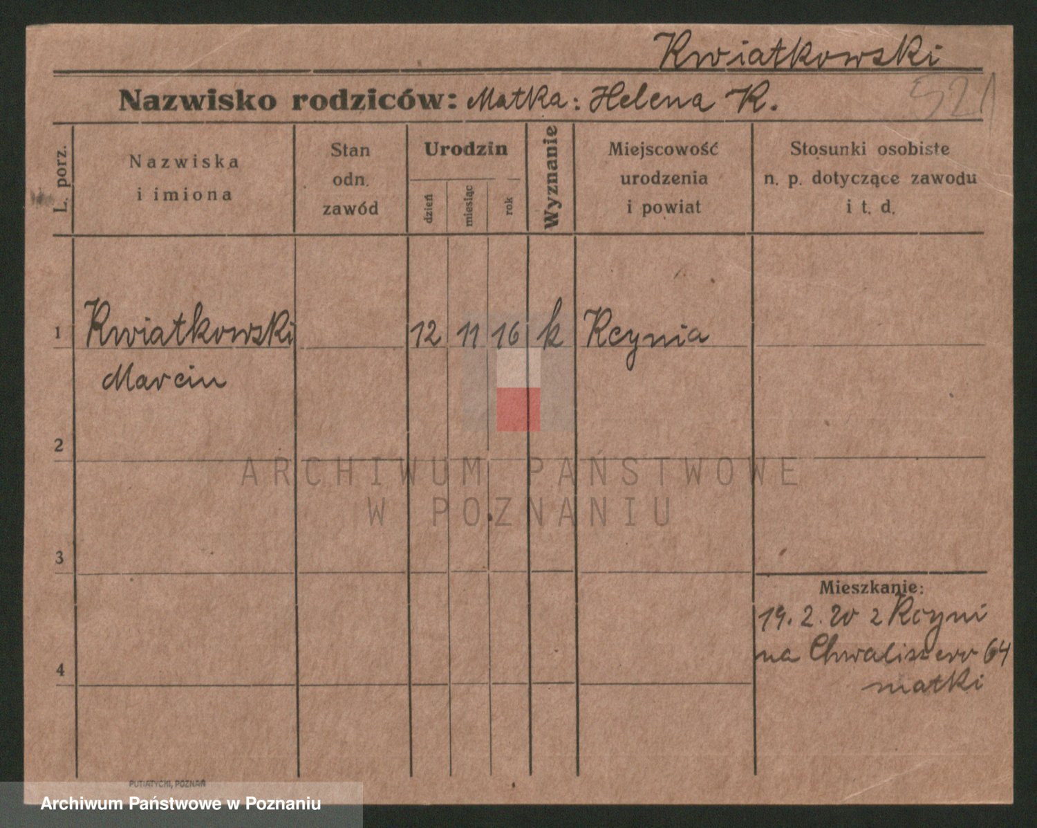 Podgląd karty osobowej dostępny jest po kliknięciu na nazwisko lub ikonkę karty. Można dokonywać powiększenia (ikony na górze) lub przechodzić między kolejnymi skanami (strzałki po bokach).