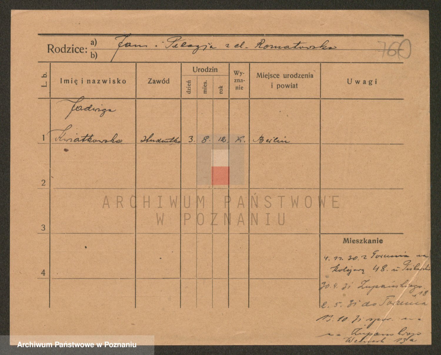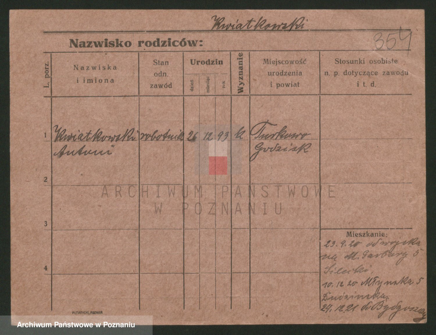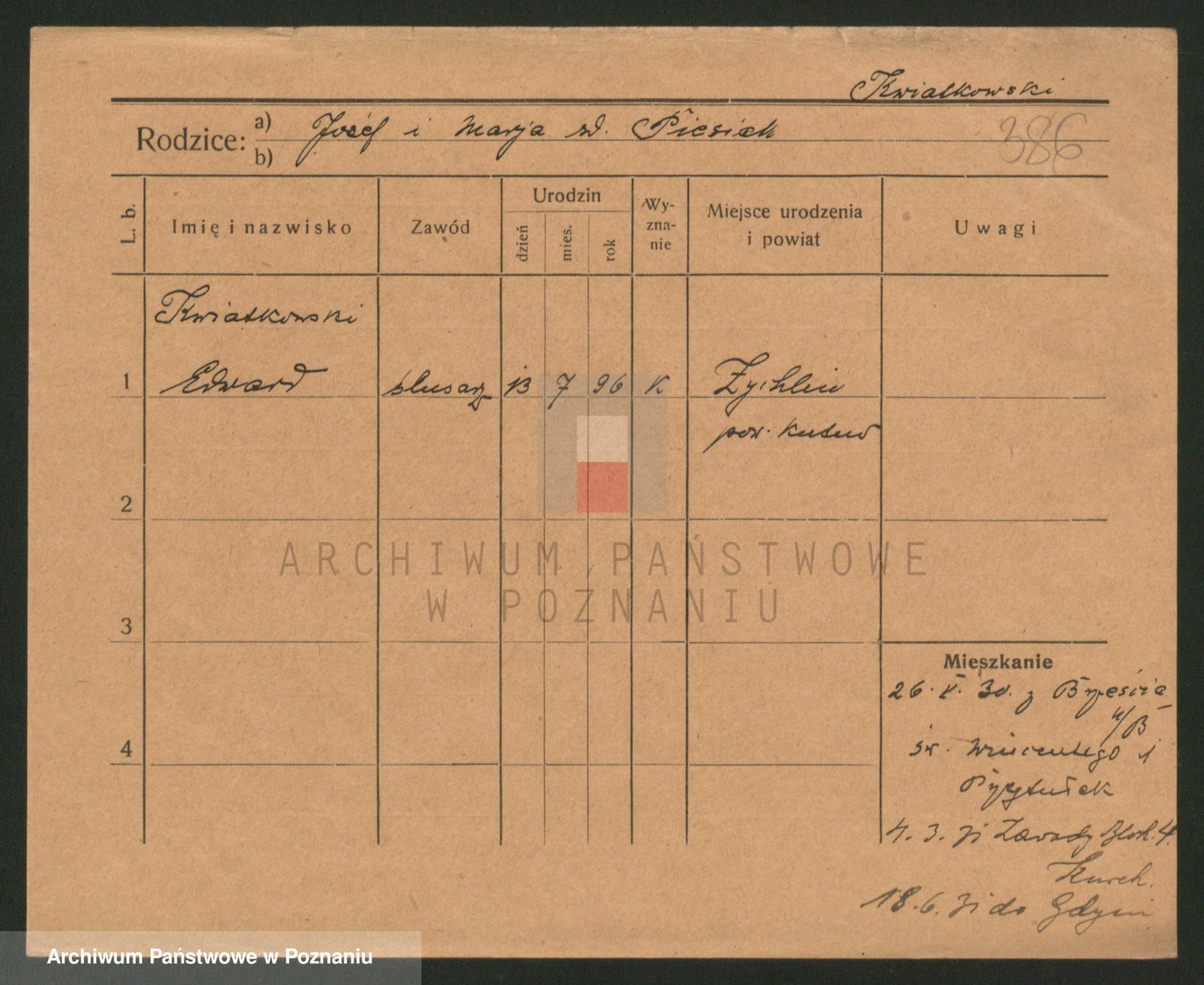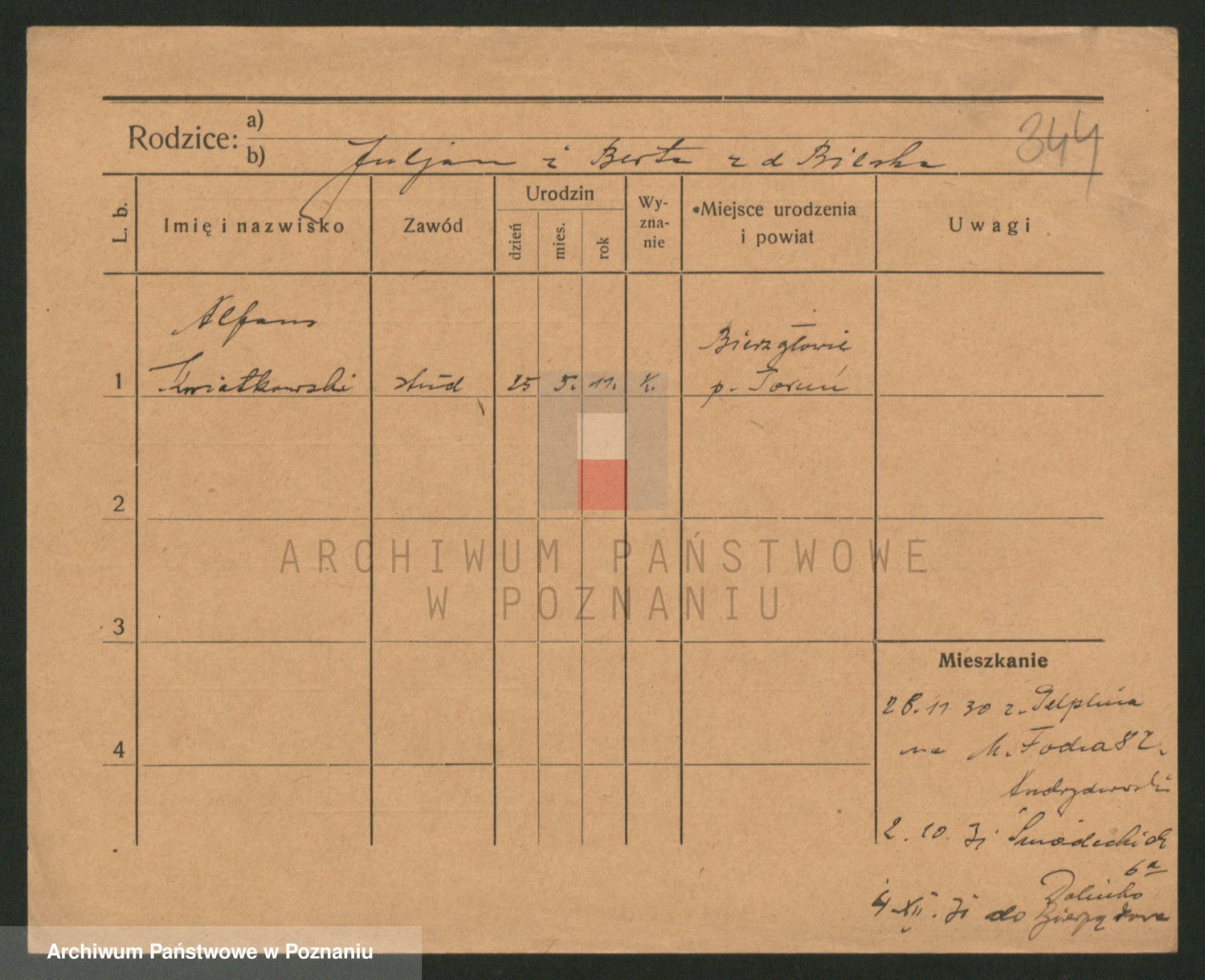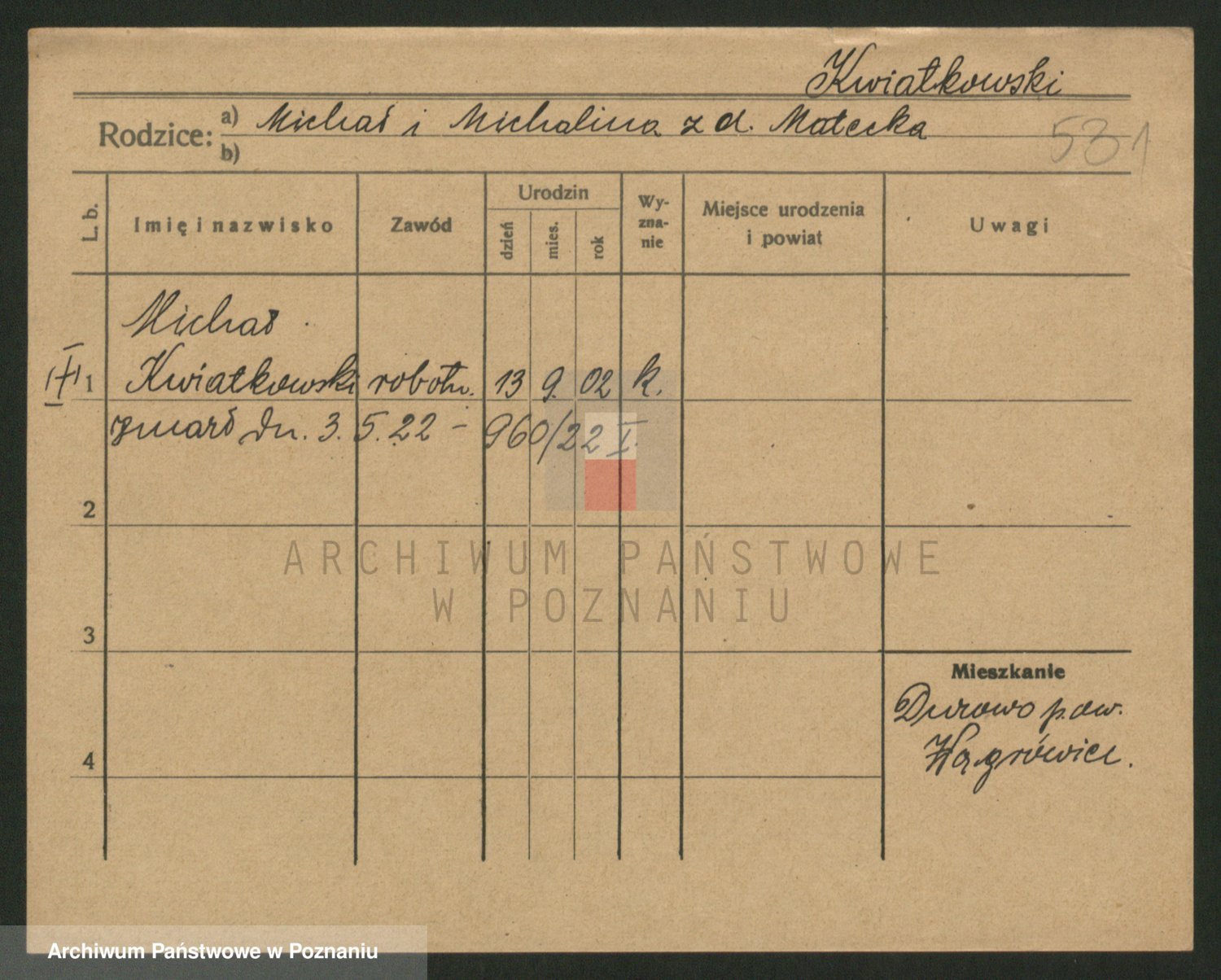 Podgląd karty osobowej dostępny jest po kliknięciu na nazwisko lub ikonkę karty. Można dokonywać powiększenia (ikony na górze) lub przechodzić między kolejnymi skanami (strzałki po bokach).
