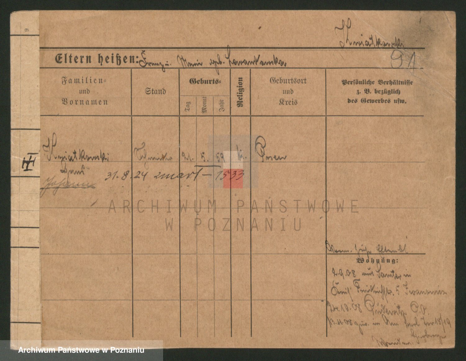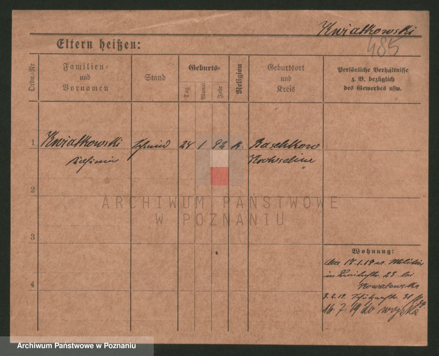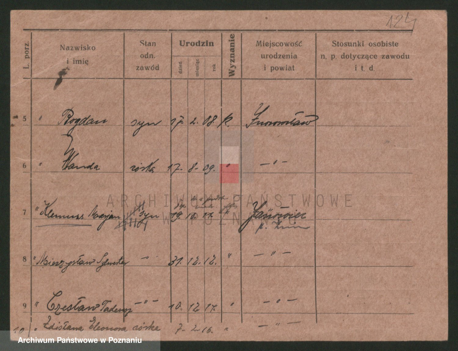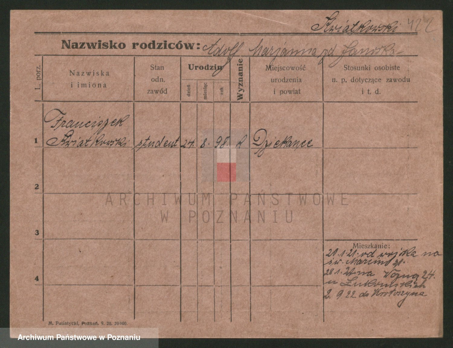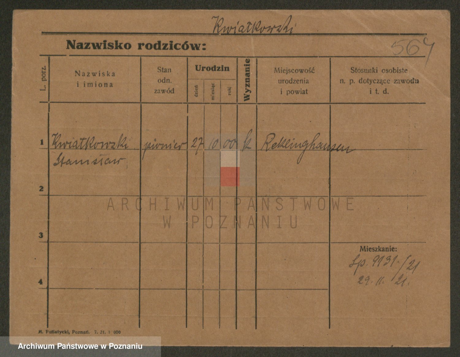 Podgląd karty osobowej dostępny jest po kliknięciu na nazwisko lub ikonkę karty. Można dokonywać powiększenia (ikony na górze) lub przechodzić między kolejnymi skanami (strzałki po bokach).