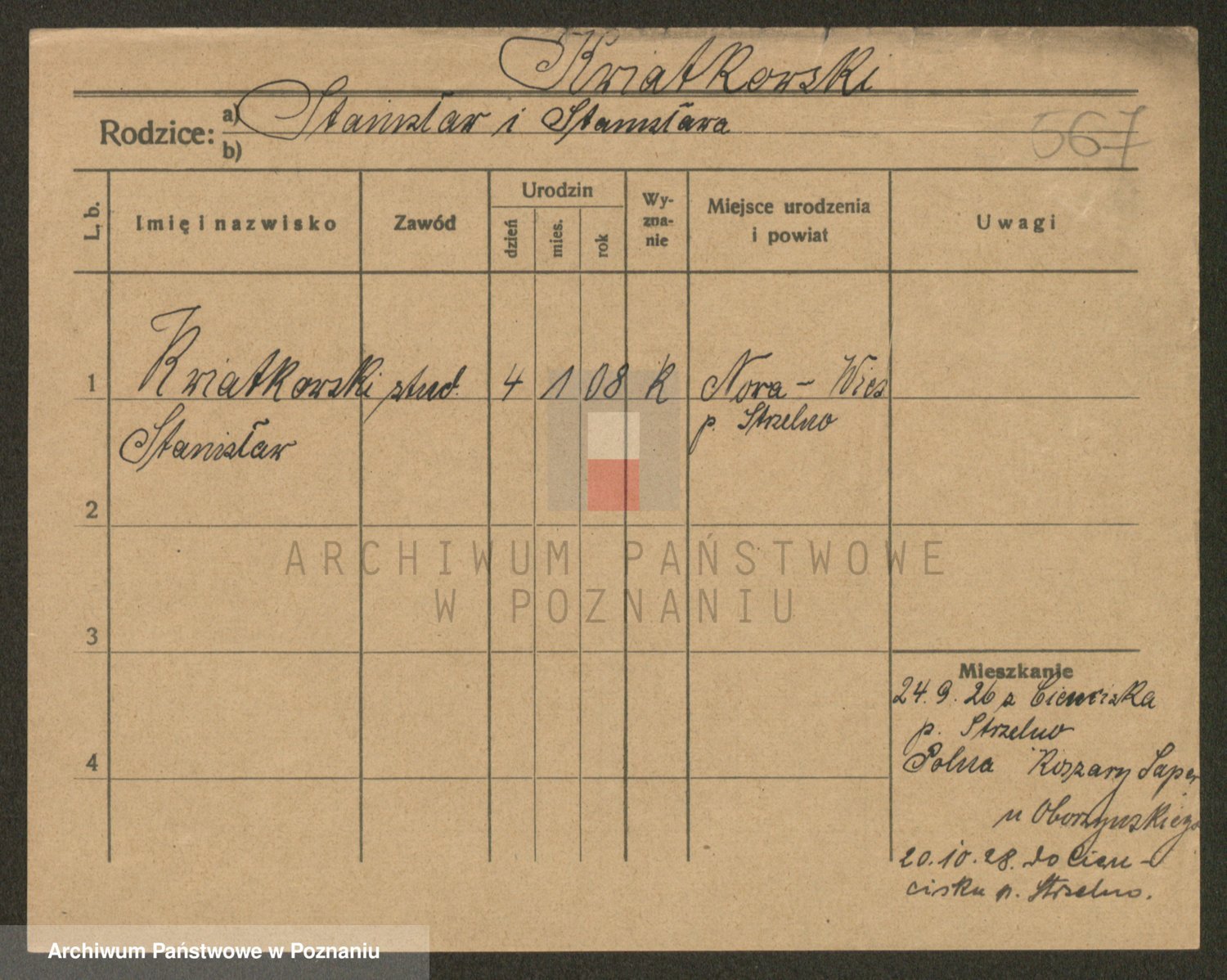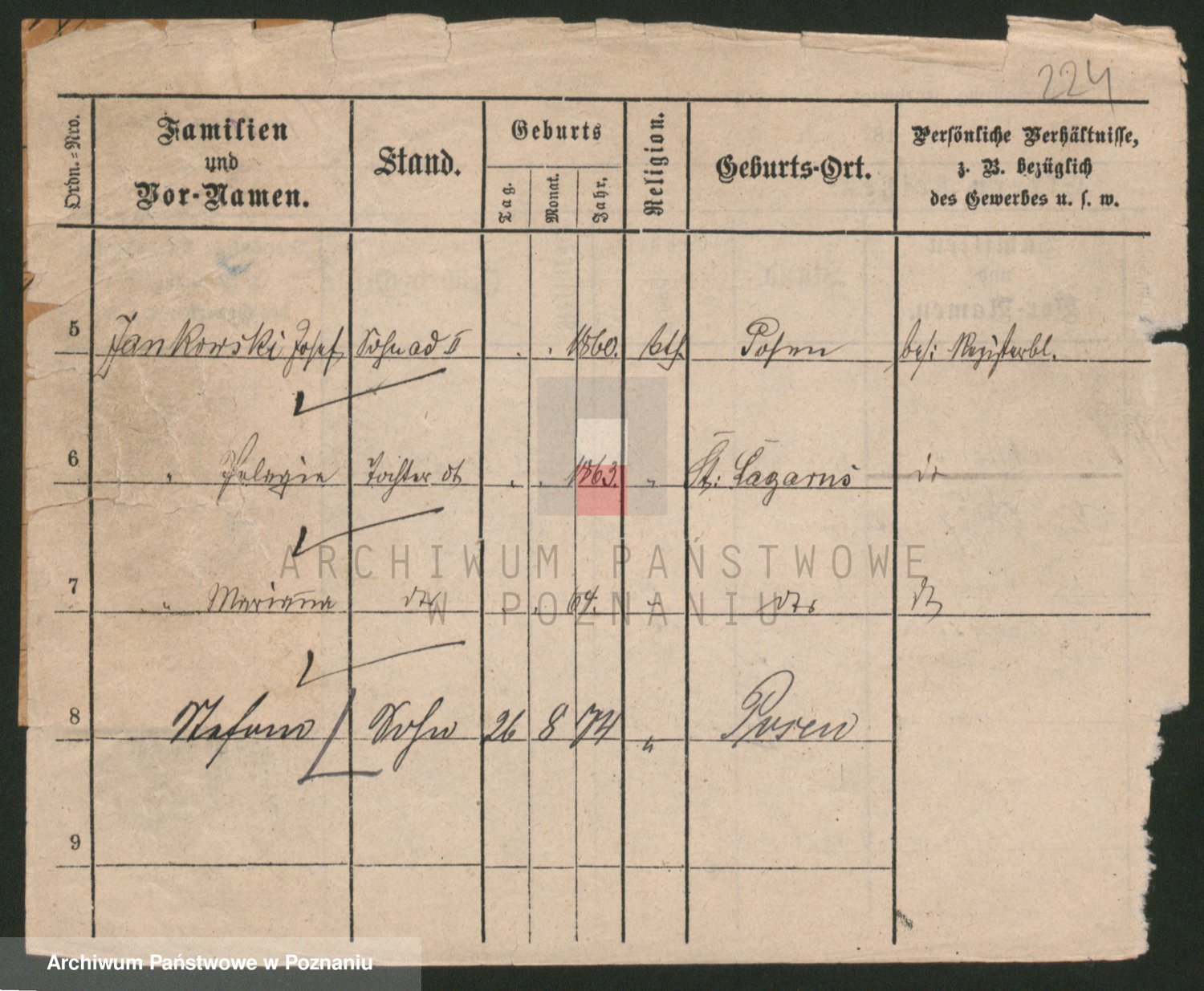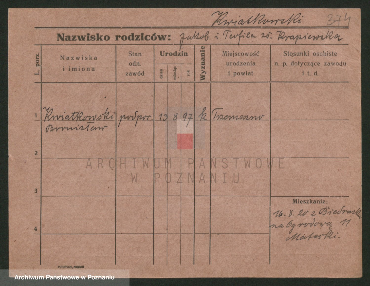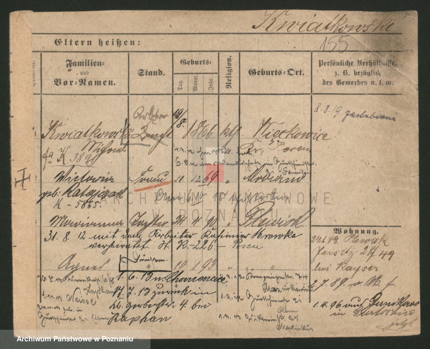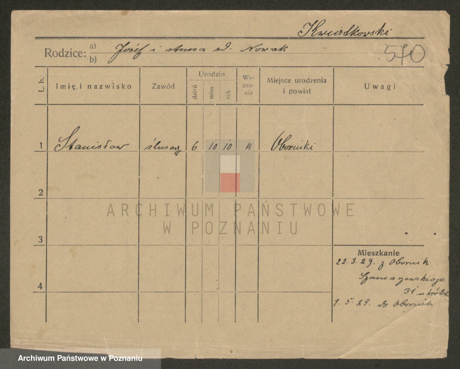 Podgląd karty osobowej dostępny jest po kliknięciu na nazwisko lub ikonkę karty. Można dokonywać powiększenia (ikony na górze) lub przechodzić między kolejnymi skanami (strzałki po bokach).