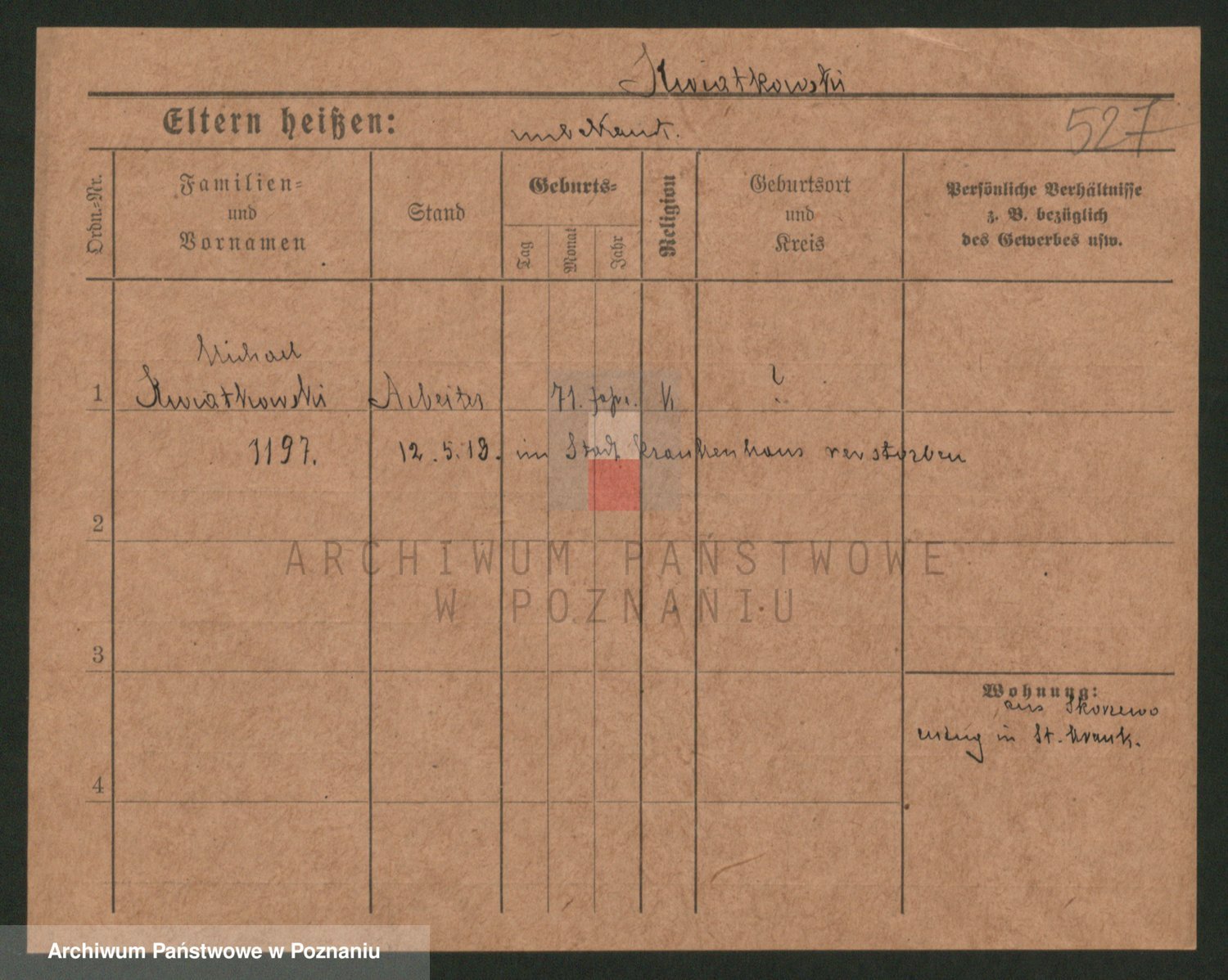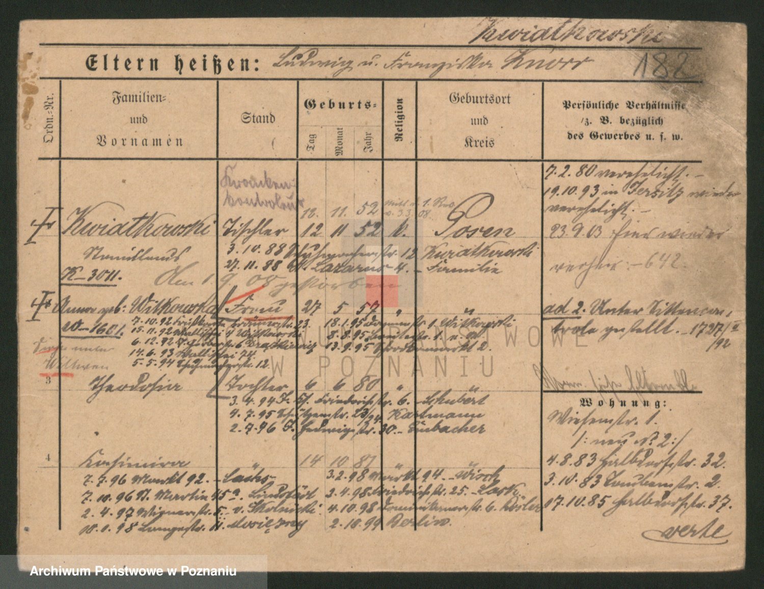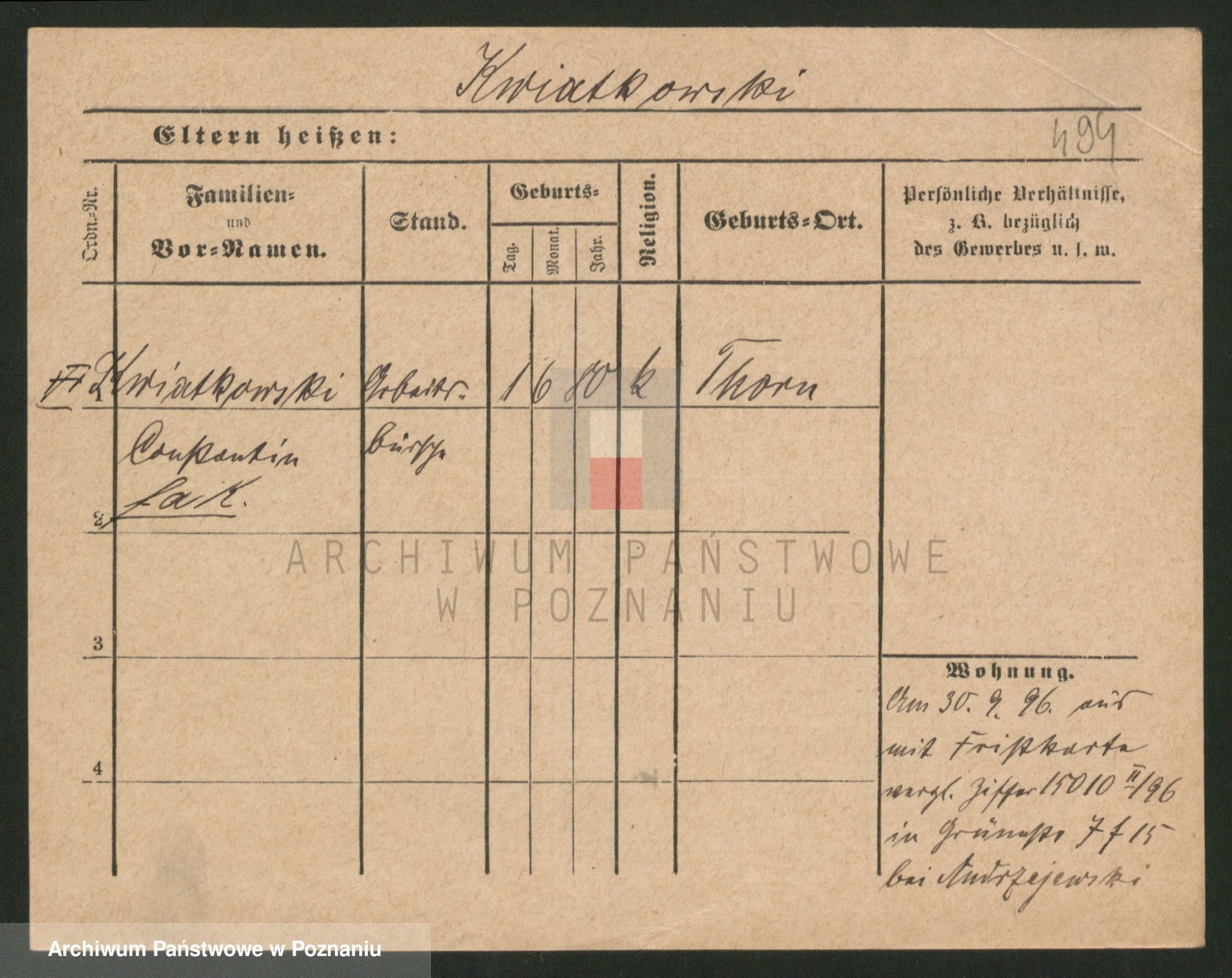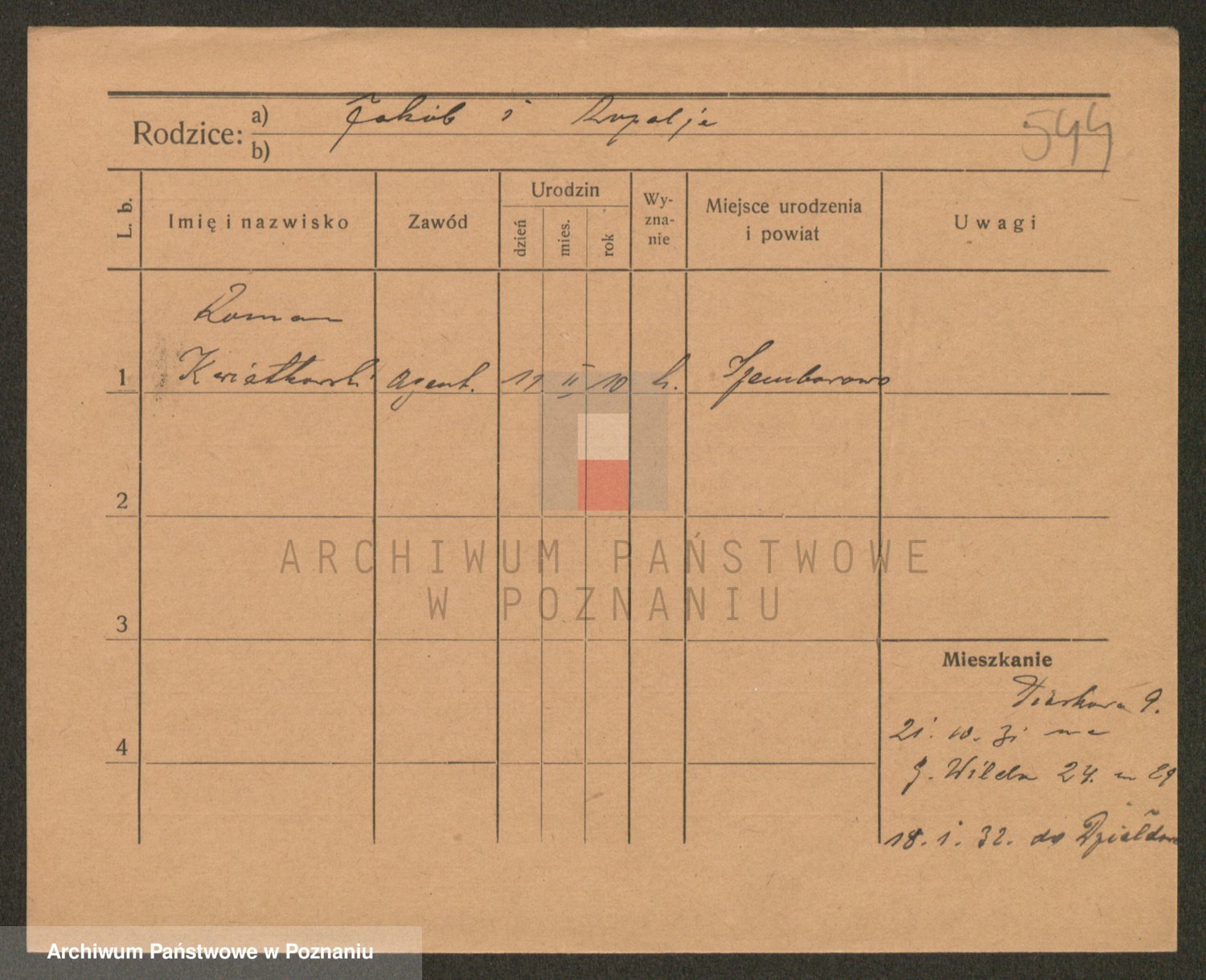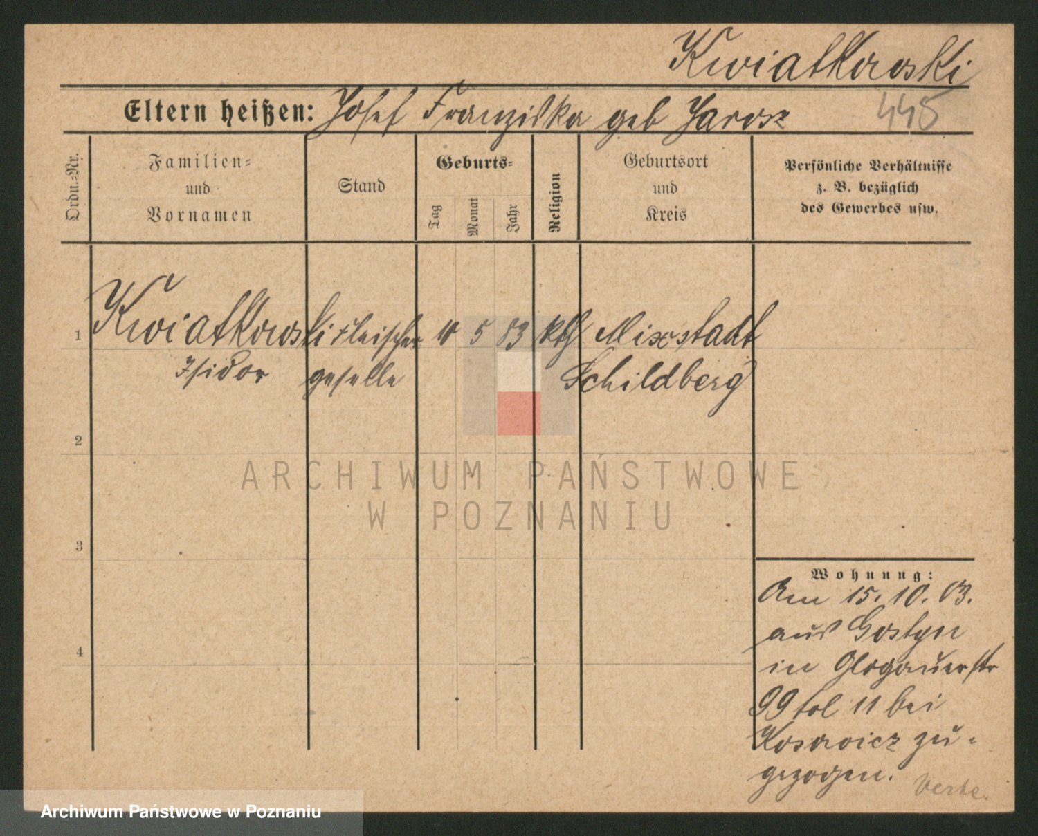 Podgląd karty osobowej dostępny jest po kliknięciu na nazwisko lub ikonkę karty. Można dokonywać powiększenia (ikony na górze) lub przechodzić między kolejnymi skanami (strzałki po bokach).