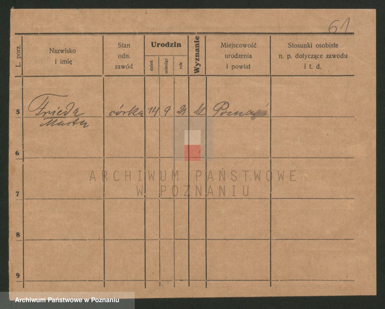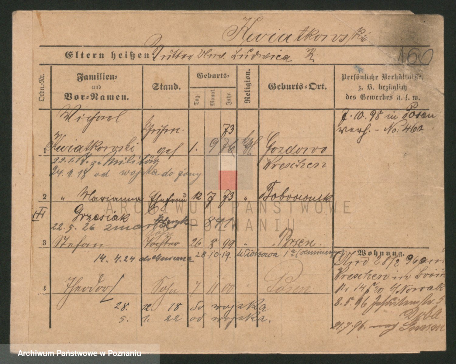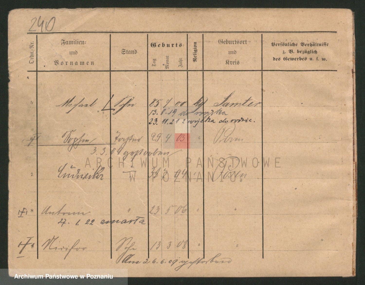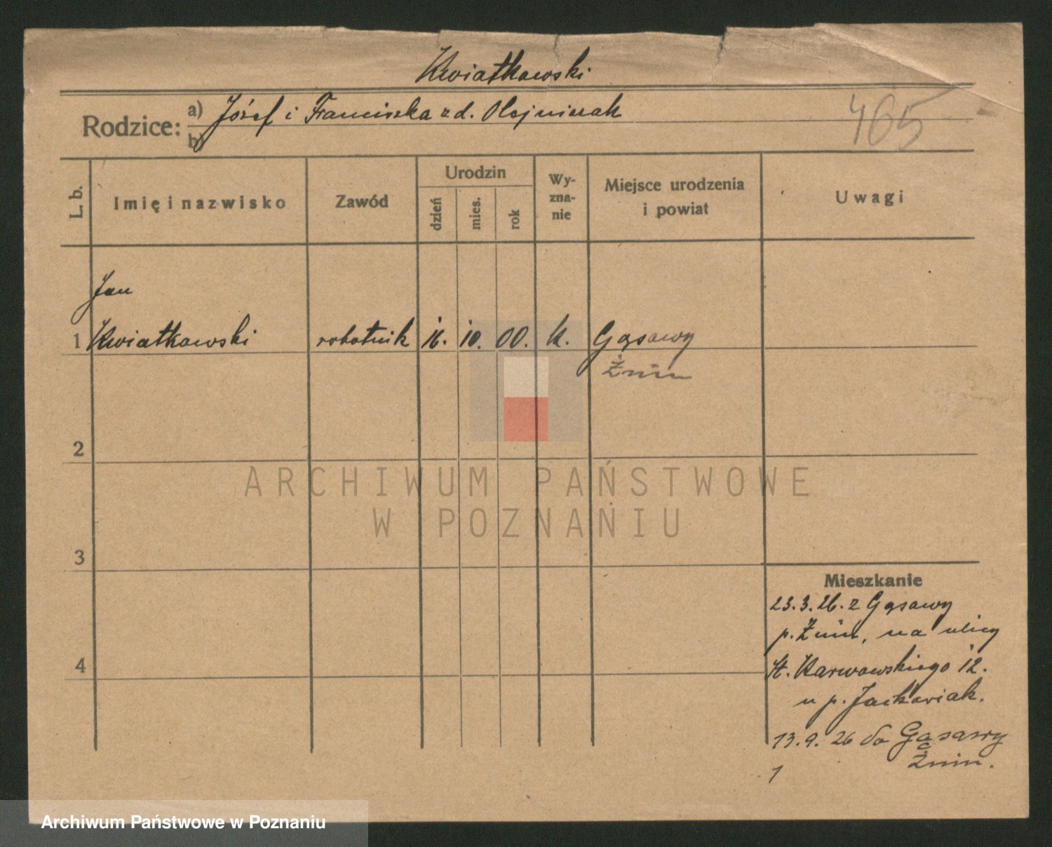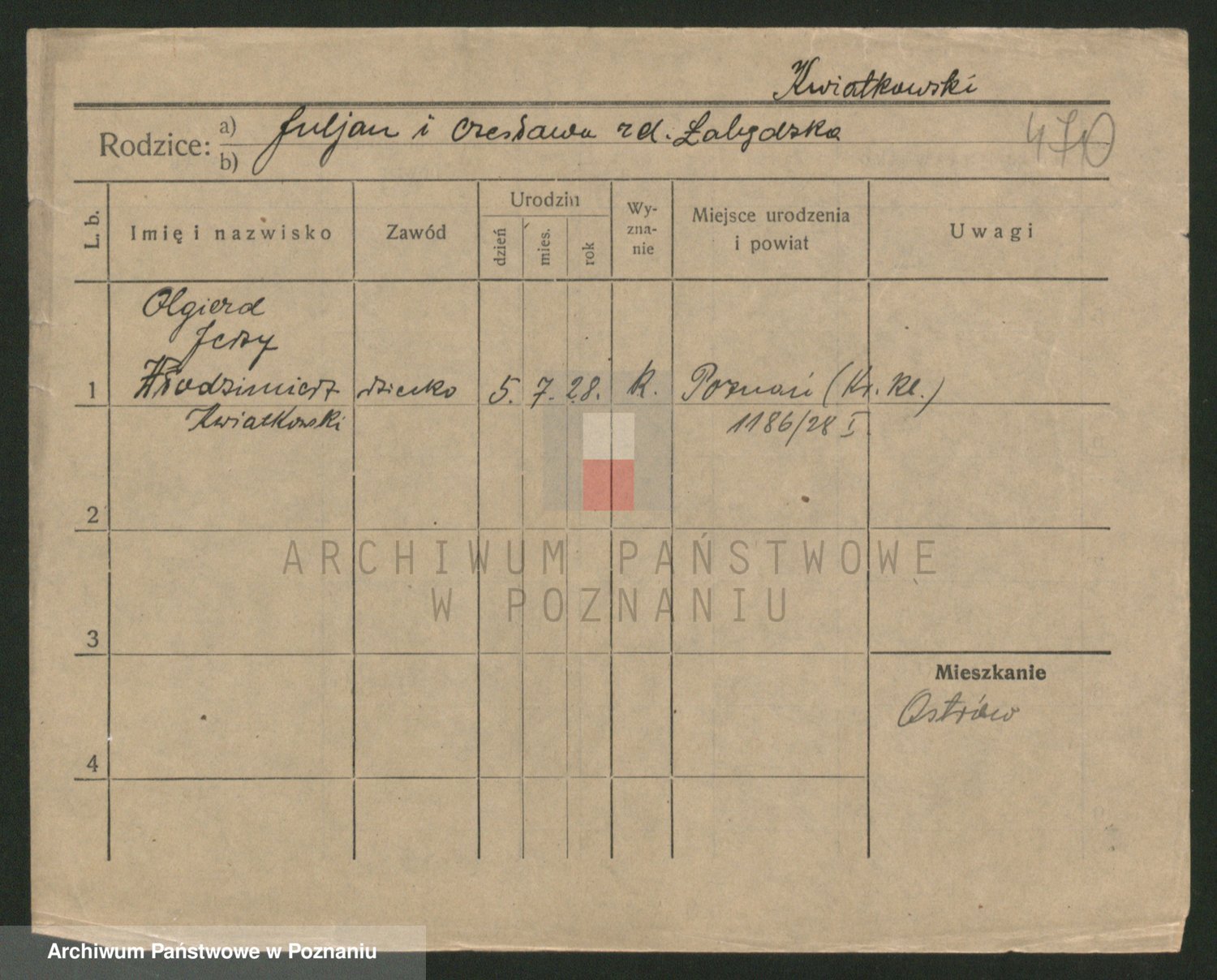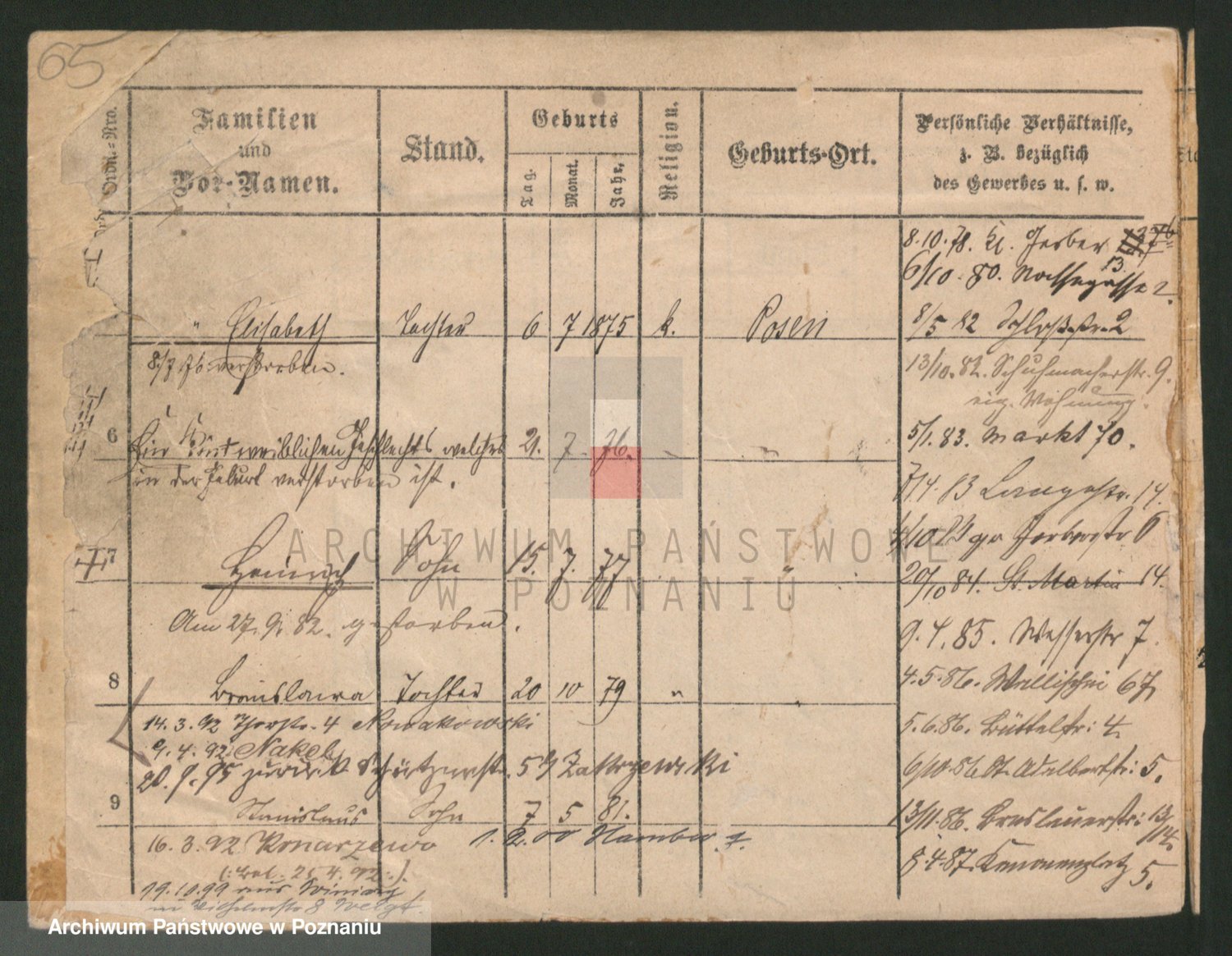 Podgląd karty osobowej dostępny jest po kliknięciu na nazwisko lub ikonkę karty. Można dokonywać powiększenia (ikony na górze) lub przechodzić między kolejnymi skanami (strzałki po bokach).