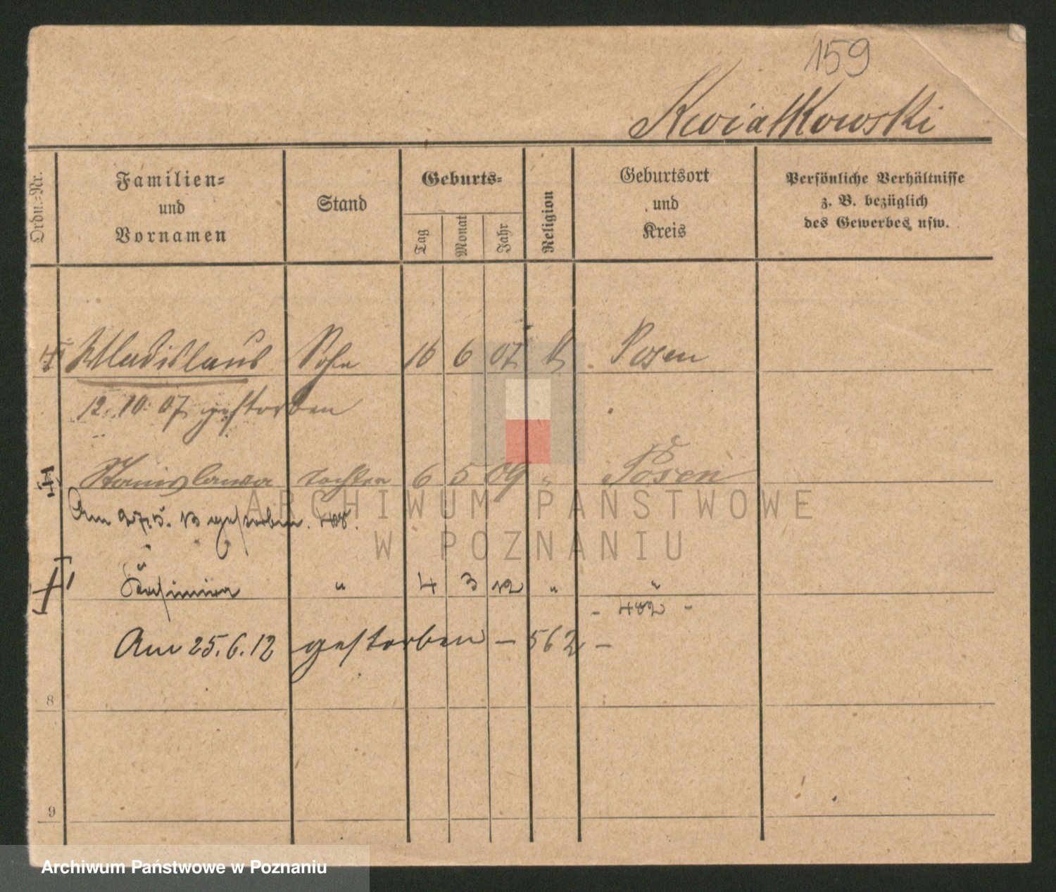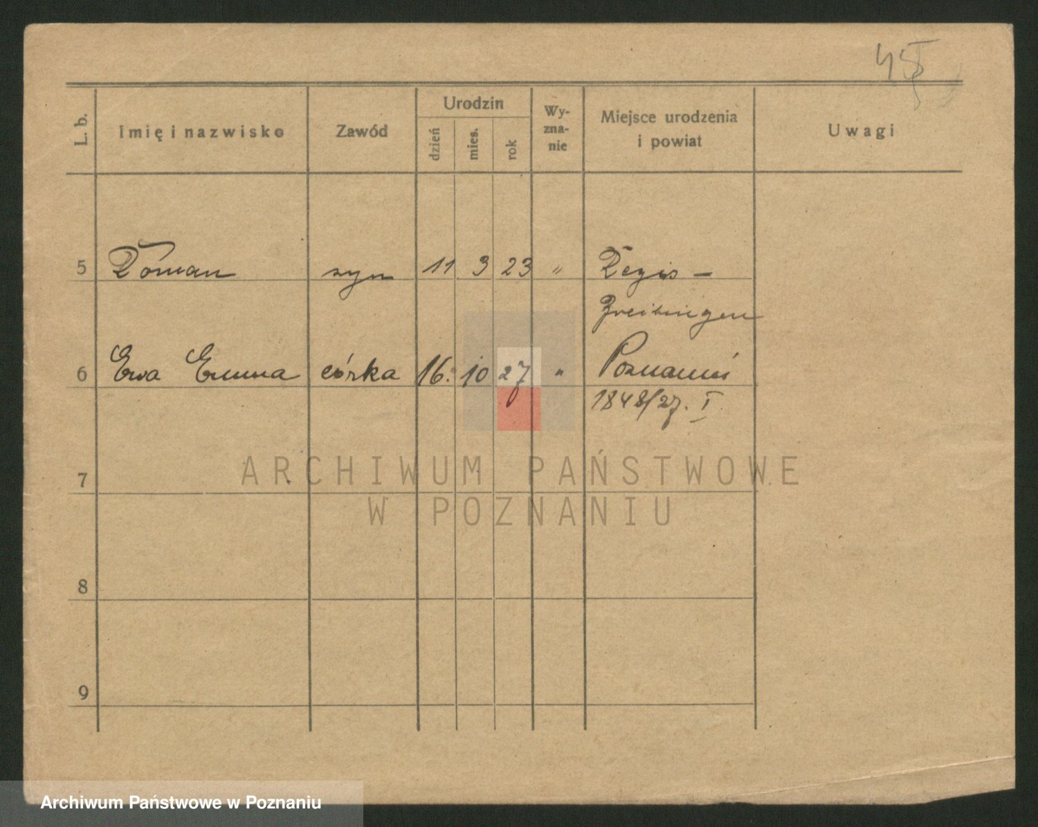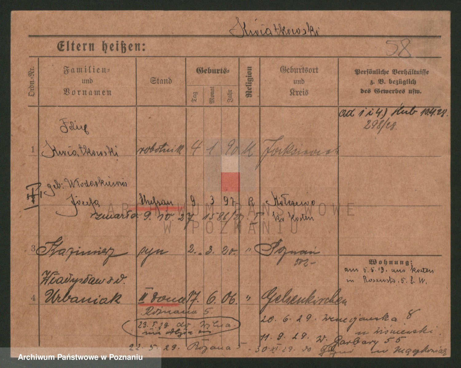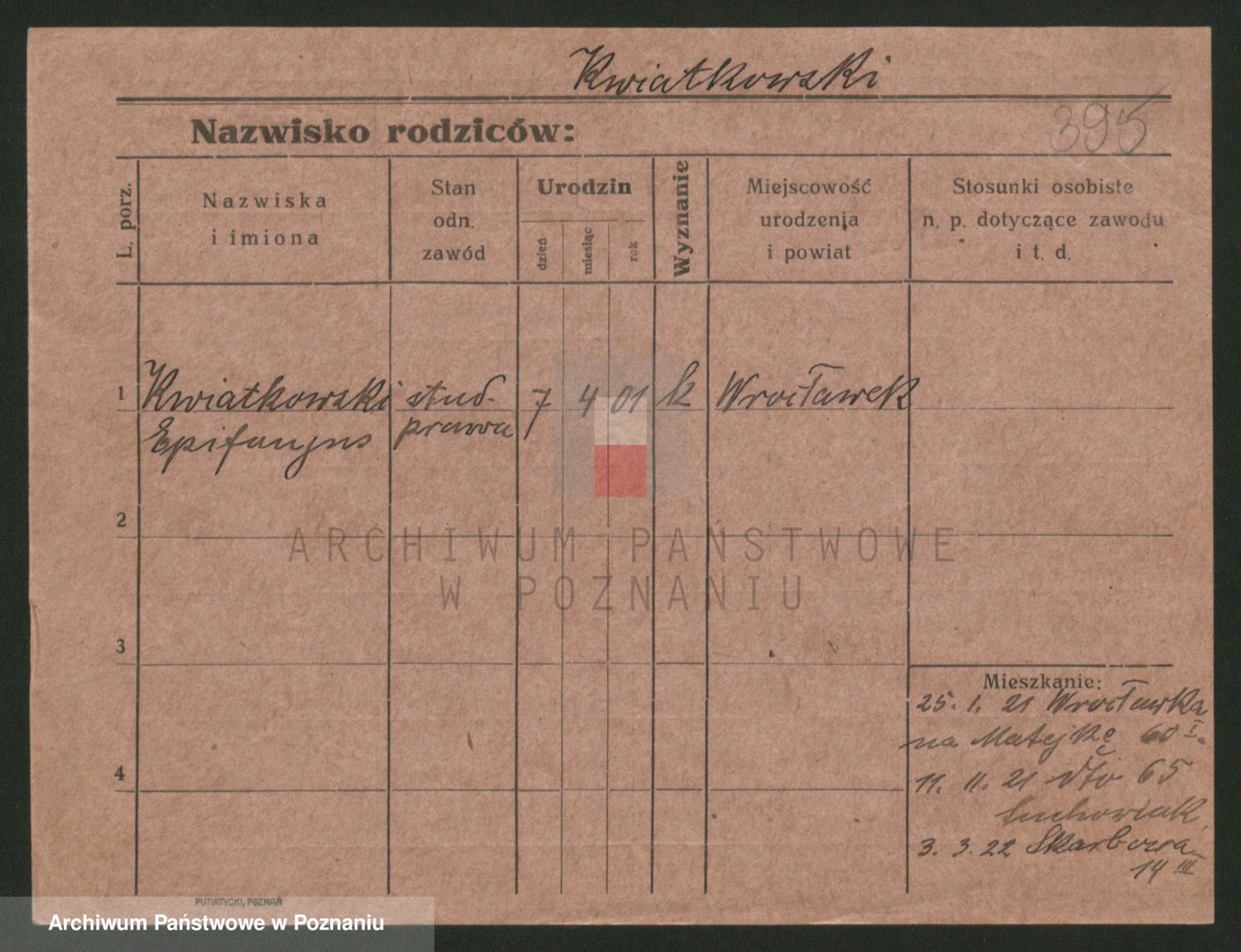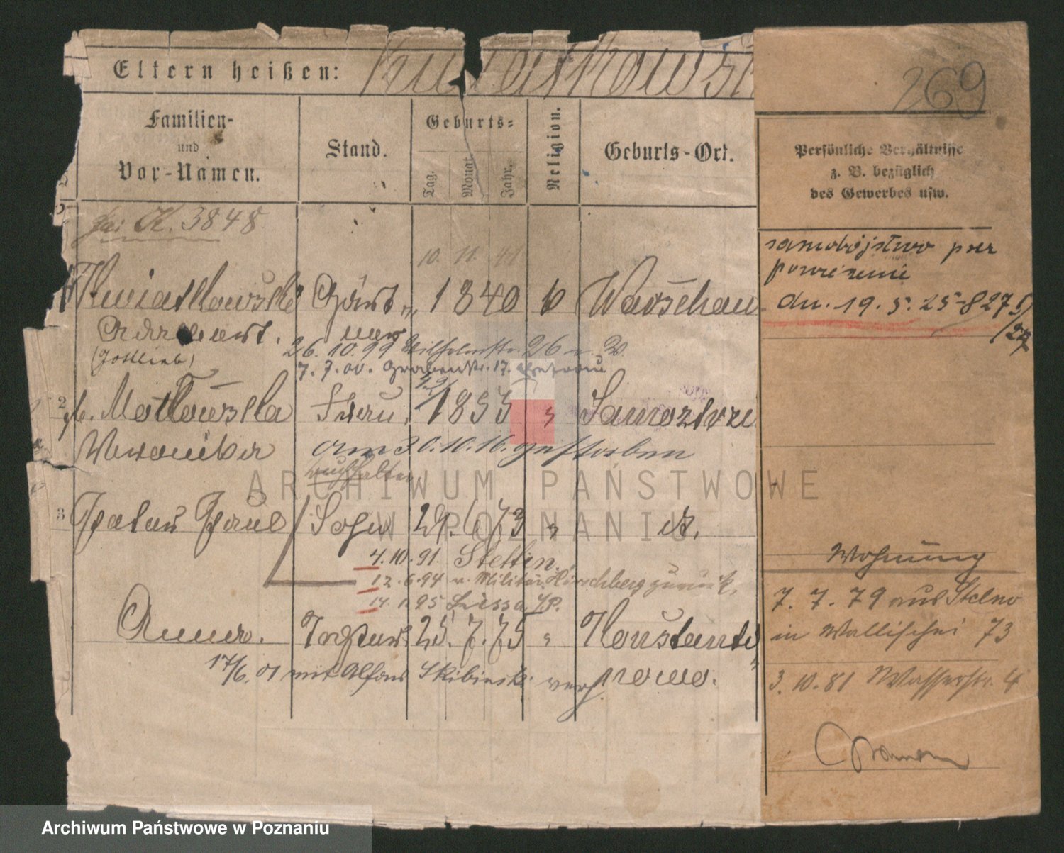 Podgląd karty osobowej dostępny jest po kliknięciu na nazwisko lub ikonkę karty. Można dokonywać powiększenia (ikony na górze) lub przechodzić między kolejnymi skanami (strzałki po bokach).