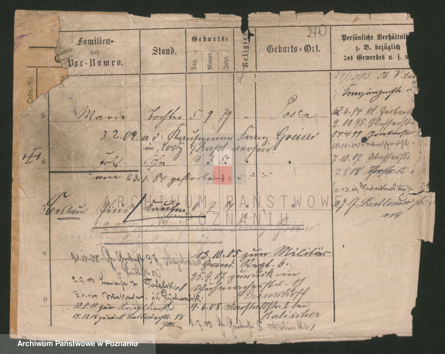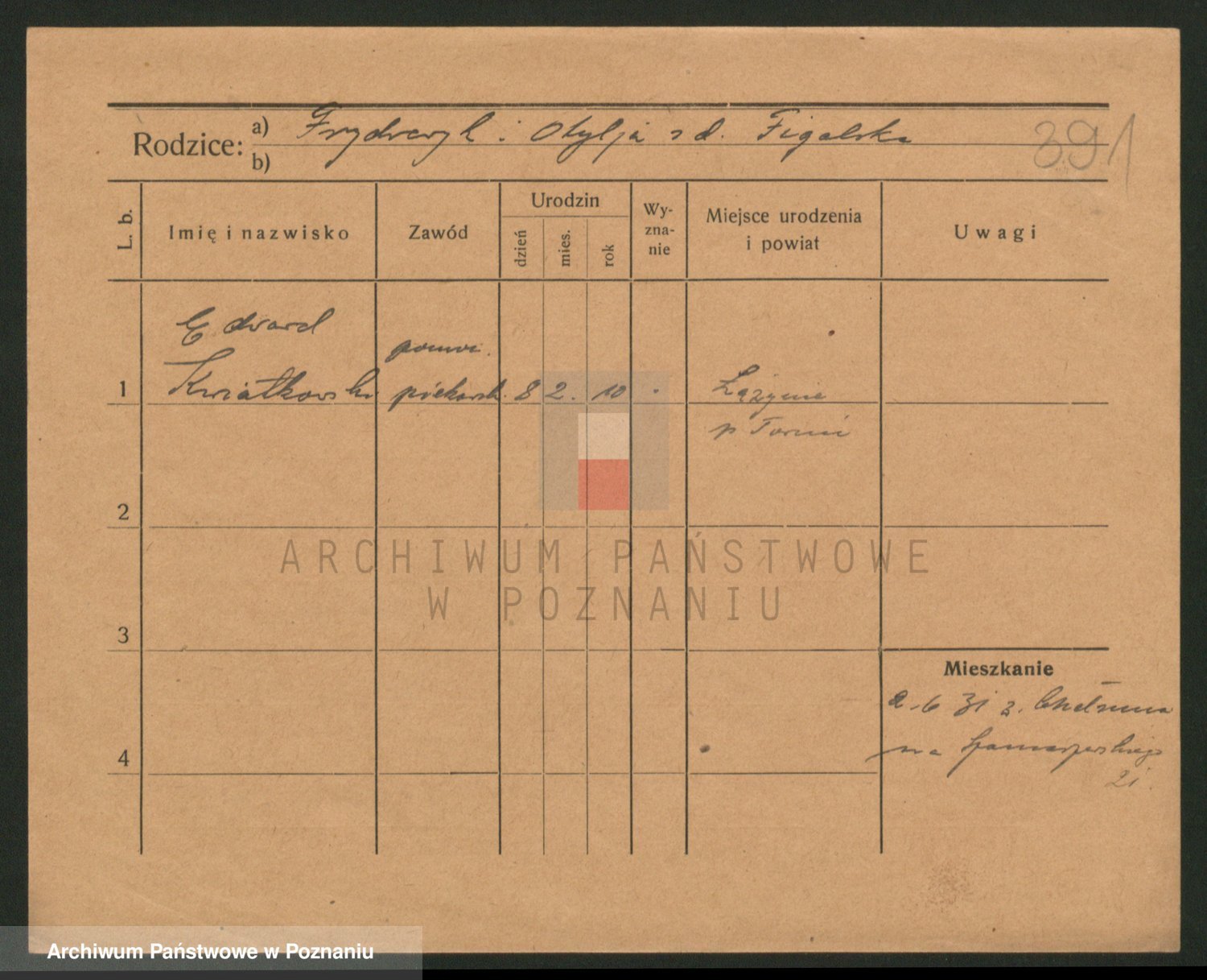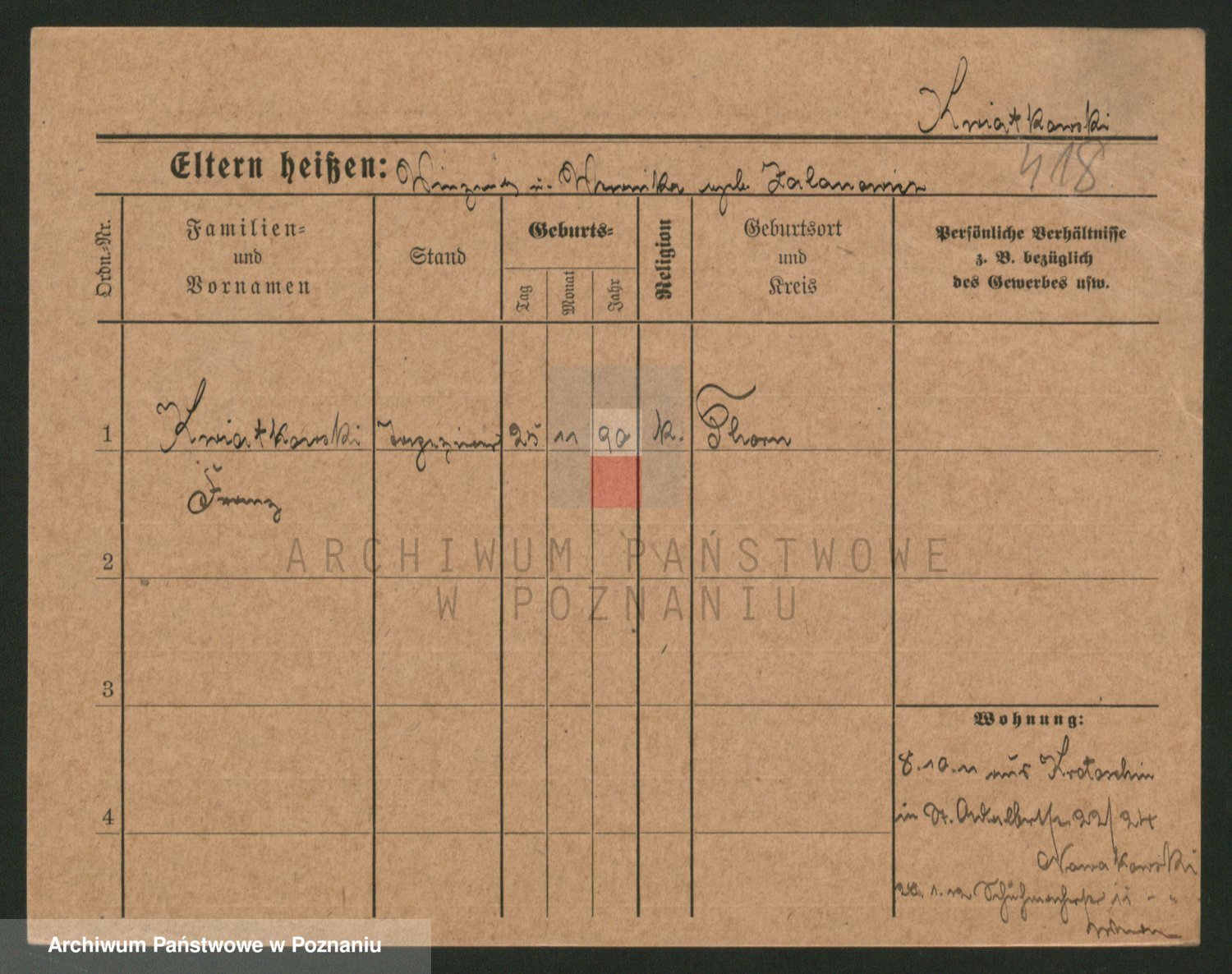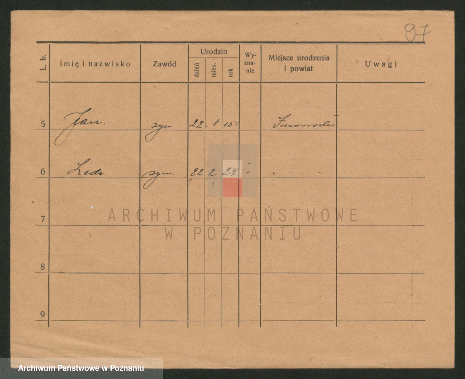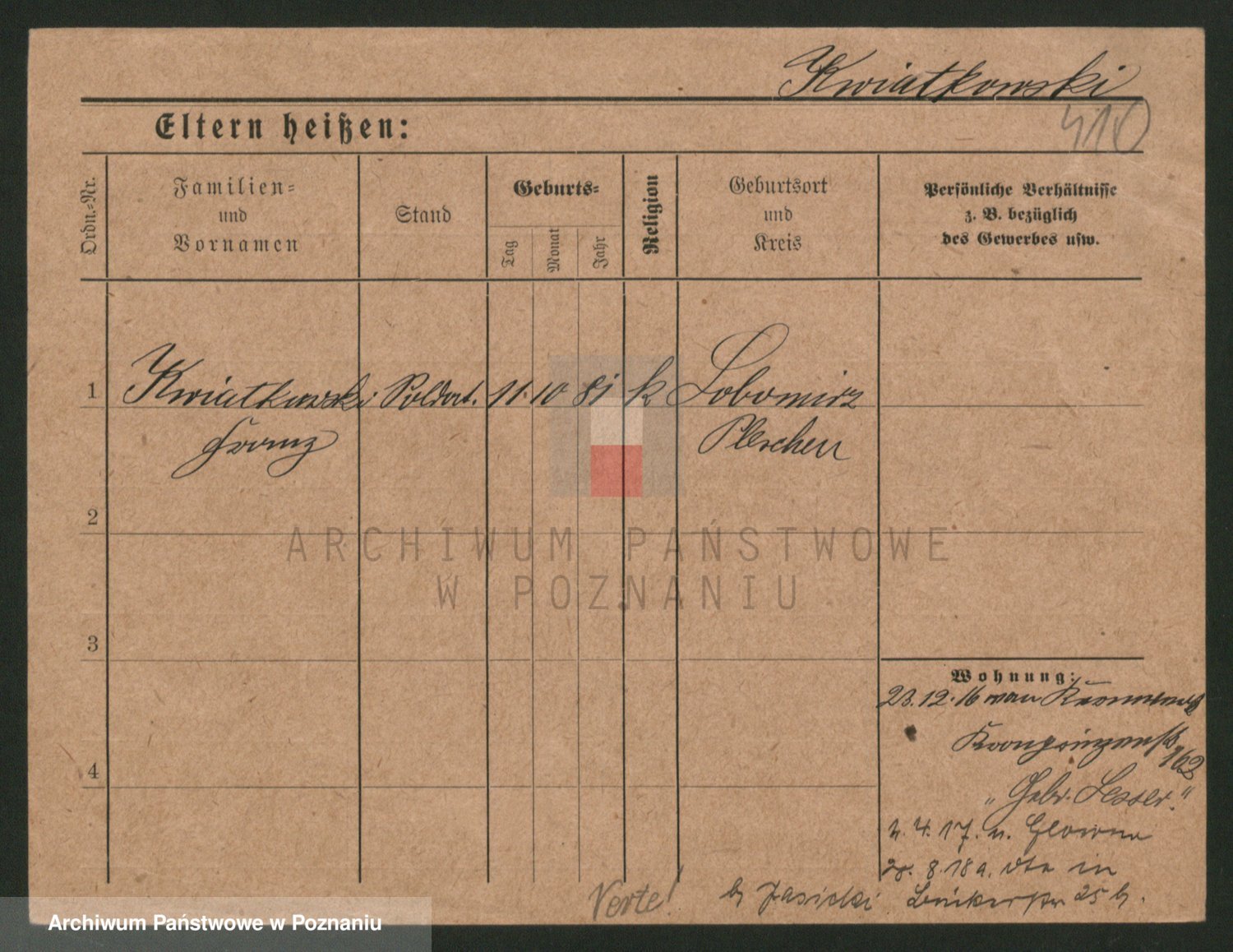 Podgląd karty osobowej dostępny jest po kliknięciu na nazwisko lub ikonkę karty. Można dokonywać powiększenia (ikony na górze) lub przechodzić między kolejnymi skanami (strzałki po bokach).