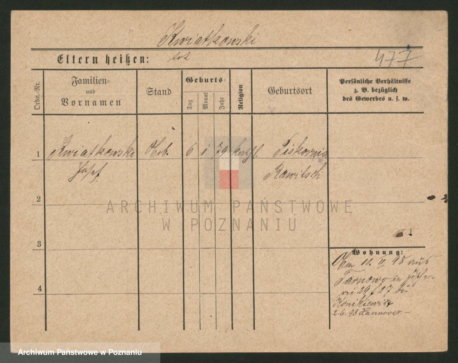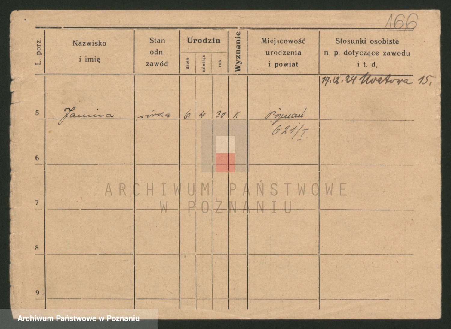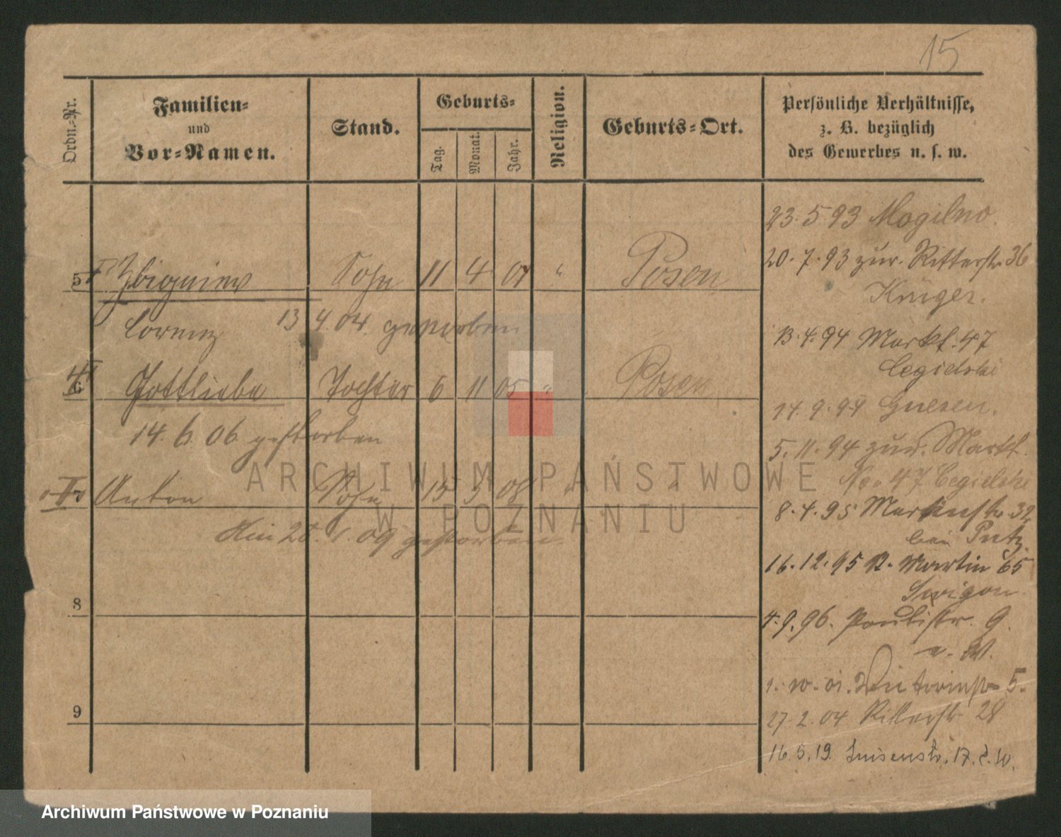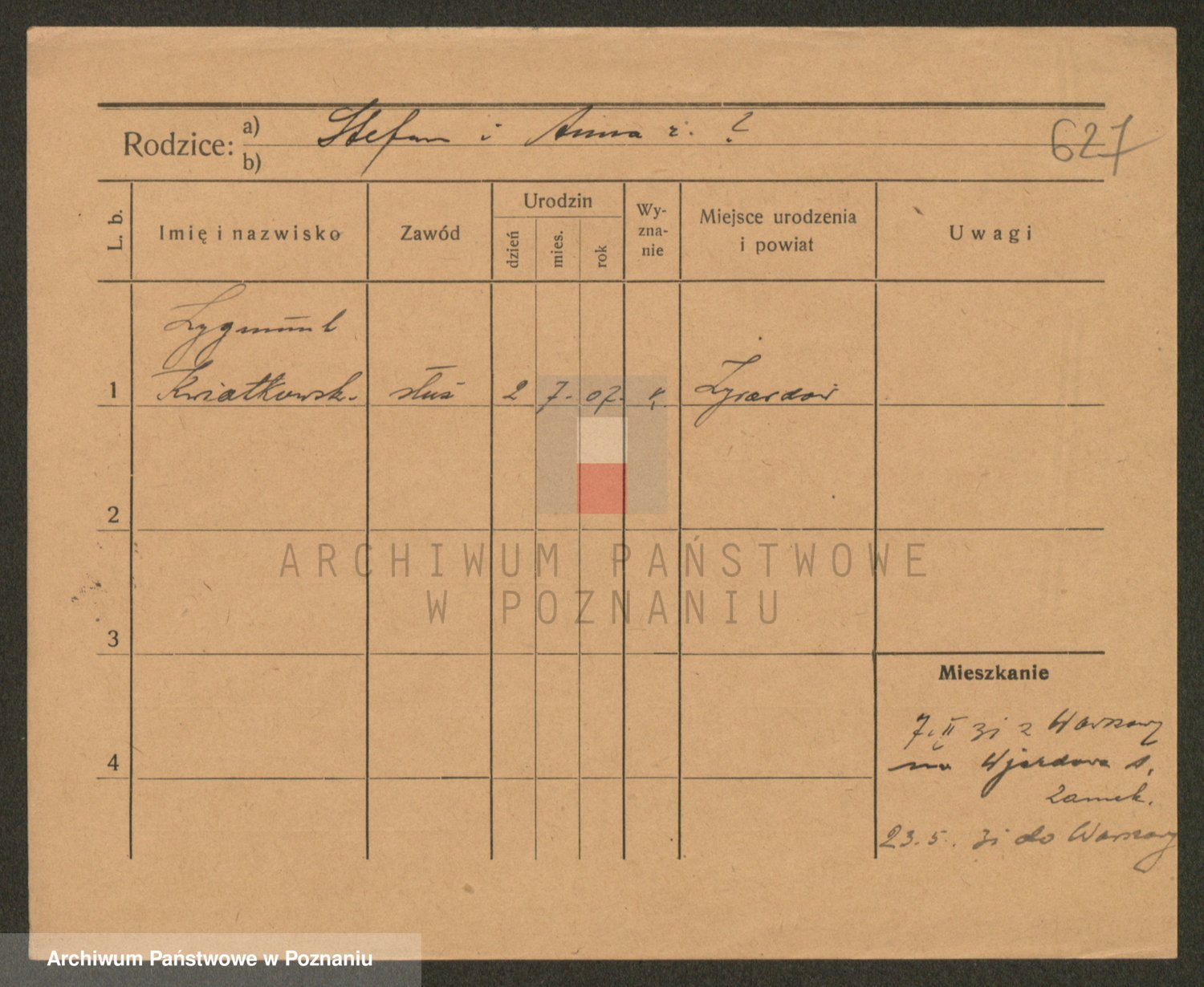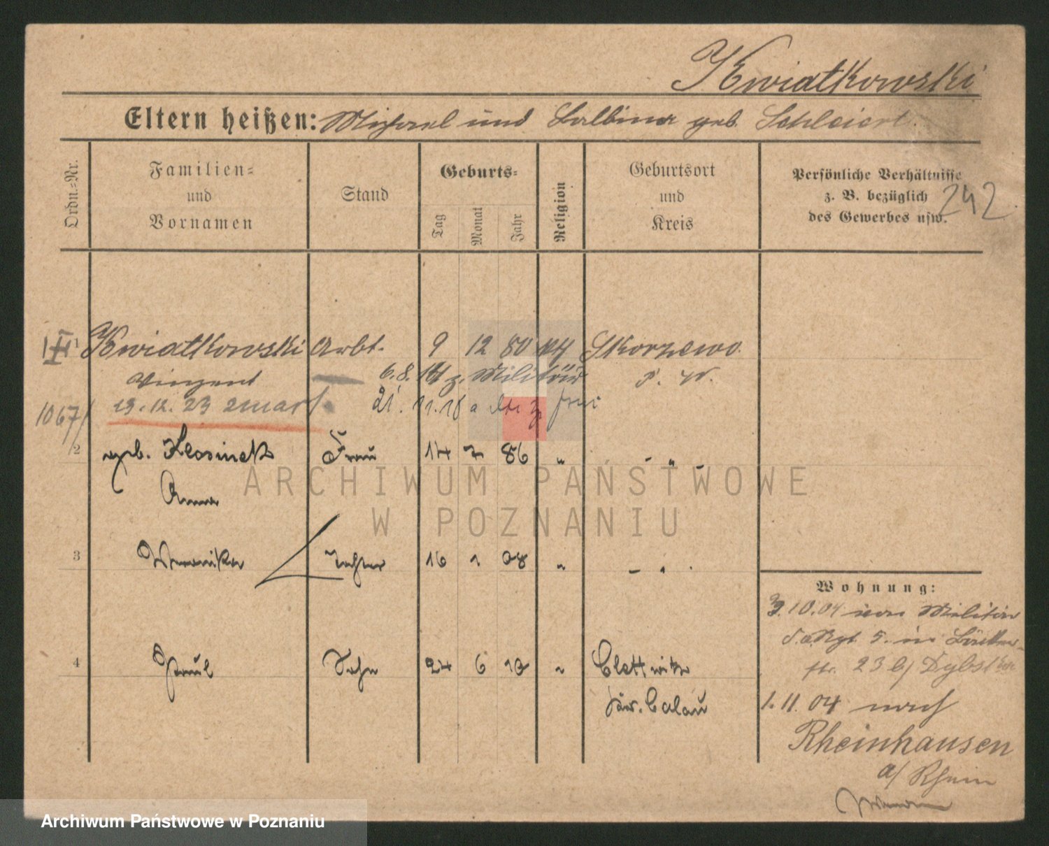 Podgląd karty osobowej dostępny jest po kliknięciu na nazwisko lub ikonkę karty. Można dokonywać powiększenia (ikony na górze) lub przechodzić między kolejnymi skanami (strzałki po bokach).