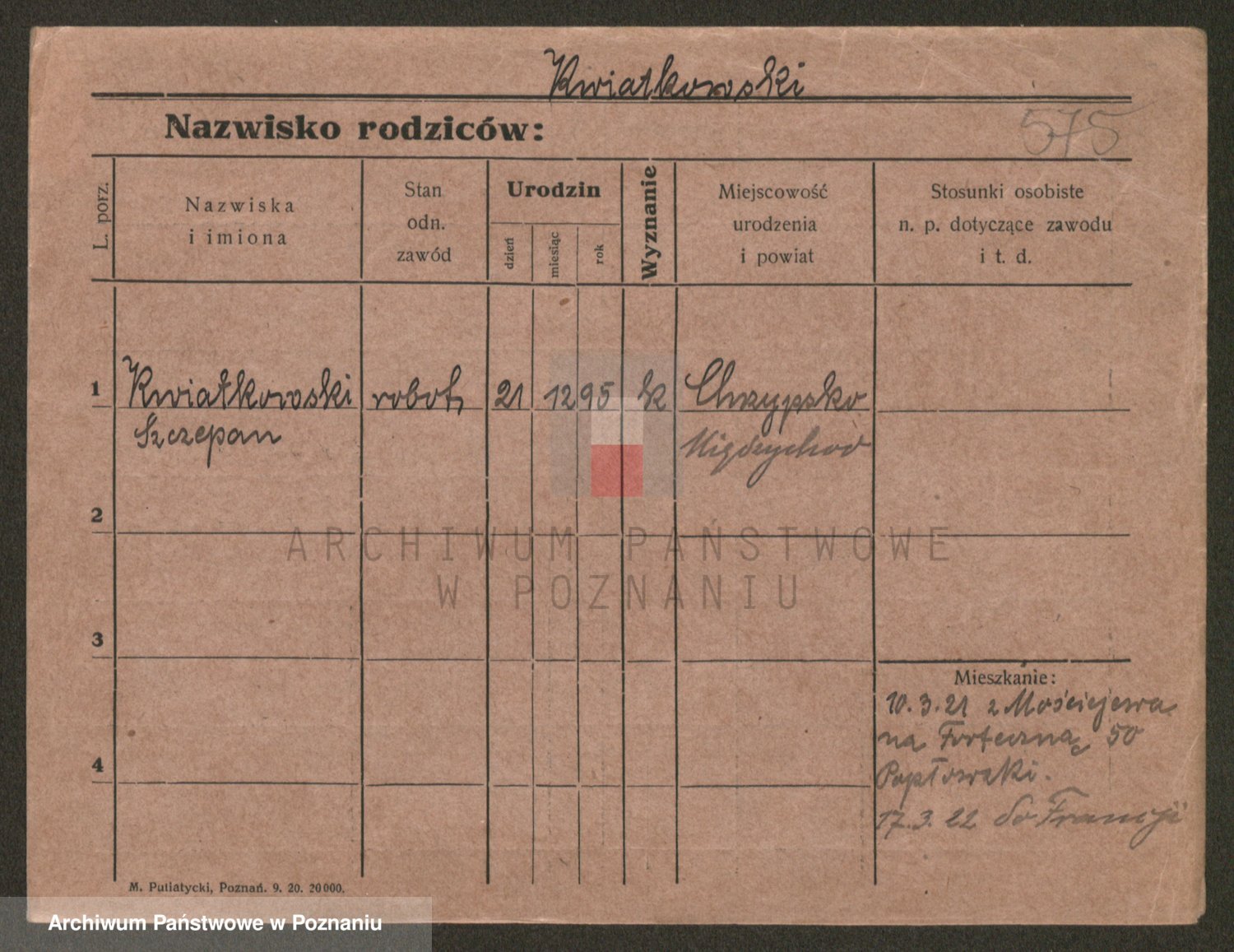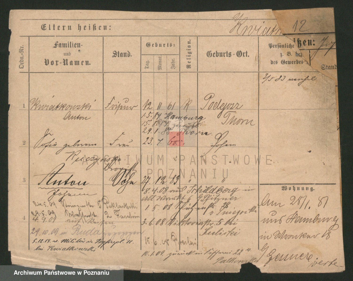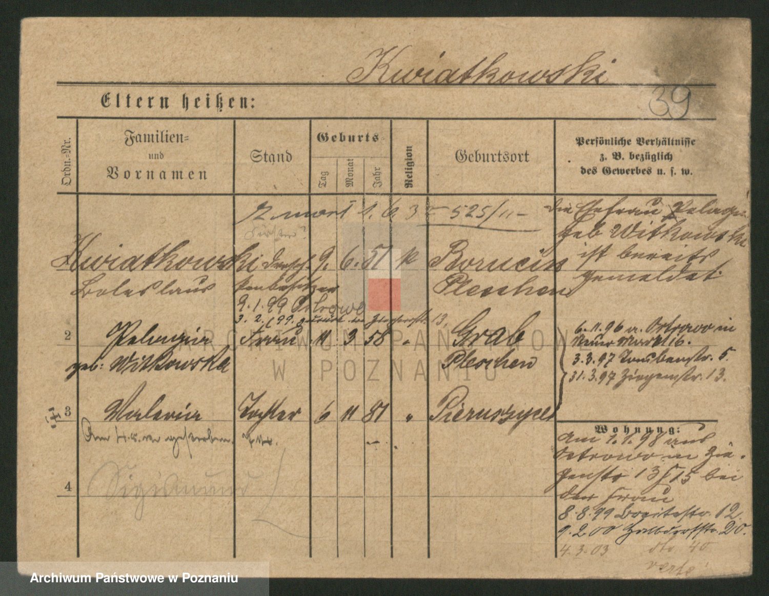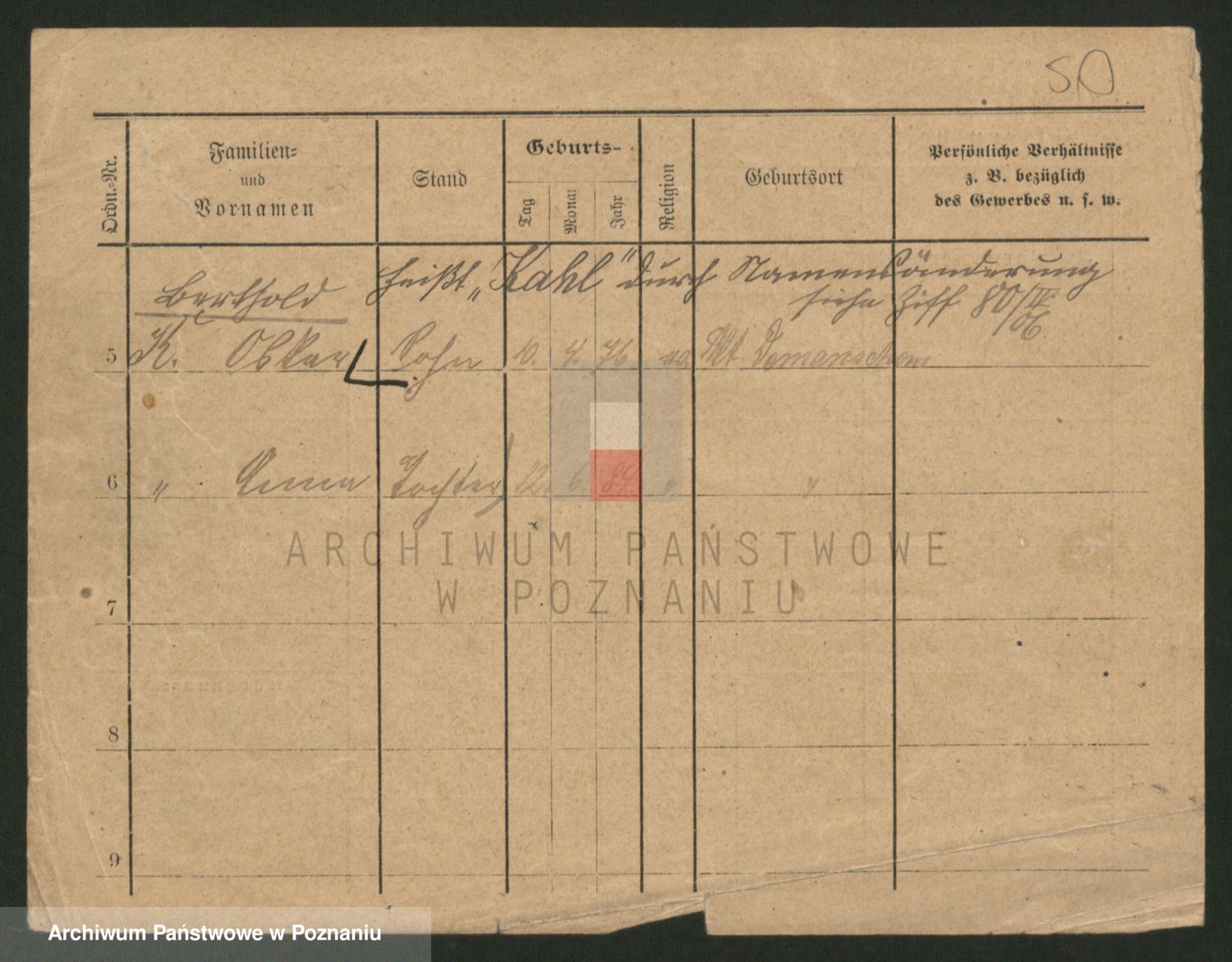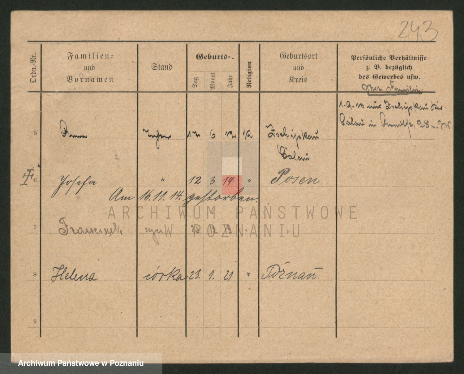 Podgląd karty osobowej dostępny jest po kliknięciu na nazwisko lub ikonkę karty. Można dokonywać powiększenia (ikony na górze) lub przechodzić między kolejnymi skanami (strzałki po bokach).