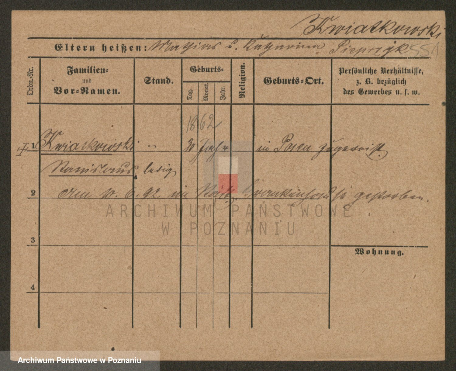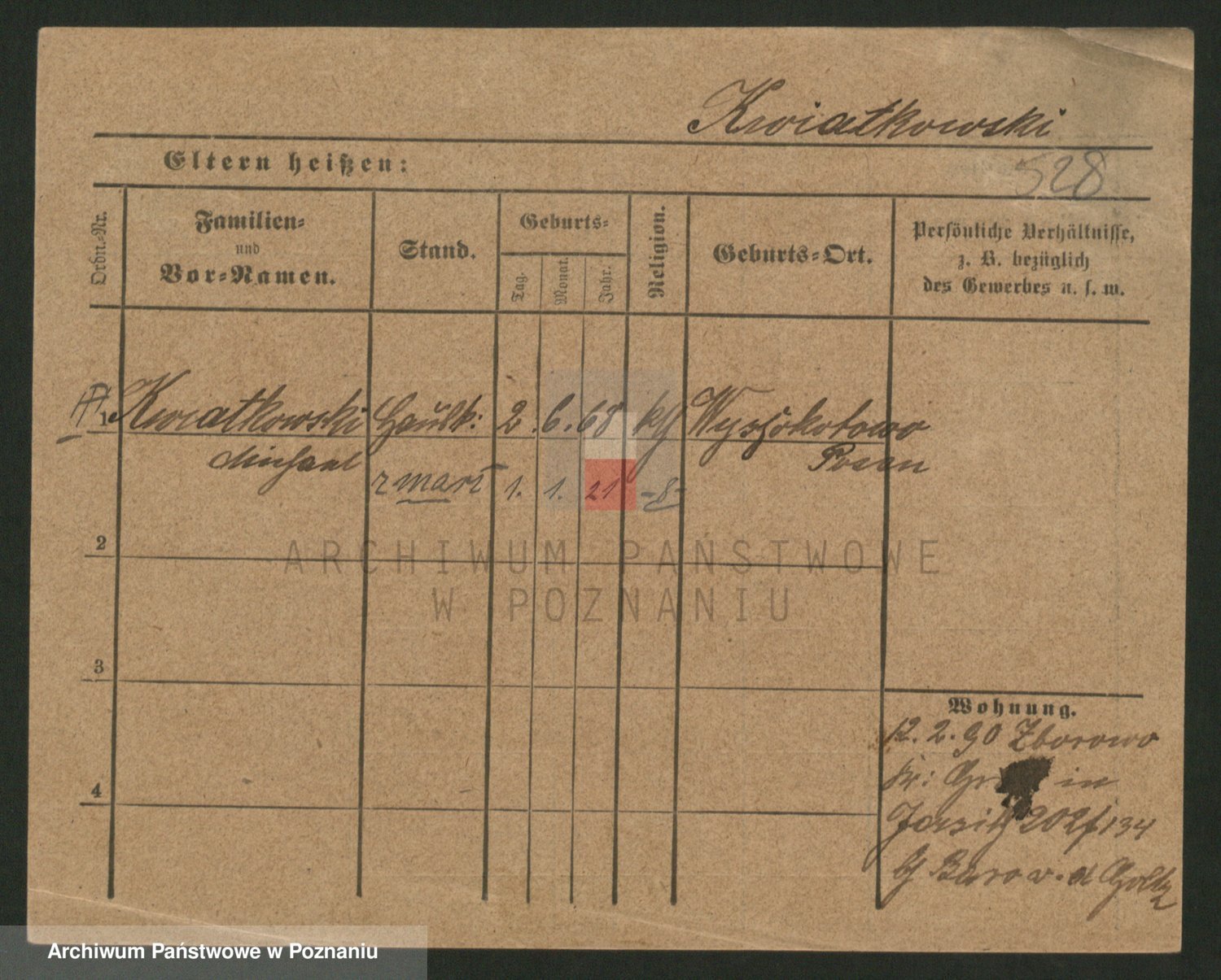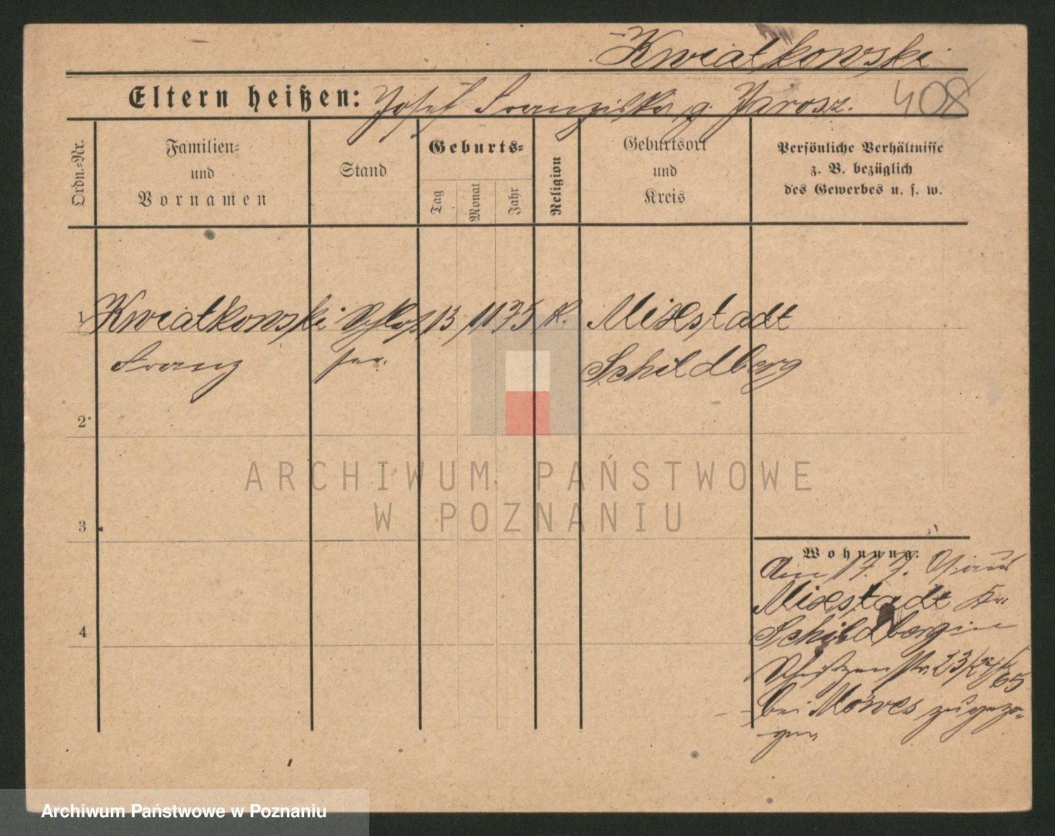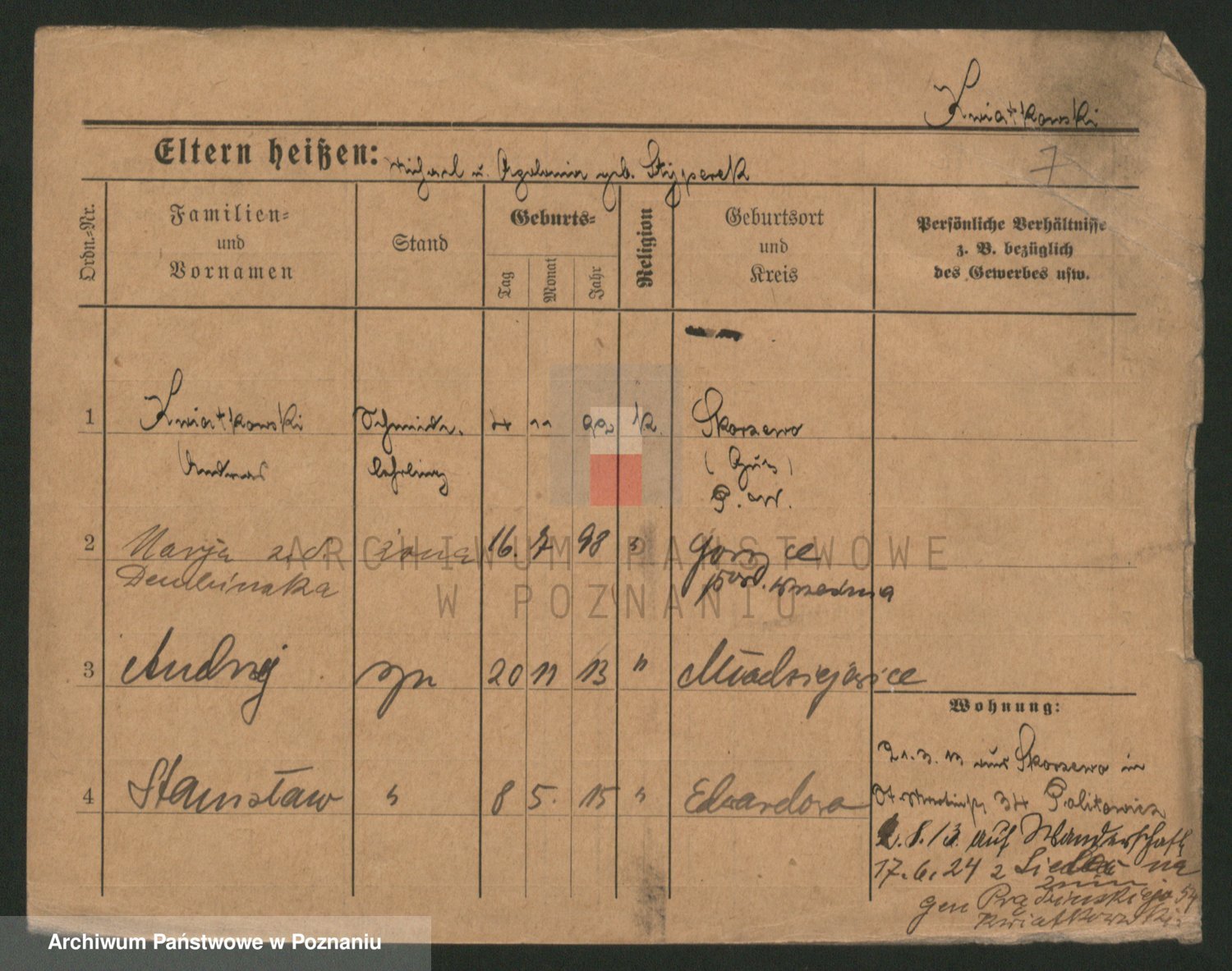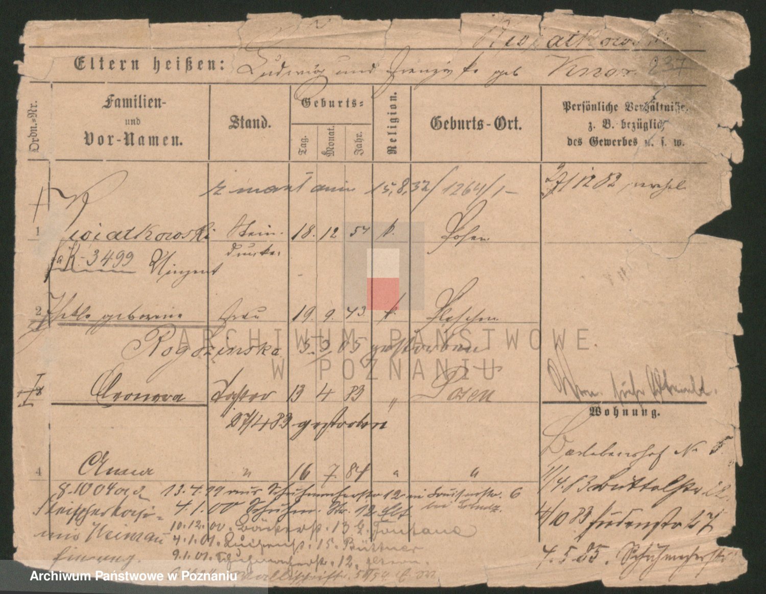 Podgląd karty osobowej dostępny jest po kliknięciu na nazwisko lub ikonkę karty. Można dokonywać powiększenia (ikony na górze) lub przechodzić między kolejnymi skanami (strzałki po bokach).
