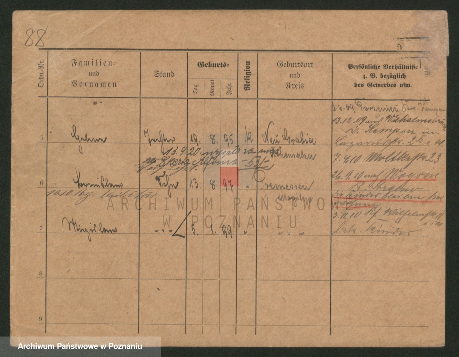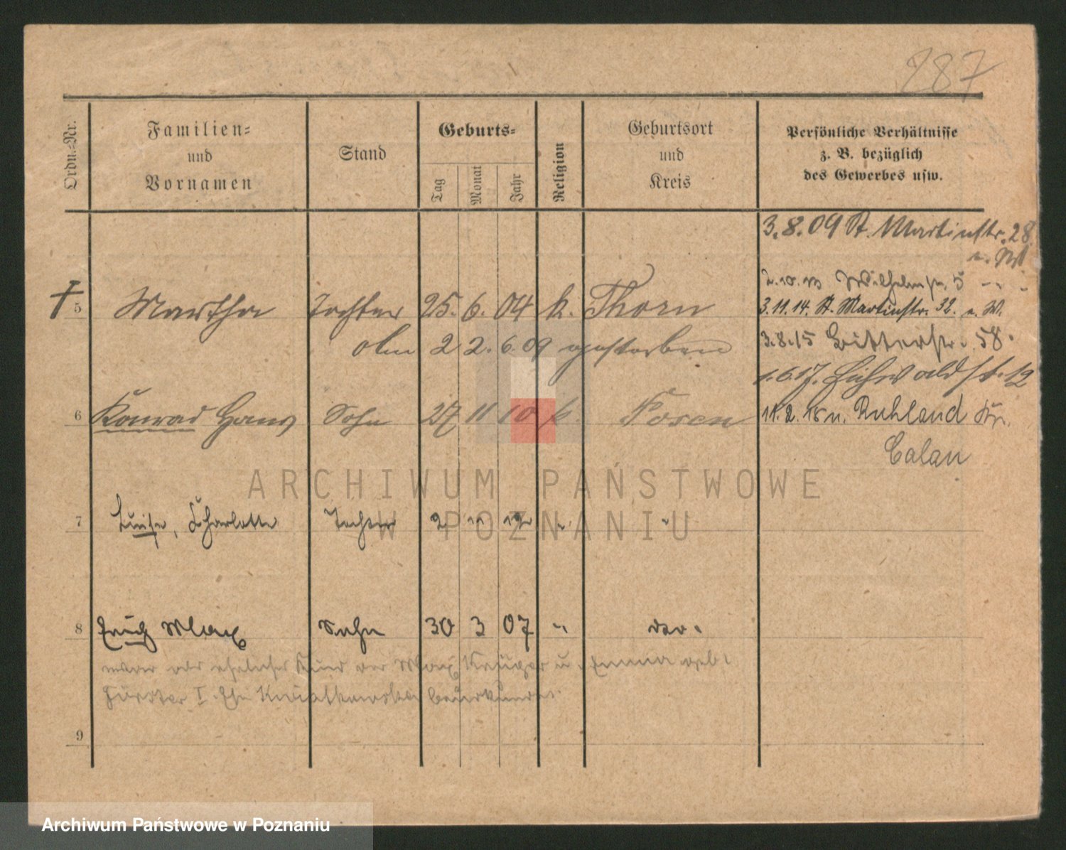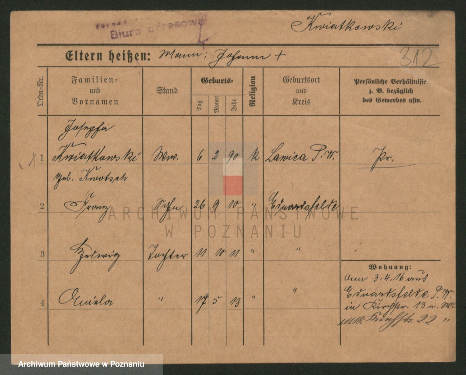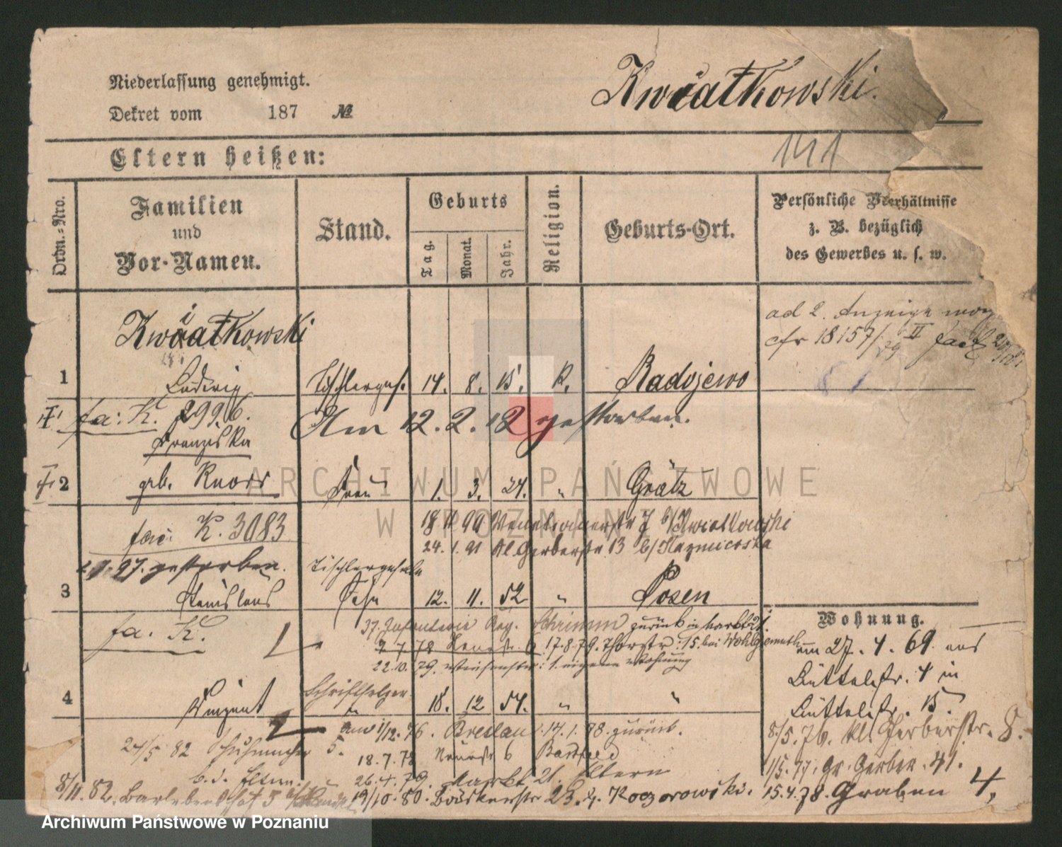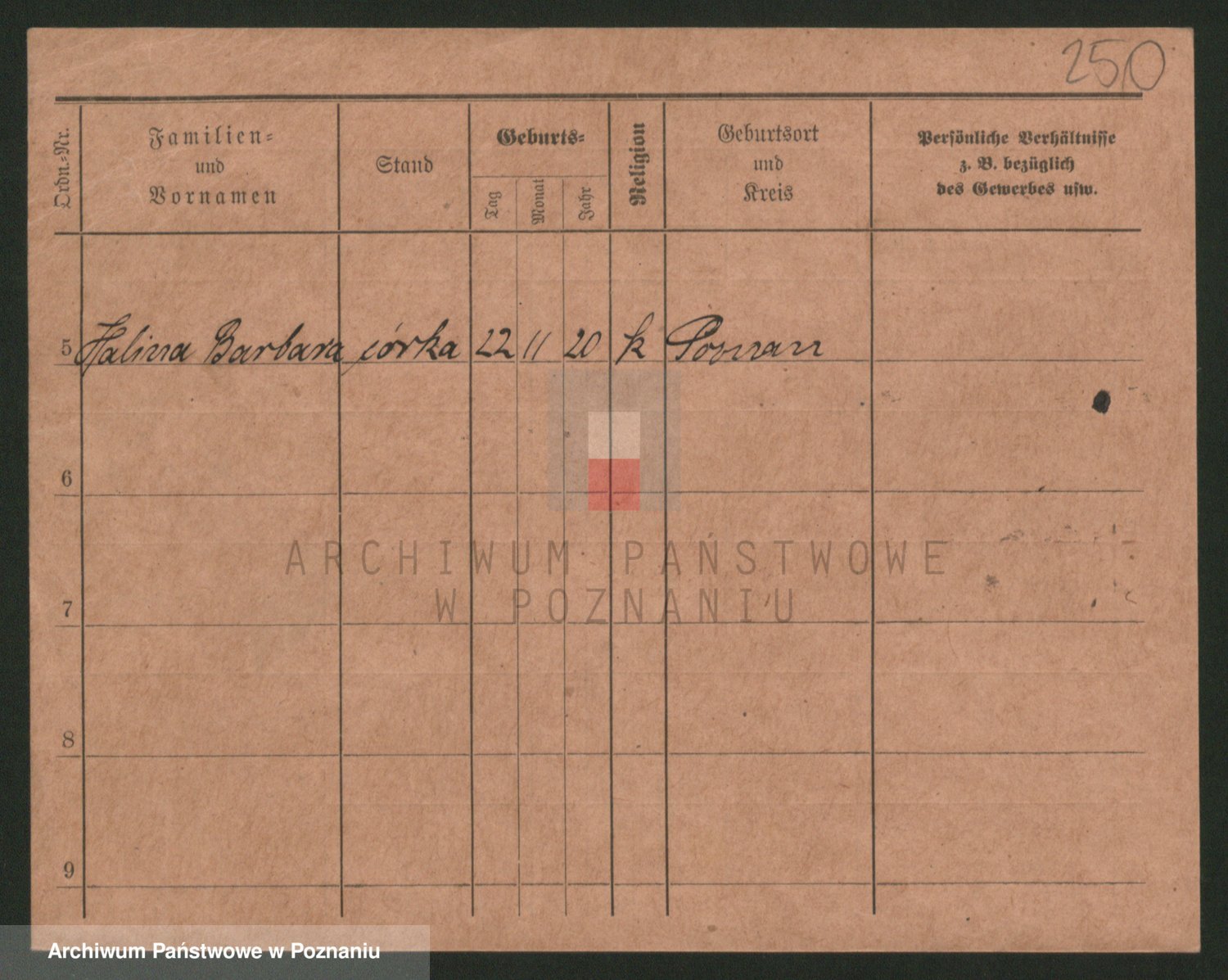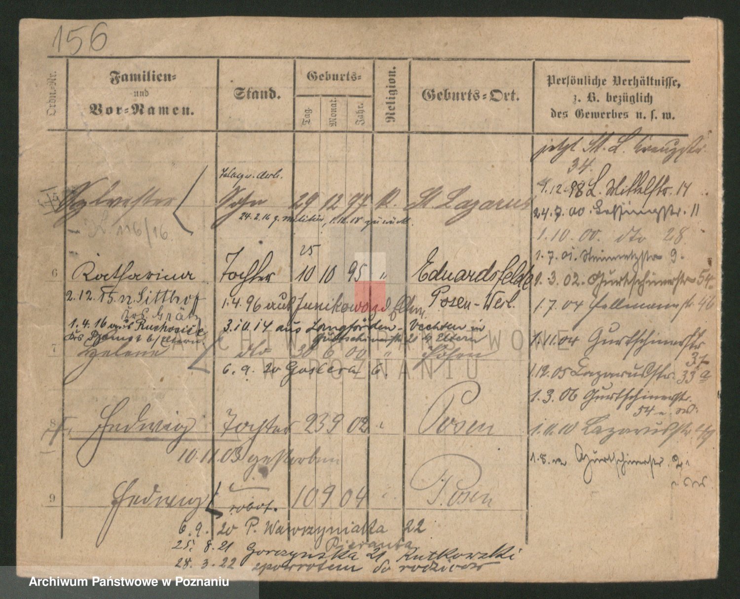 Podgląd karty osobowej dostępny jest po kliknięciu na nazwisko lub ikonkę karty. Można dokonywać powiększenia (ikony na górze) lub przechodzić między kolejnymi skanami (strzałki po bokach).