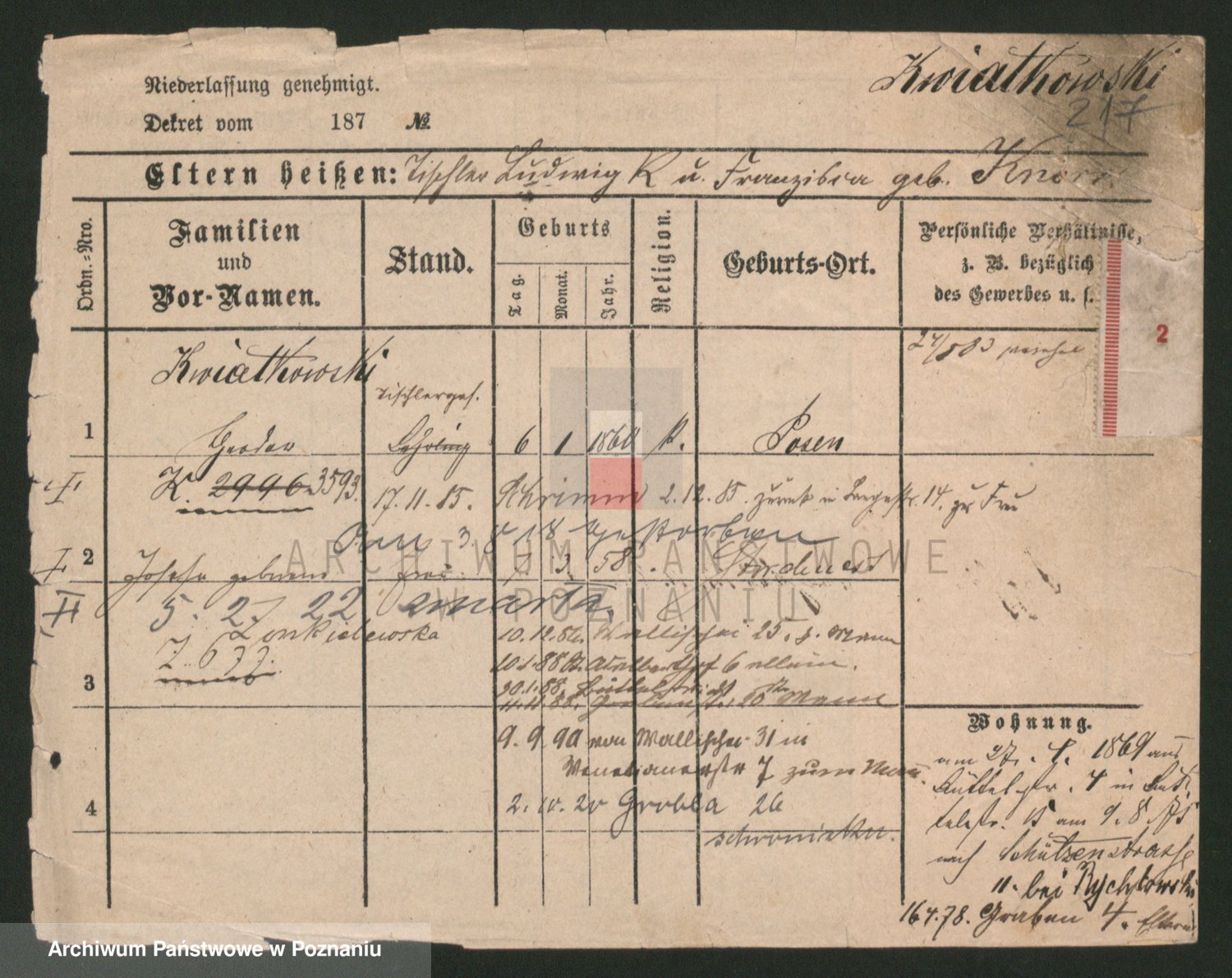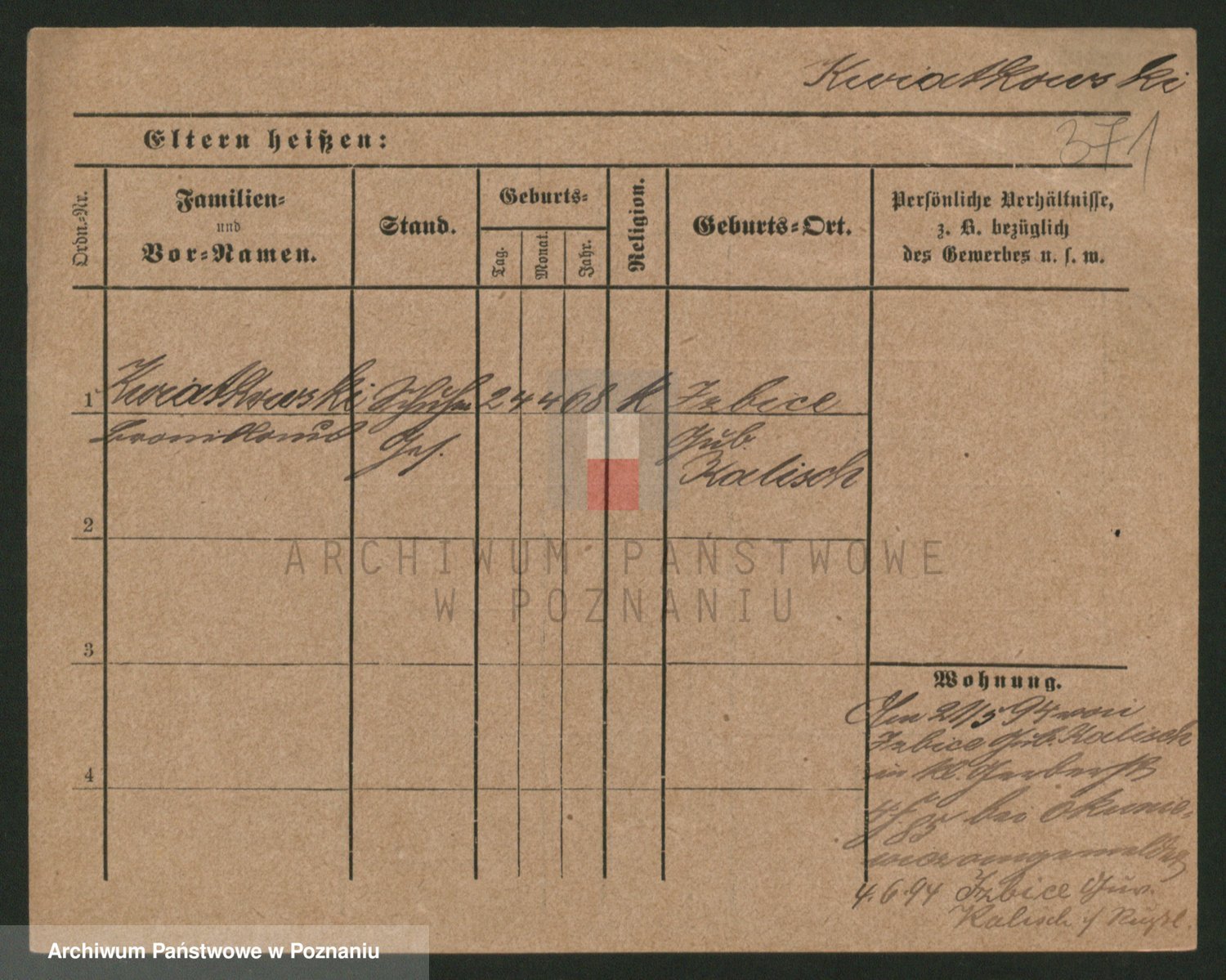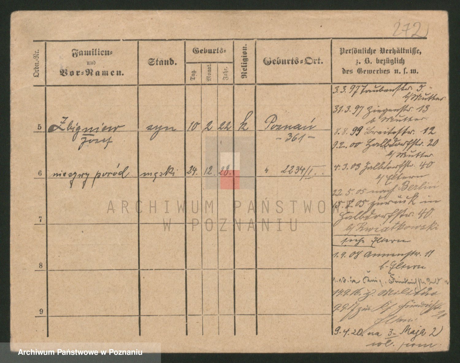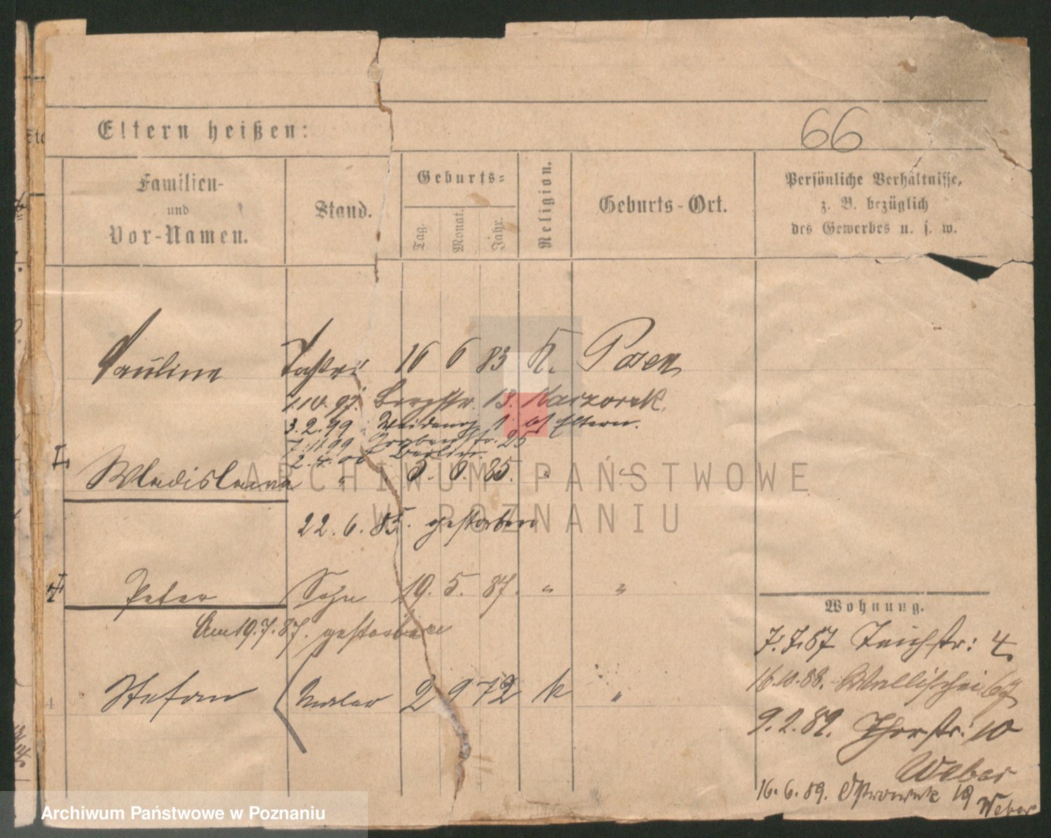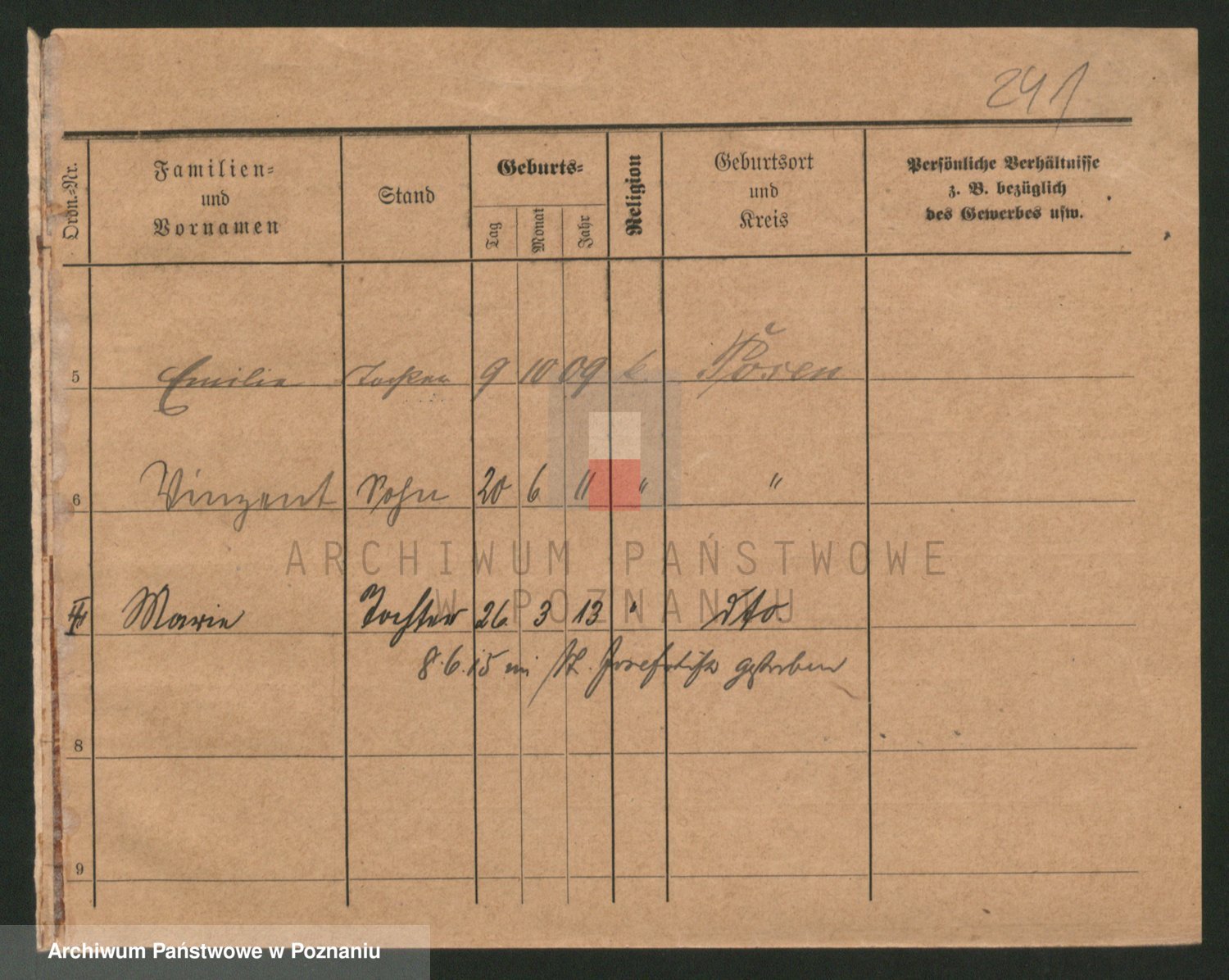 Podgląd karty osobowej dostępny jest po kliknięciu na nazwisko lub ikonkę karty. Można dokonywać powiększenia (ikony na górze) lub przechodzić między kolejnymi skanami (strzałki po bokach).
