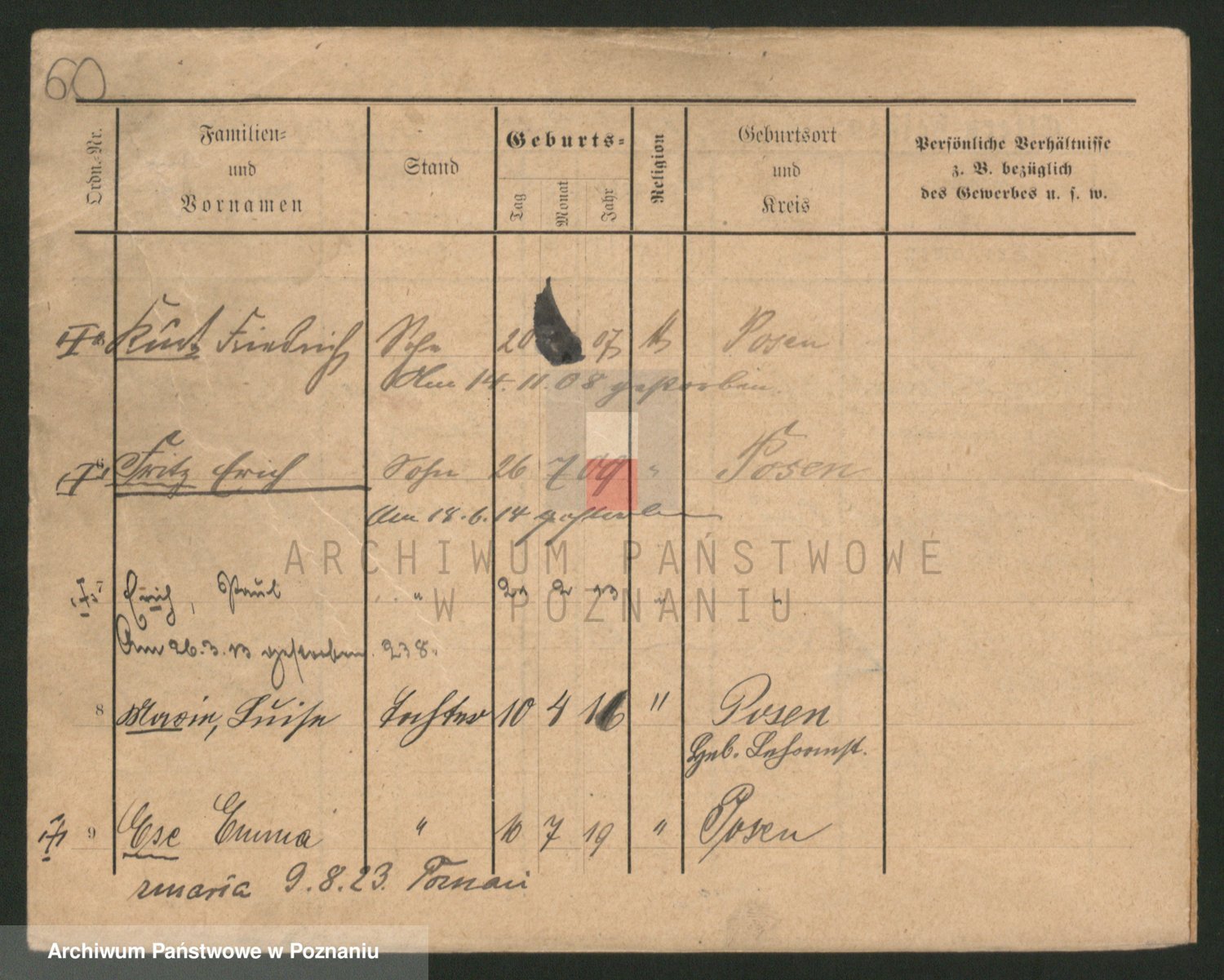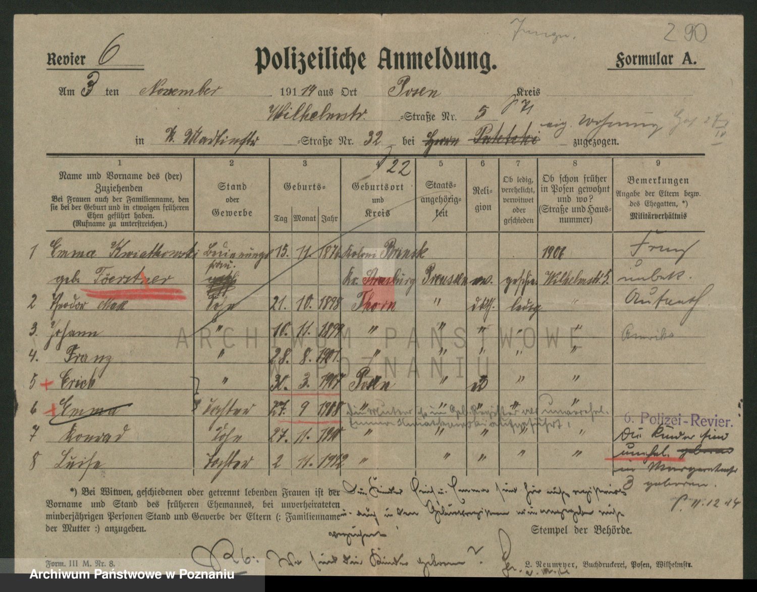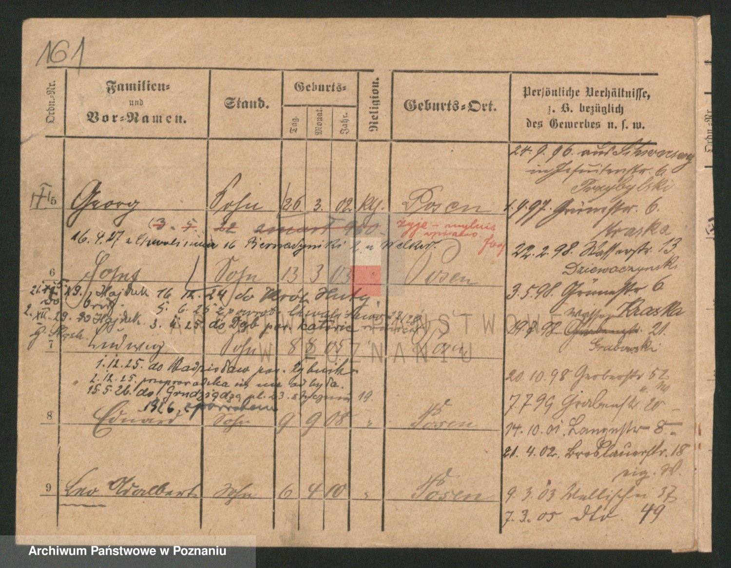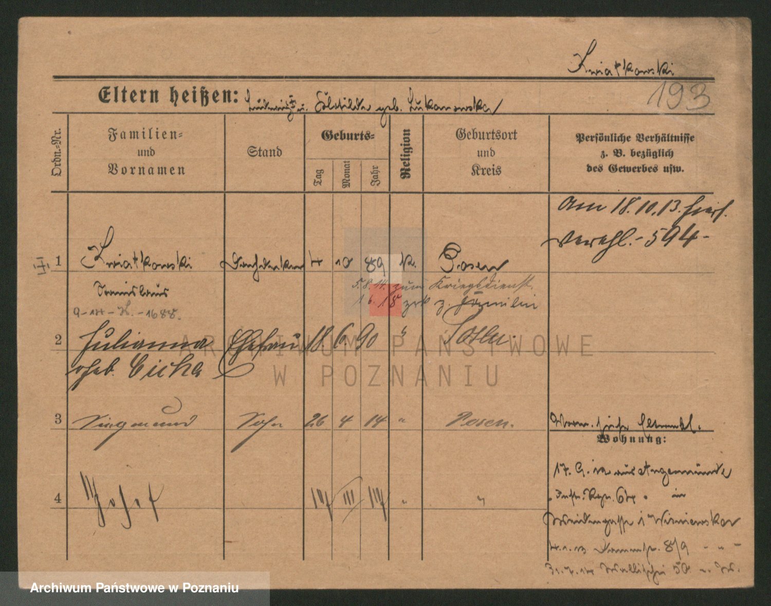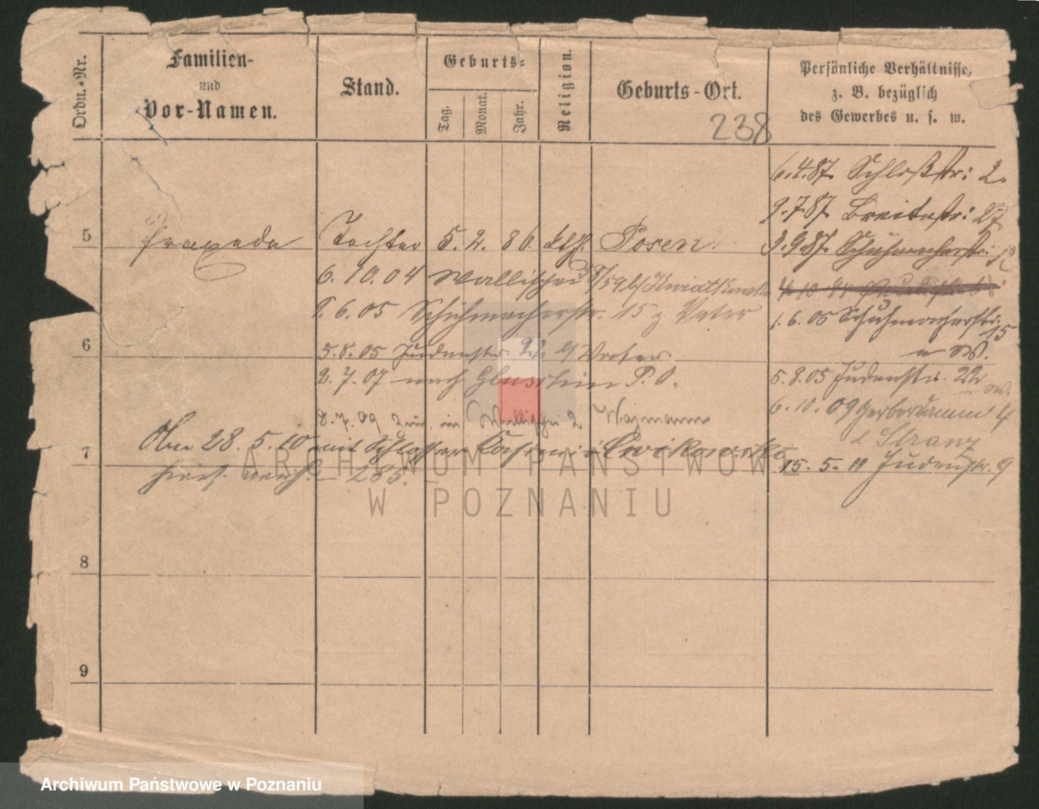 Podgląd karty osobowej dostępny jest po kliknięciu na nazwisko lub ikonkę karty. Można dokonywać powiększenia (ikony na górze) lub przechodzić między kolejnymi skanami (strzałki po bokach).