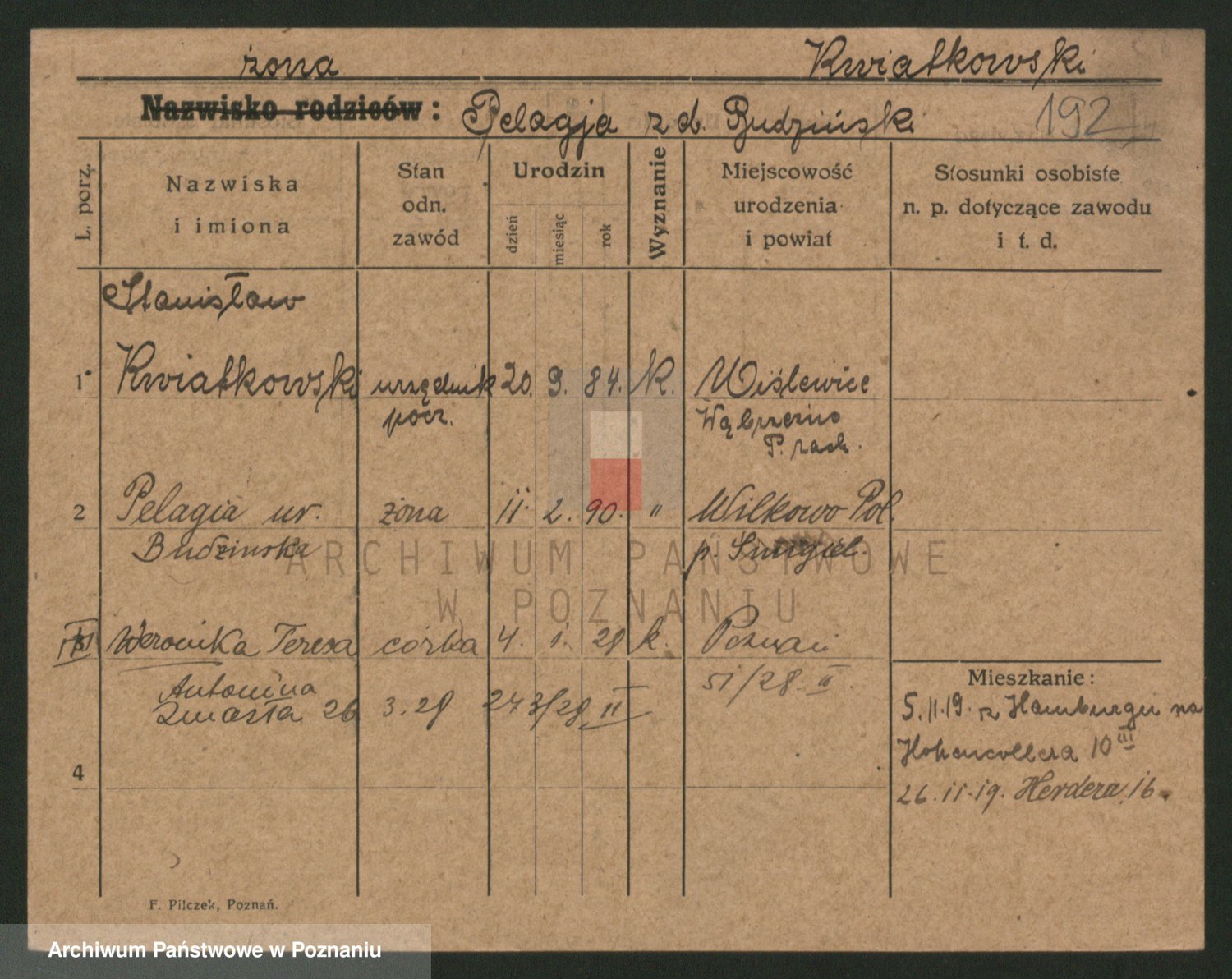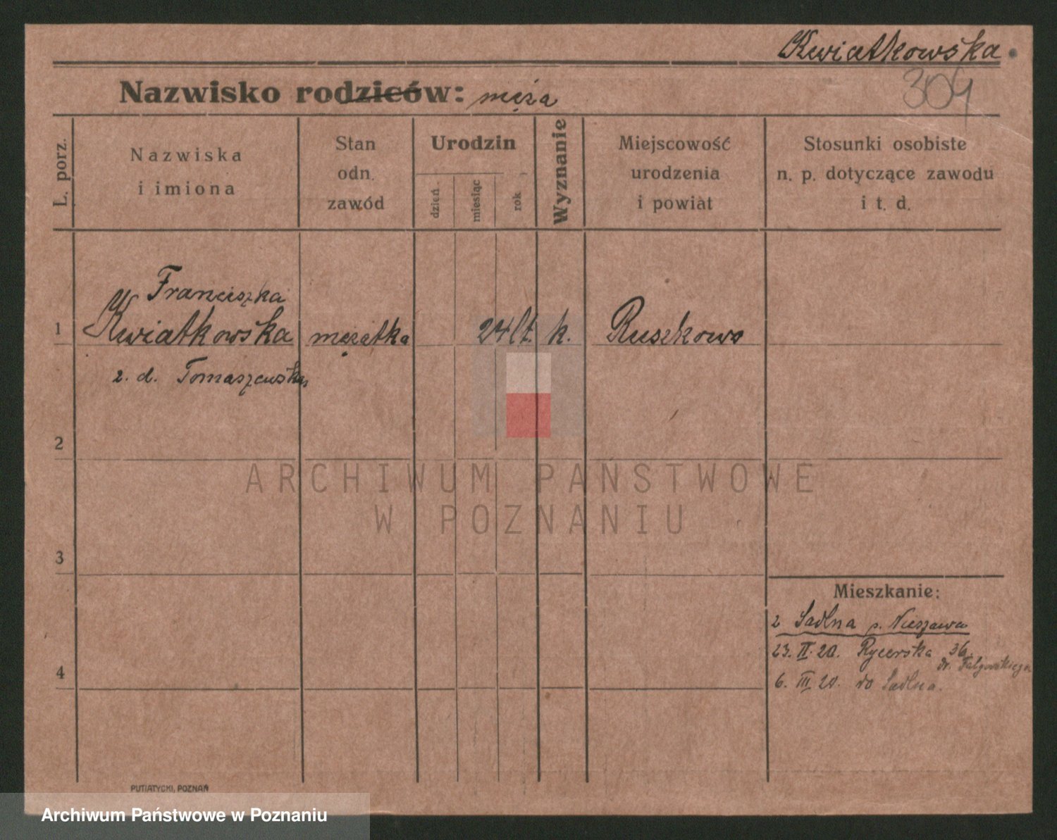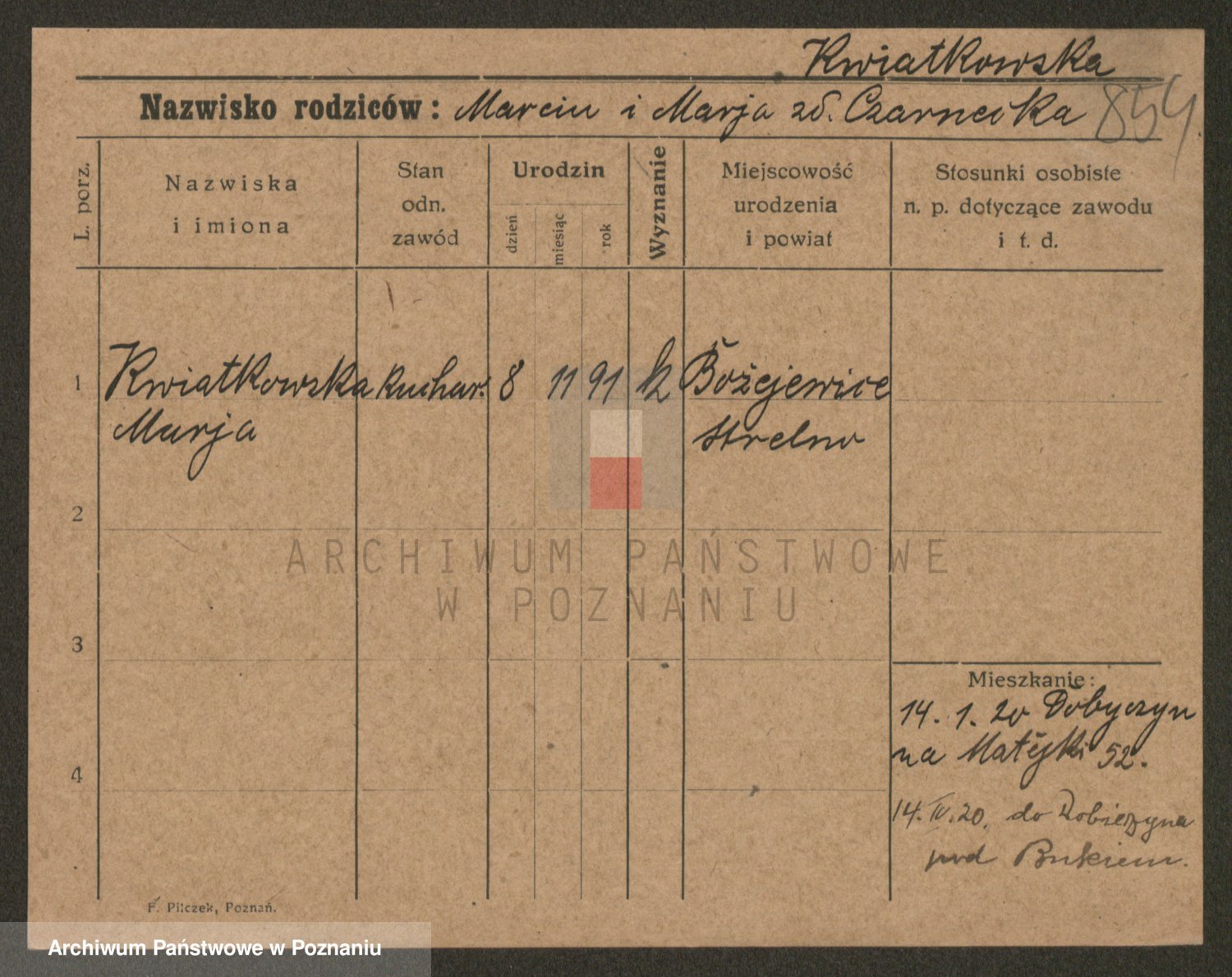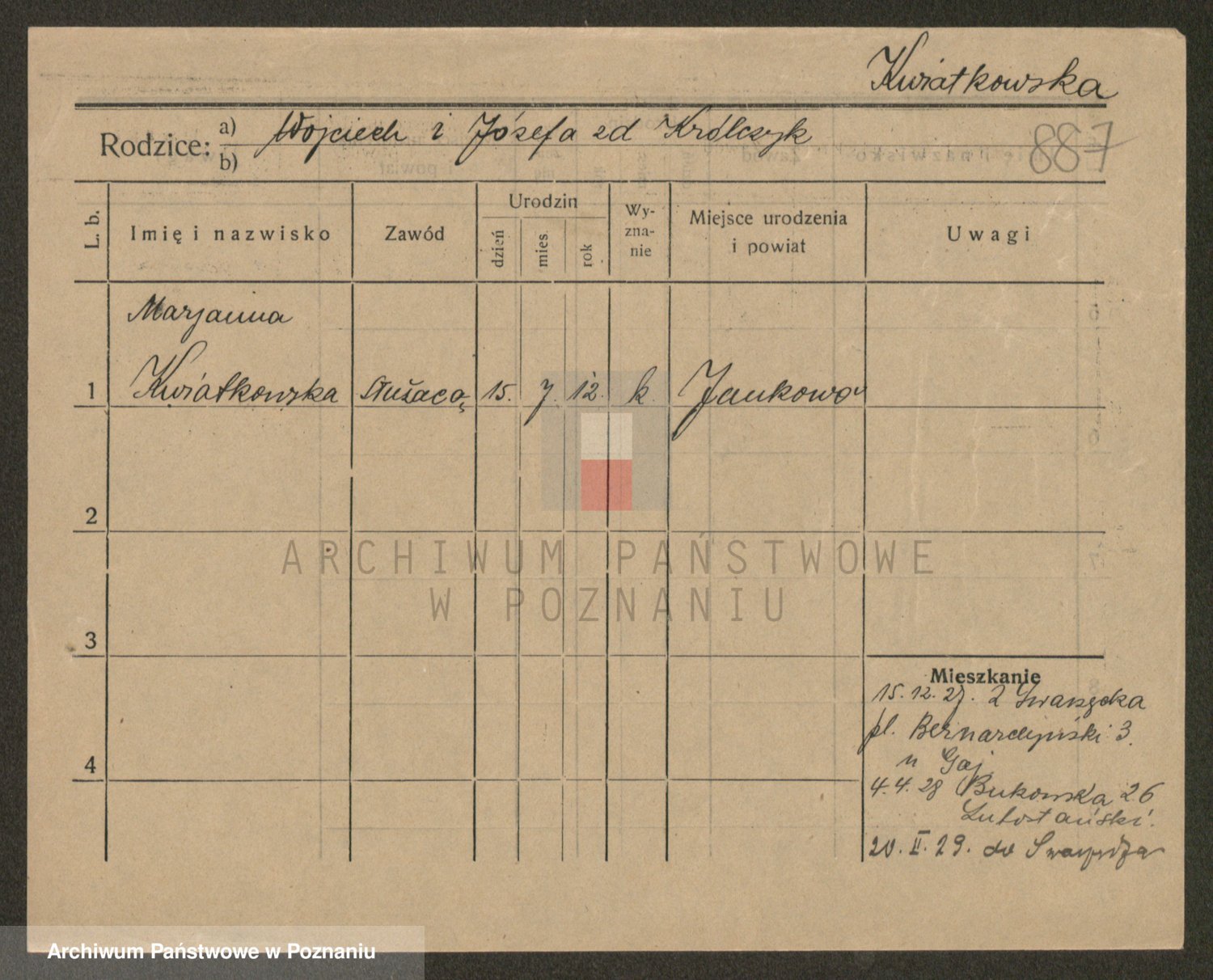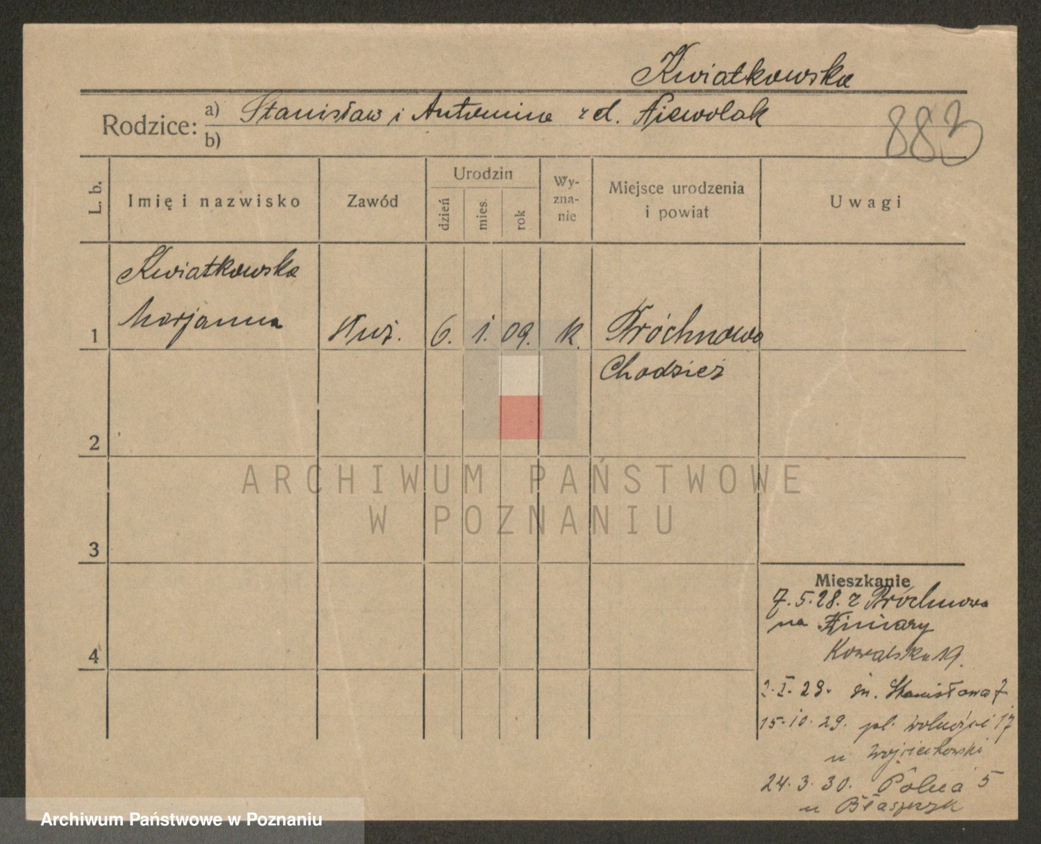 Kwiatkowski z d. Dembinska, Marja
