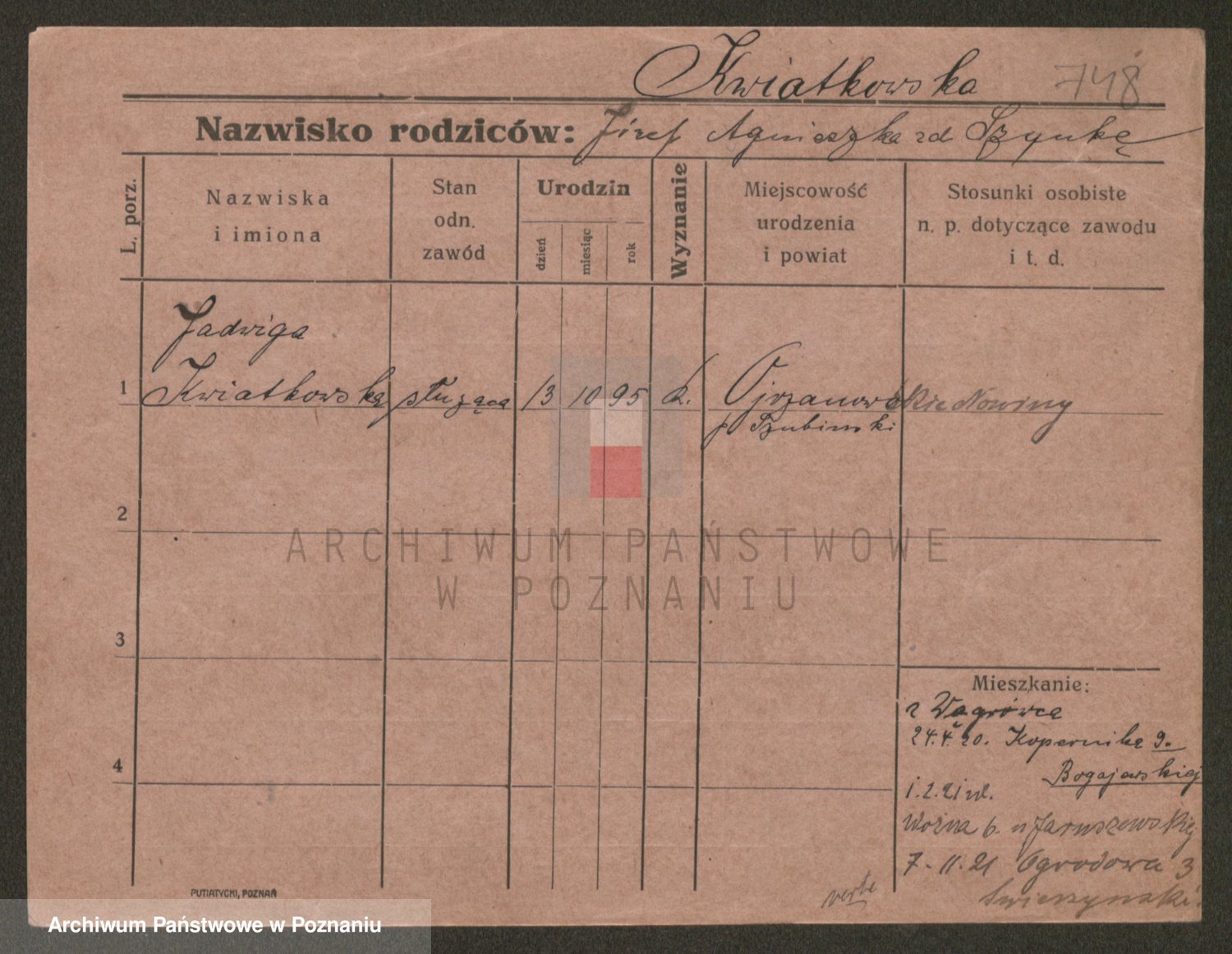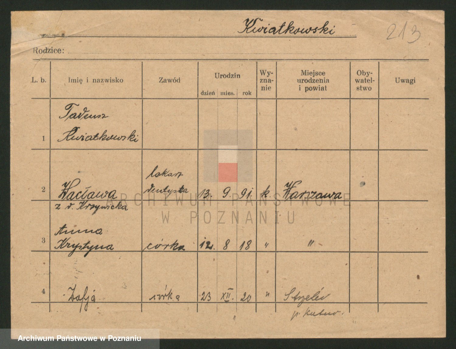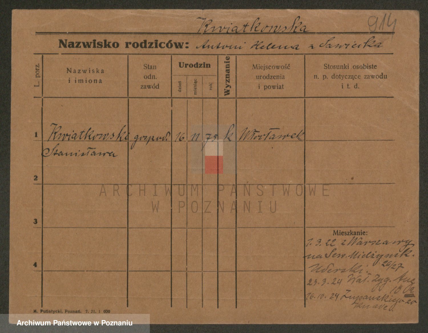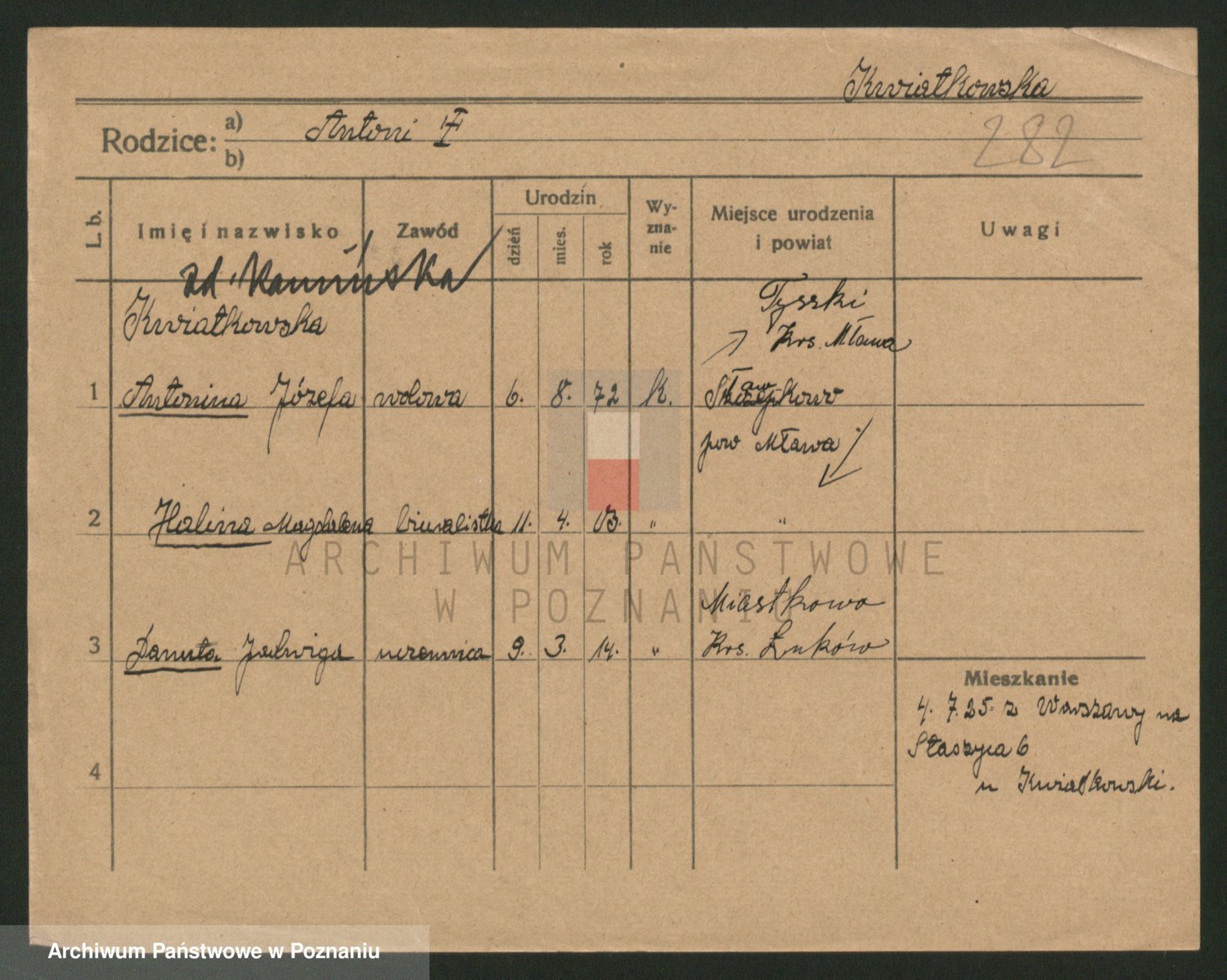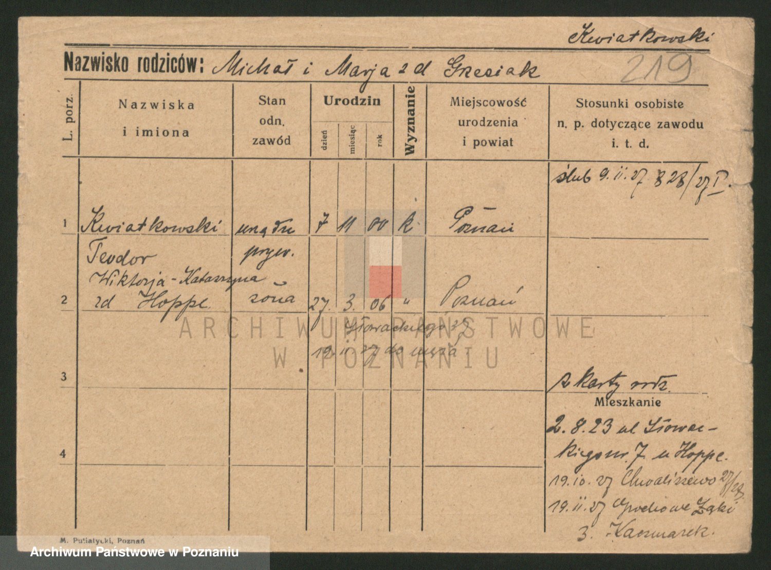 Kwiatkowski z d. Dembinska, Marja