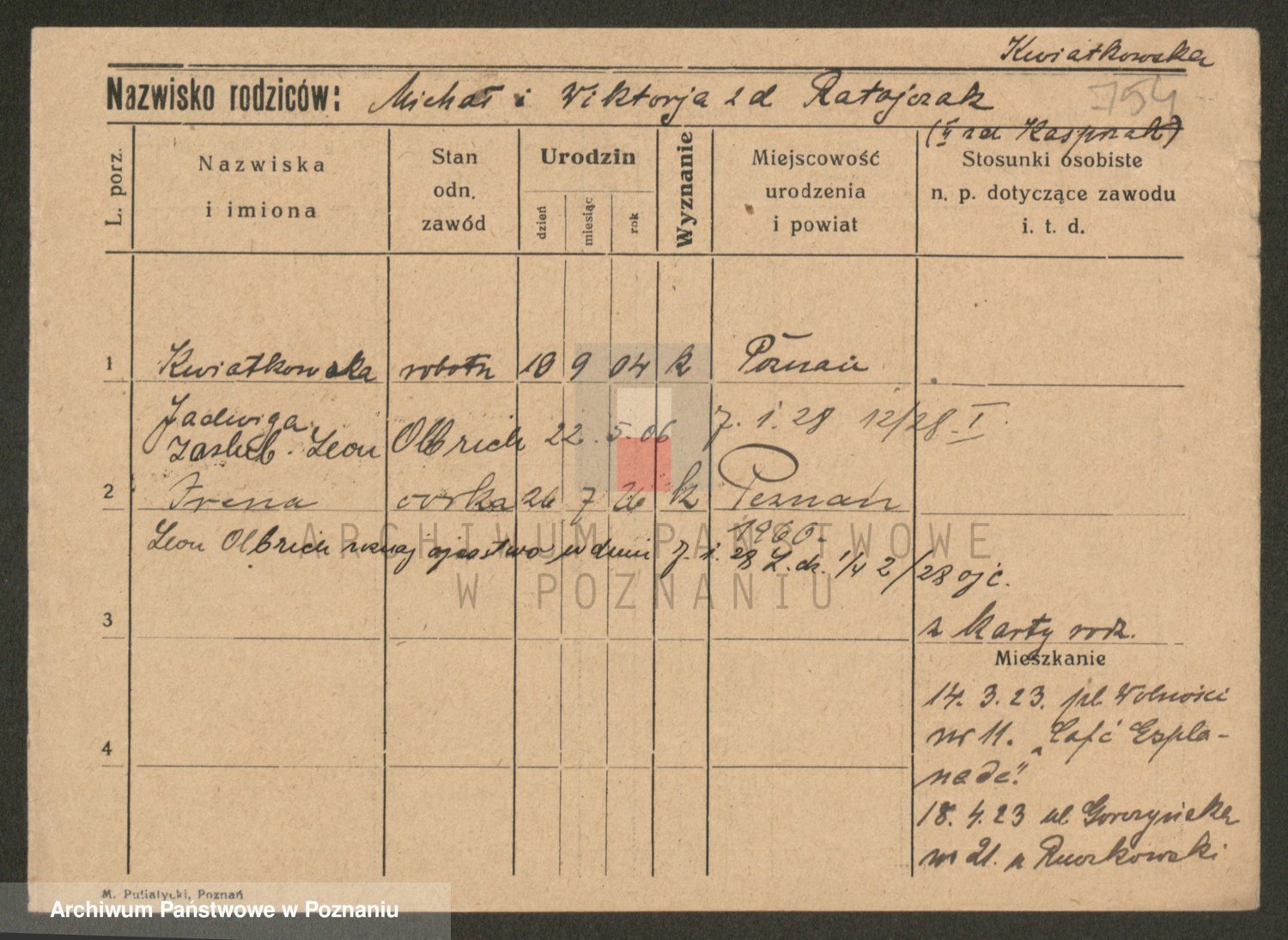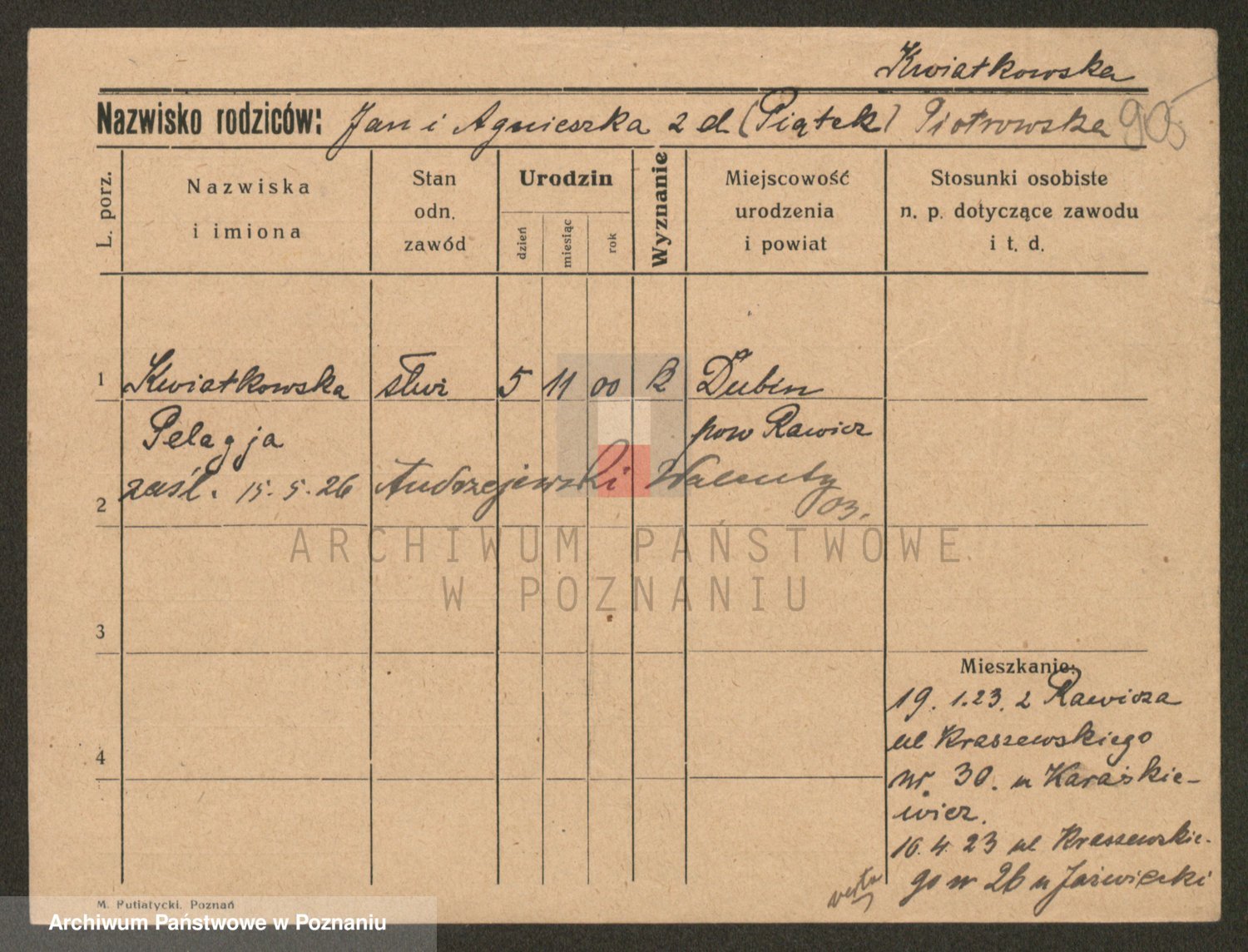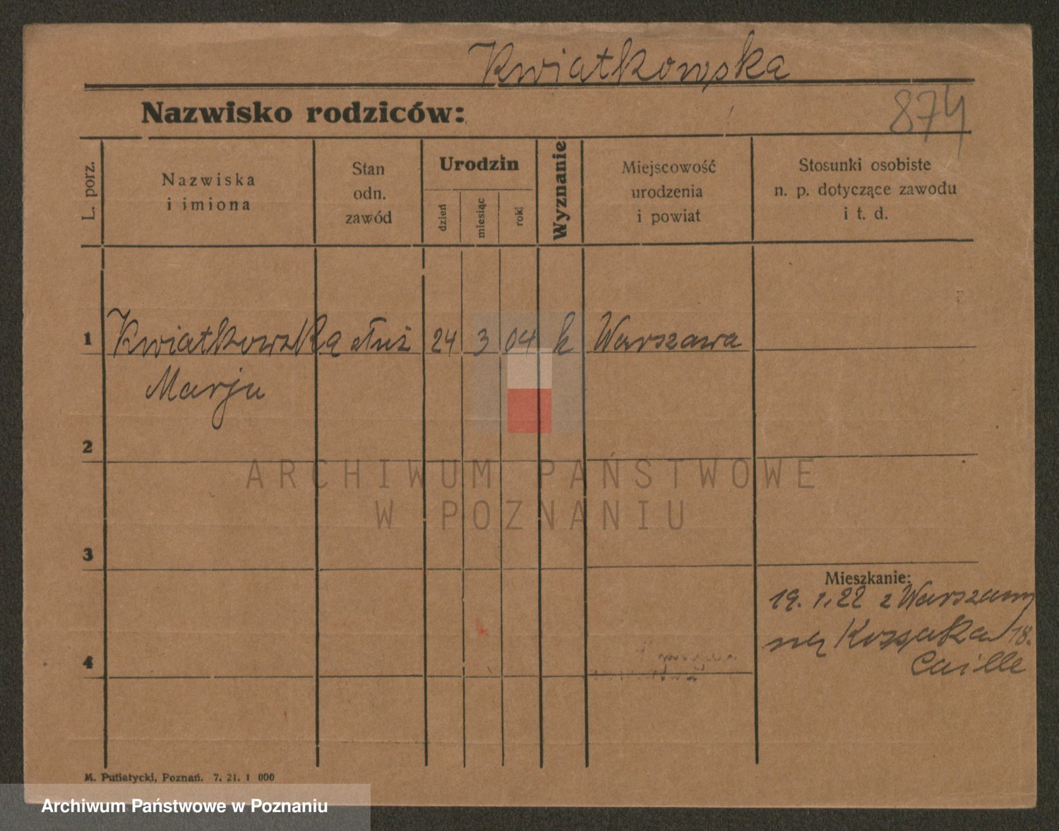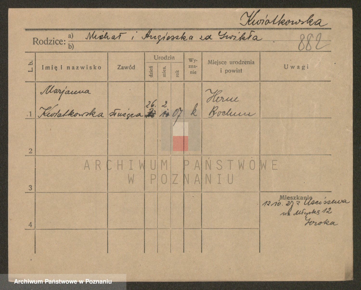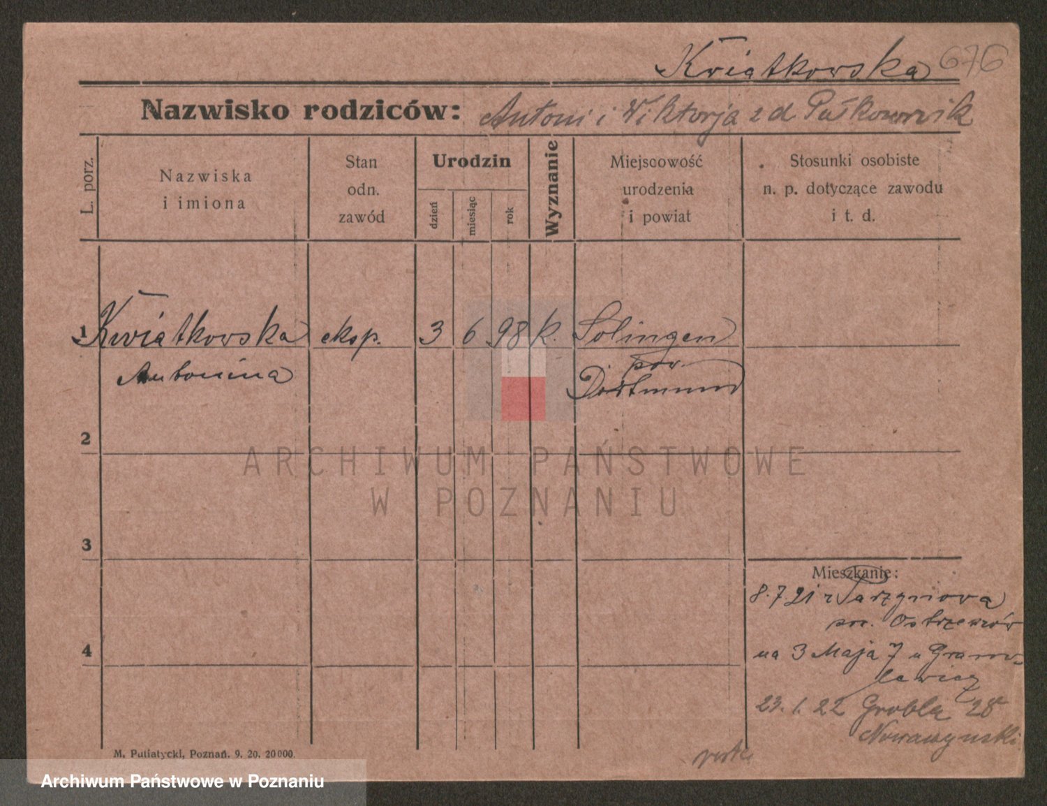 Kwiatkowski z d. Dembinska, Marja