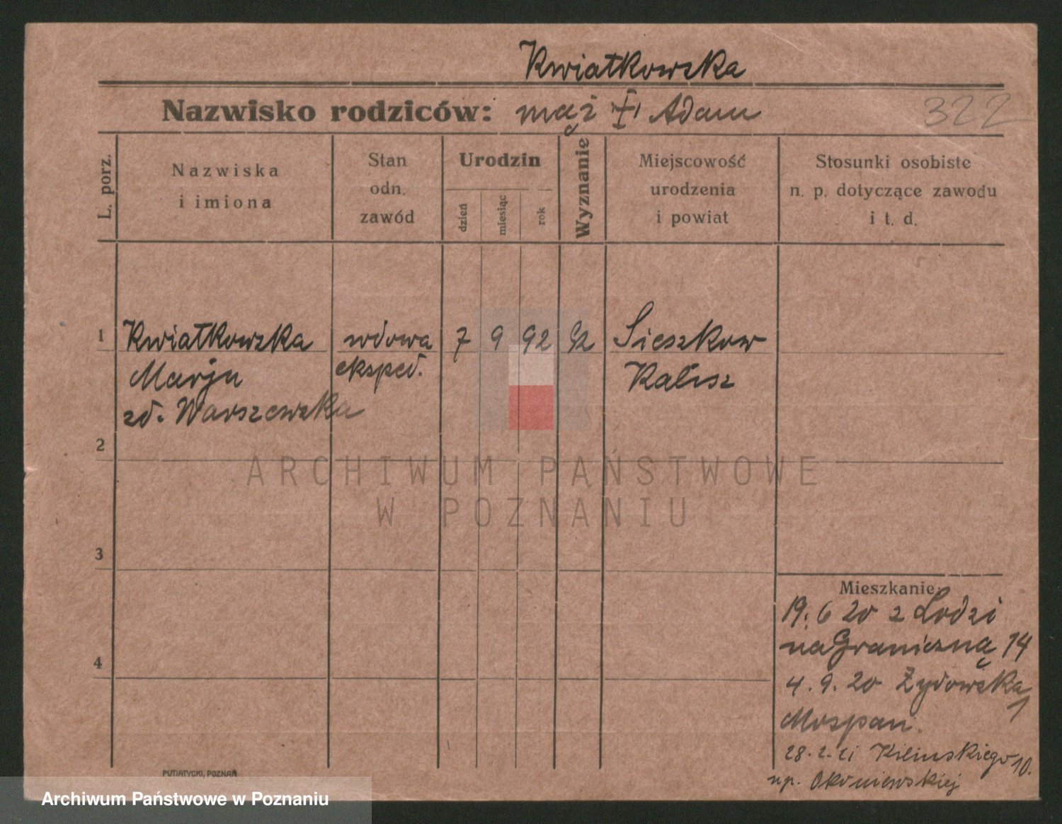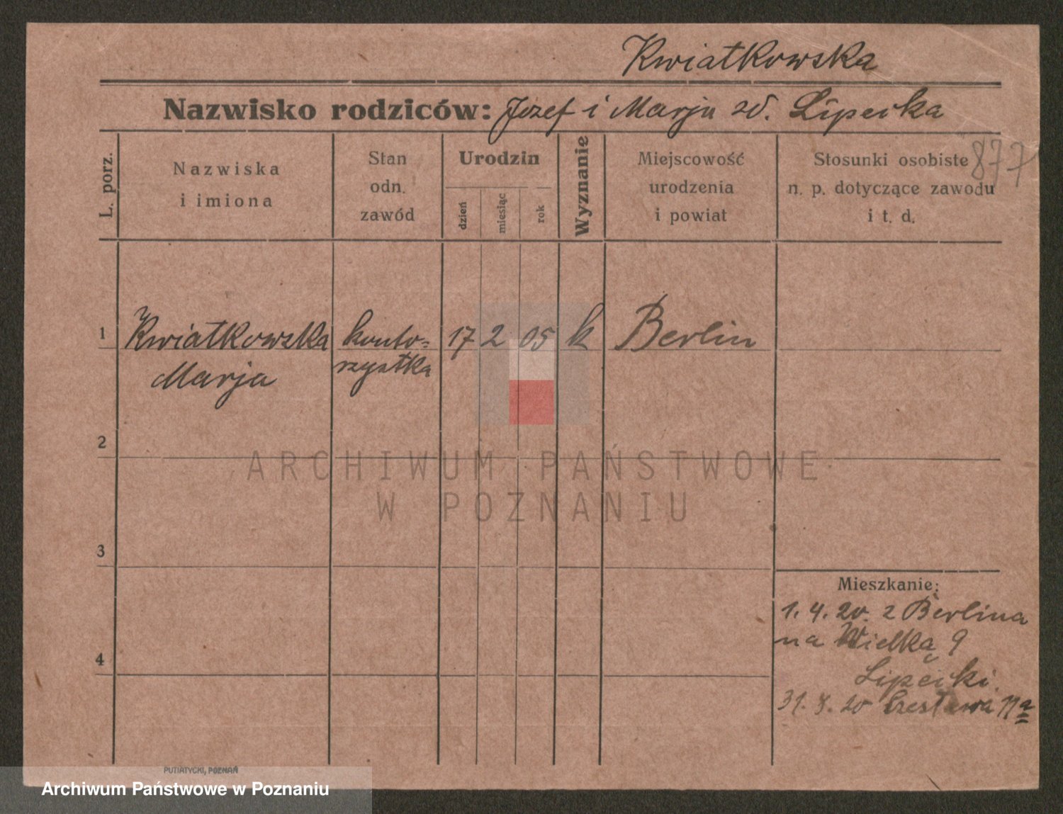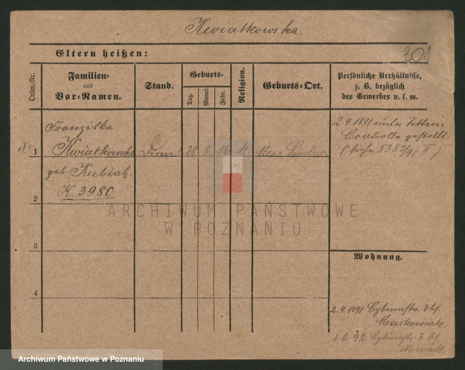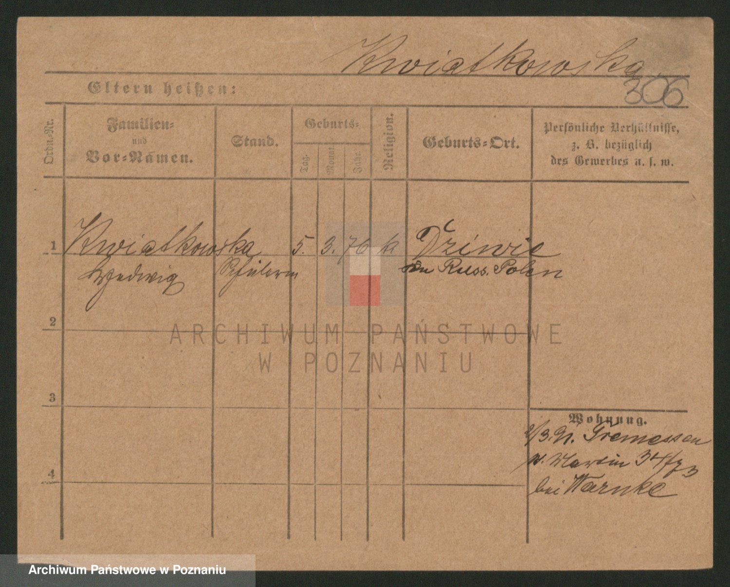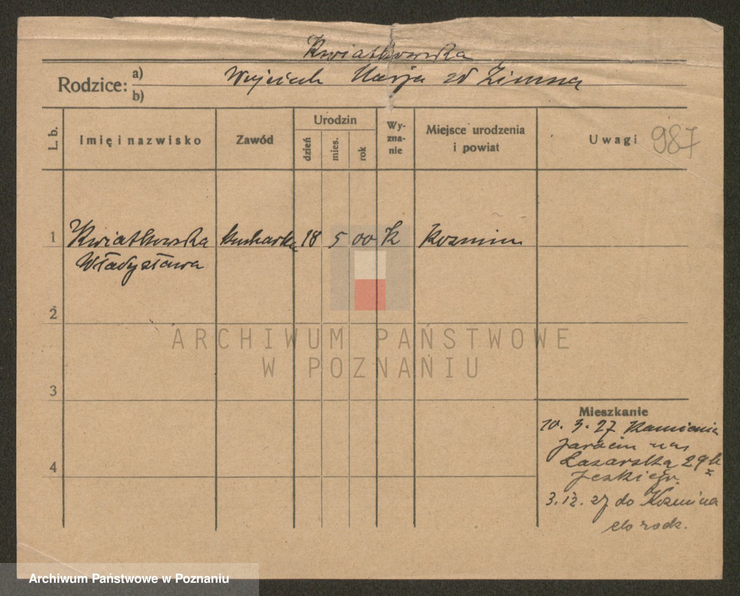 Kwiatkowski z d. Dembinska, Marja