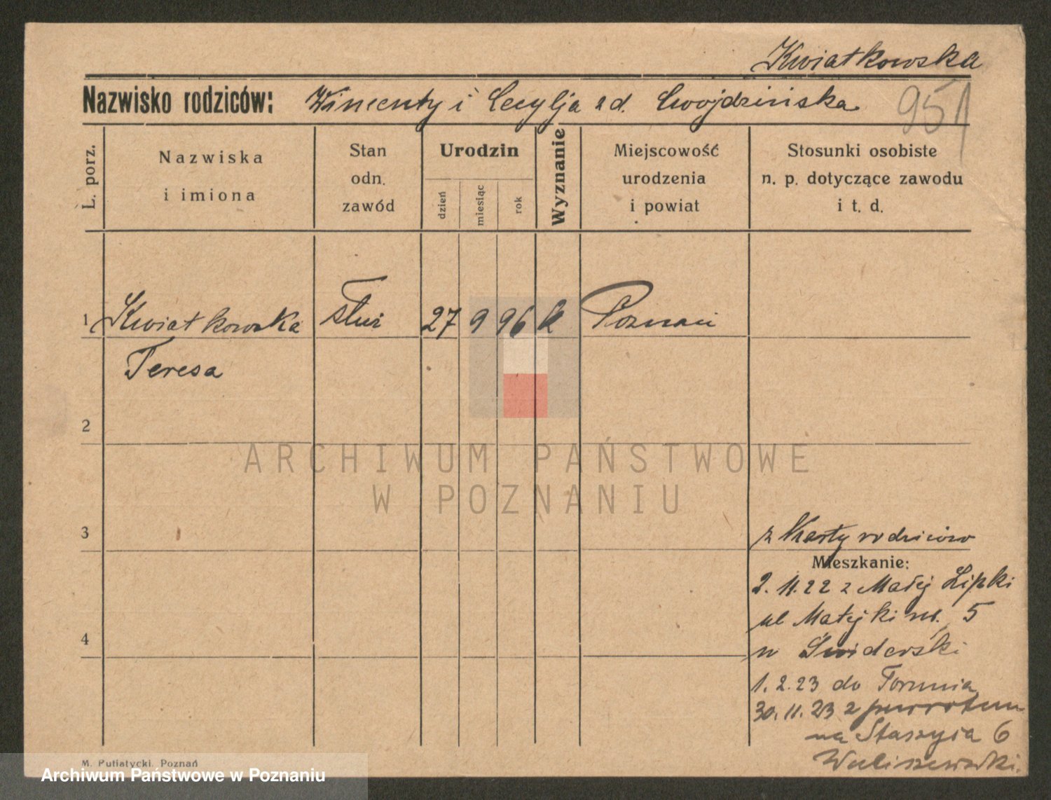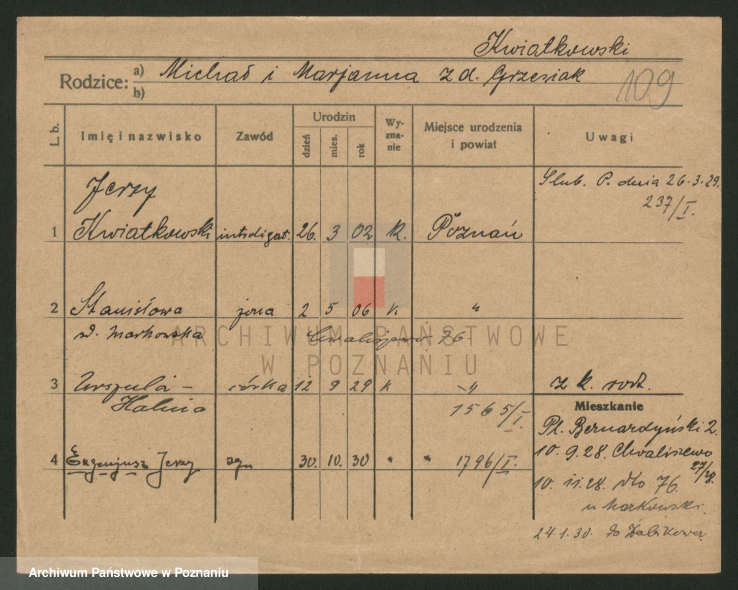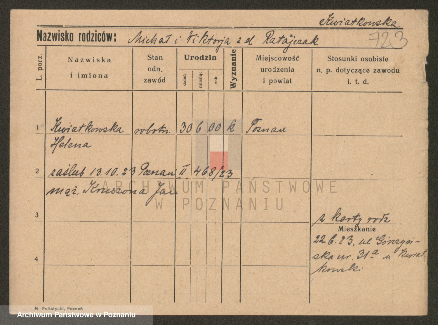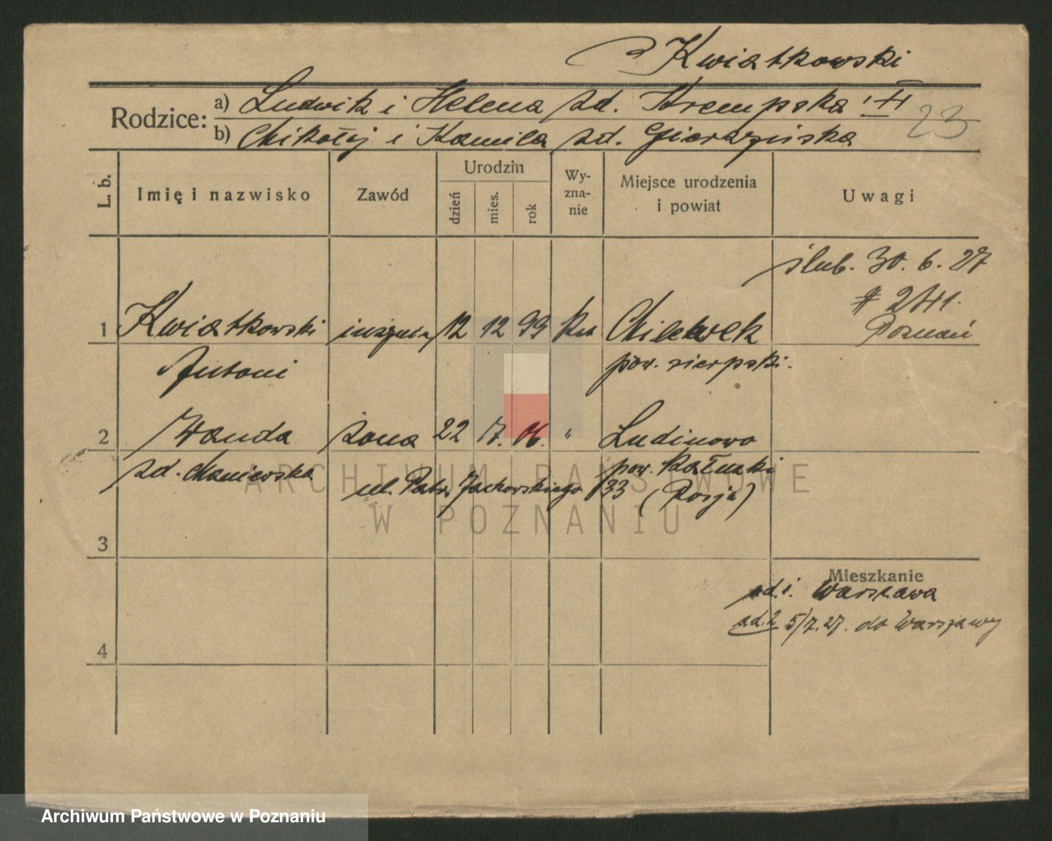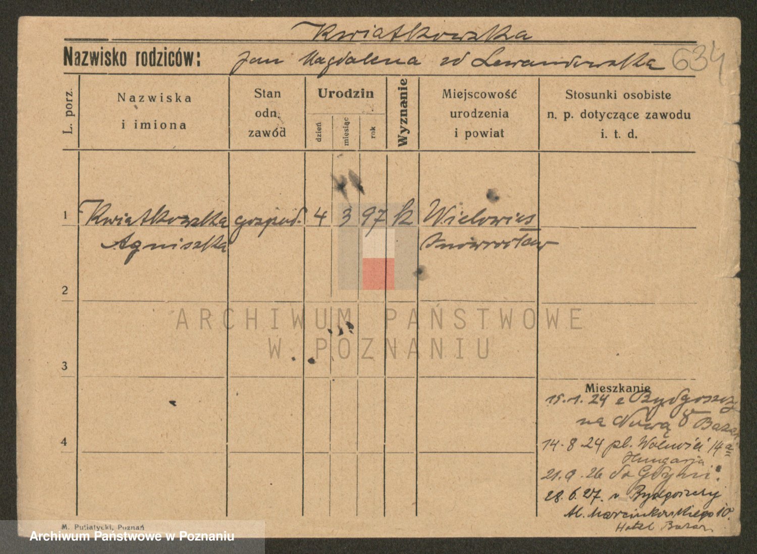 Kwiatkowski z d. Dembinska, Marja