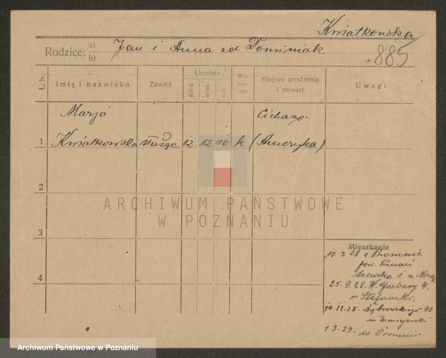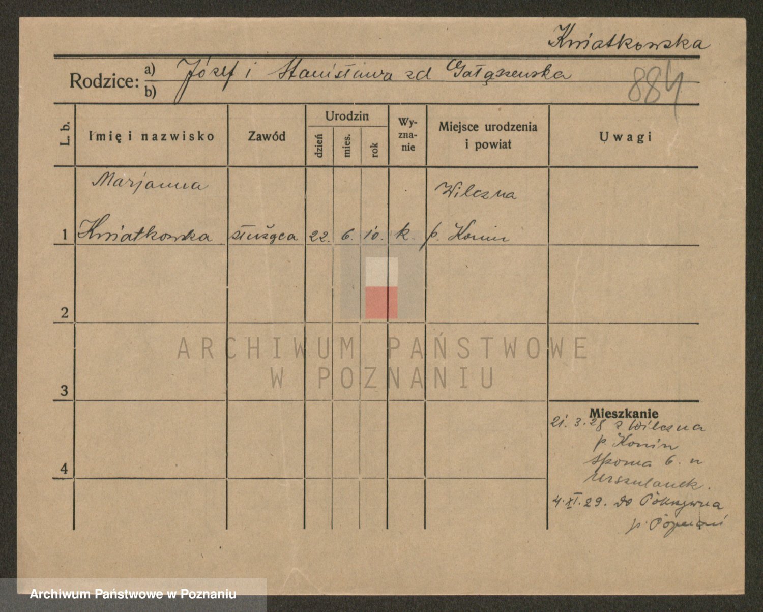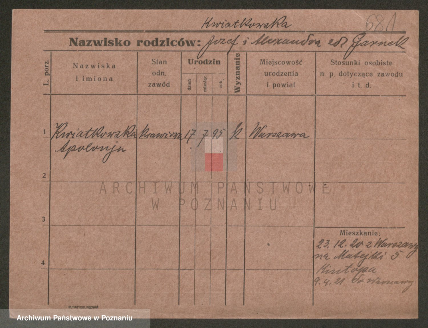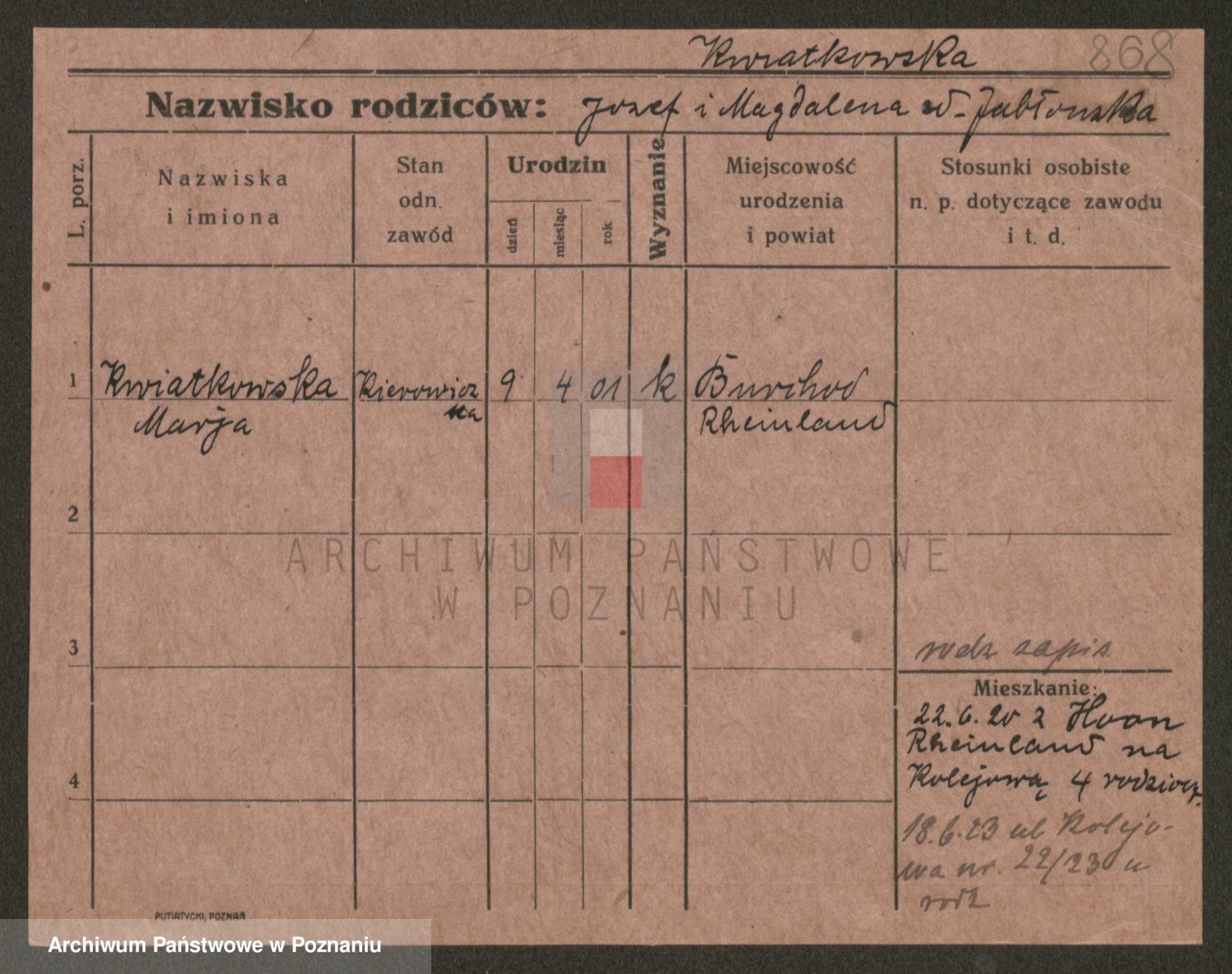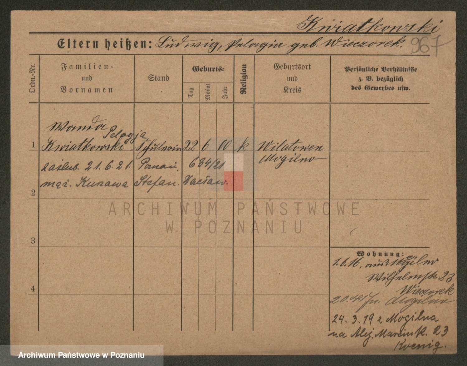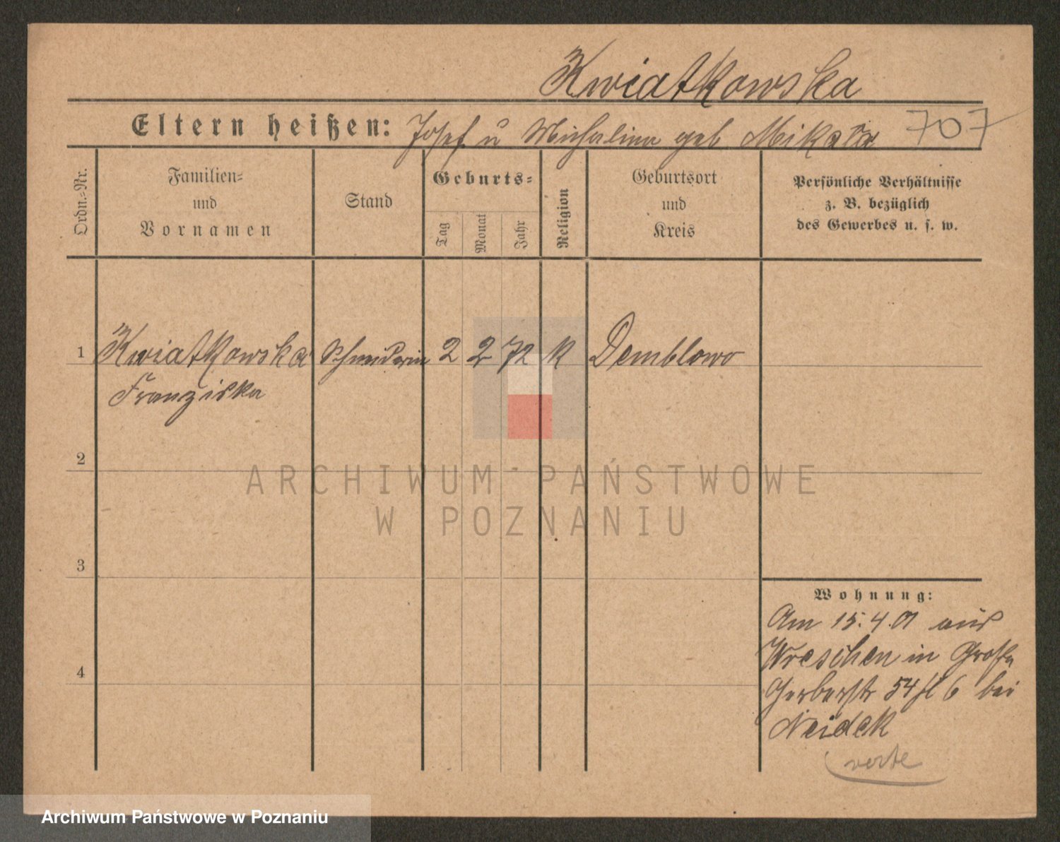 Kwiatkowski z d. Dembinska, Marja