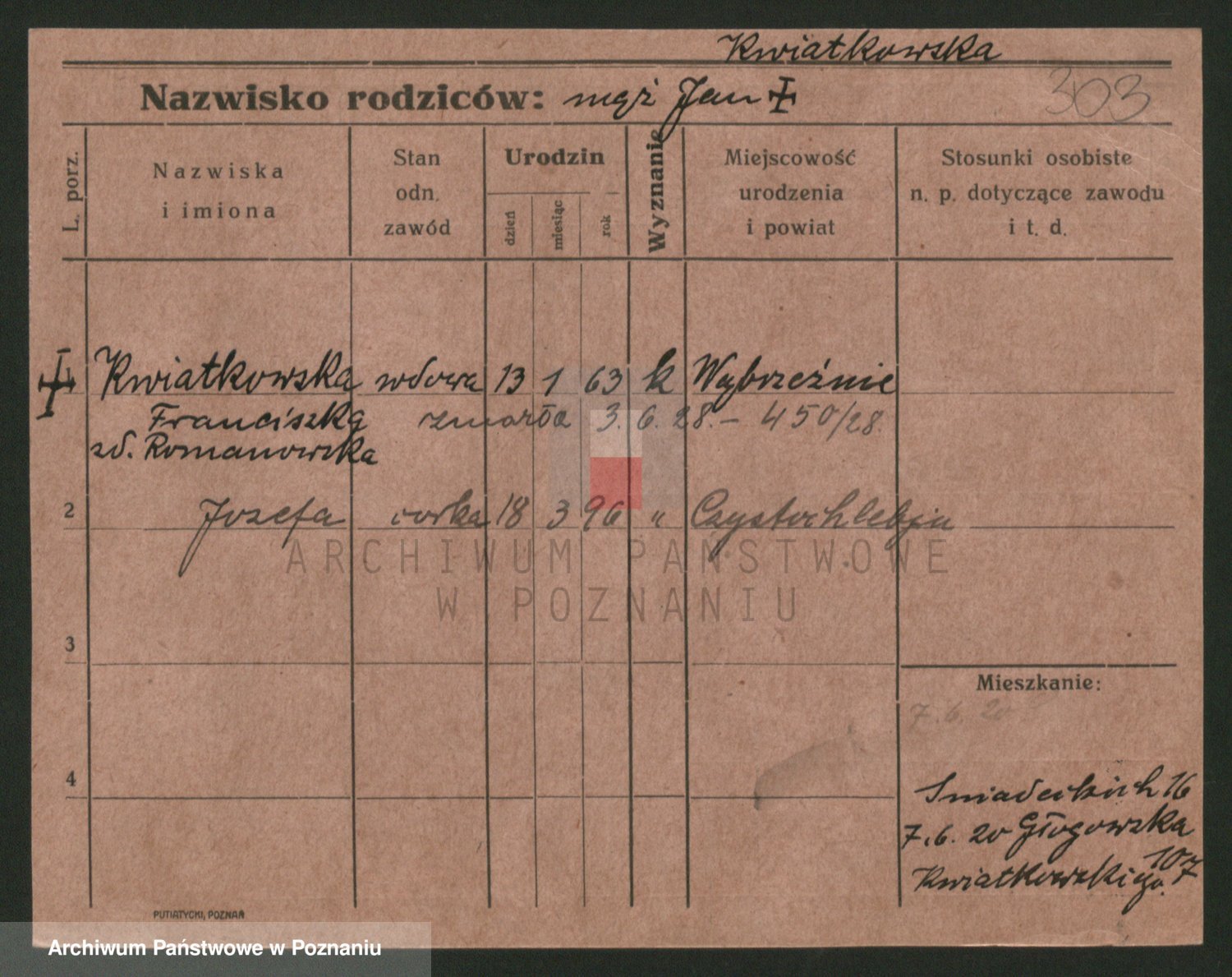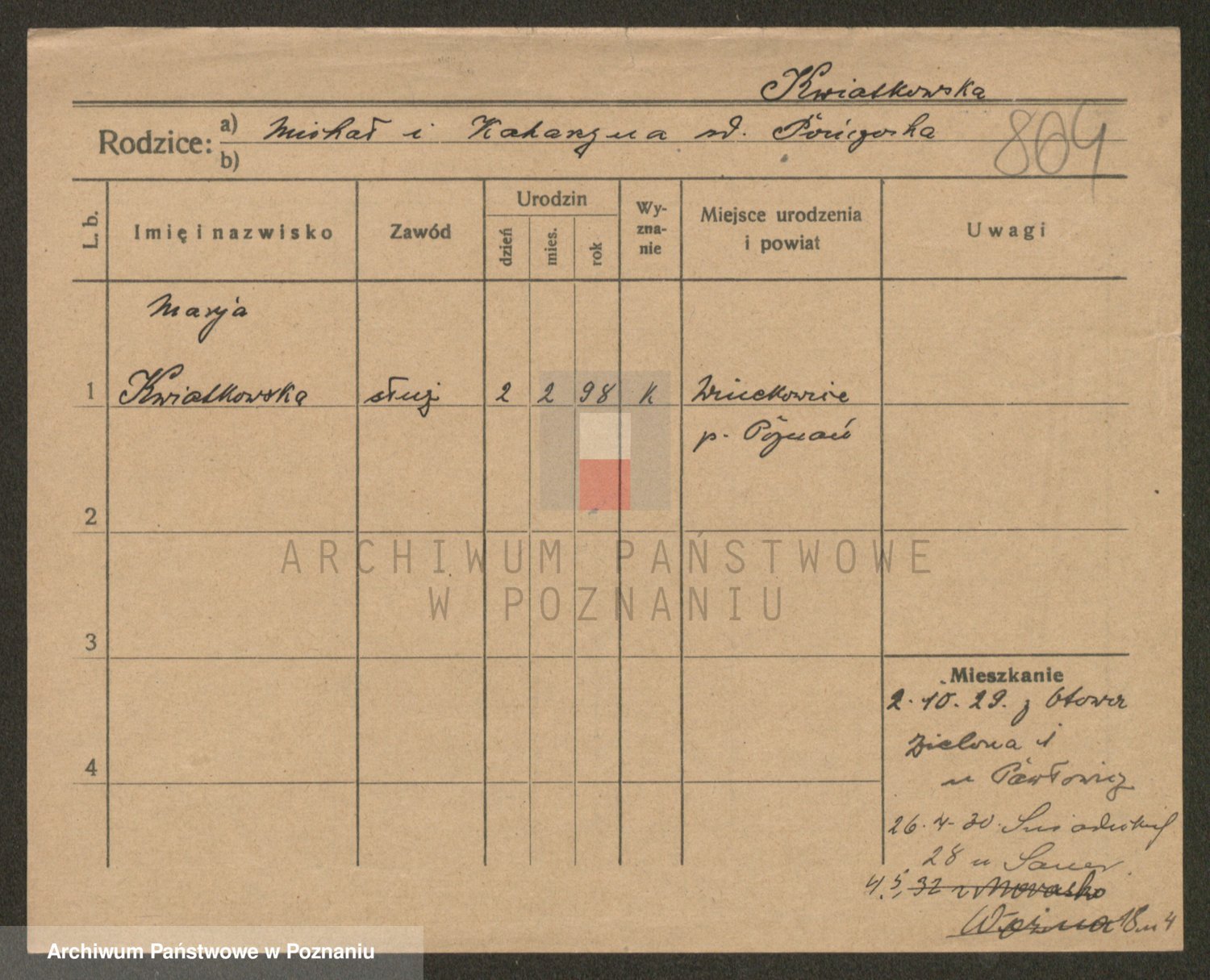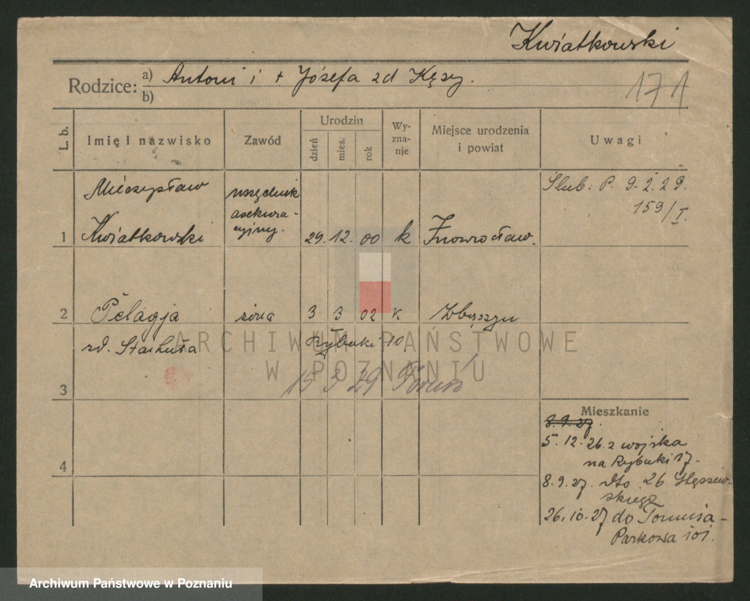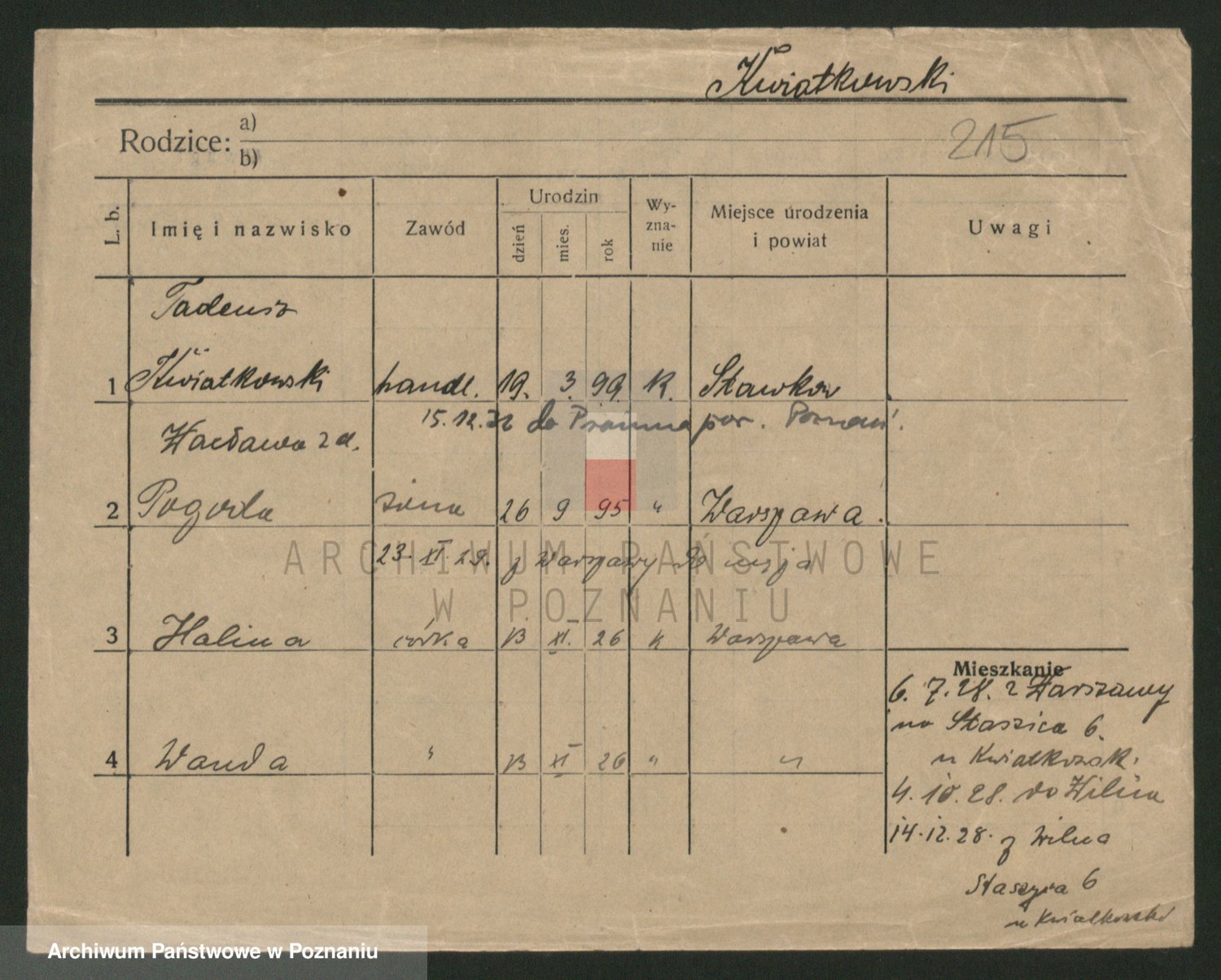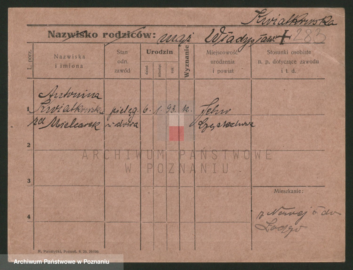 Kwiatkowski z d. Dembinska, Marja