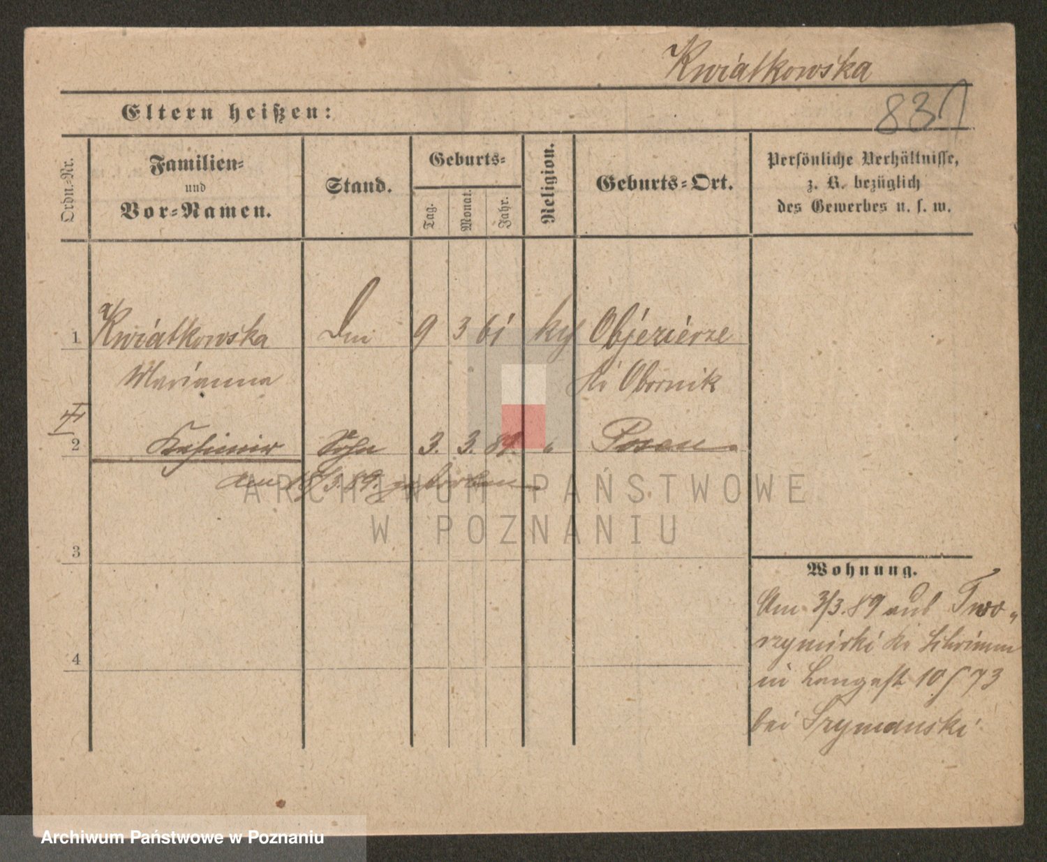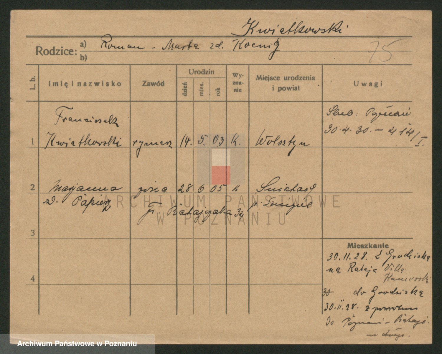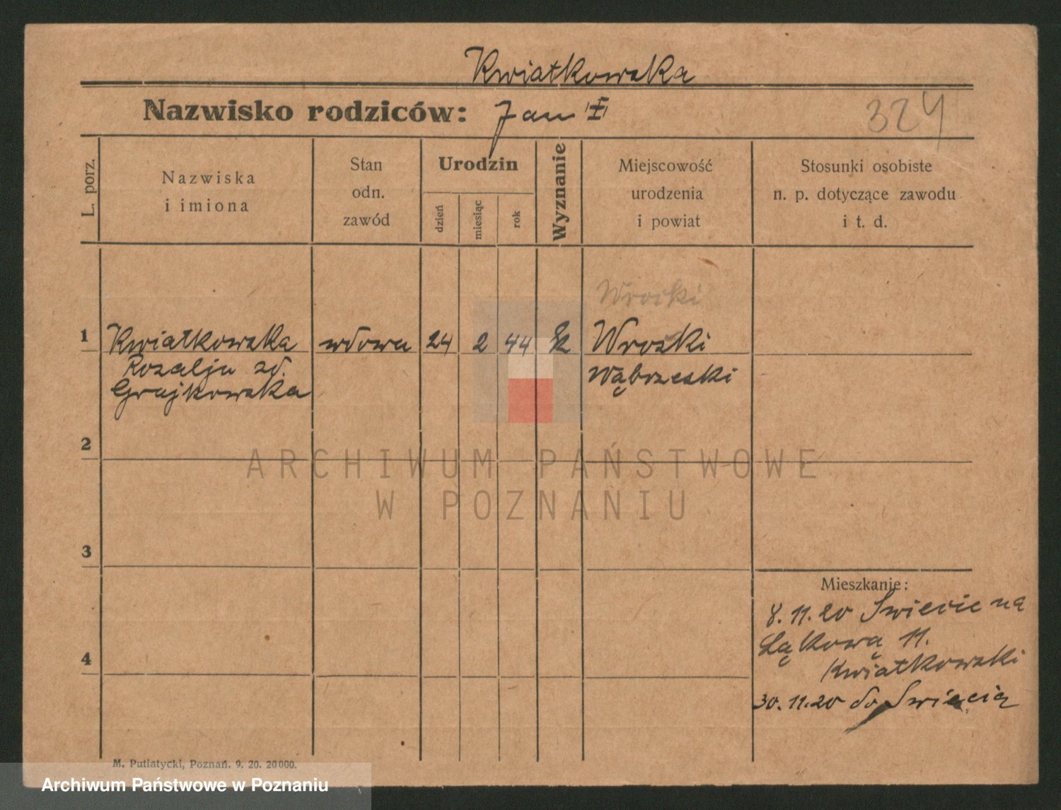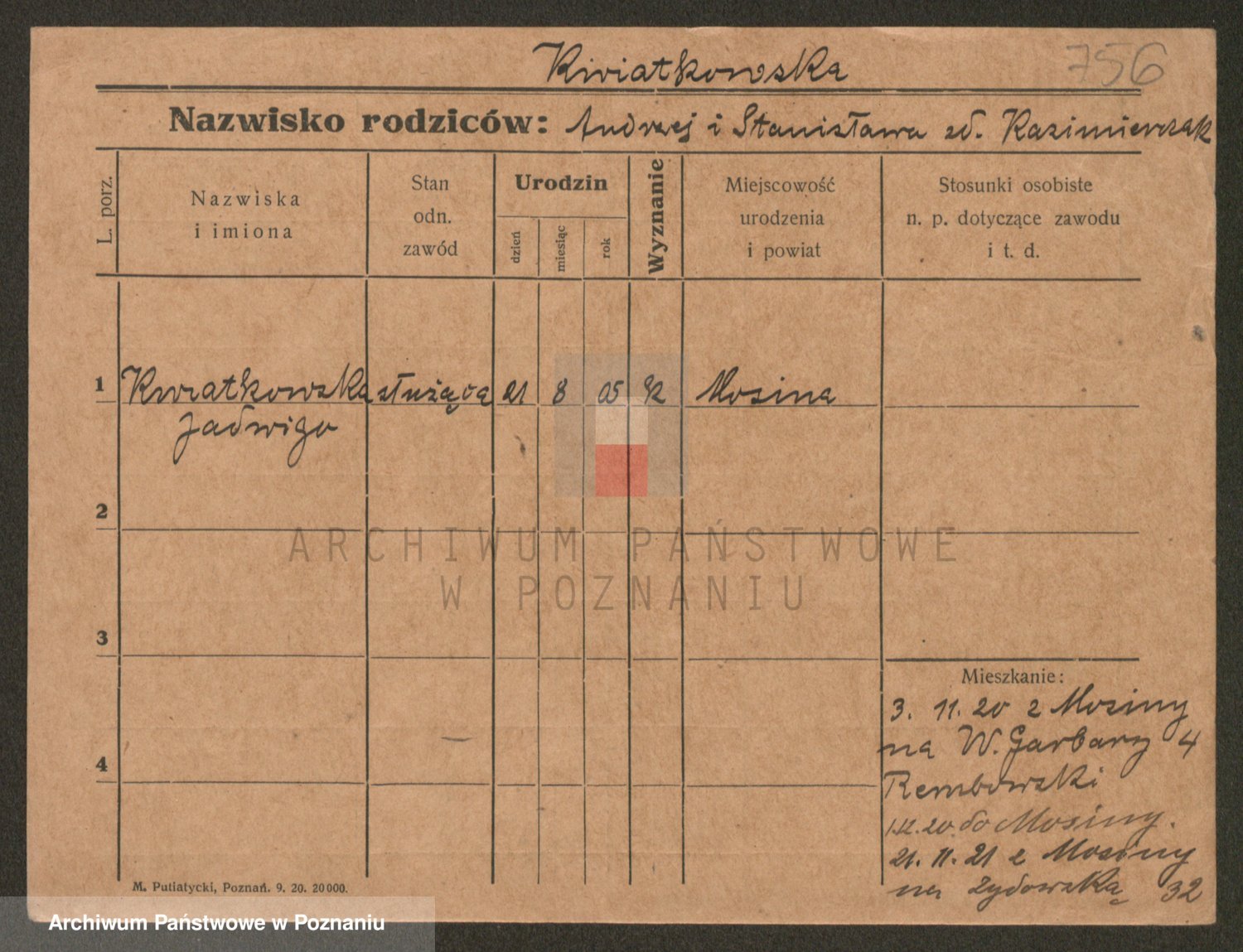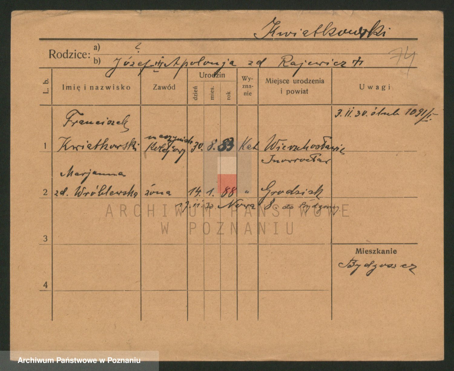 Kwiatkowski z d. Dembinska, Marja