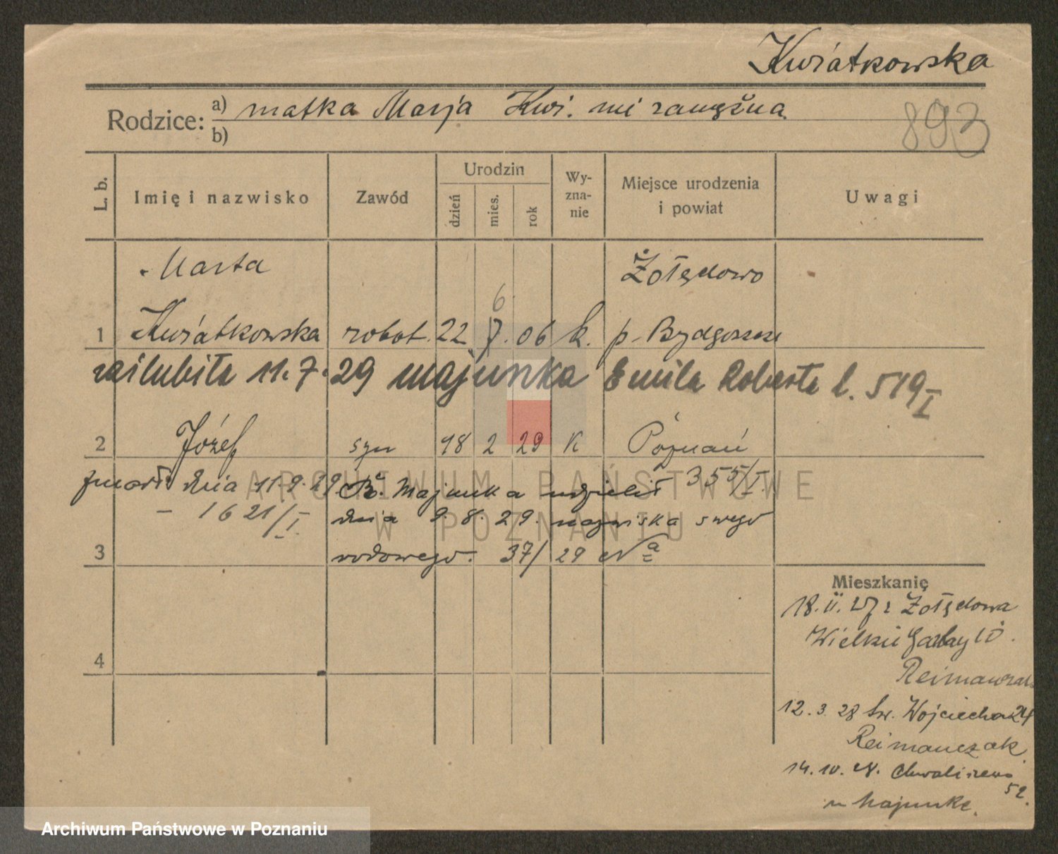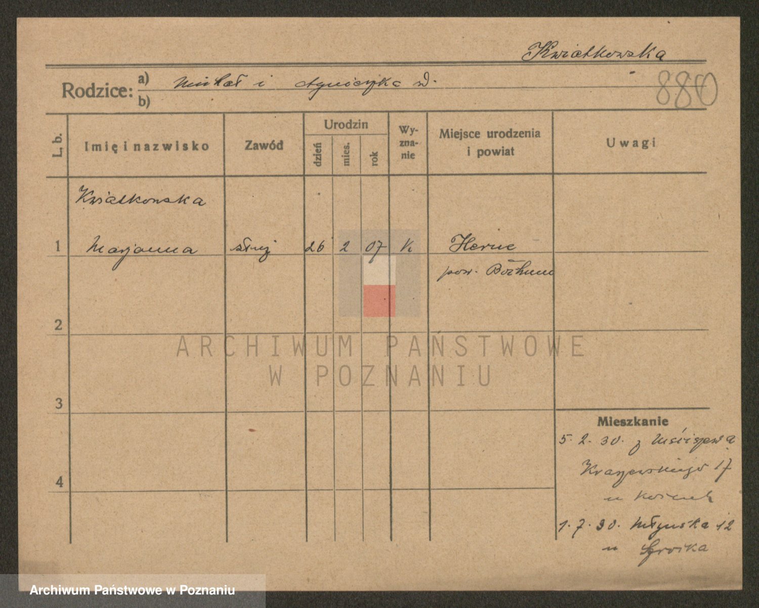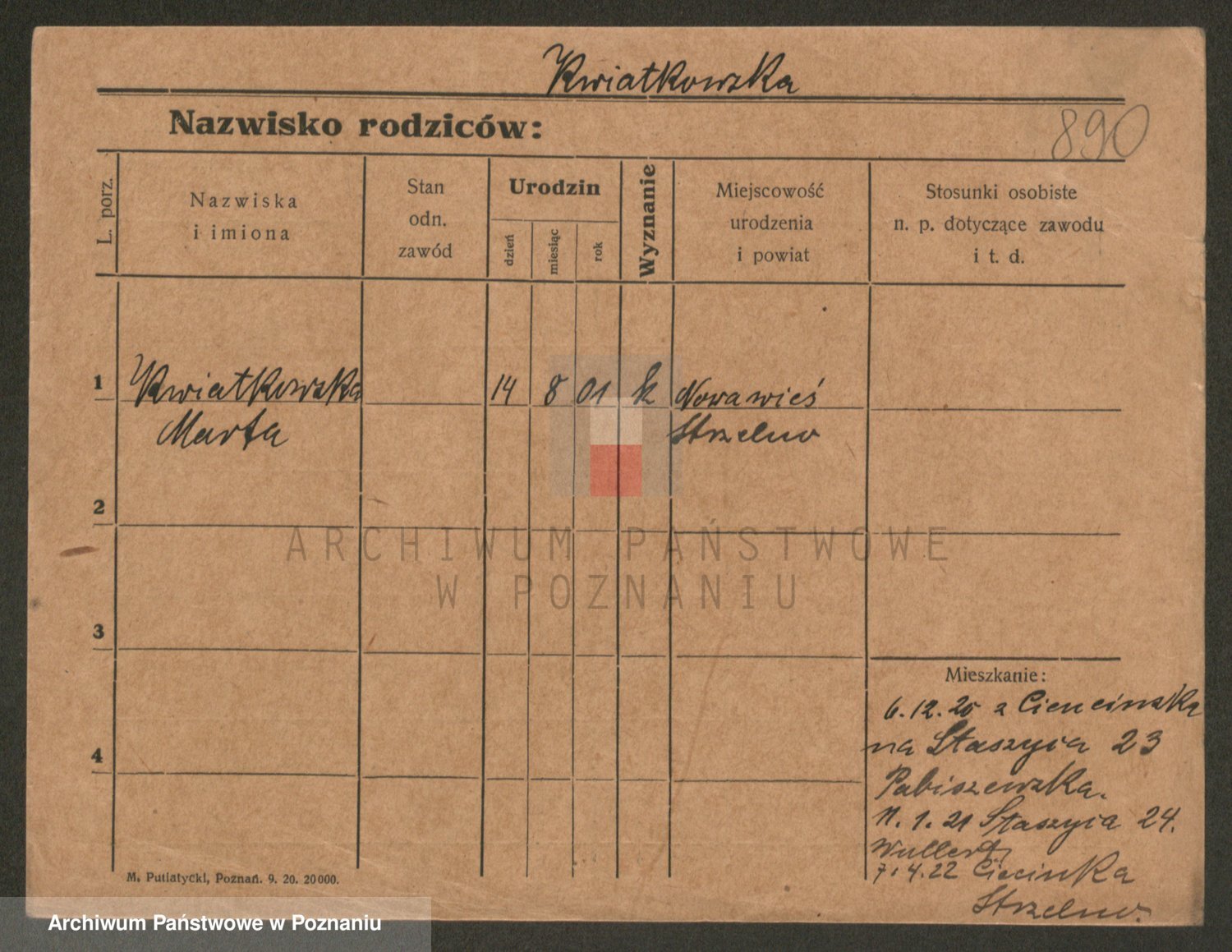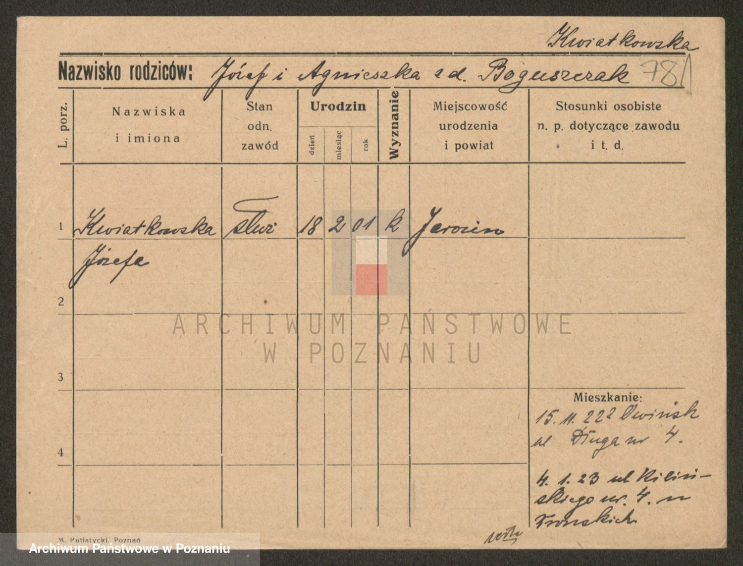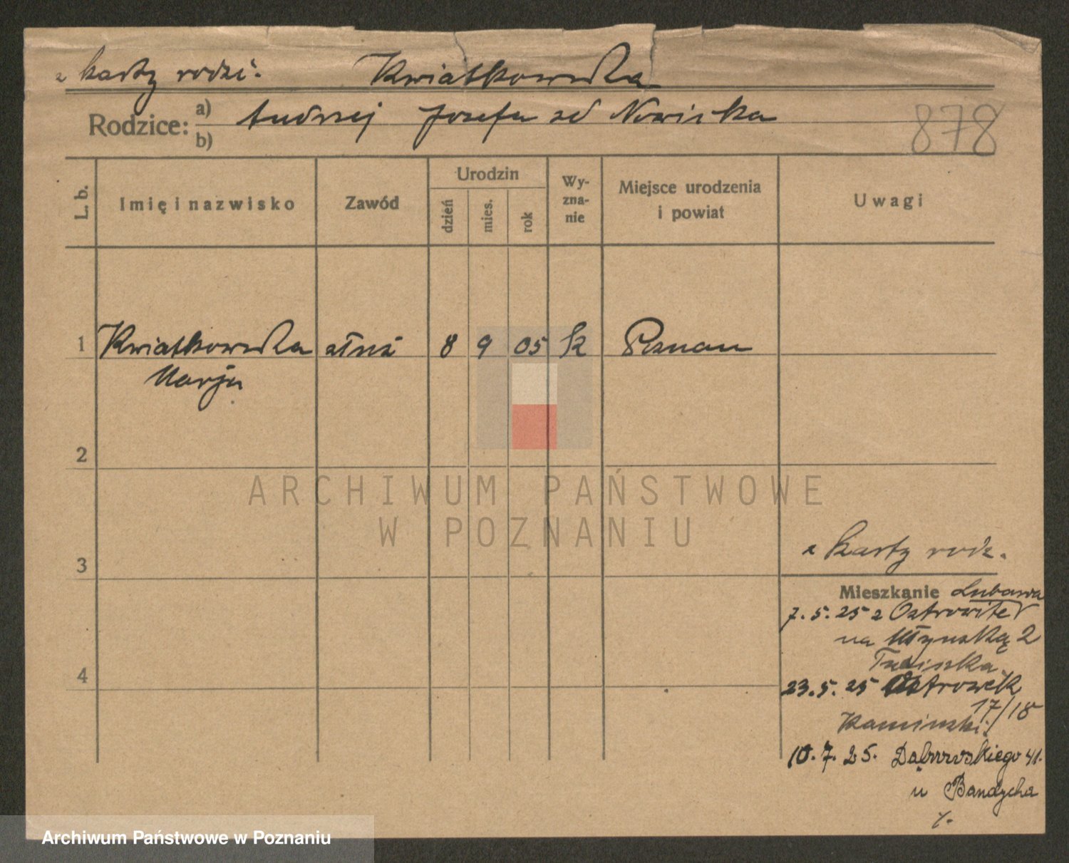 Kwiatkowski z d. Dembinska, Marja